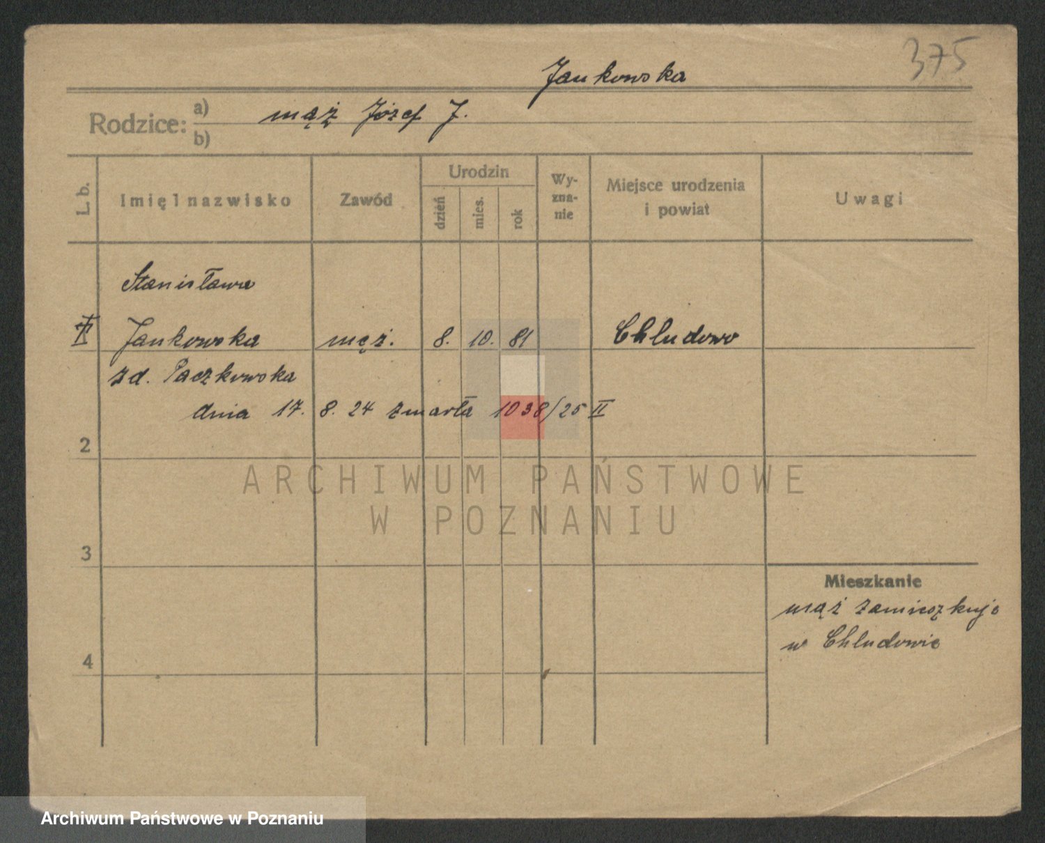 Jankowska z d. Chuda, Marja
