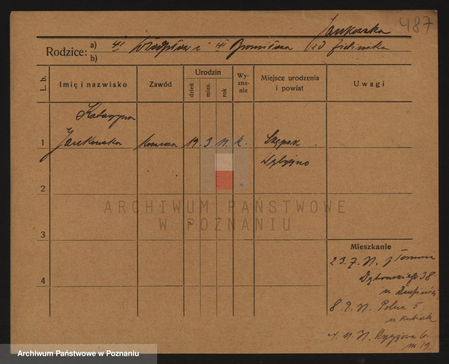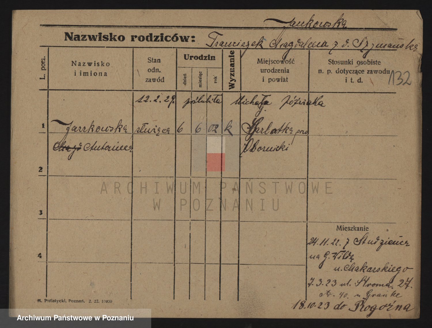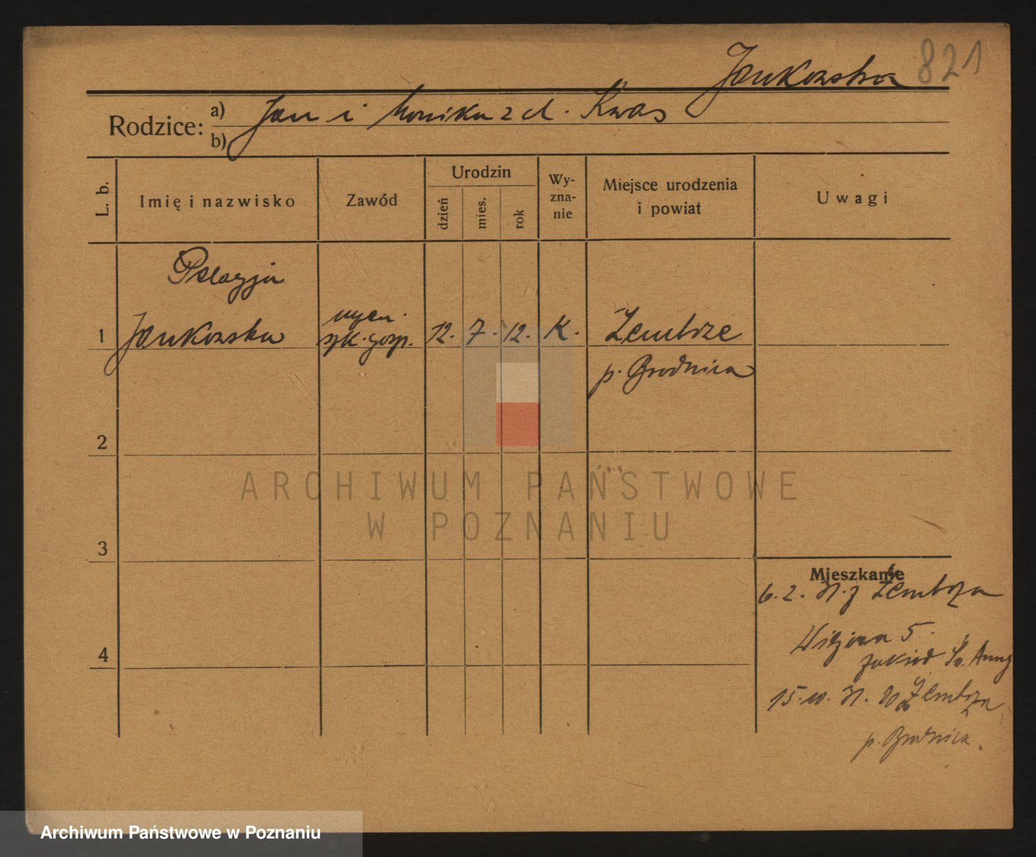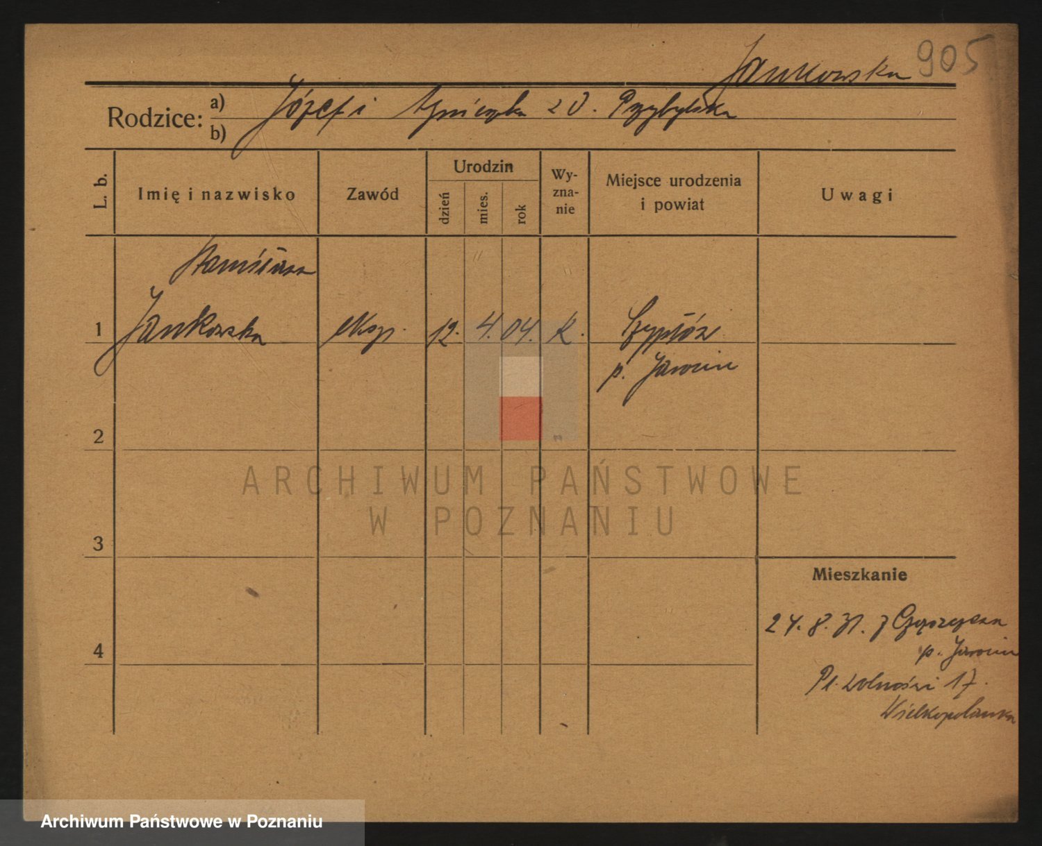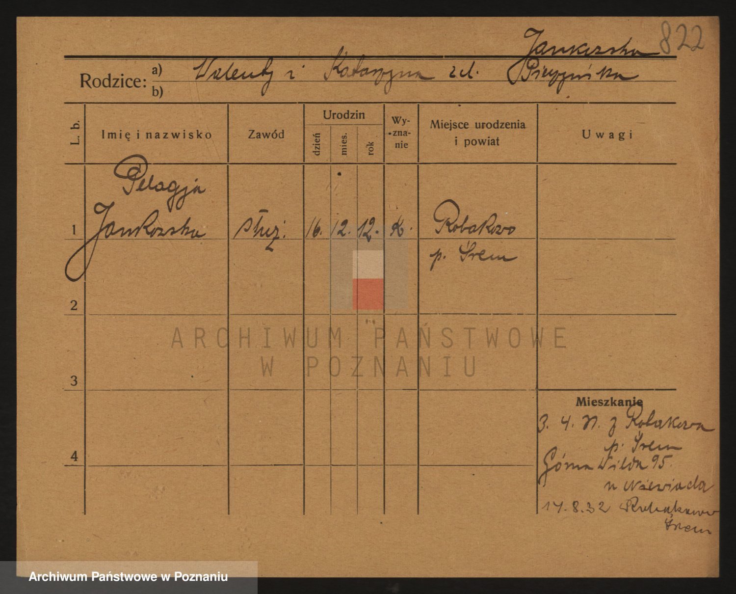 Podgląd karty osobowej dostępny jest po kliknięciu na nazwisko lub ikonkę karty. Można dokonywać powiększenia (ikony na górze) lub przechodzić między kolejnymi skanami (strzałki po bokach).