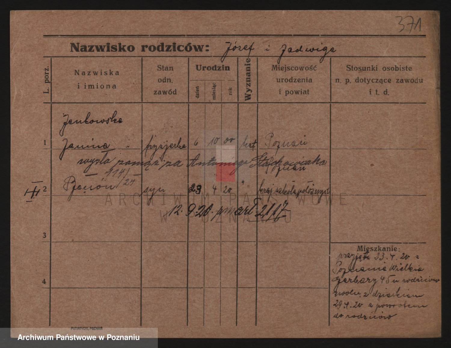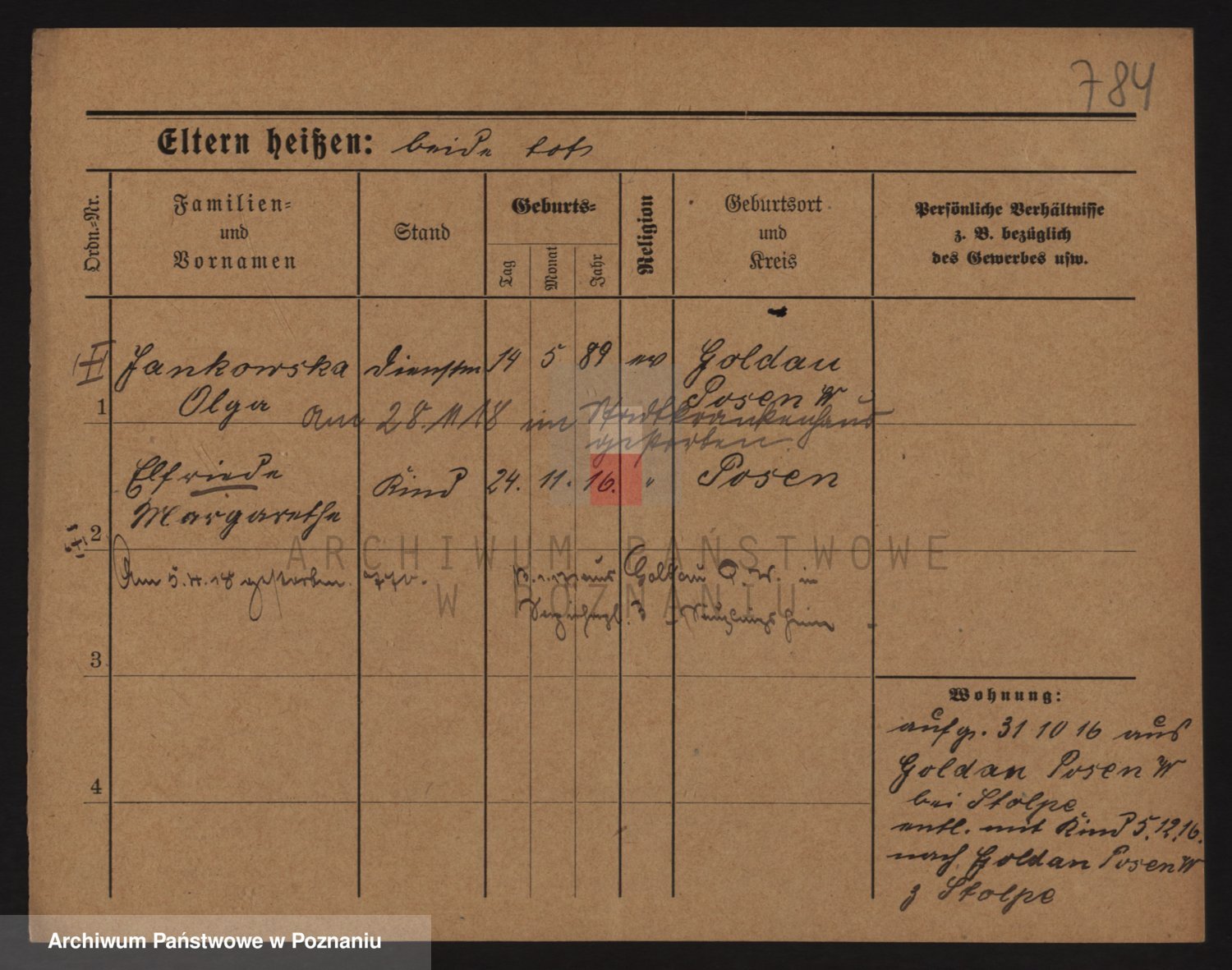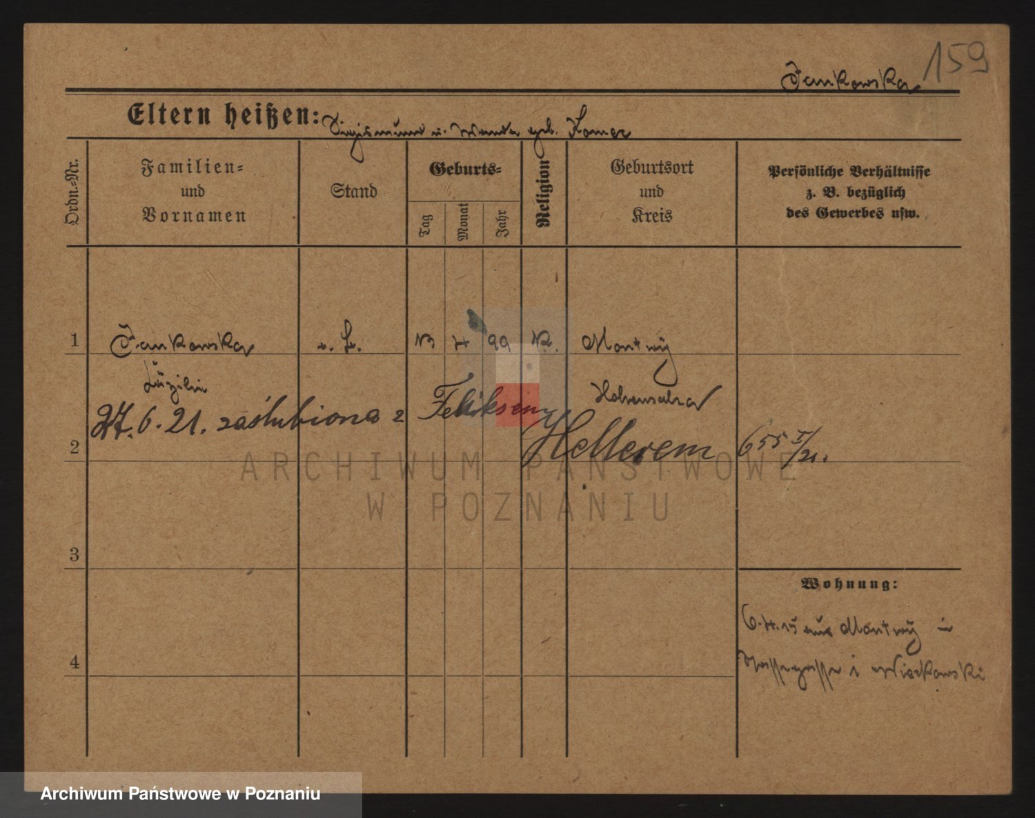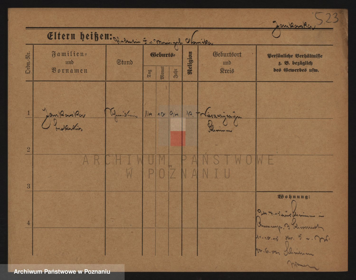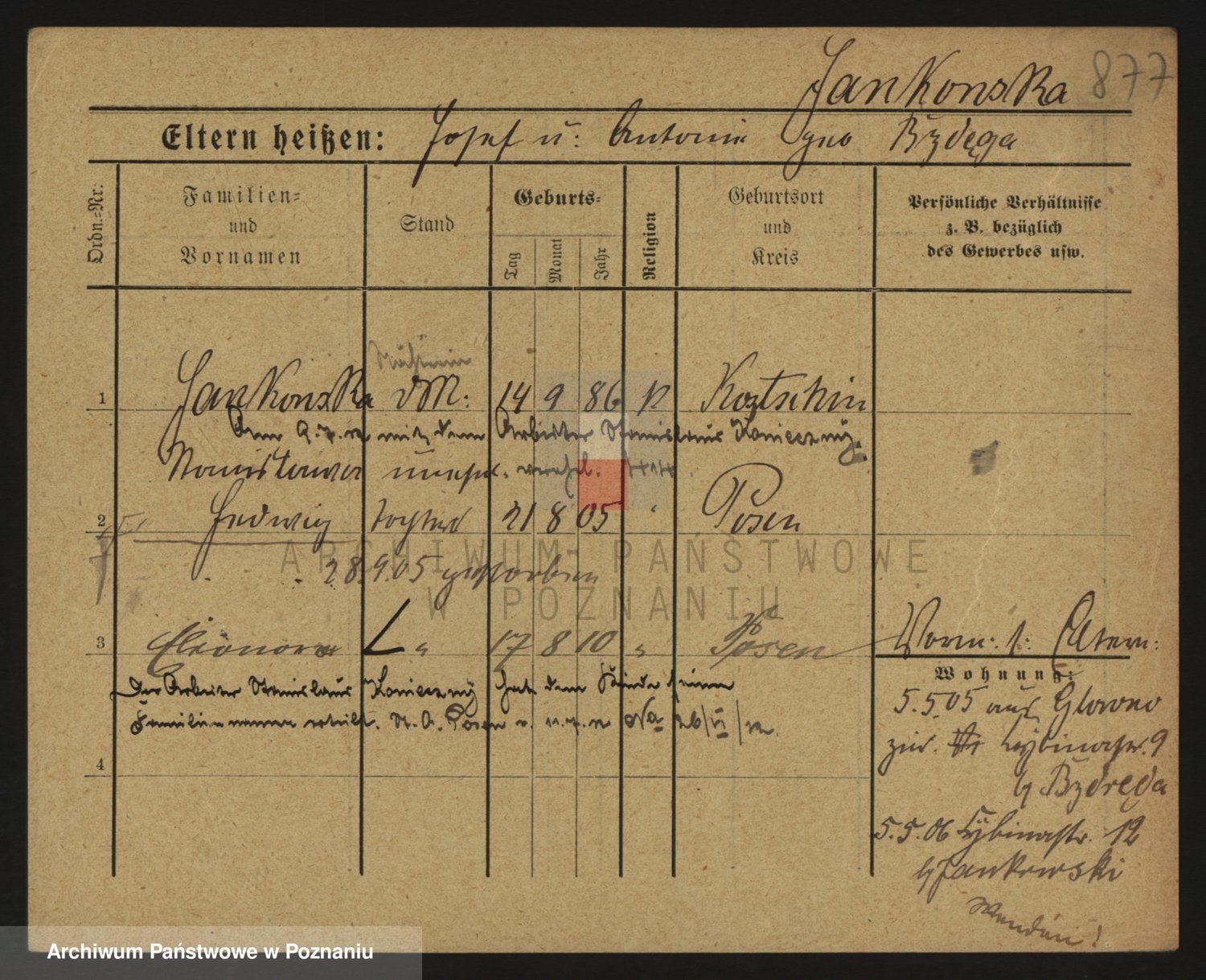 Podgląd karty osobowej dostępny jest po kliknięciu na nazwisko lub ikonkę karty. Można dokonywać powiększenia (ikony na górze) lub przechodzić między kolejnymi skanami (strzałki po bokach).