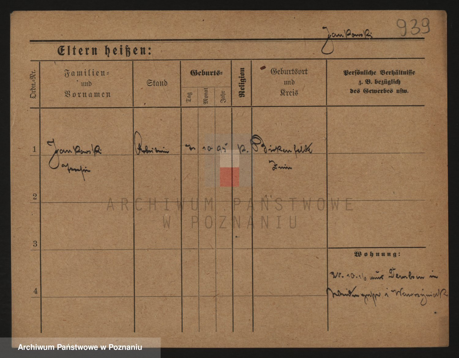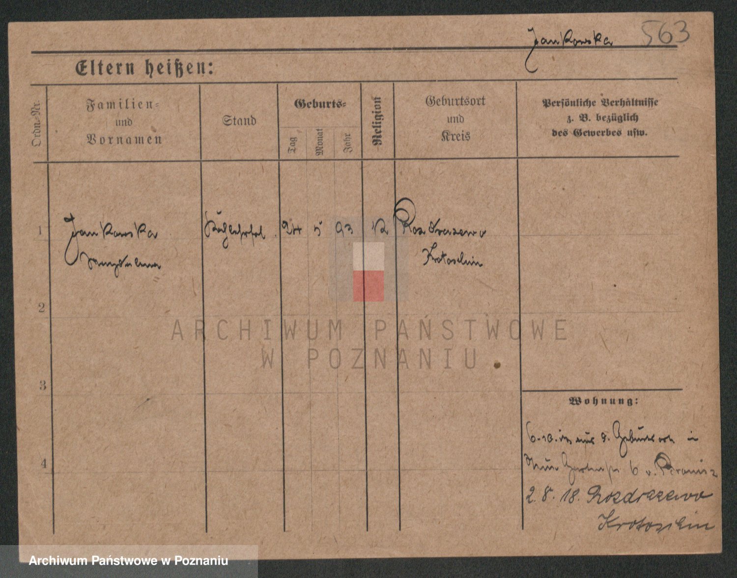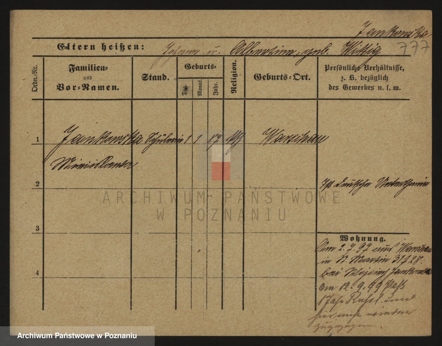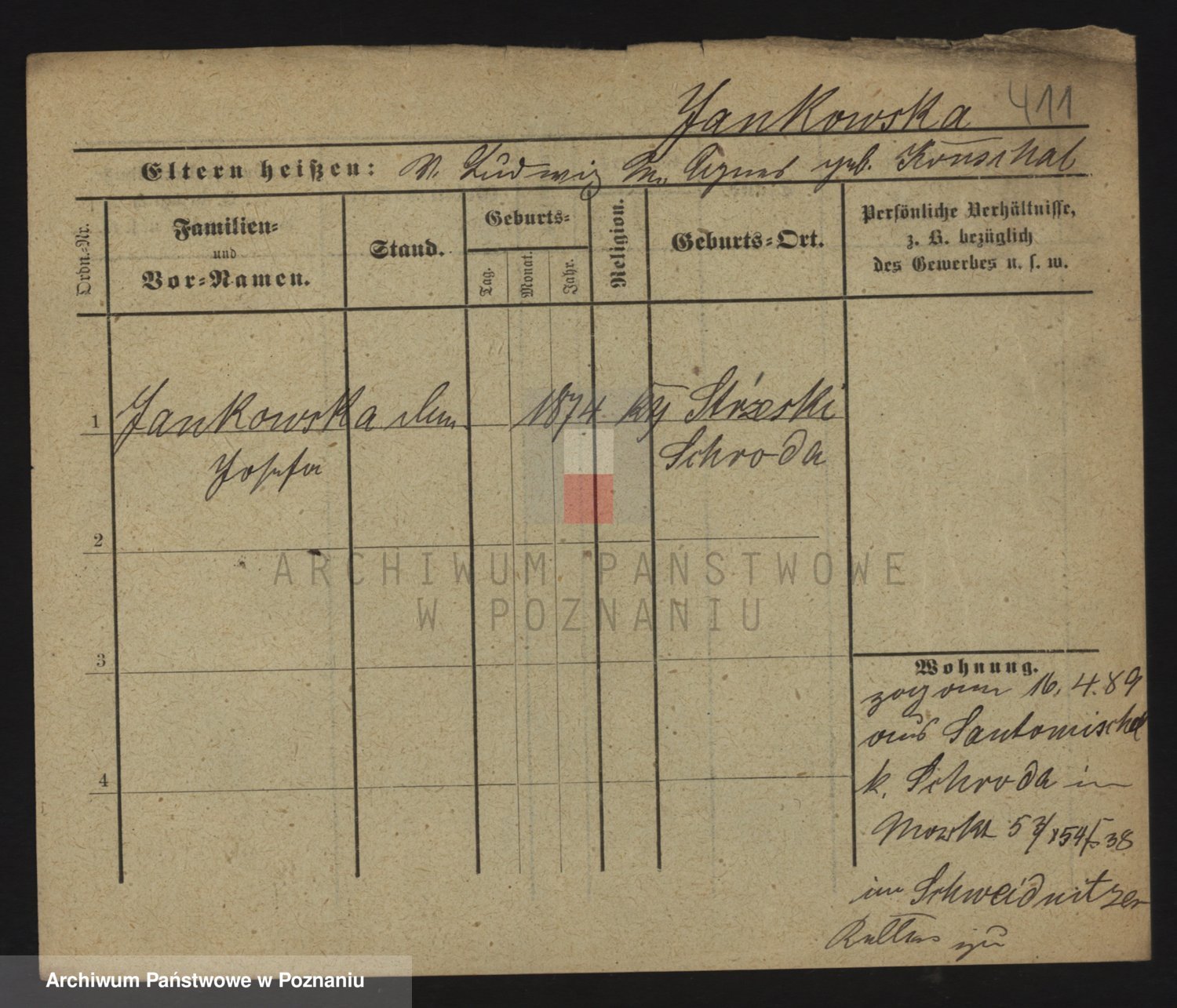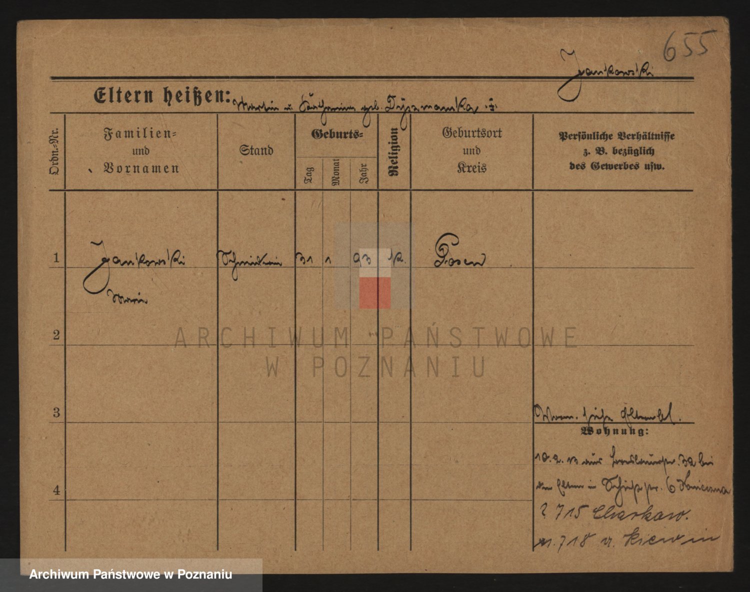 Podgląd karty osobowej dostępny jest po kliknięciu na nazwisko lub ikonkę karty. Można dokonywać powiększenia (ikony na górze) lub przechodzić między kolejnymi skanami (strzałki po bokach).