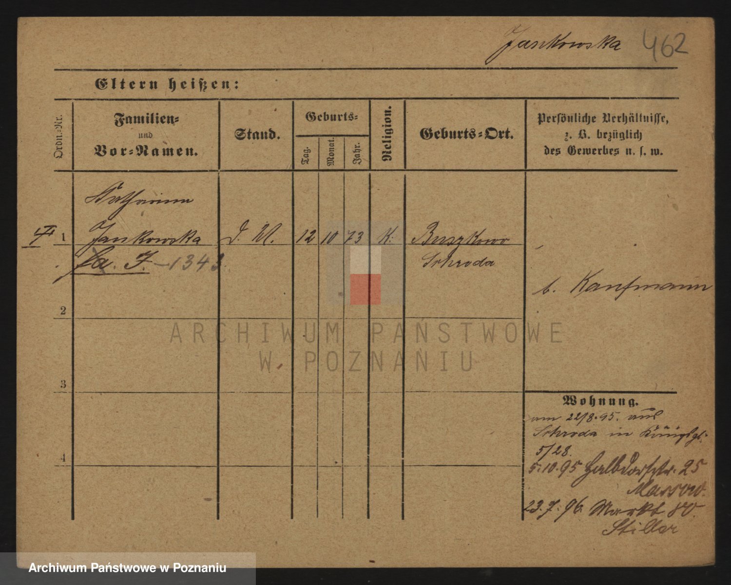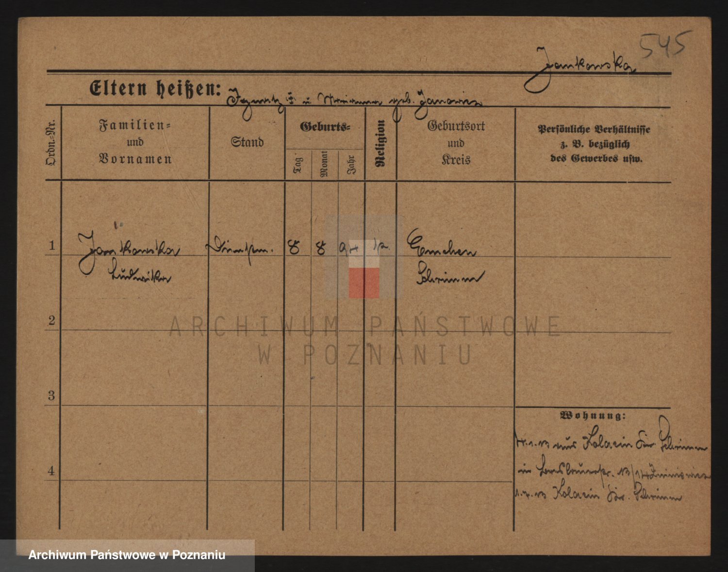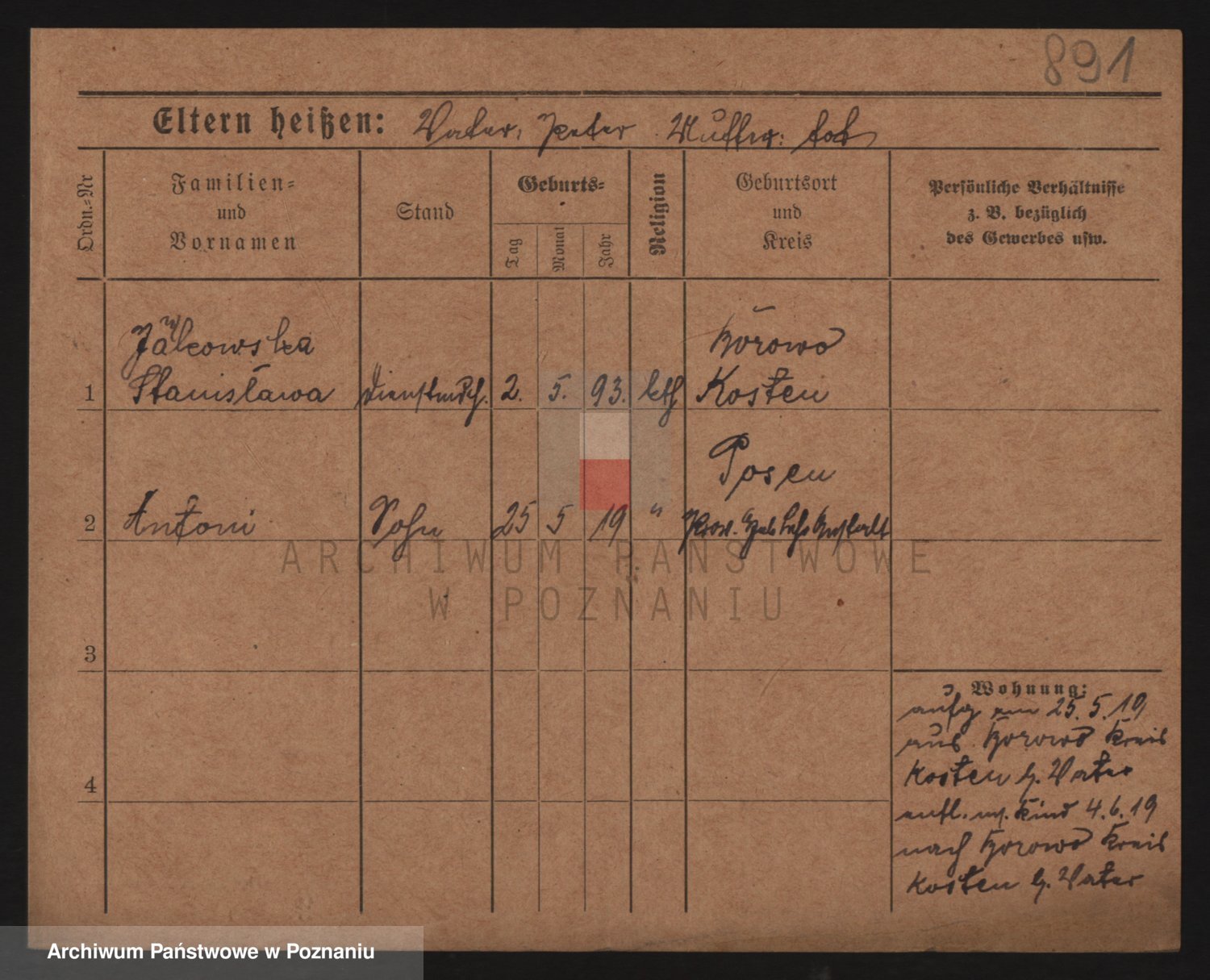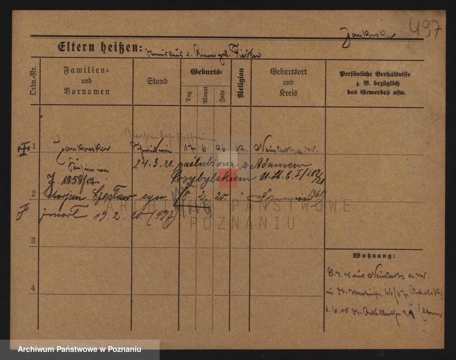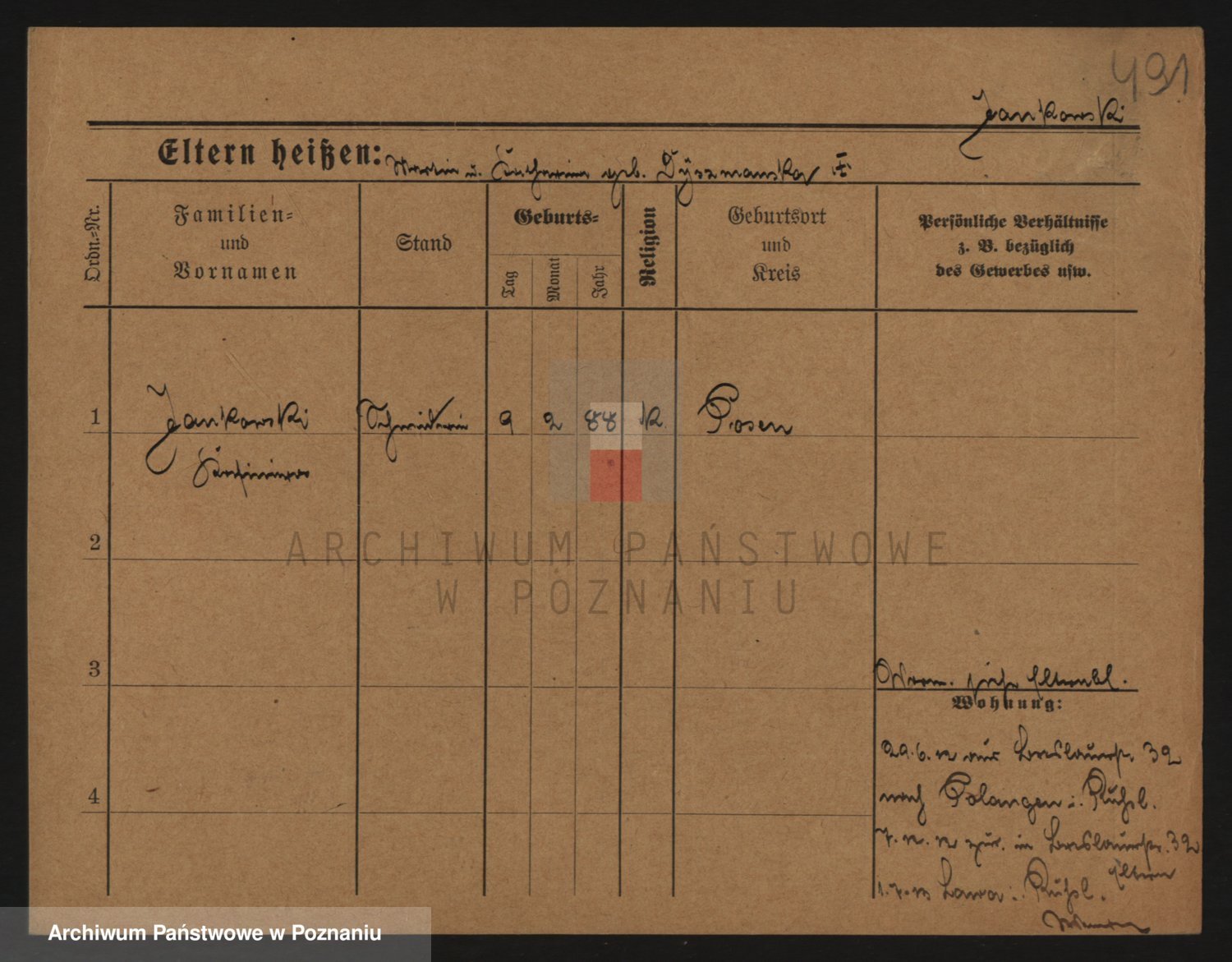 Podgląd karty osobowej dostępny jest po kliknięciu na nazwisko lub ikonkę karty. Można dokonywać powiększenia (ikony na górze) lub przechodzić między kolejnymi skanami (strzałki po bokach).