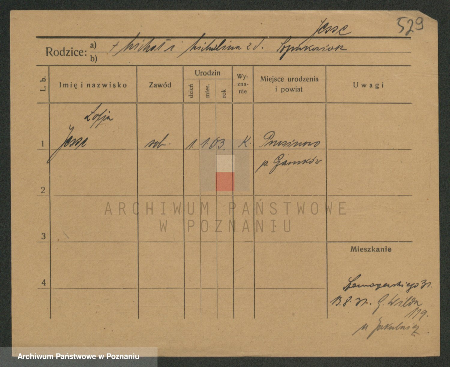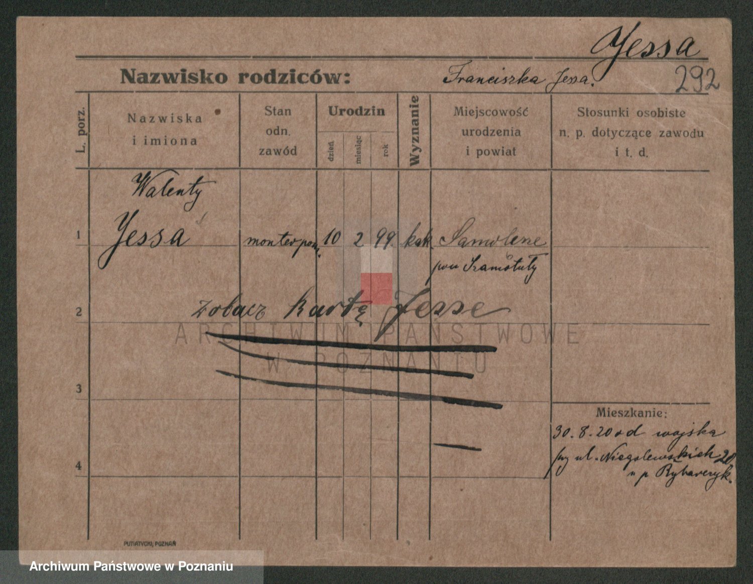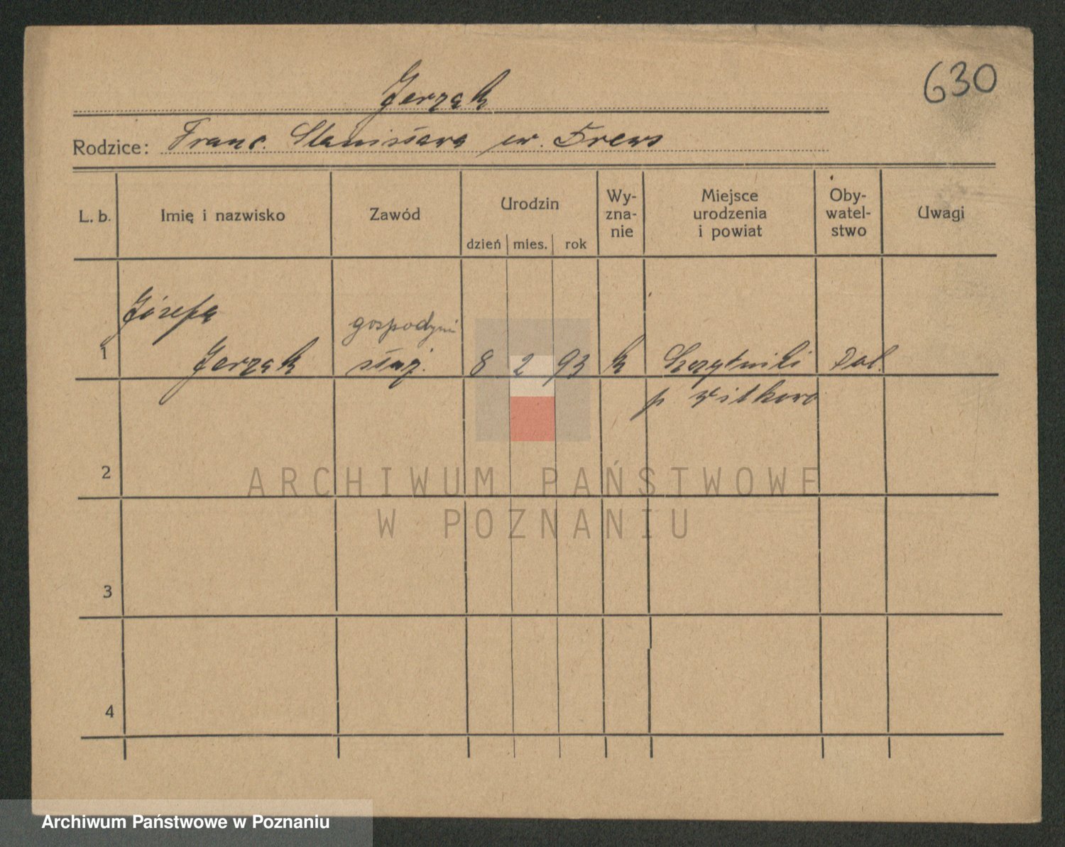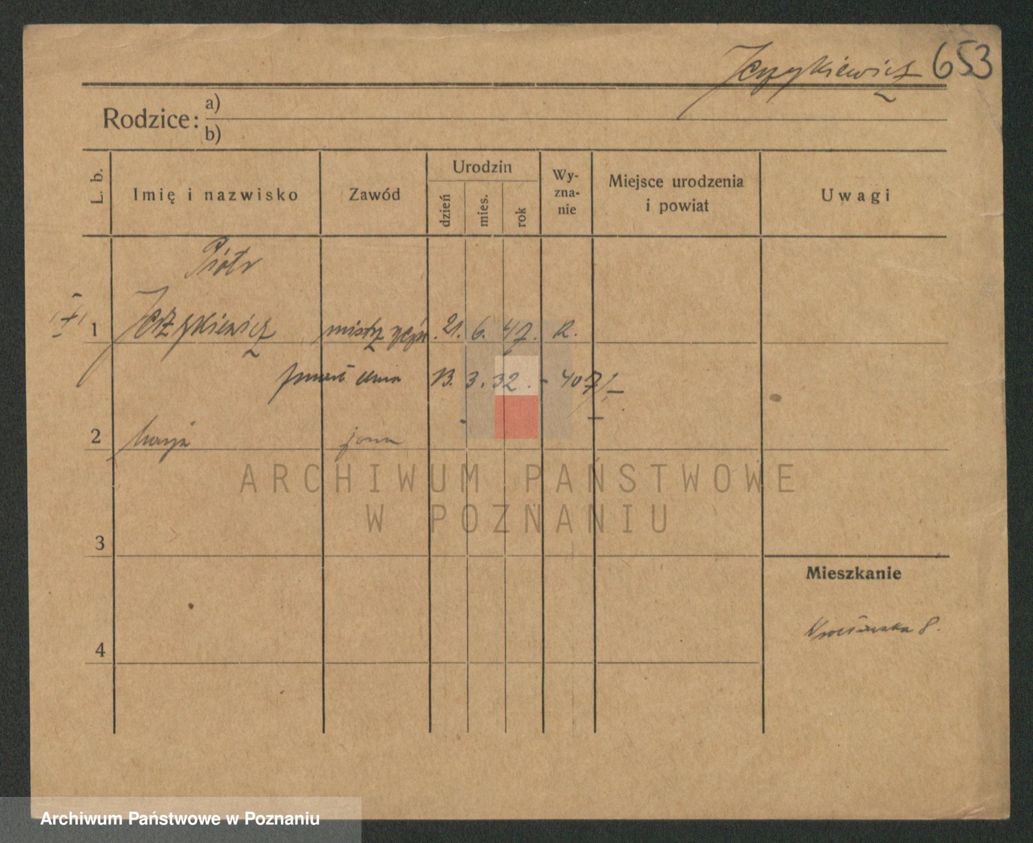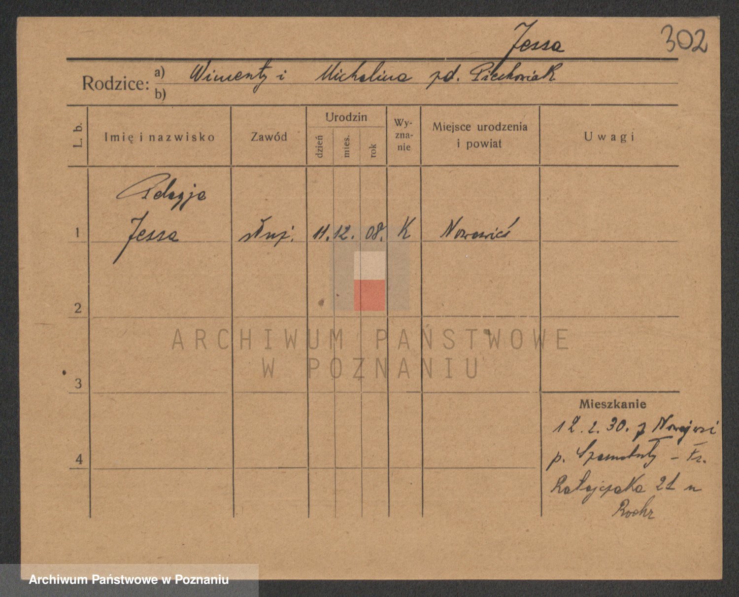 Podgląd karty osobowej dostępny jest po kliknięciu na nazwisko lub ikonkę karty. Można dokonywać powiększenia (ikony na górze) lub przechodzić między kolejnymi skanami (strzałki po bokach).