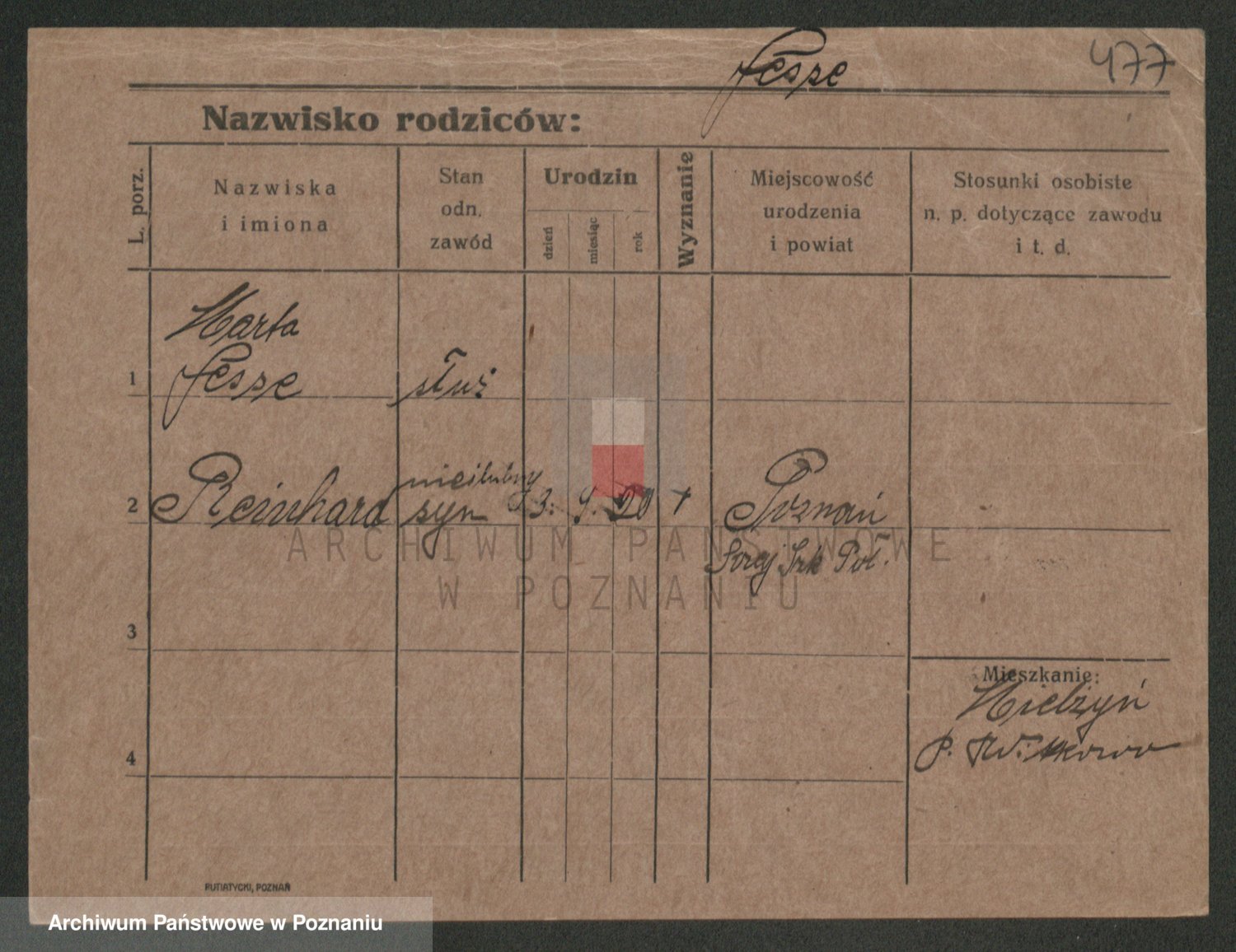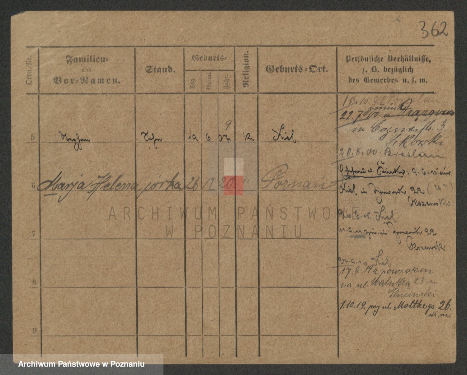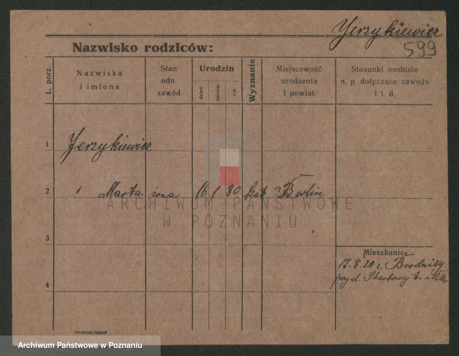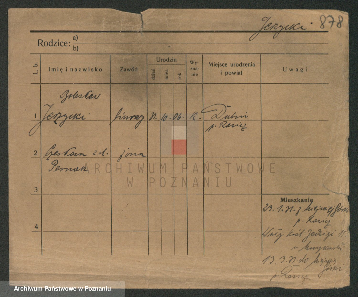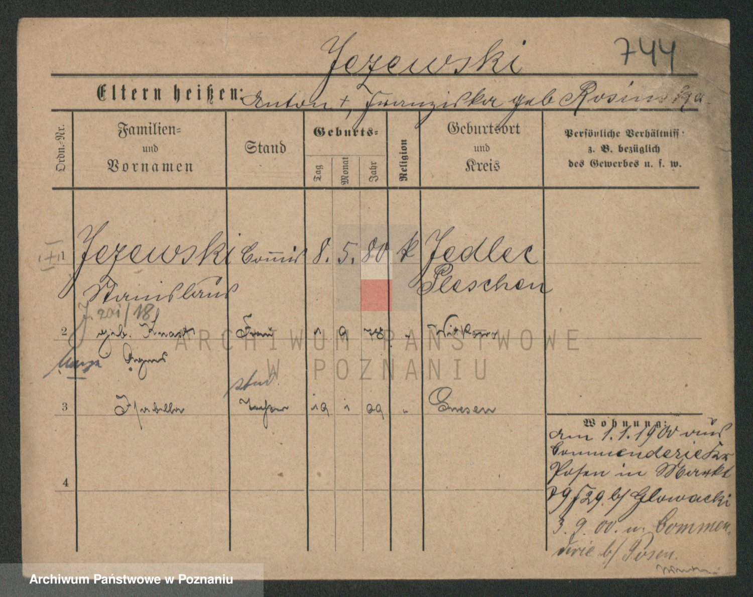 Podgląd karty osobowej dostępny jest po kliknięciu na nazwisko lub ikonkę karty. Można dokonywać powiększenia (ikony na górze) lub przechodzić między kolejnymi skanami (strzałki po bokach).