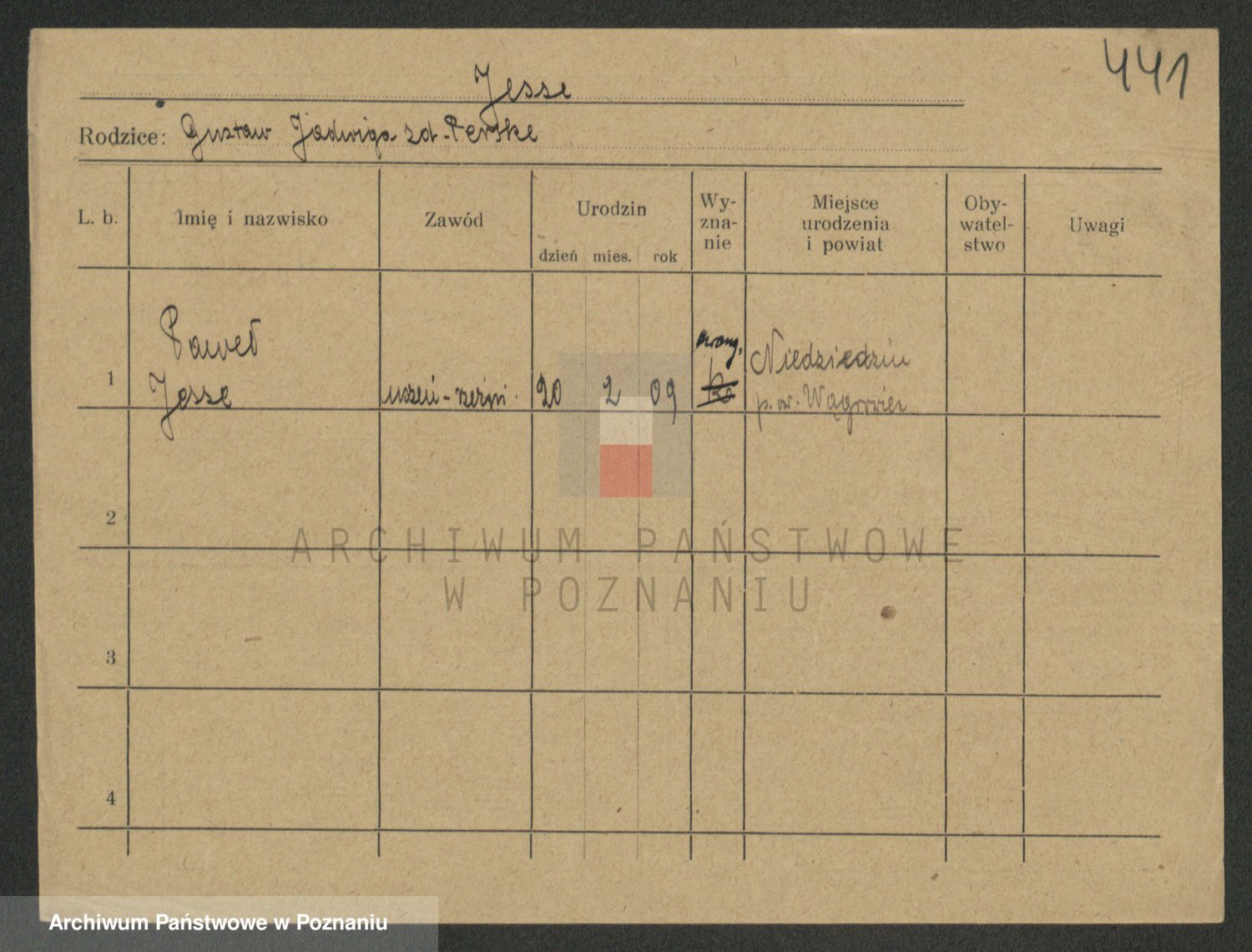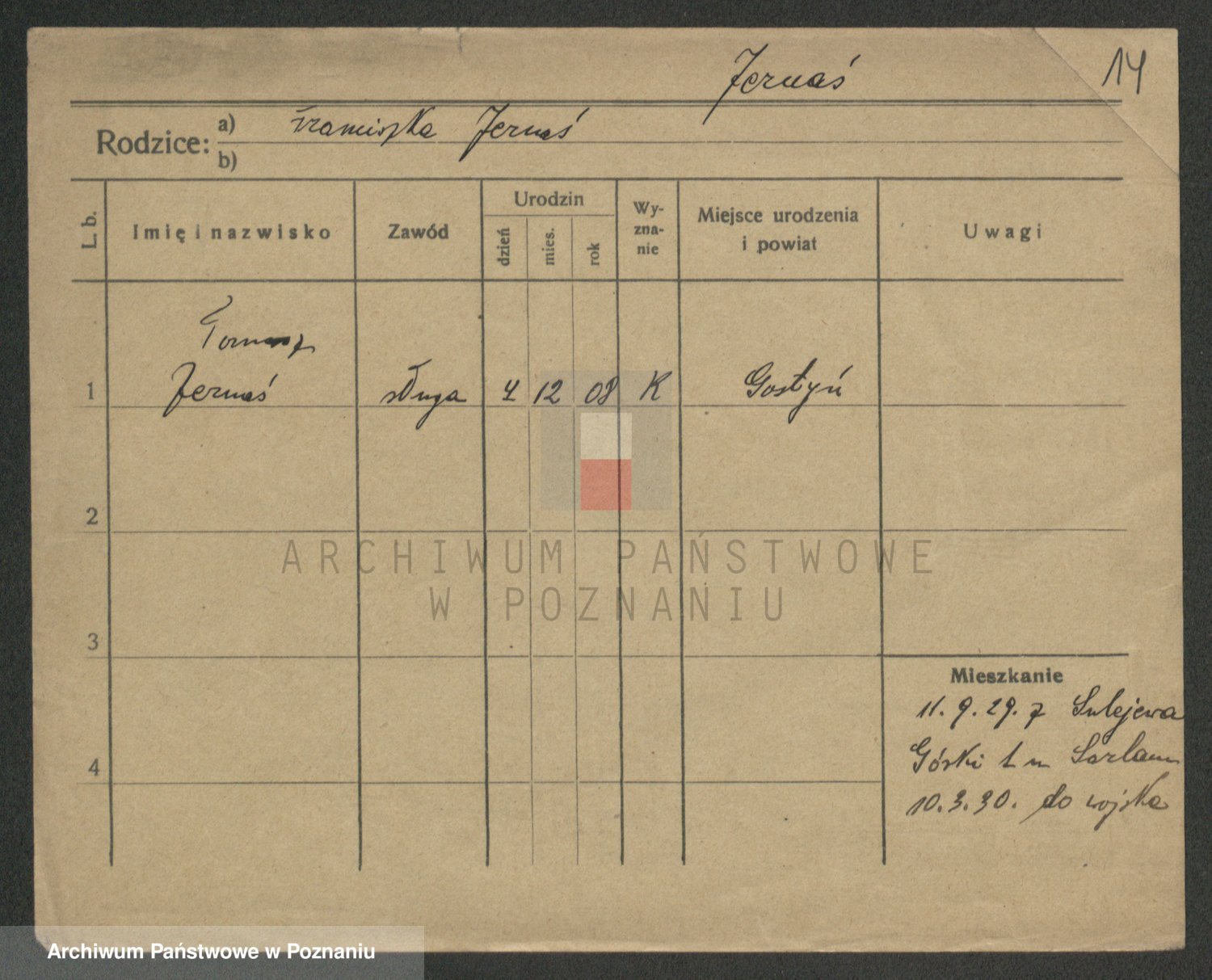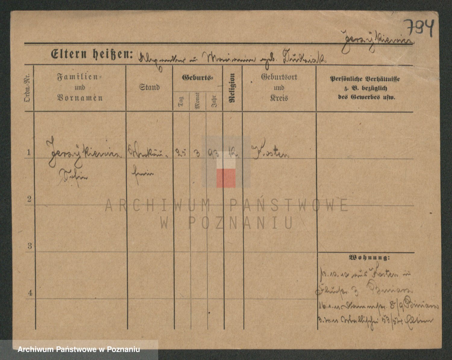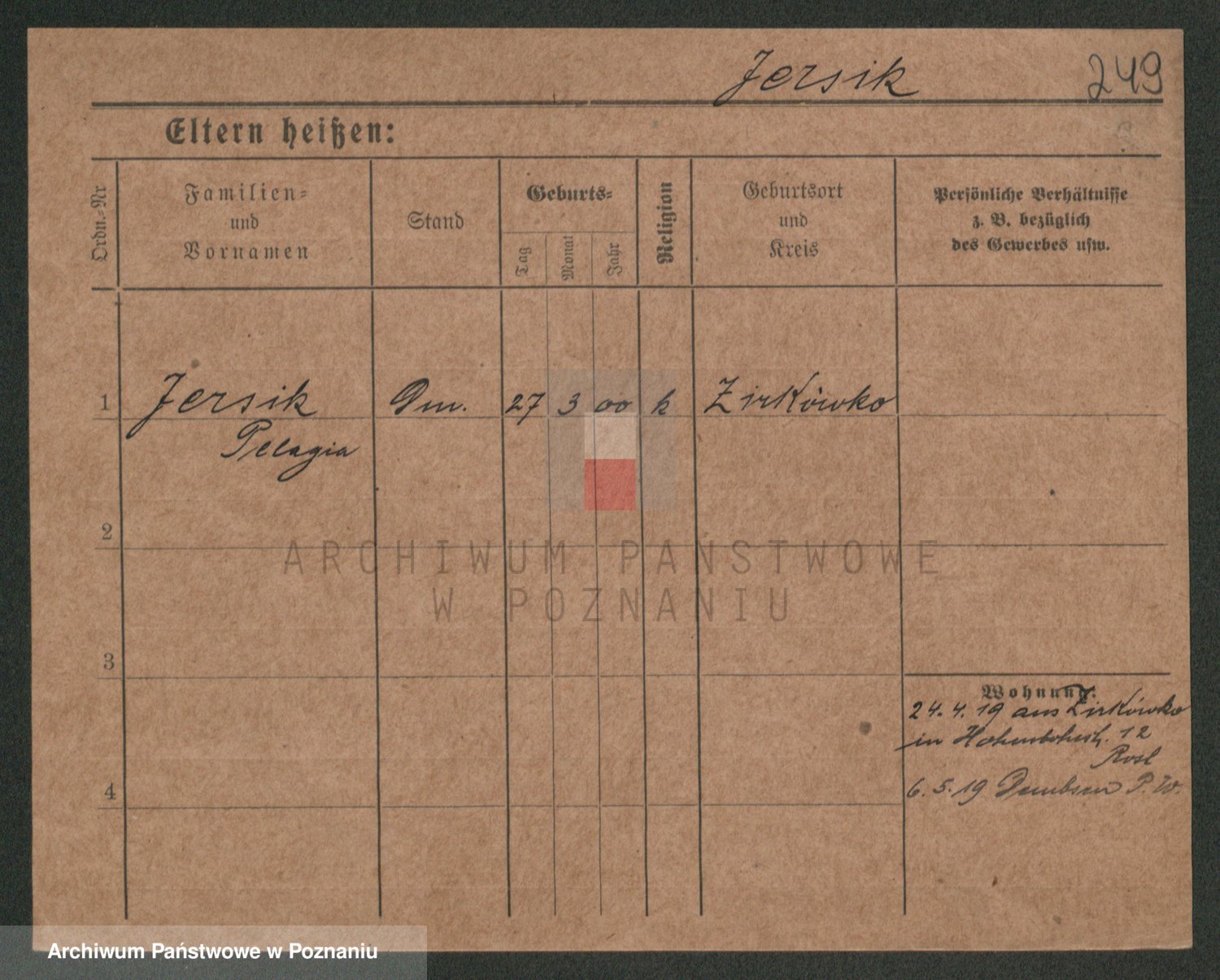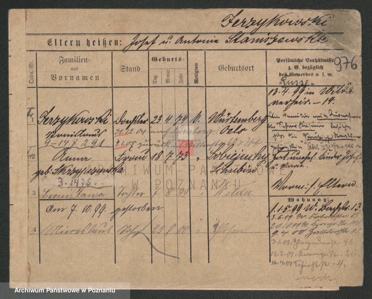 Podgląd karty osobowej dostępny jest po kliknięciu na nazwisko lub ikonkę karty. Można dokonywać powiększenia (ikony na górze) lub przechodzić między kolejnymi skanami (strzałki po bokach).