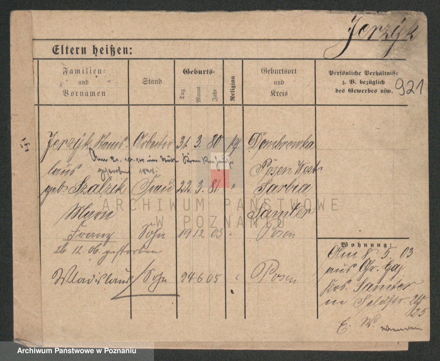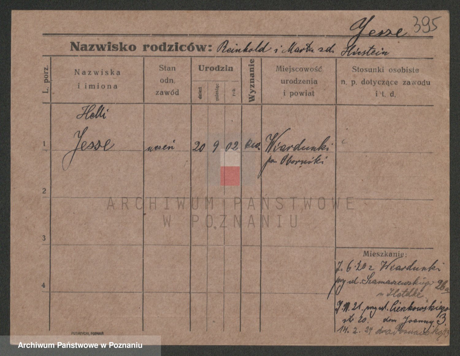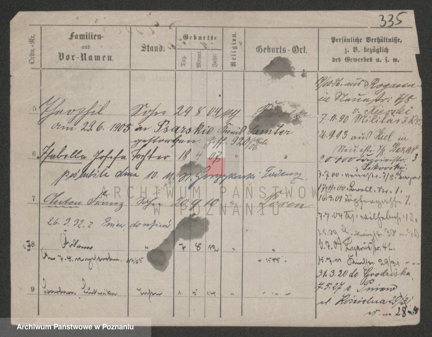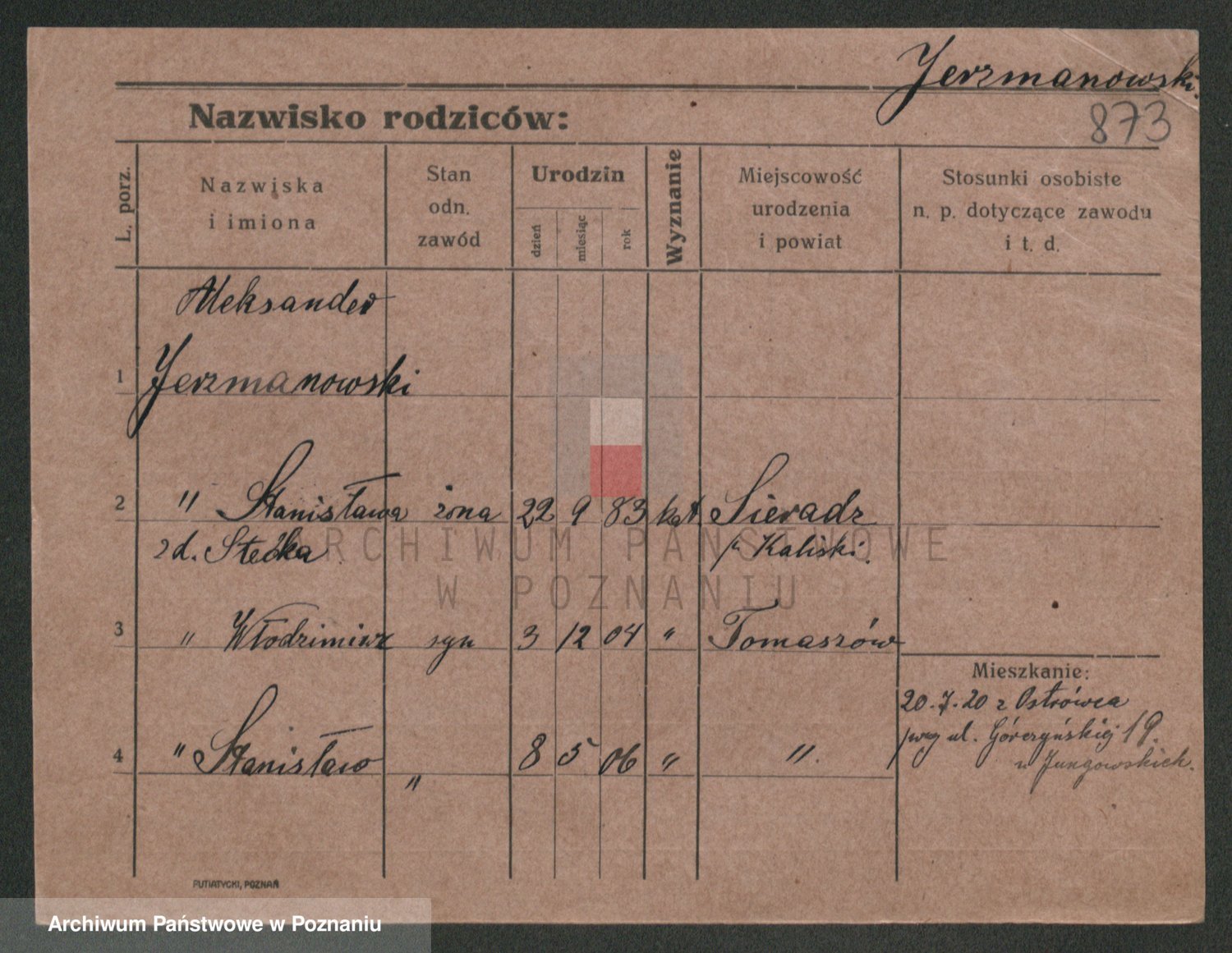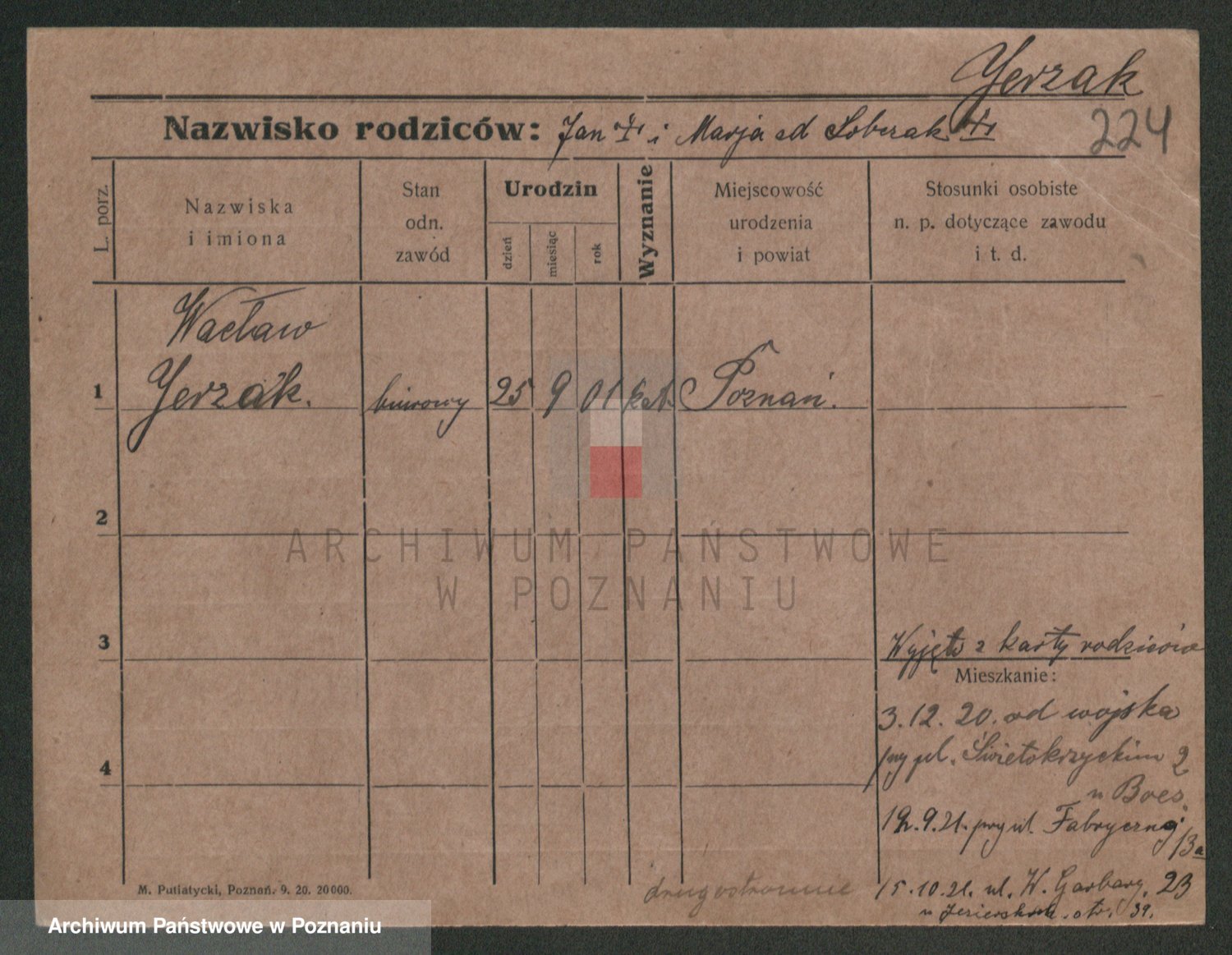 Podgląd karty osobowej dostępny jest po kliknięciu na nazwisko lub ikonkę karty. Można dokonywać powiększenia (ikony na górze) lub przechodzić między kolejnymi skanami (strzałki po bokach).