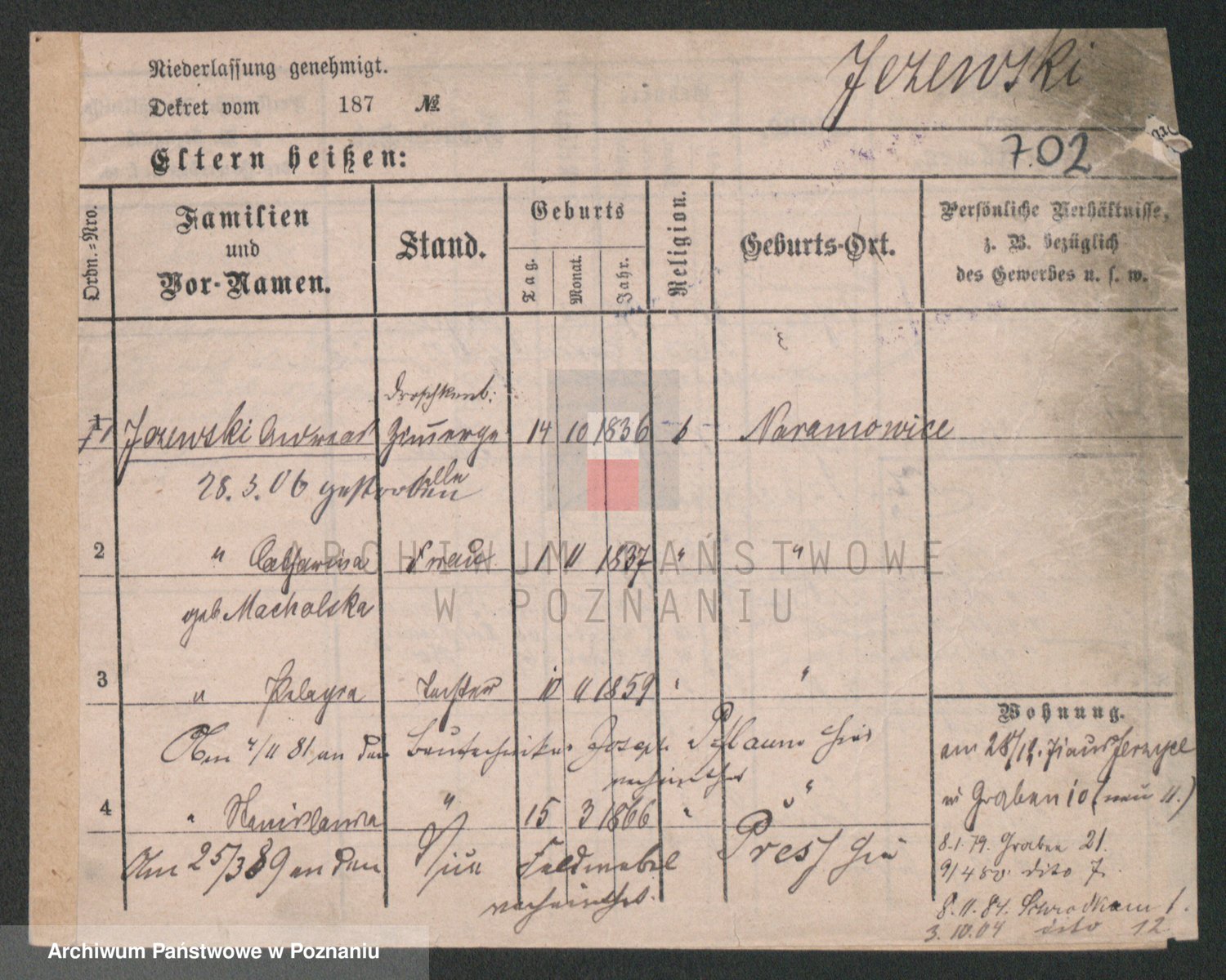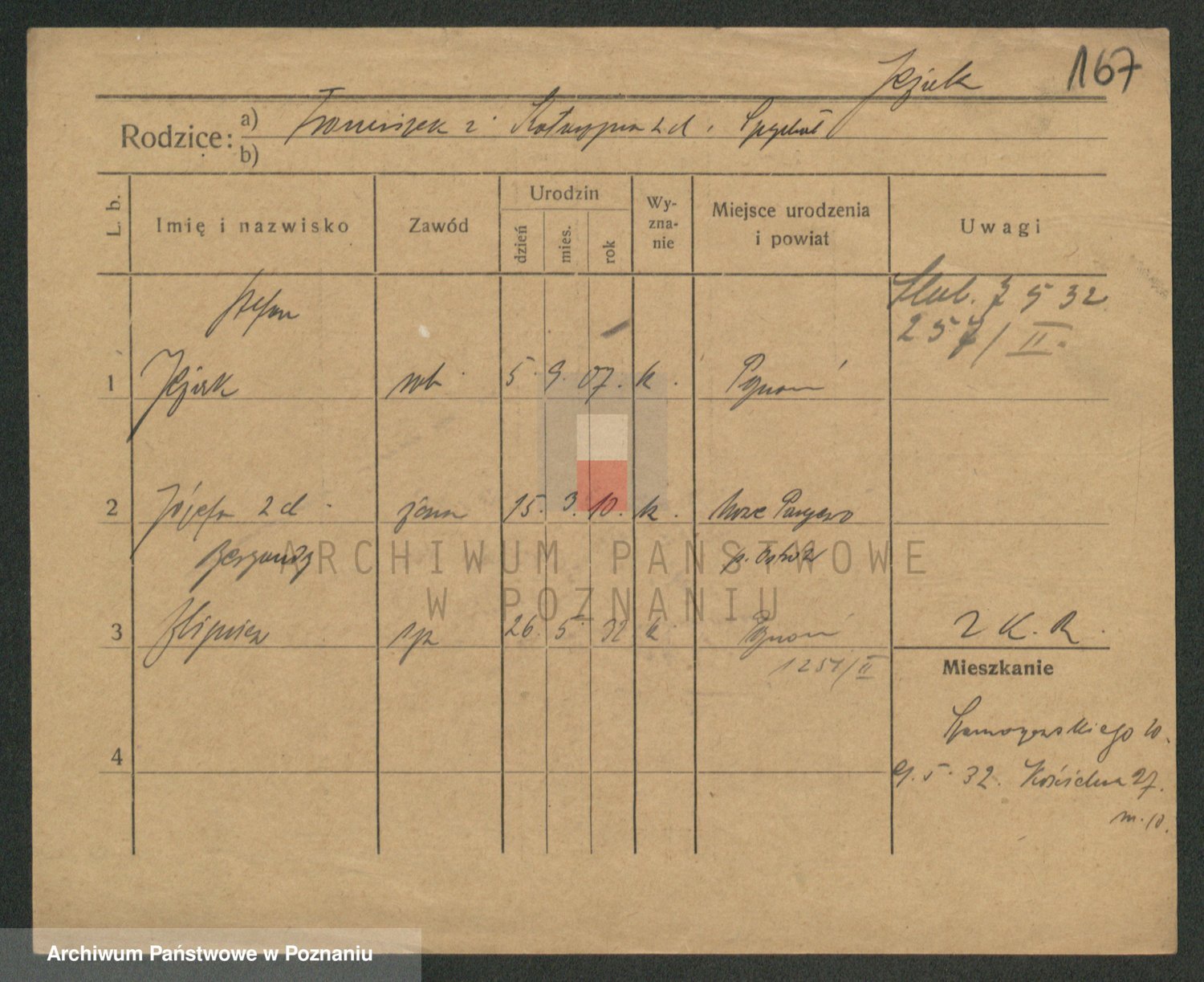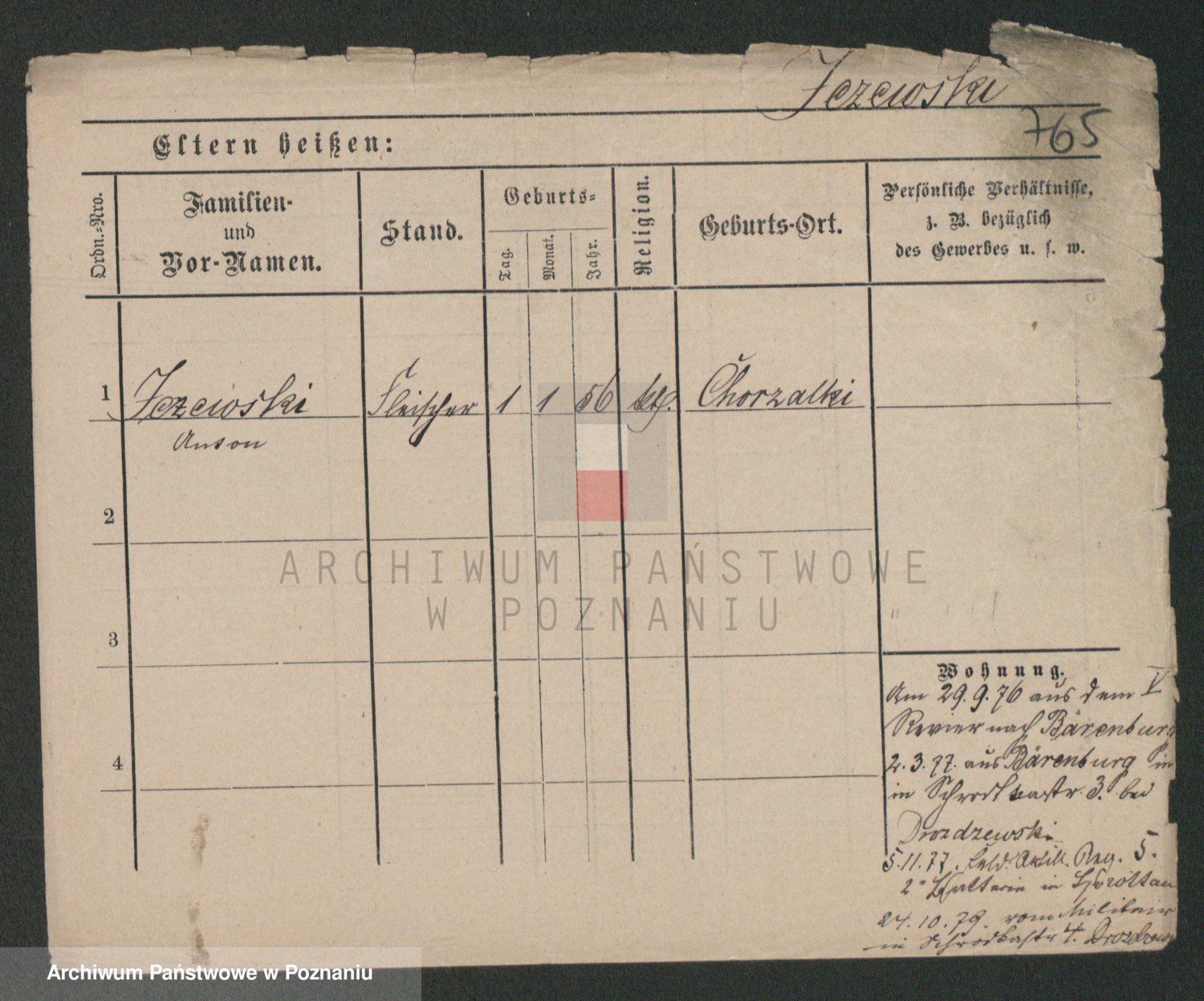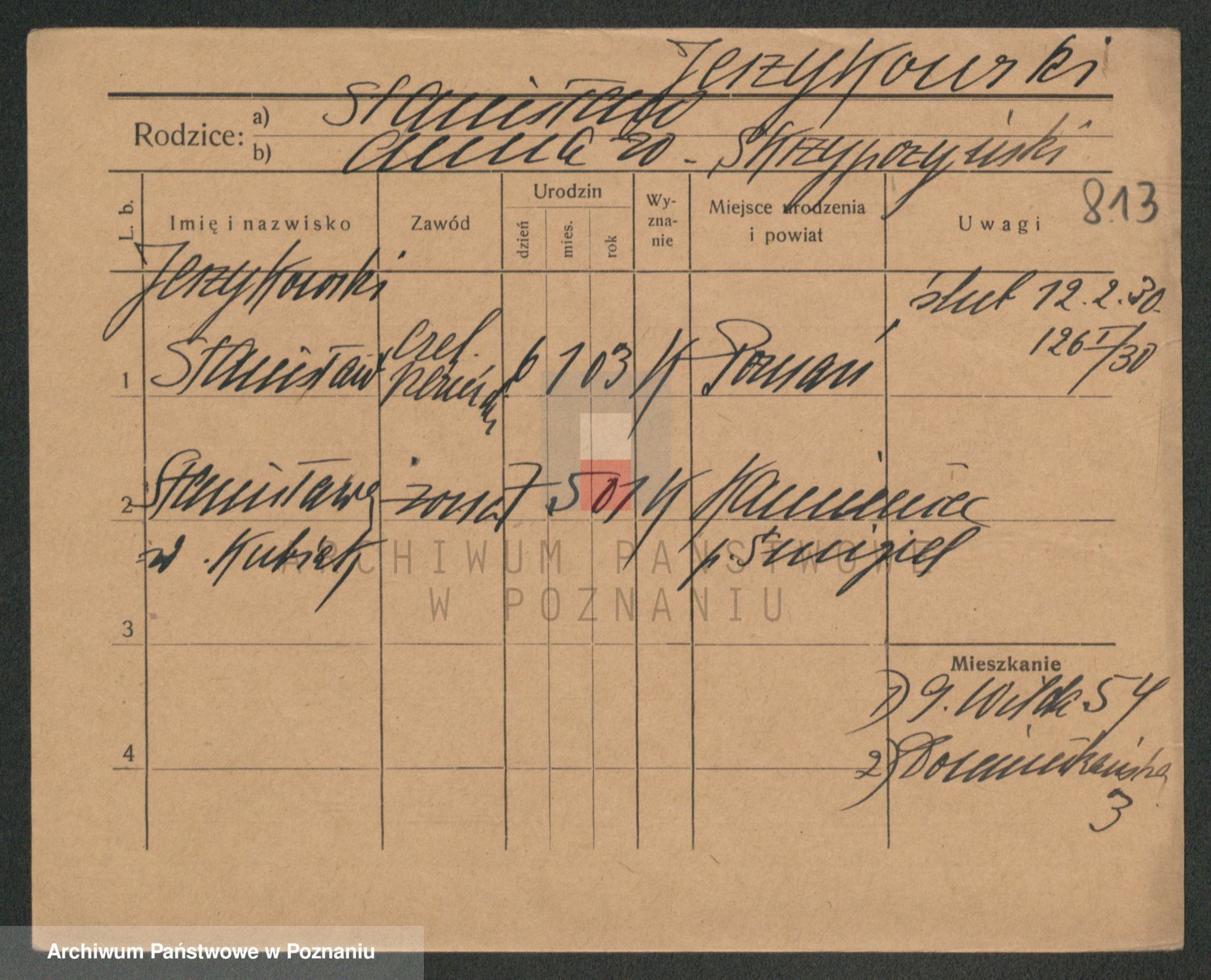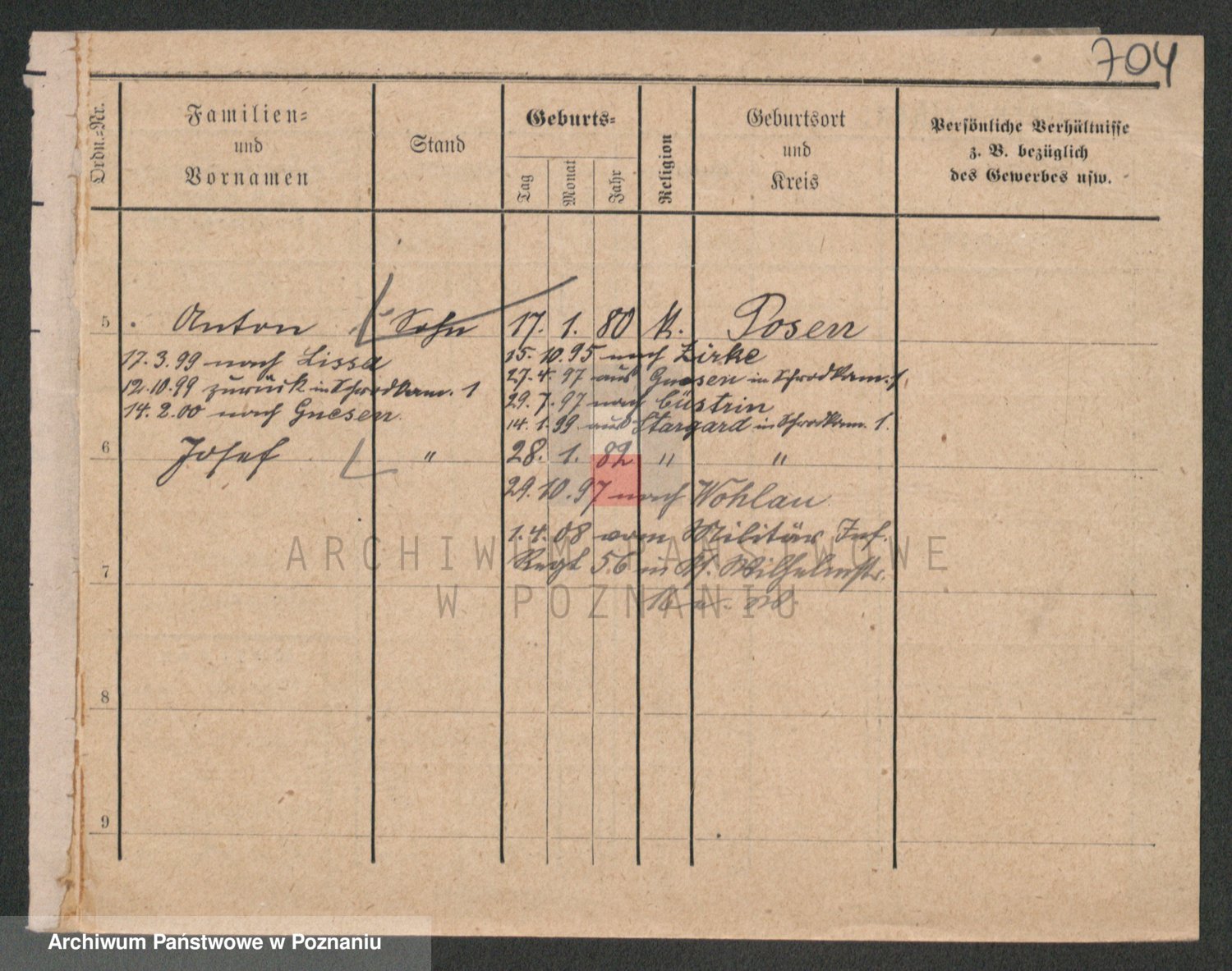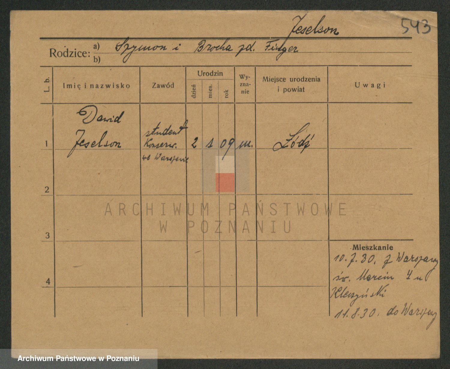 Podgląd karty osobowej dostępny jest po kliknięciu na nazwisko lub ikonkę karty. Można dokonywać powiększenia (ikony na górze) lub przechodzić między kolejnymi skanami (strzałki po bokach).