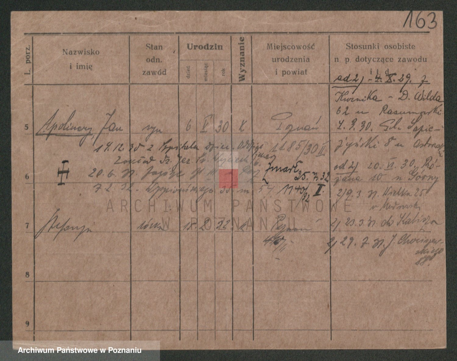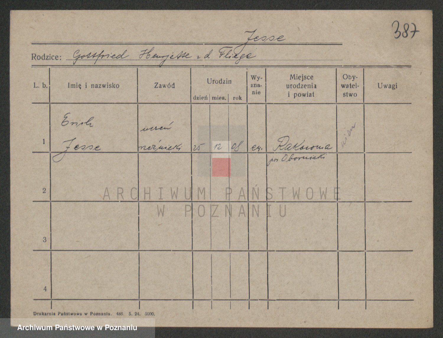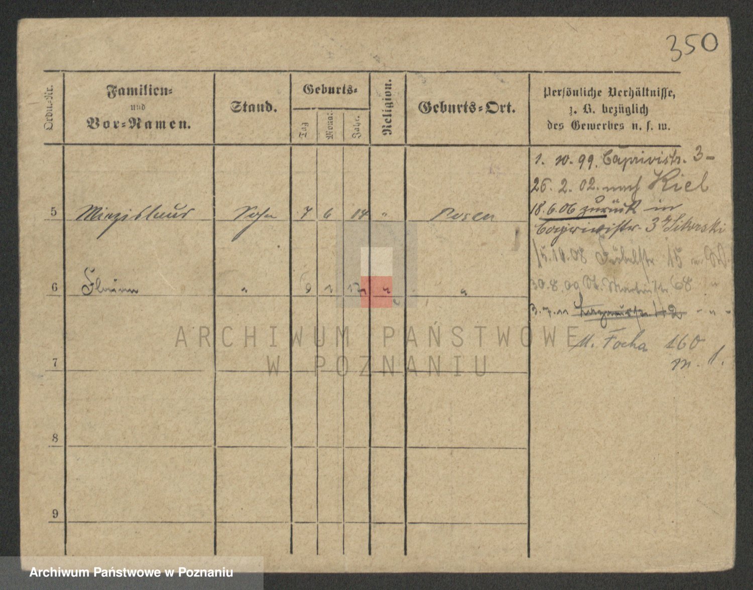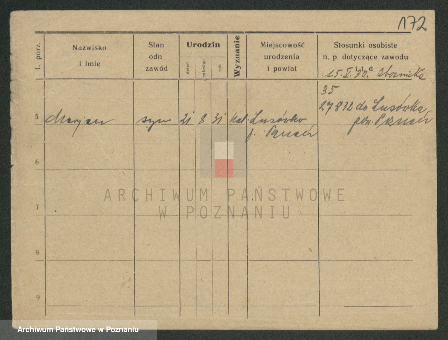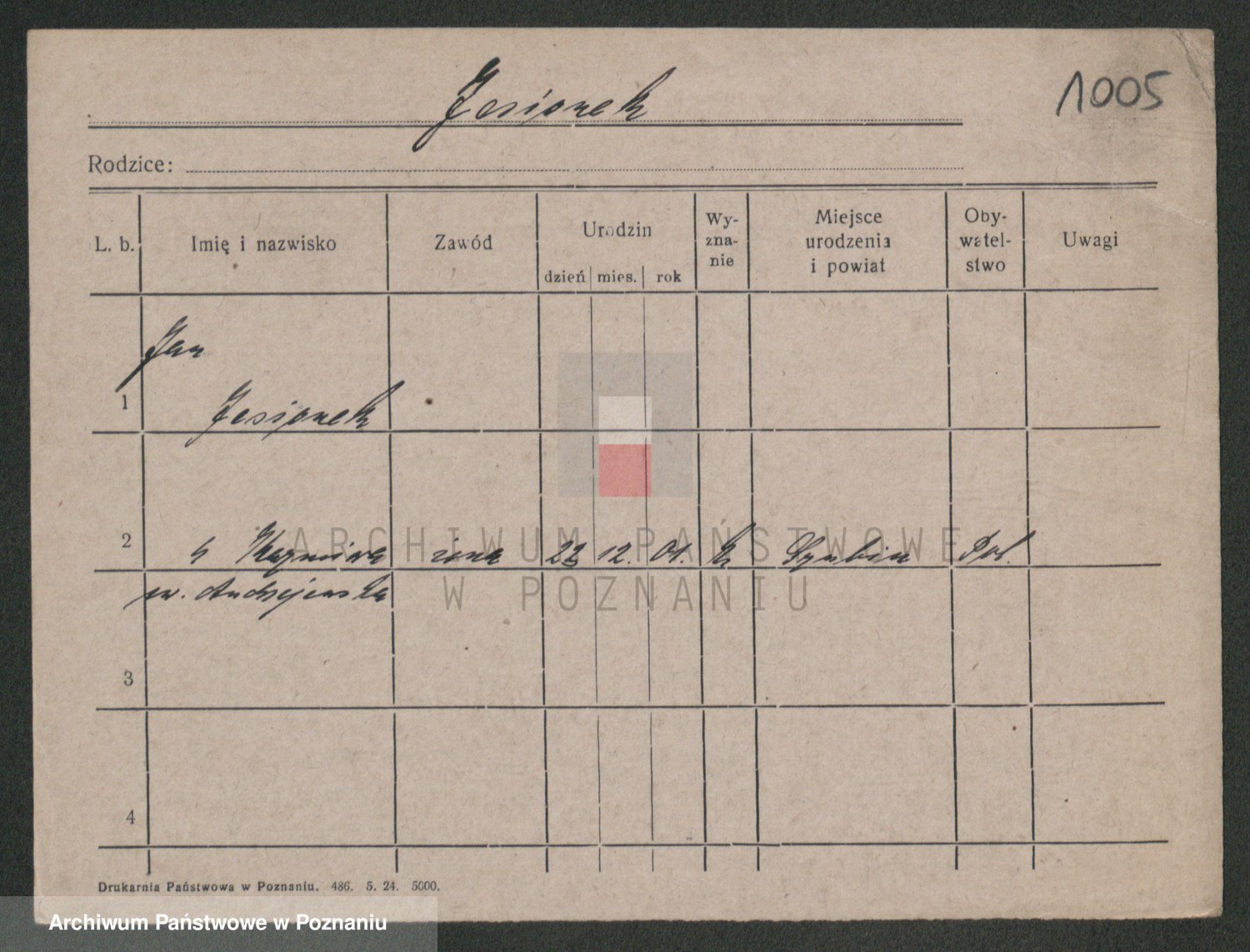 Podgląd karty osobowej dostępny jest po kliknięciu na nazwisko lub ikonkę karty. Można dokonywać powiększenia (ikony na górze) lub przechodzić między kolejnymi skanami (strzałki po bokach).