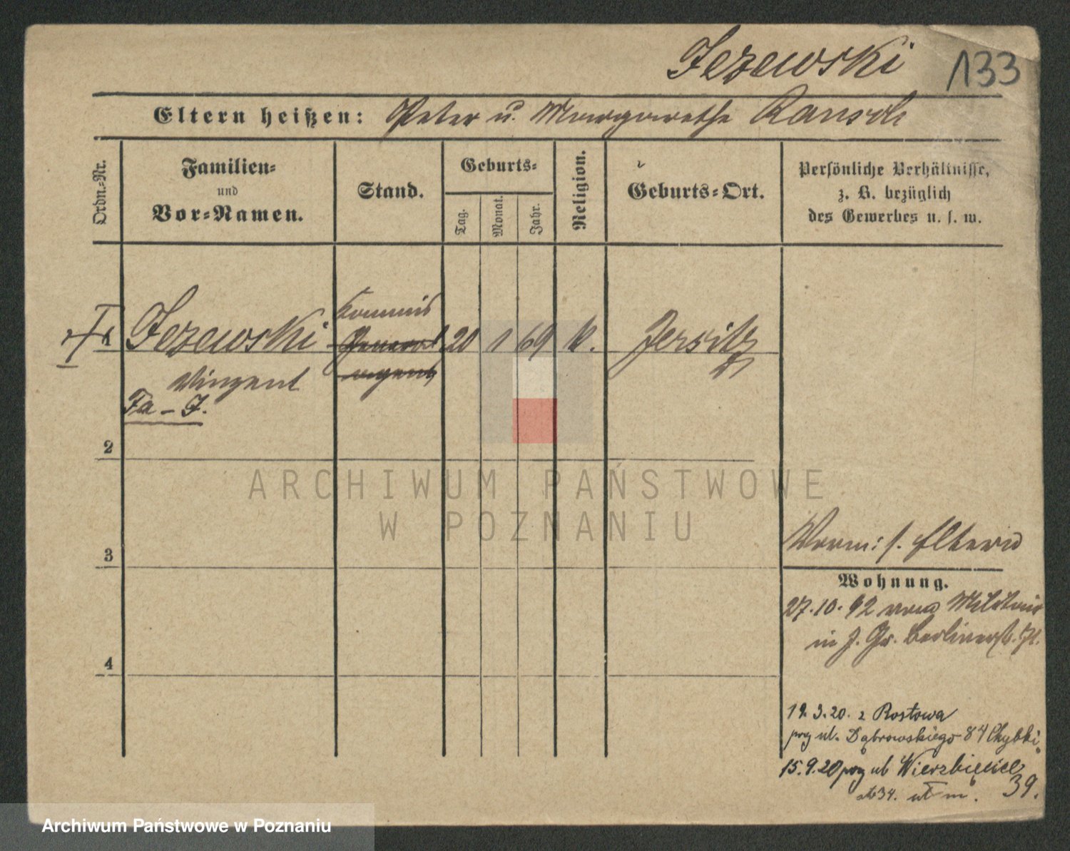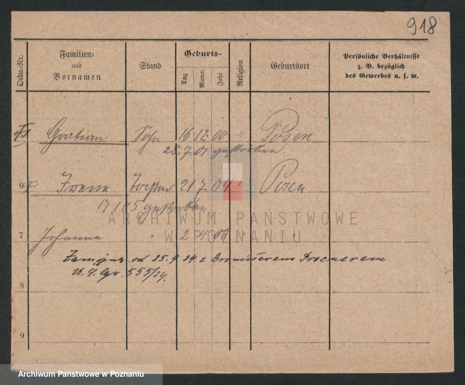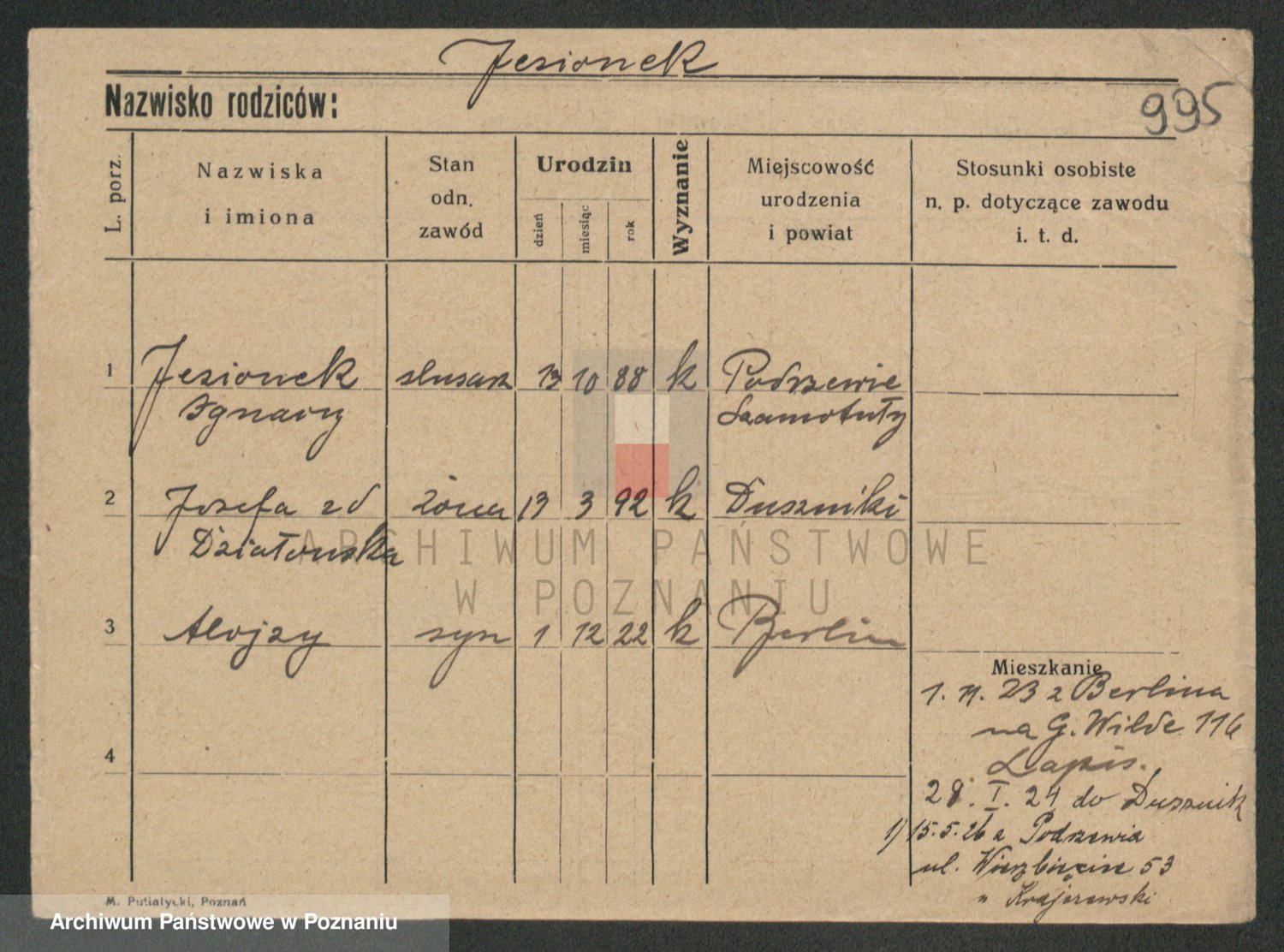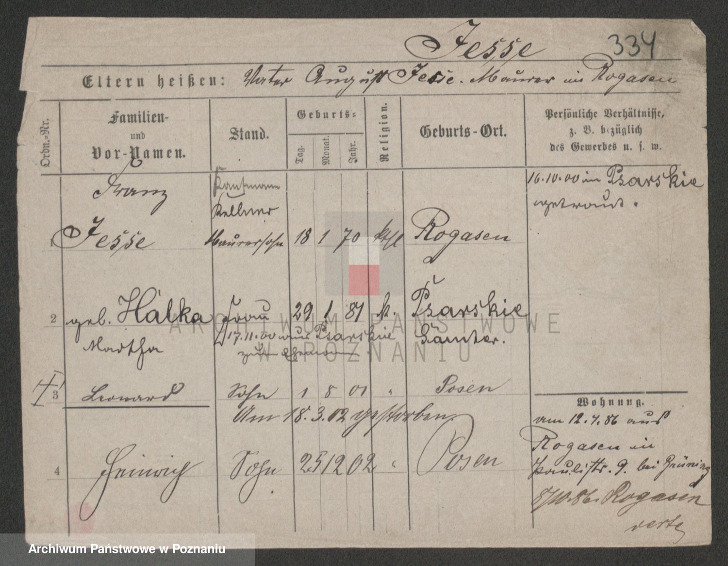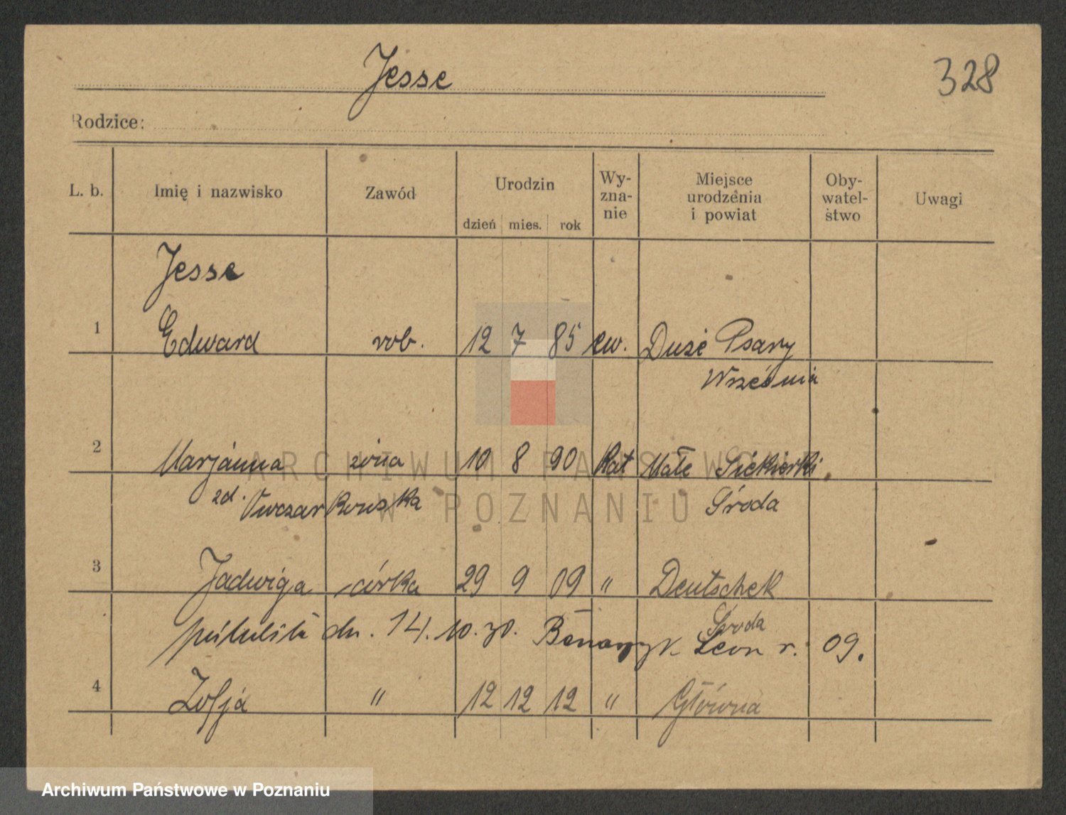 Podgląd karty osobowej dostępny jest po kliknięciu na nazwisko lub ikonkę karty. Można dokonywać powiększenia (ikony na górze) lub przechodzić między kolejnymi skanami (strzałki po bokach).