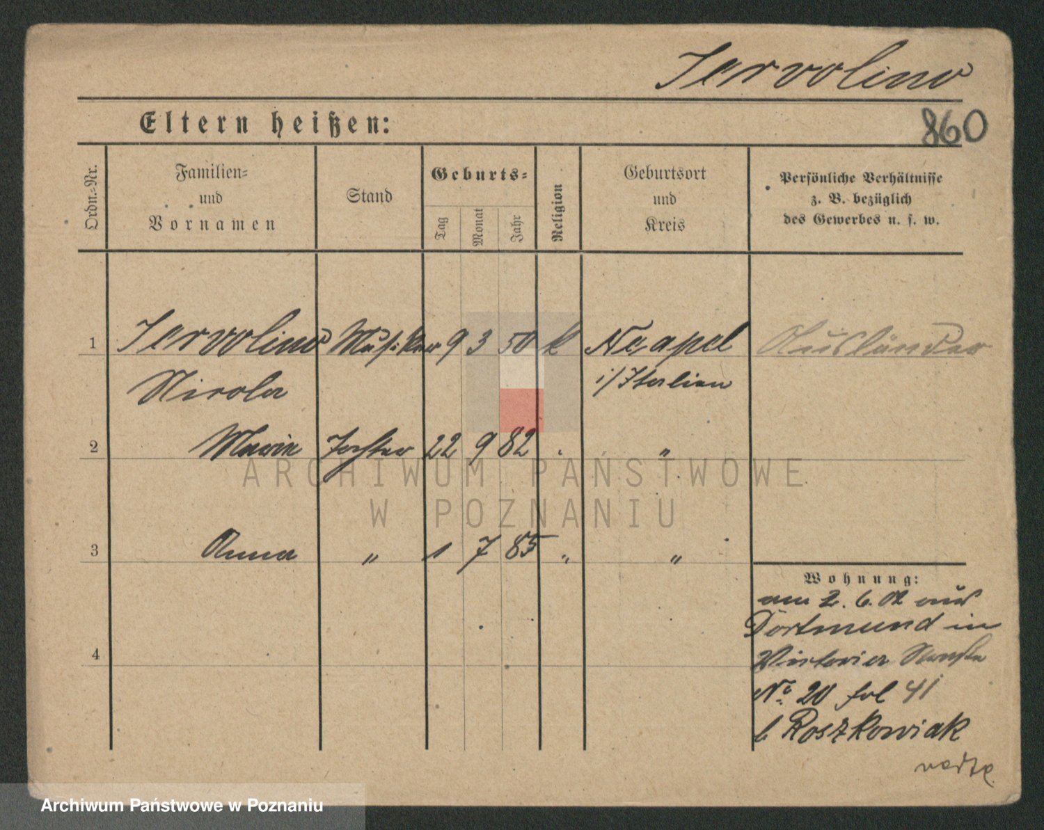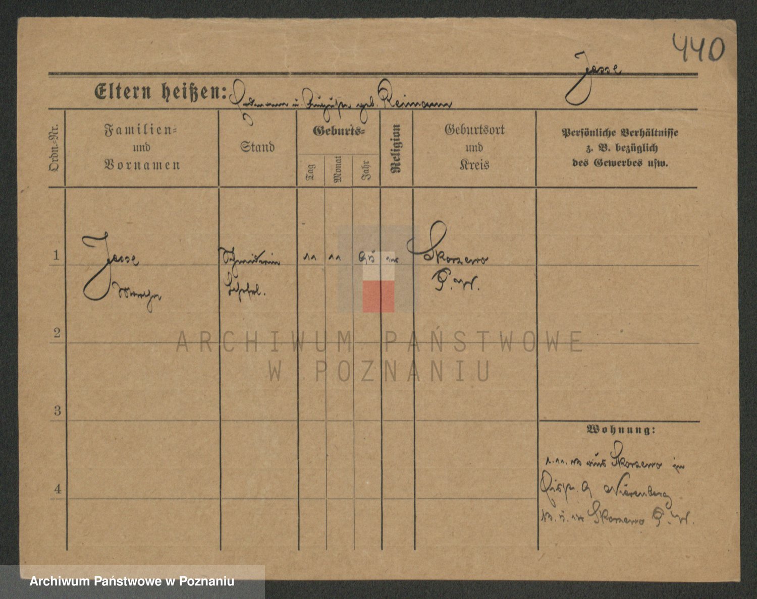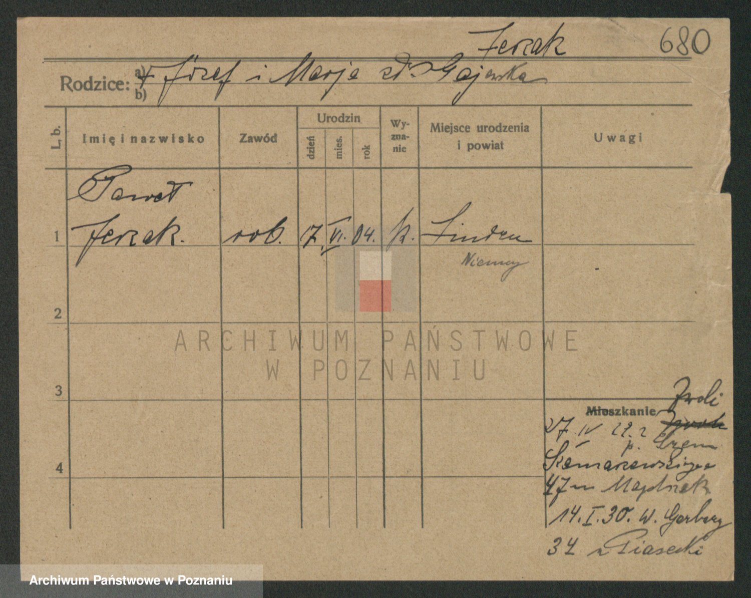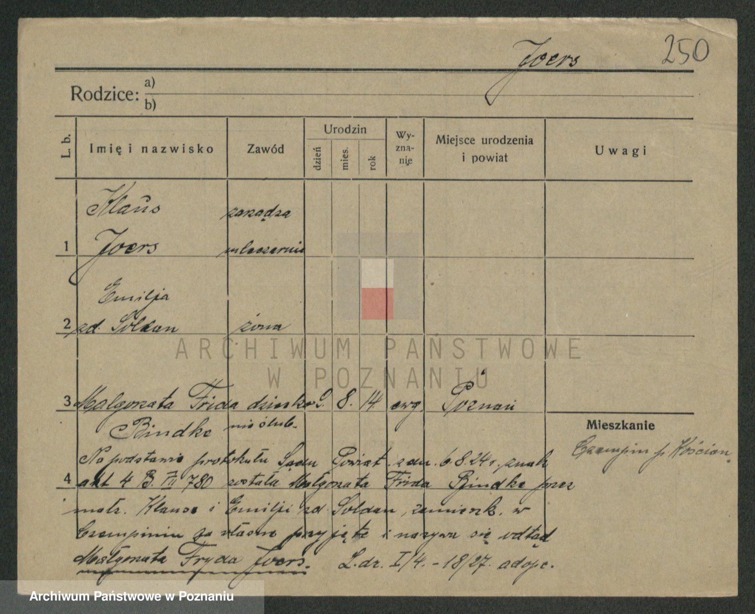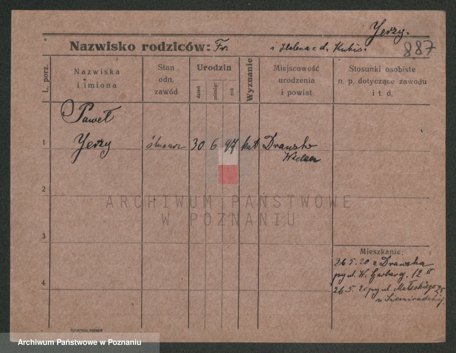 Podgląd karty osobowej dostępny jest po kliknięciu na nazwisko lub ikonkę karty. Można dokonywać powiększenia (ikony na górze) lub przechodzić między kolejnymi skanami (strzałki po bokach).