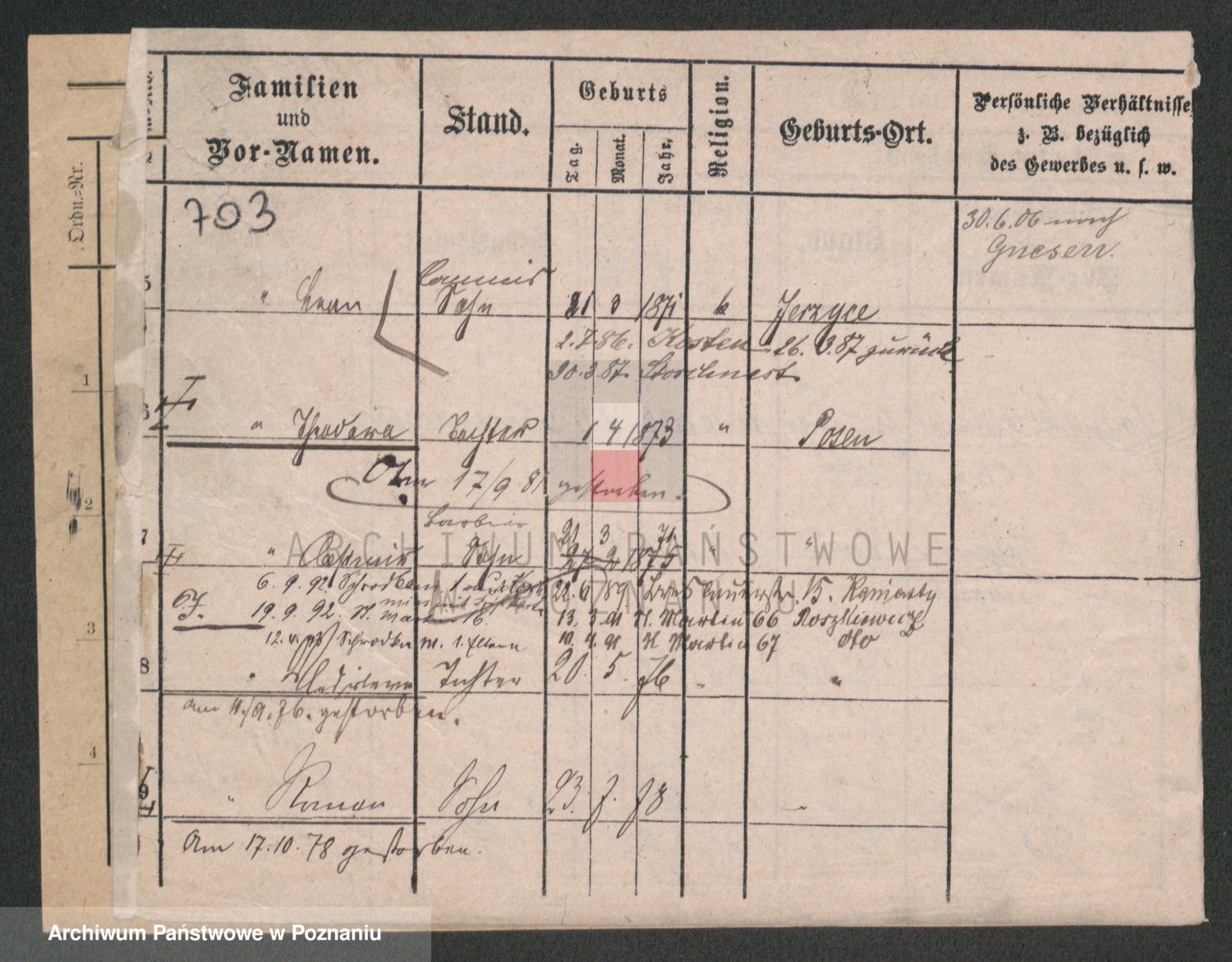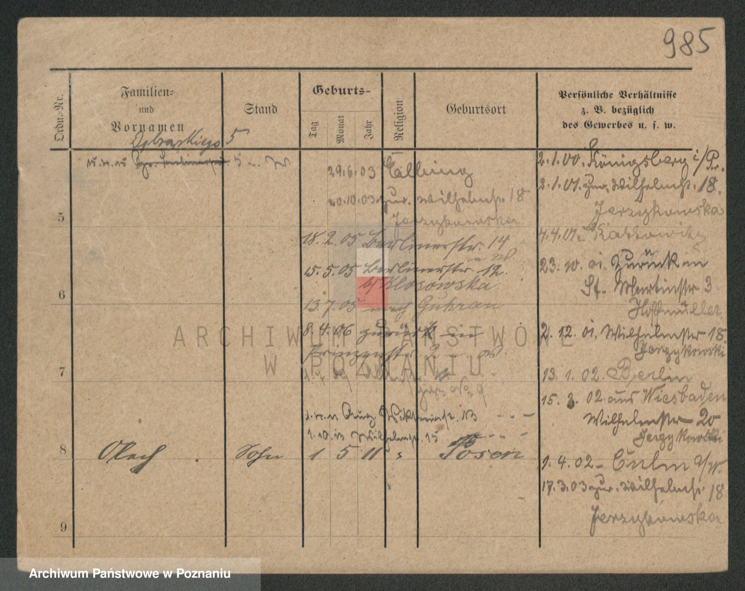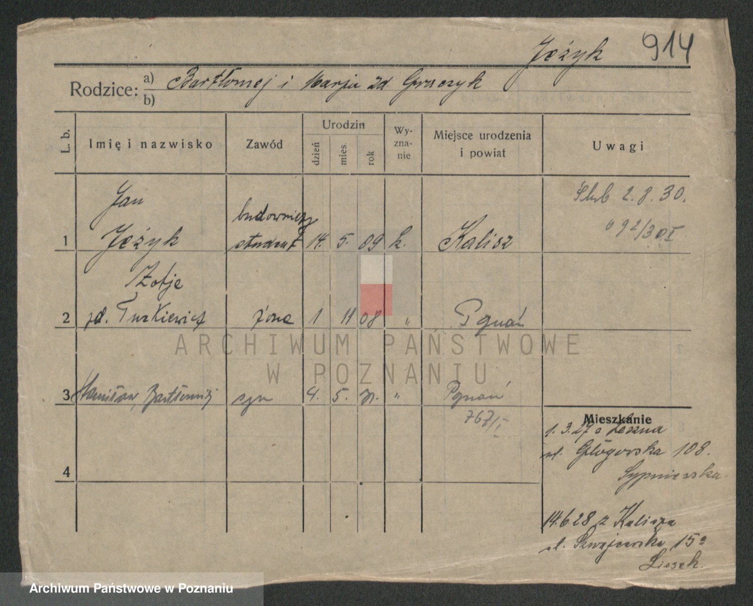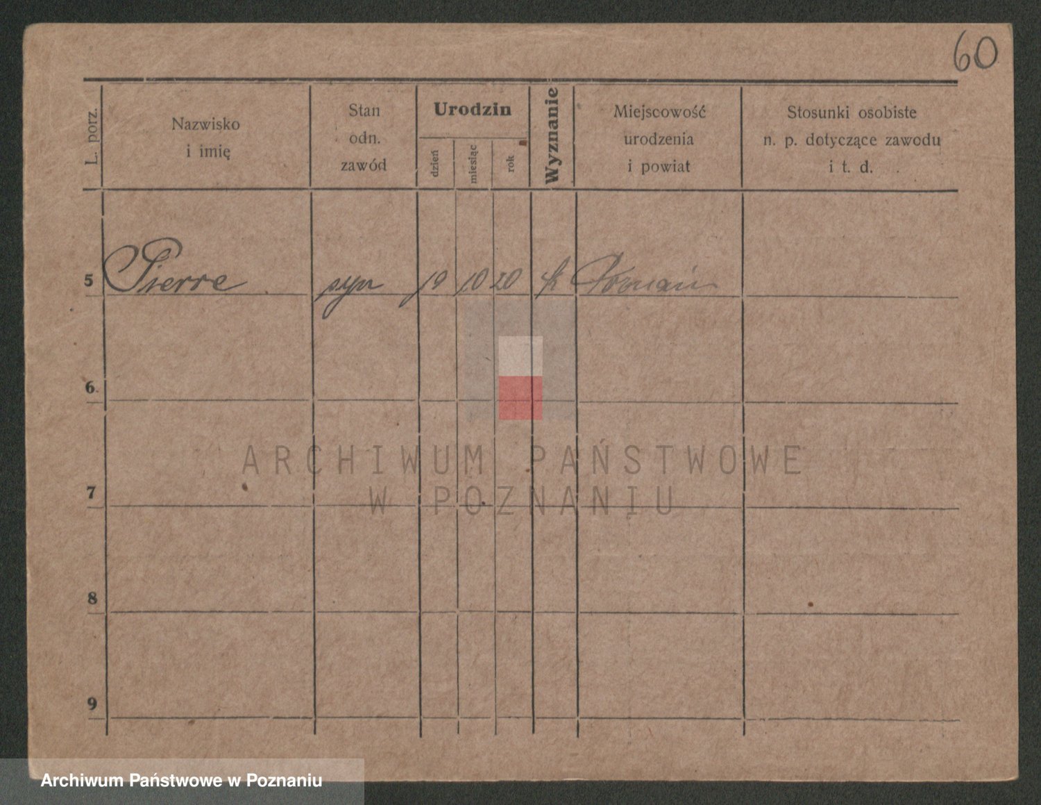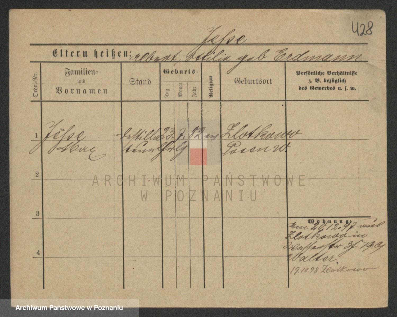 Podgląd karty osobowej dostępny jest po kliknięciu na nazwisko lub ikonkę karty. Można dokonywać powiększenia (ikony na górze) lub przechodzić między kolejnymi skanami (strzałki po bokach).