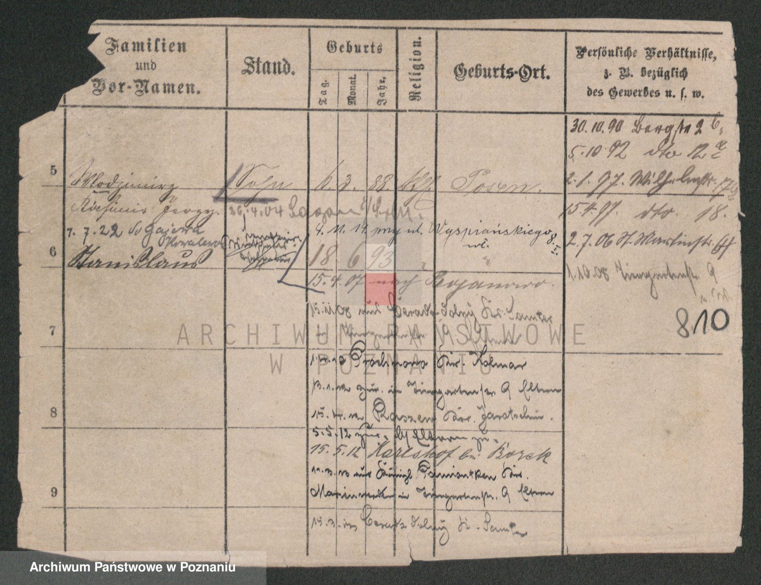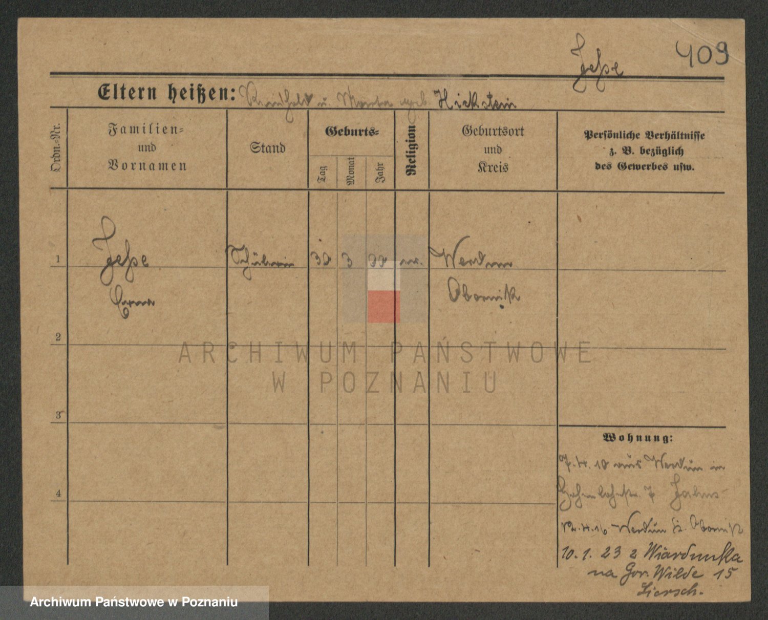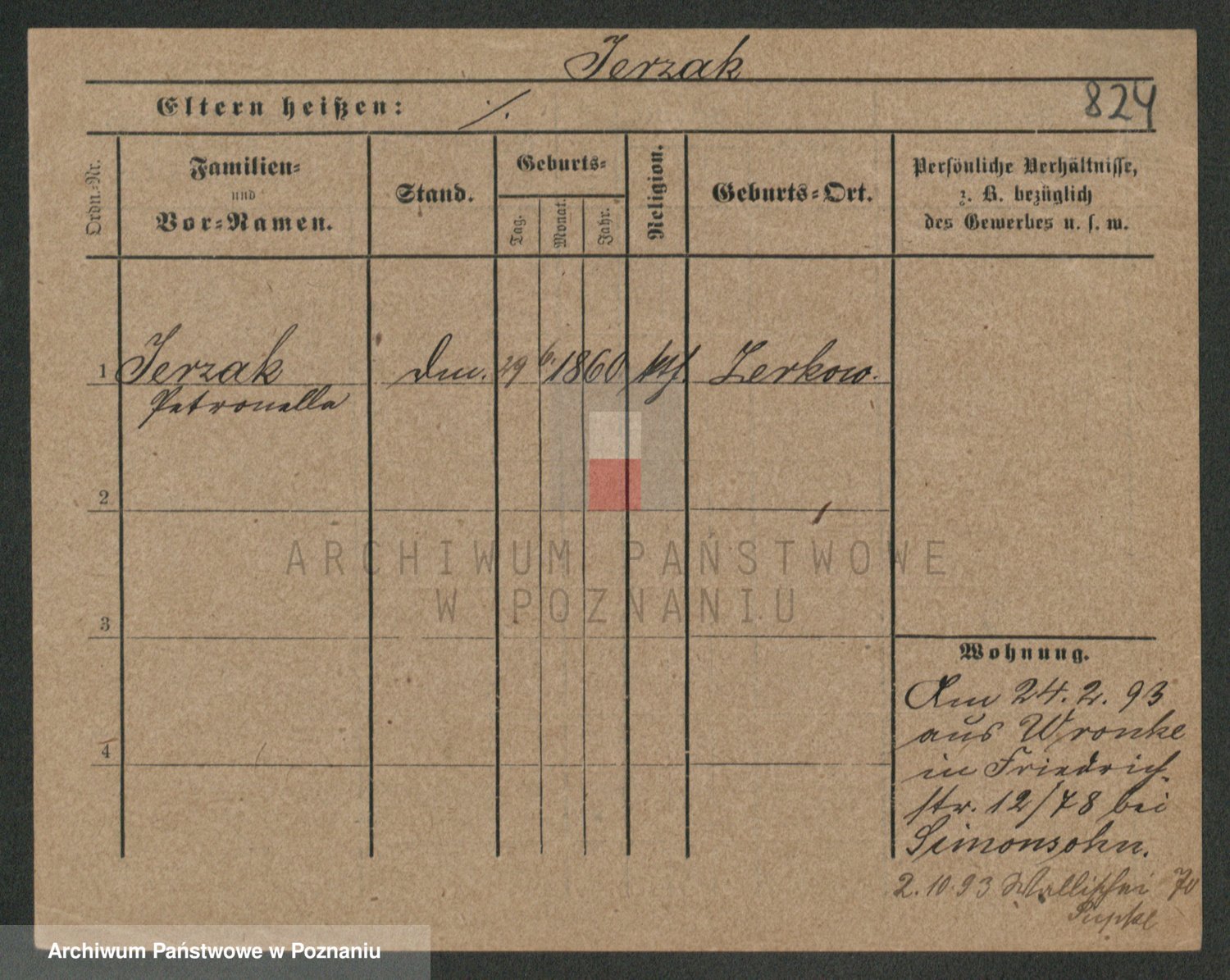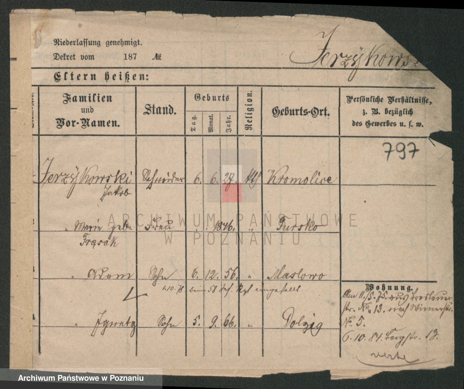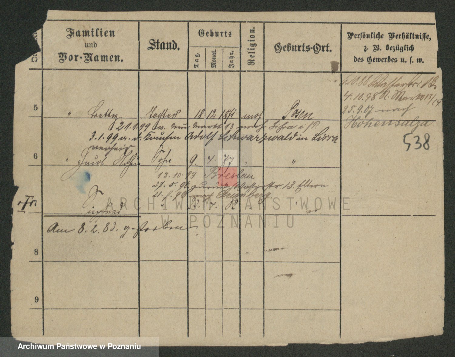 Podgląd karty osobowej dostępny jest po kliknięciu na nazwisko lub ikonkę karty. Można dokonywać powiększenia (ikony na górze) lub przechodzić między kolejnymi skanami (strzałki po bokach).