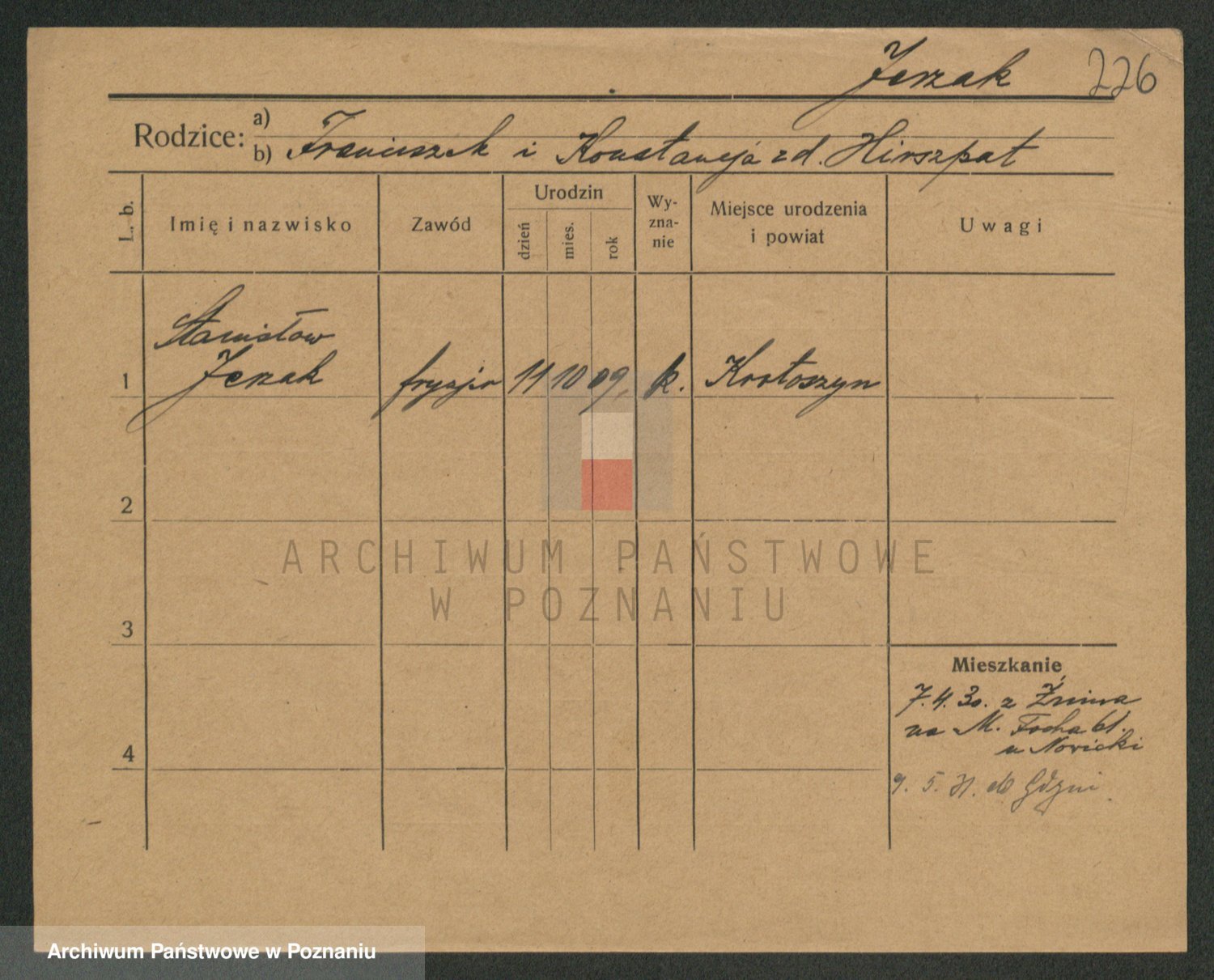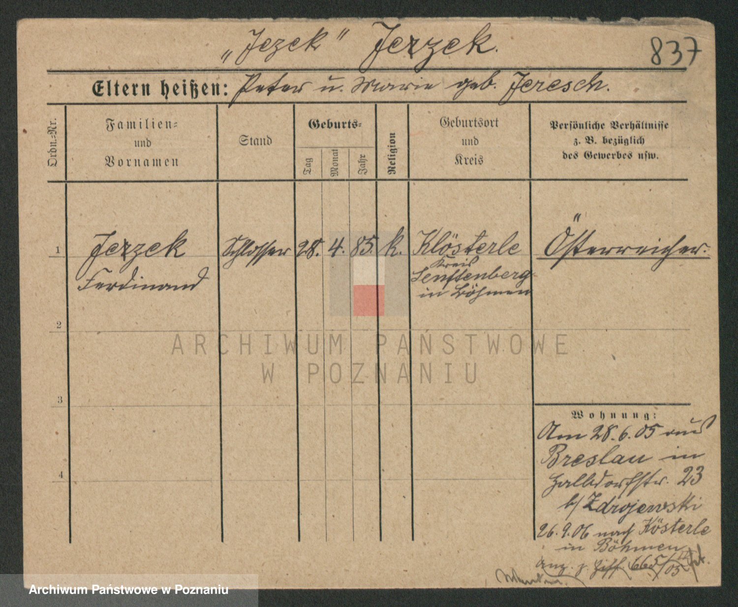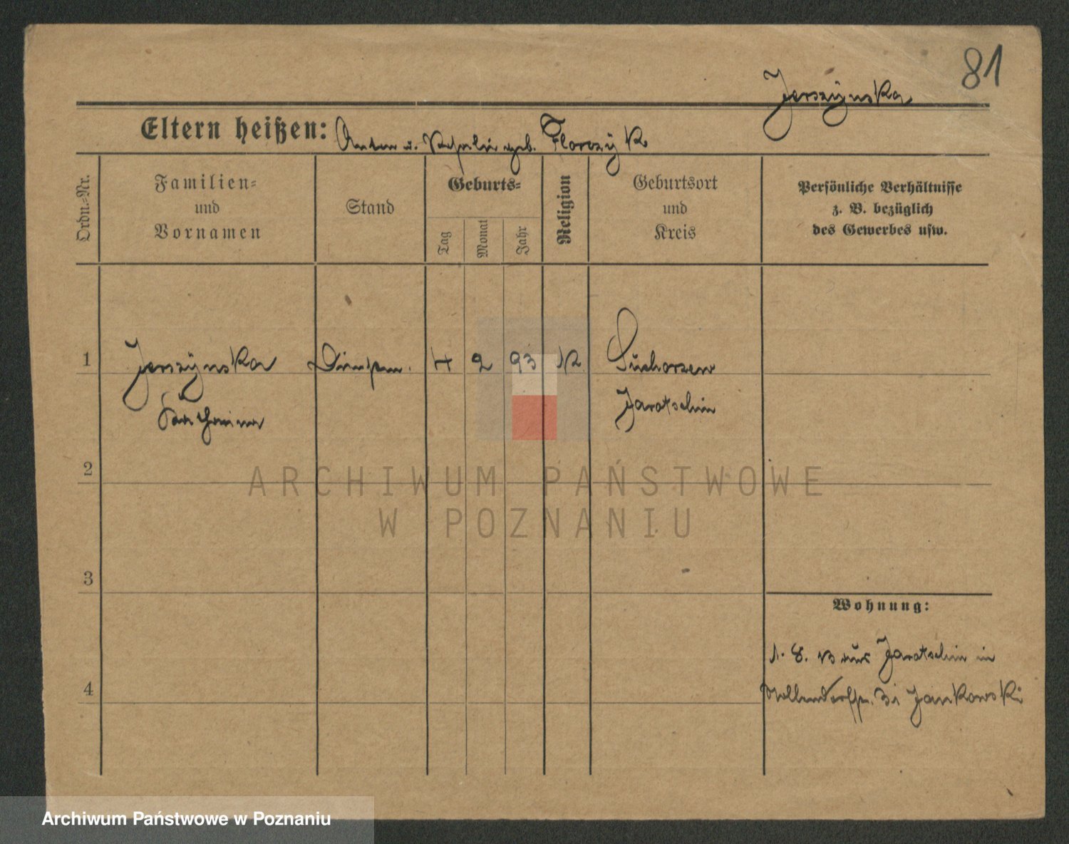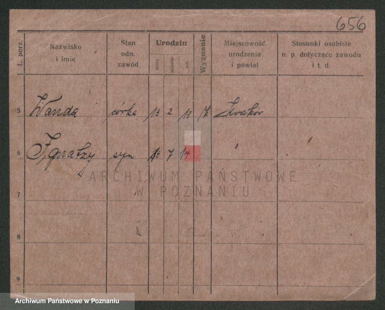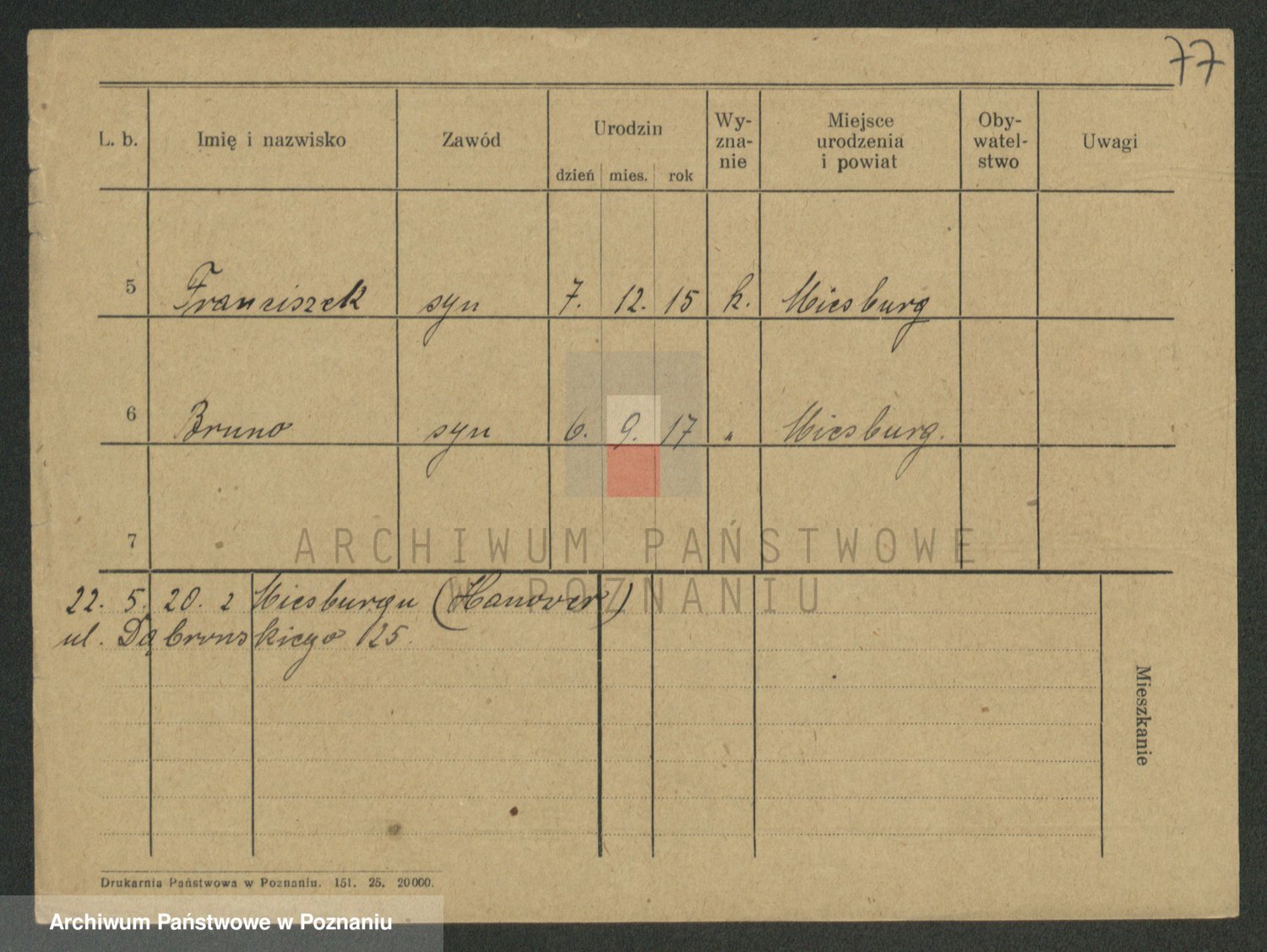 Podgląd karty osobowej dostępny jest po kliknięciu na nazwisko lub ikonkę karty. Można dokonywać powiększenia (ikony na górze) lub przechodzić między kolejnymi skanami (strzałki po bokach).
