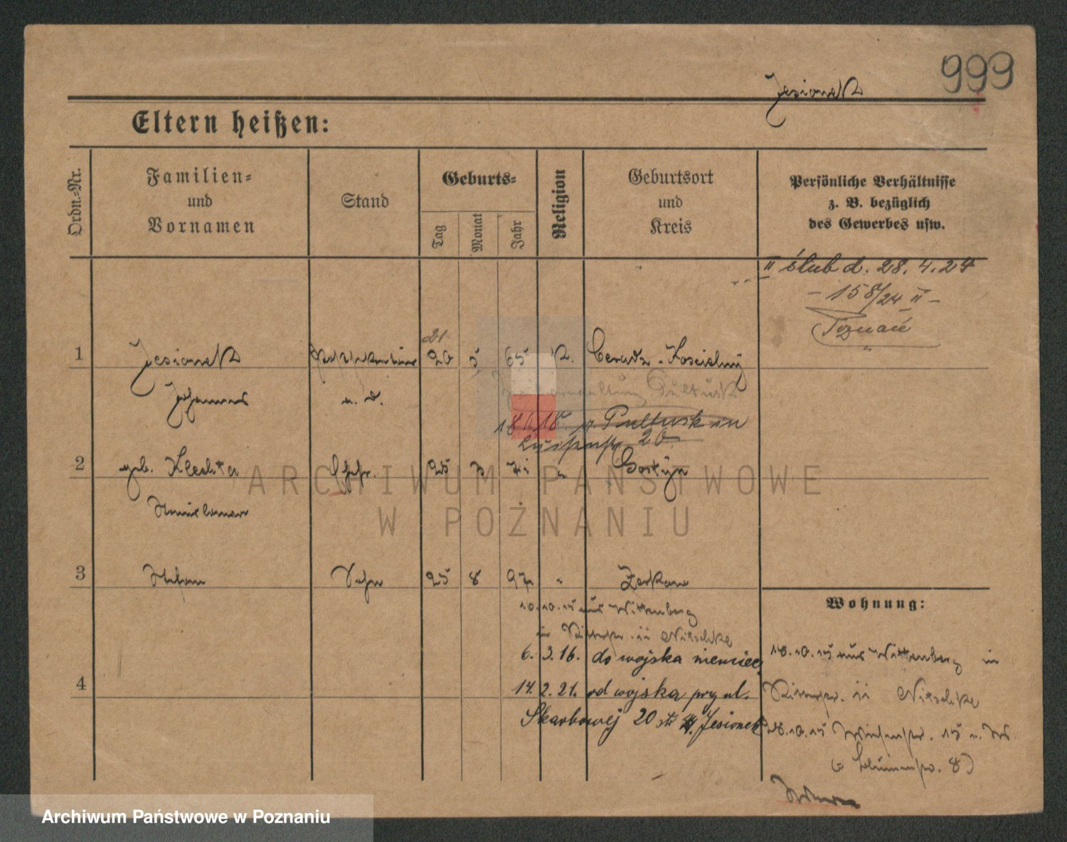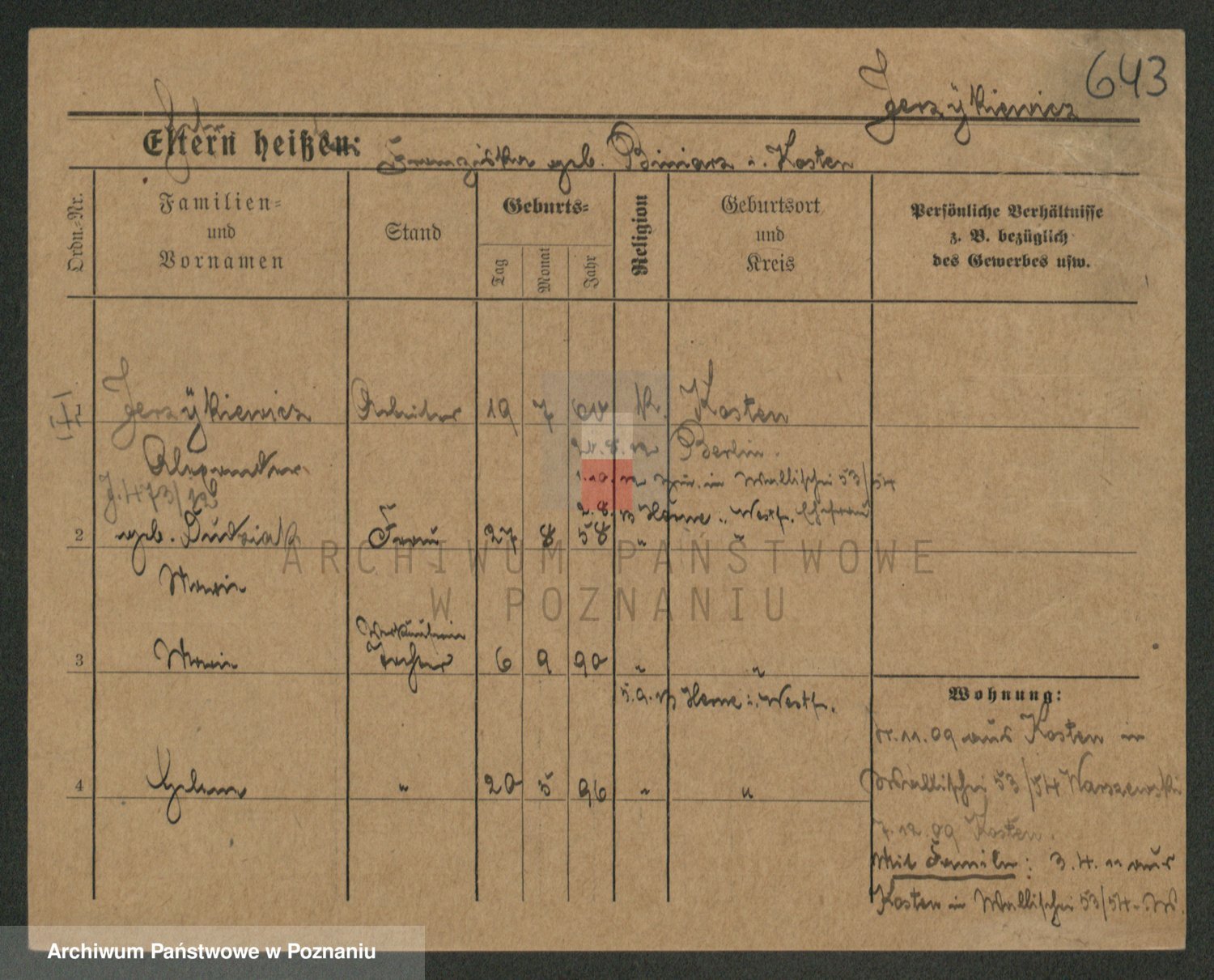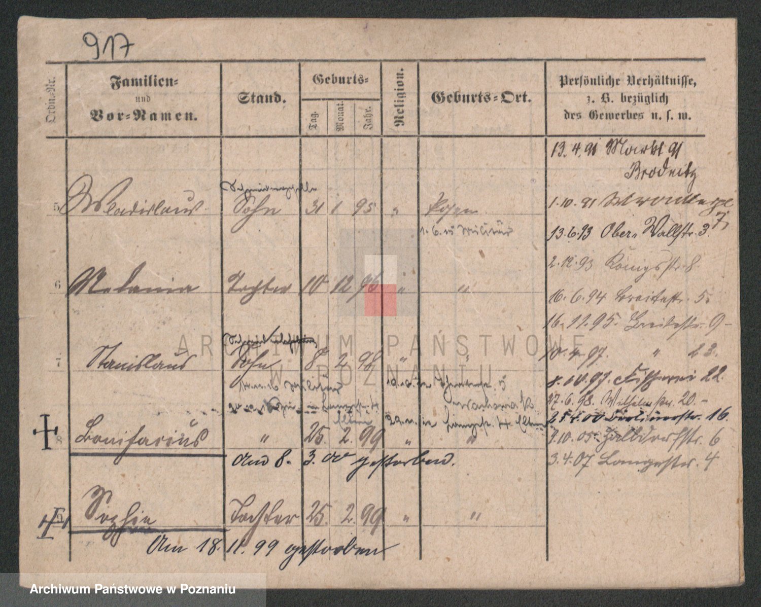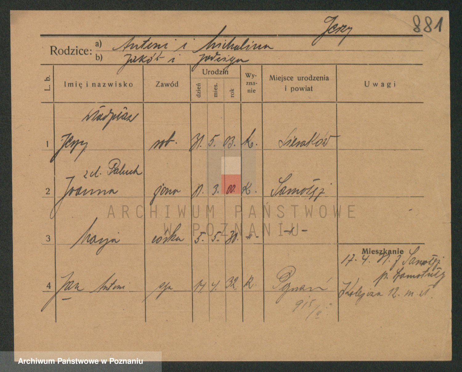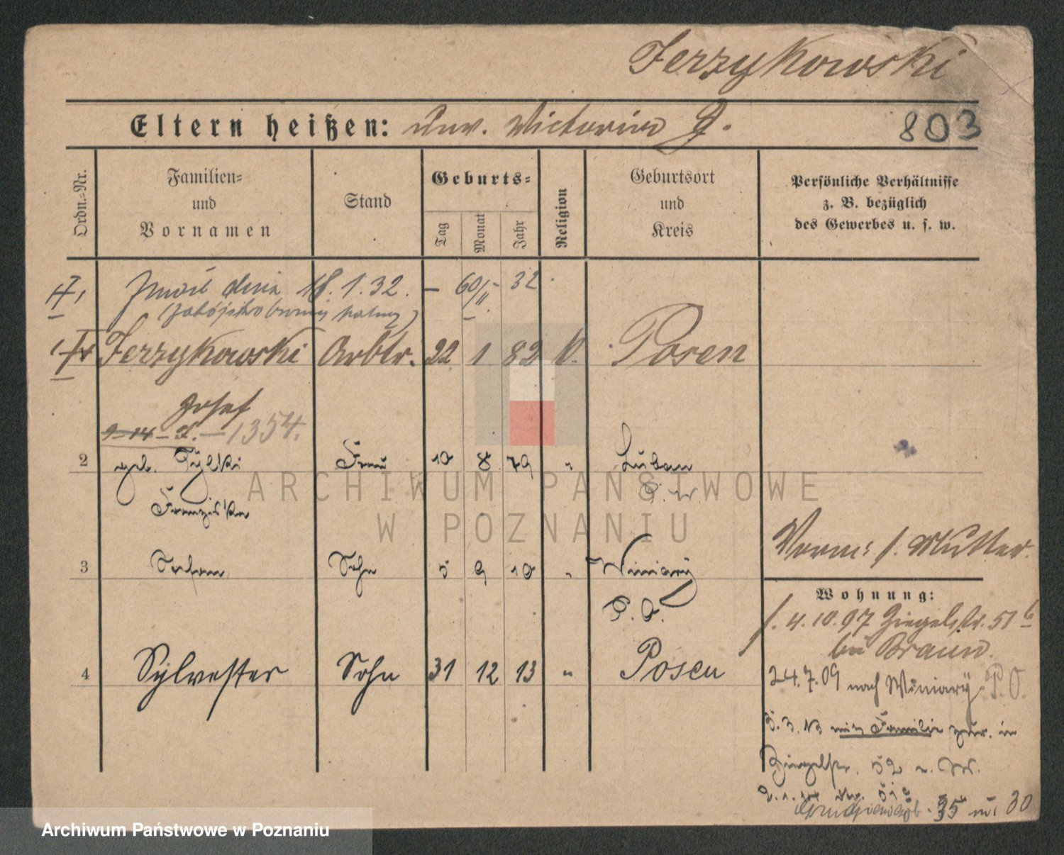 Podgląd karty osobowej dostępny jest po kliknięciu na nazwisko lub ikonkę karty. Można dokonywać powiększenia (ikony na górze) lub przechodzić między kolejnymi skanami (strzałki po bokach).
