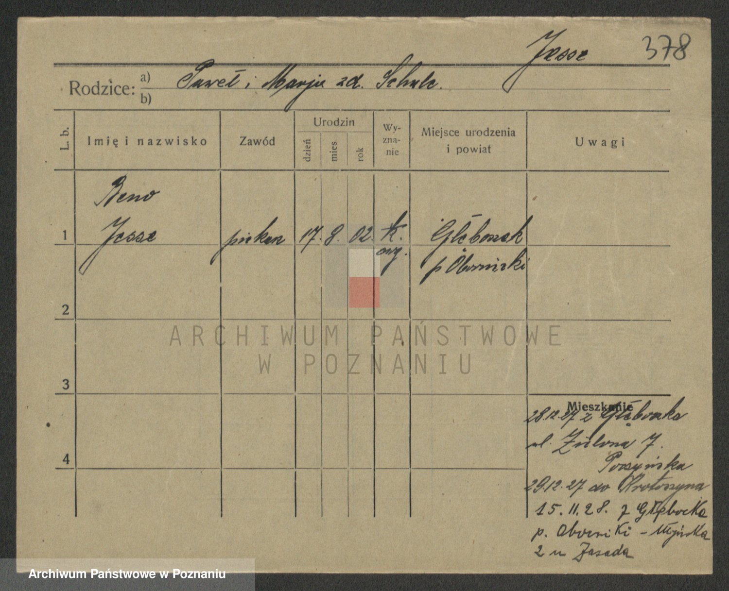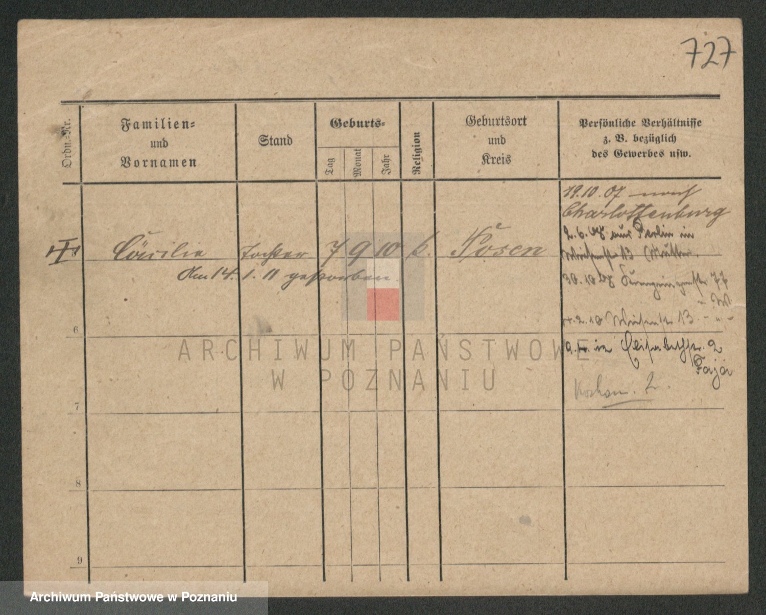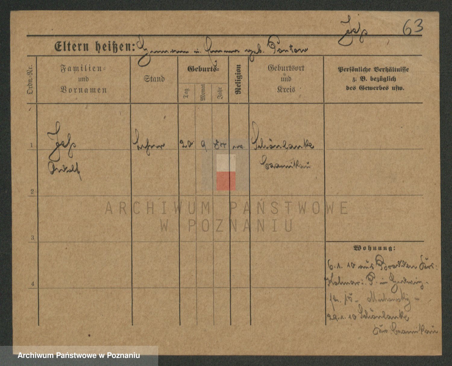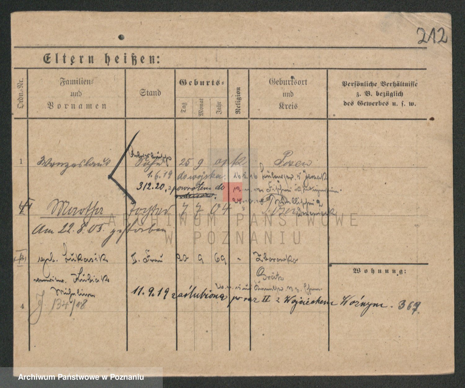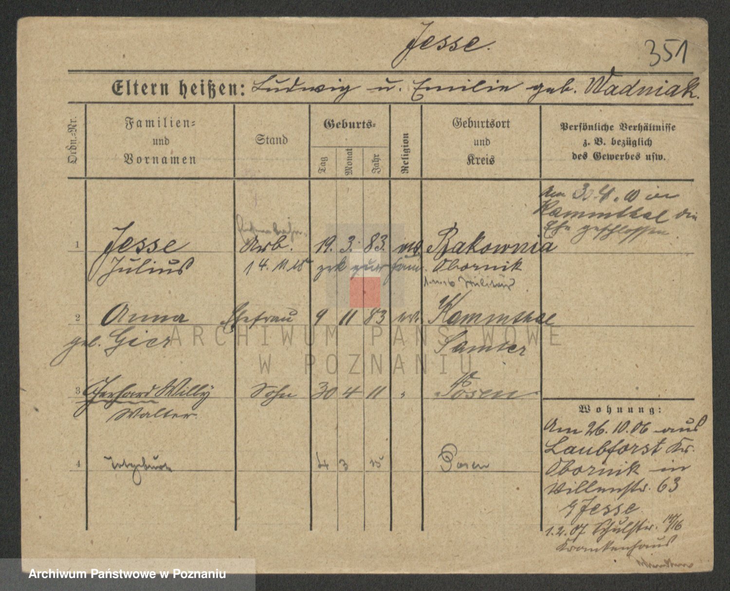 Podgląd karty osobowej dostępny jest po kliknięciu na nazwisko lub ikonkę karty. Można dokonywać powiększenia (ikony na górze) lub przechodzić między kolejnymi skanami (strzałki po bokach).