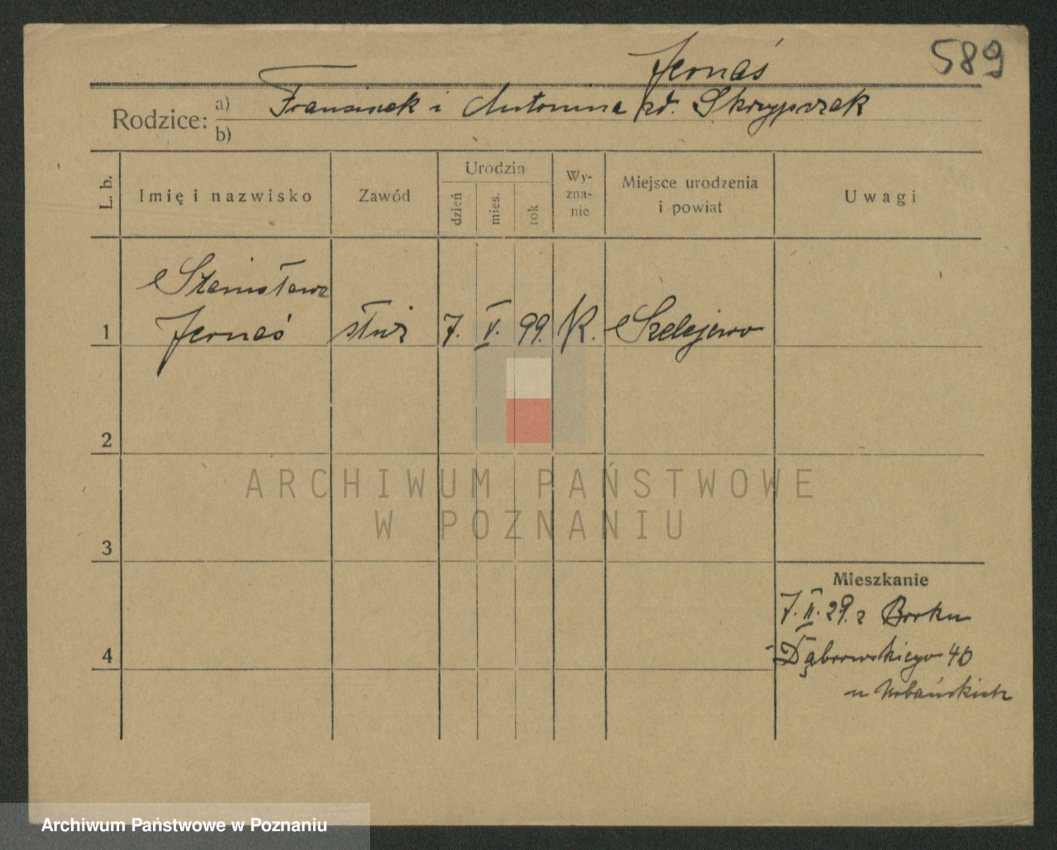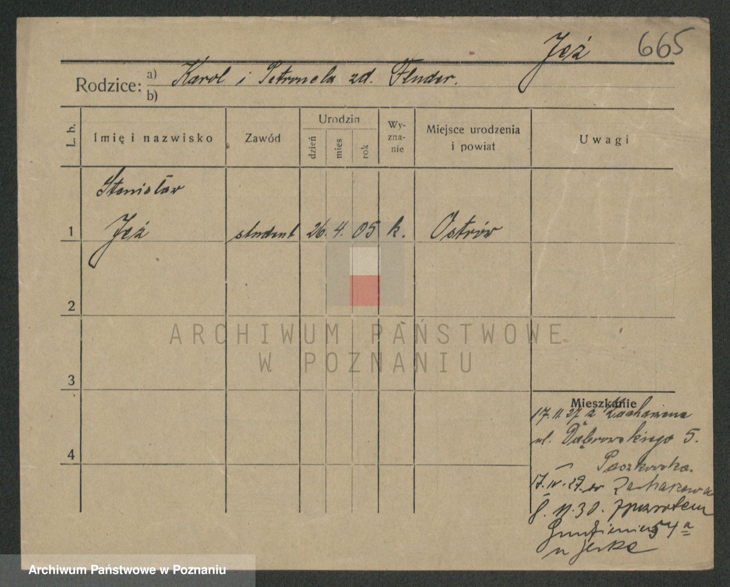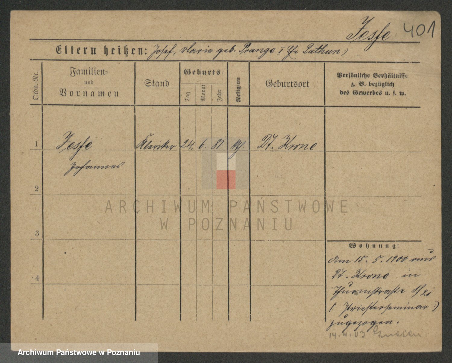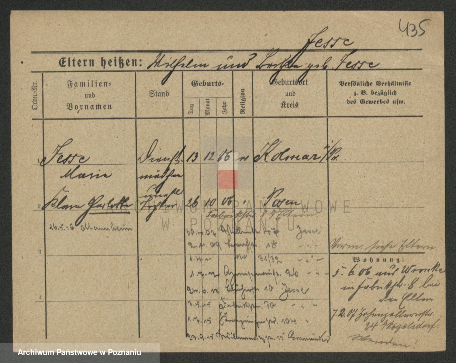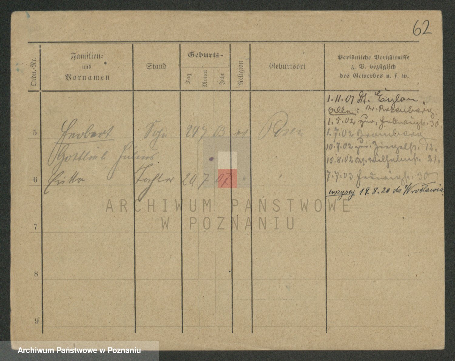 Podgląd karty osobowej dostępny jest po kliknięciu na nazwisko lub ikonkę karty. Można dokonywać powiększenia (ikony na górze) lub przechodzić między kolejnymi skanami (strzałki po bokach).