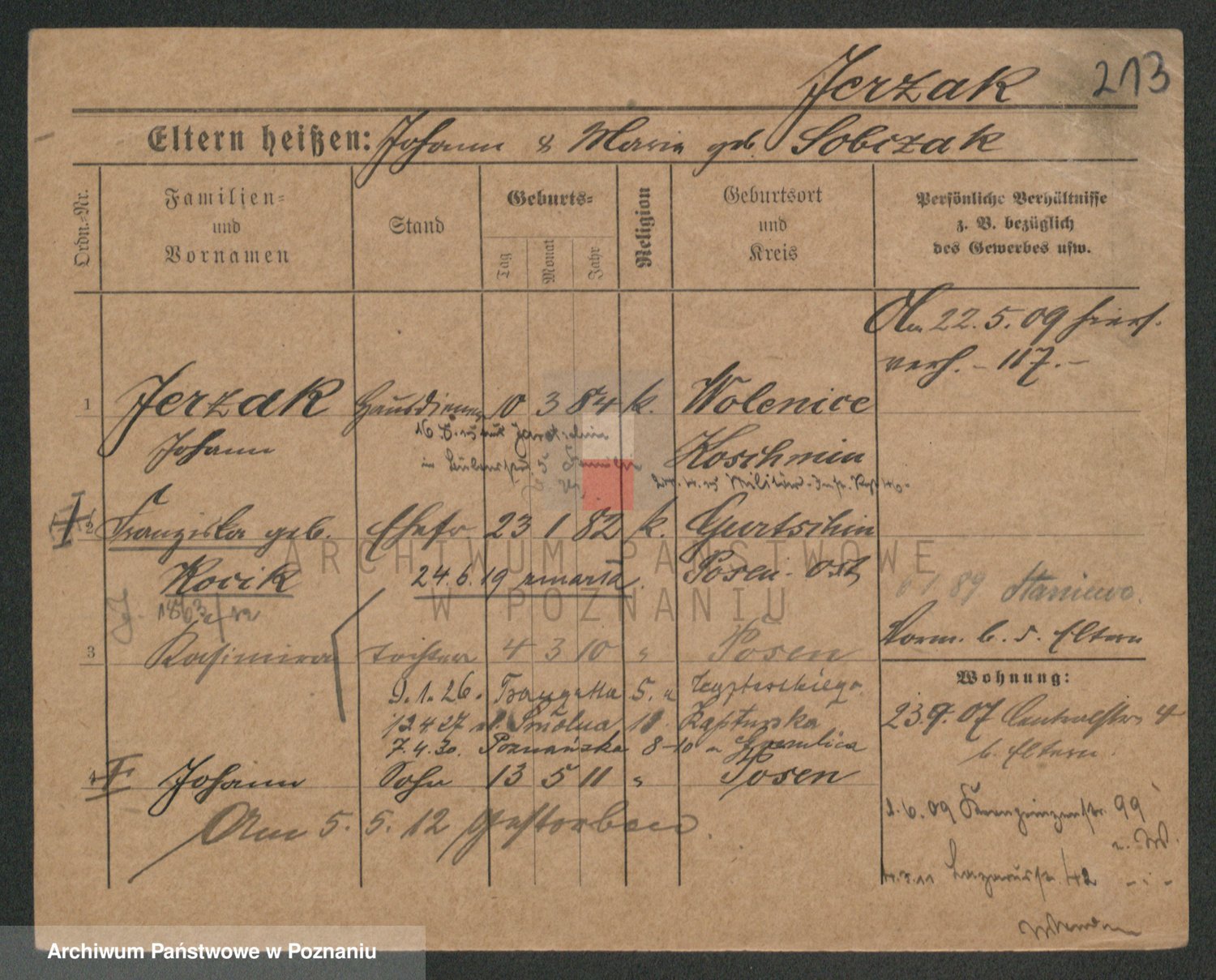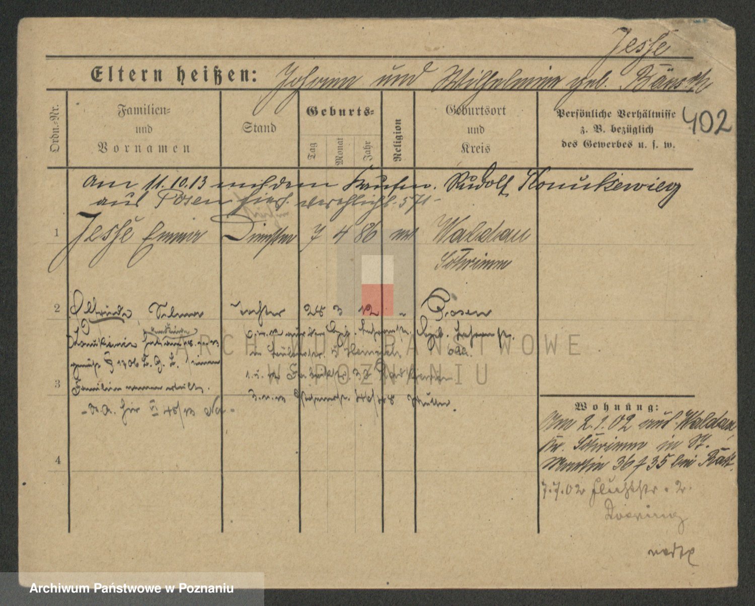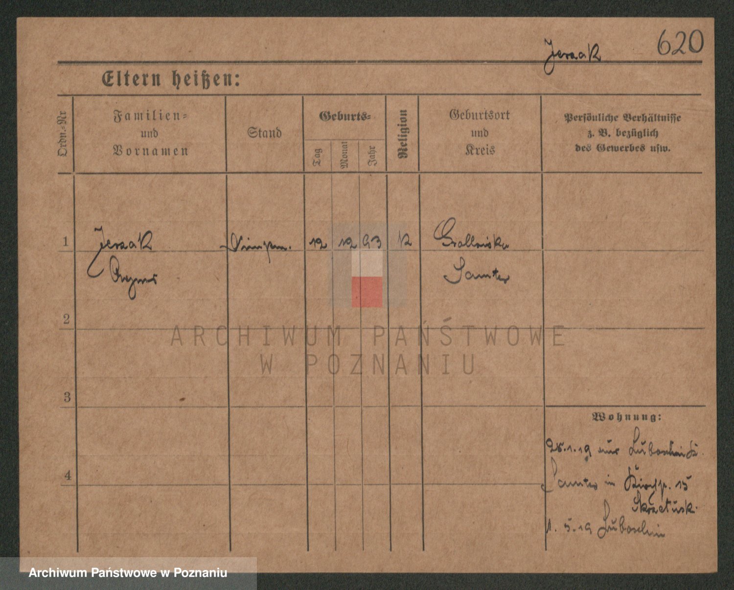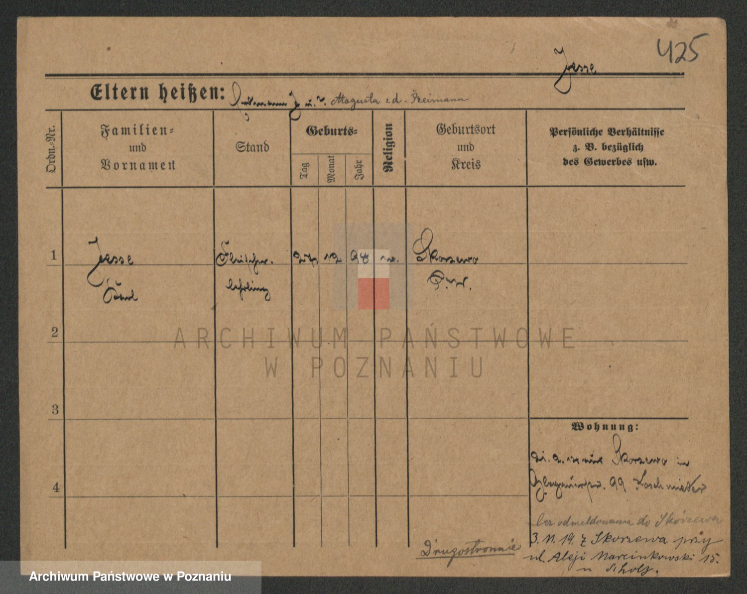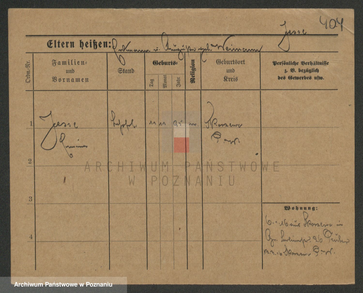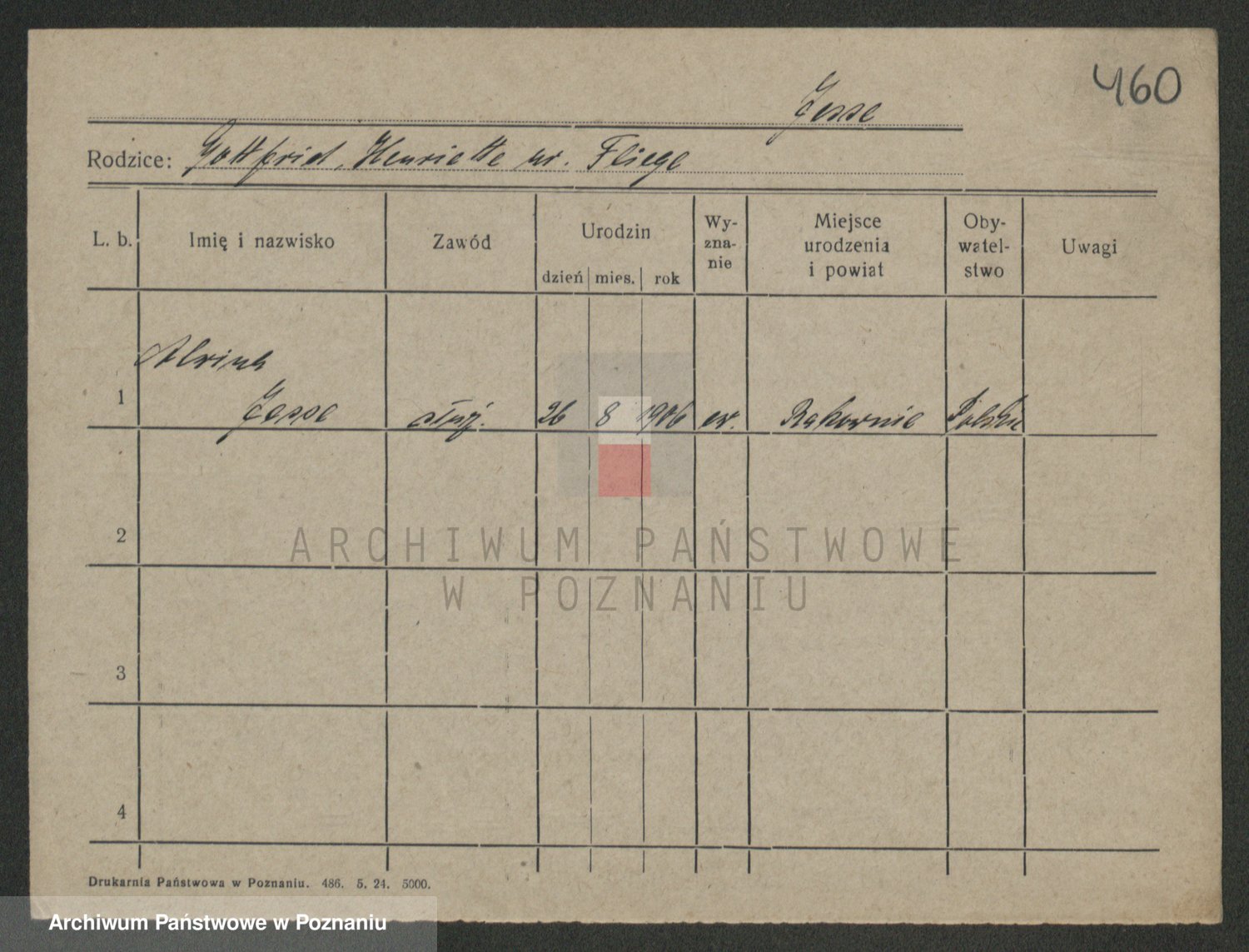Podgląd karty osobowej dostępny jest po kliknięciu na nazwisko lub ikonkę karty. Można dokonywać powiększenia (ikony na górze) lub przechodzić między kolejnymi skanami (strzałki po bokach).