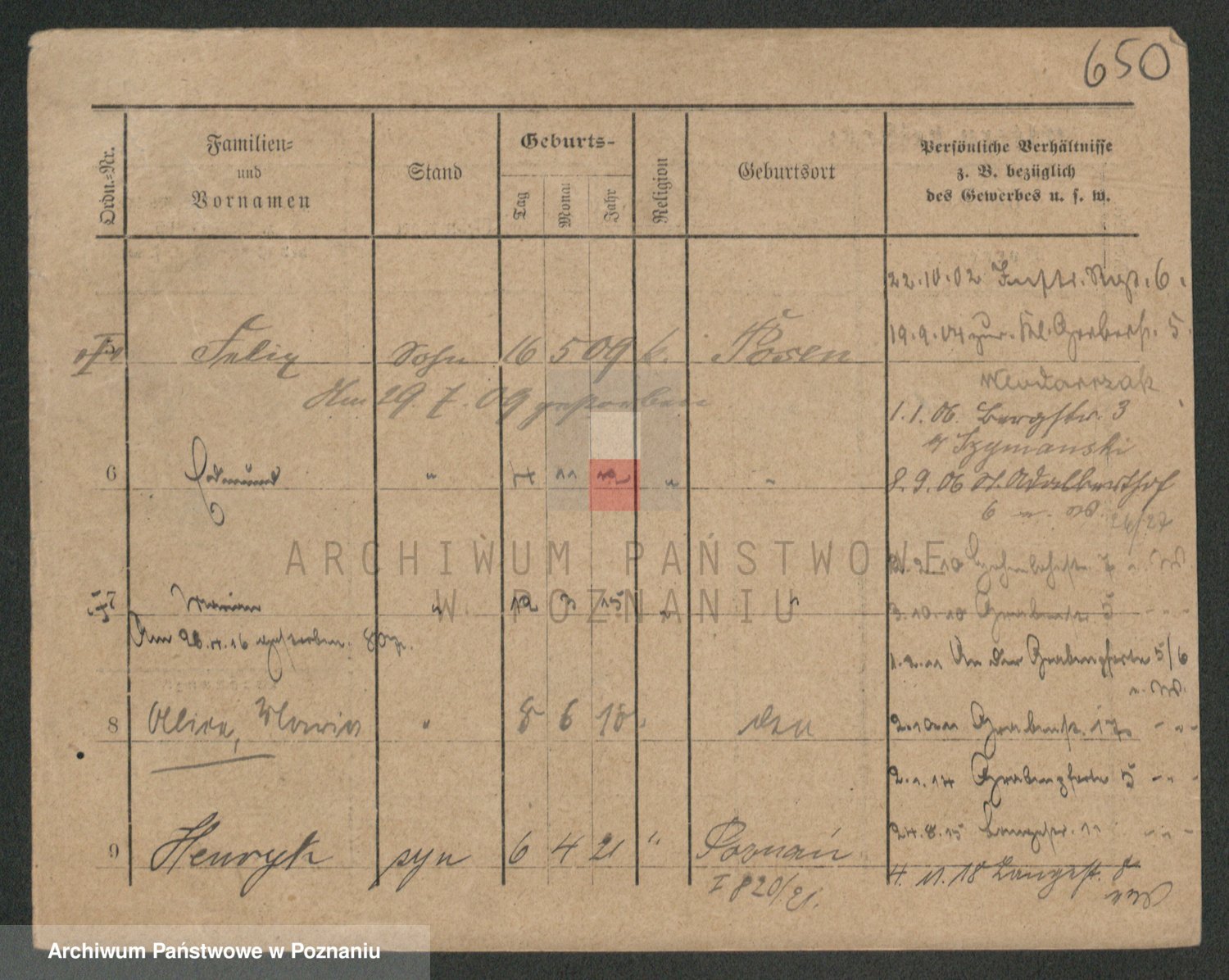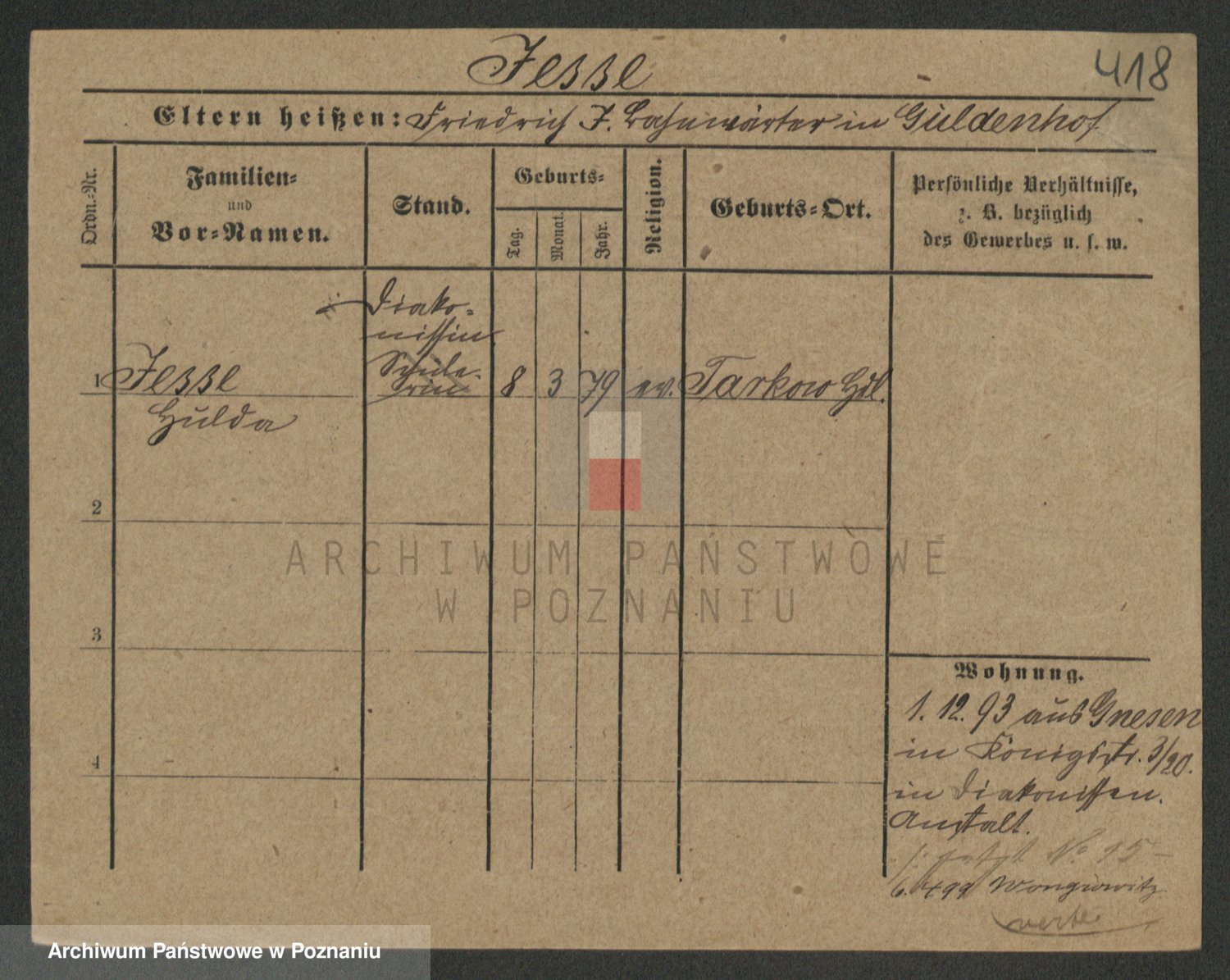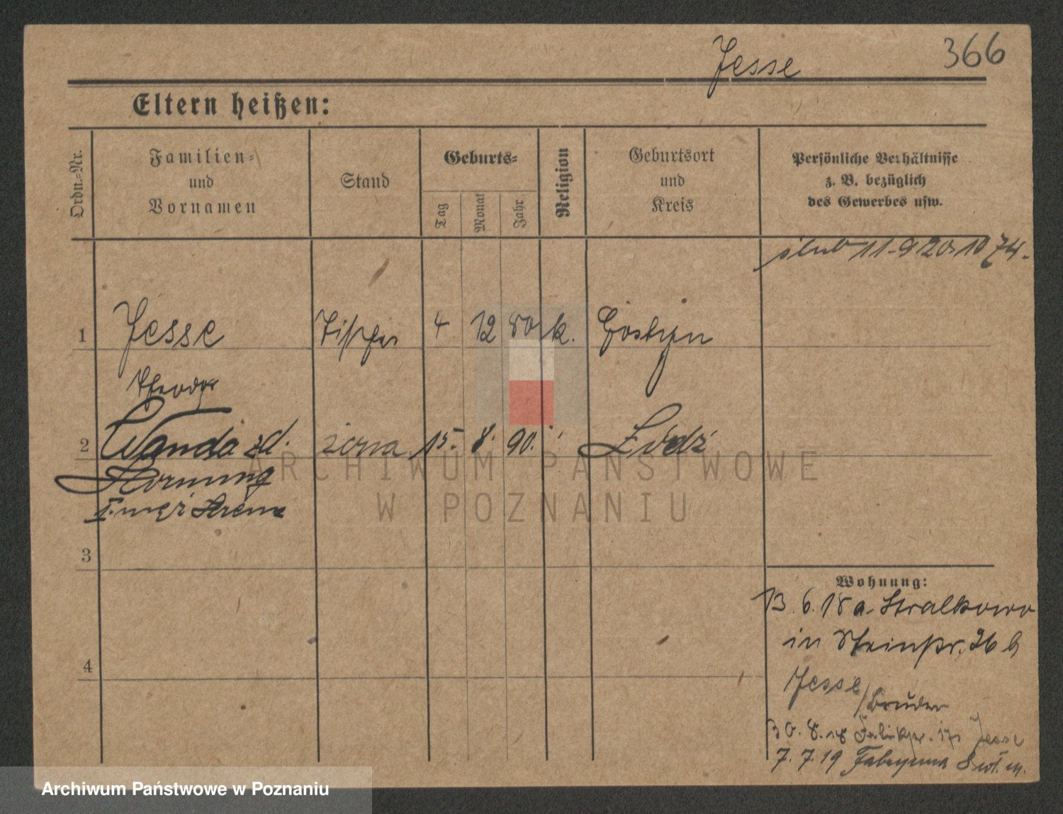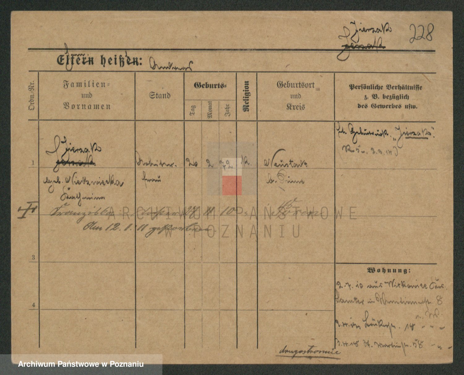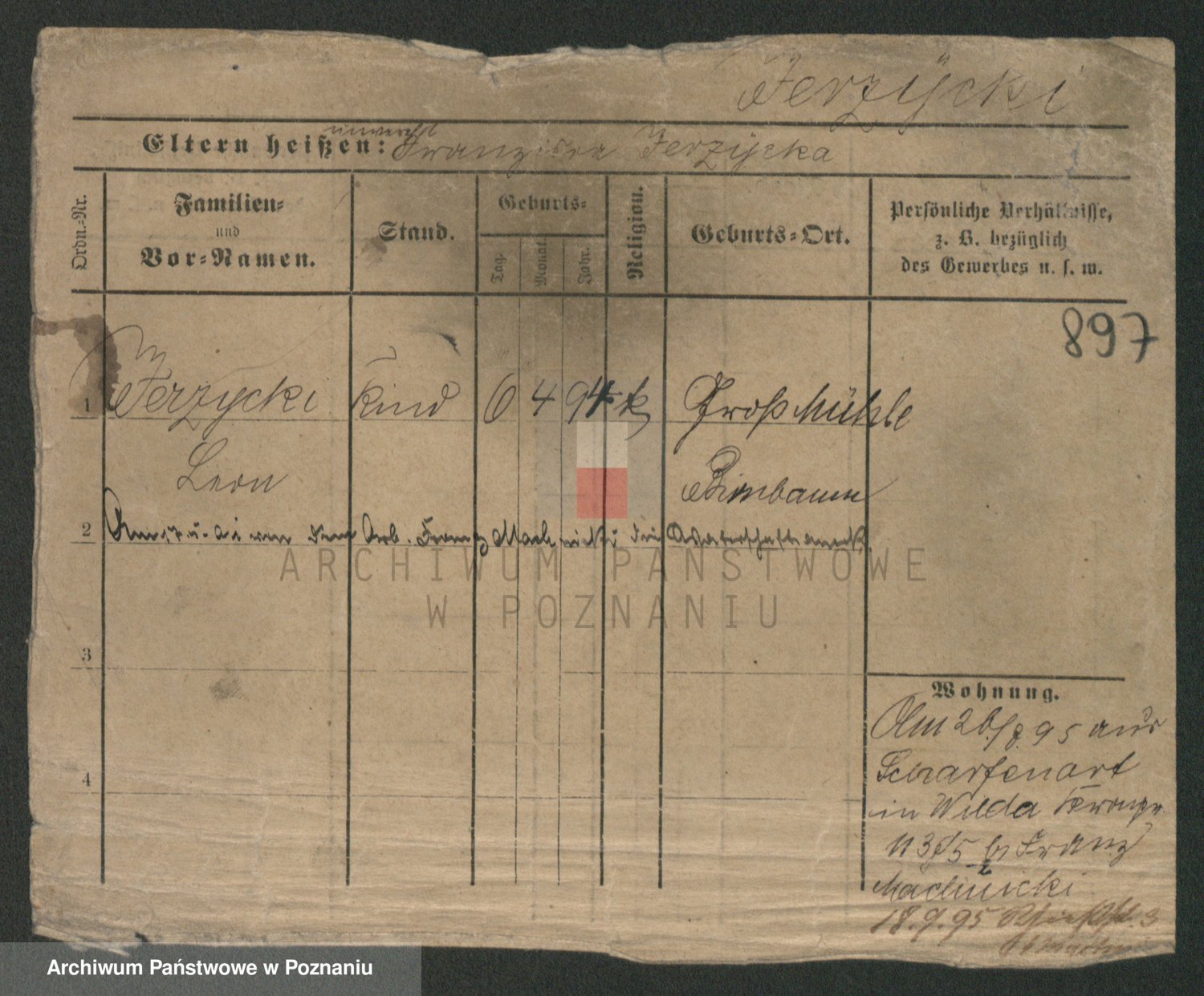 Podgląd karty osobowej dostępny jest po kliknięciu na nazwisko lub ikonkę karty. Można dokonywać powiększenia (ikony na górze) lub przechodzić między kolejnymi skanami (strzałki po bokach).