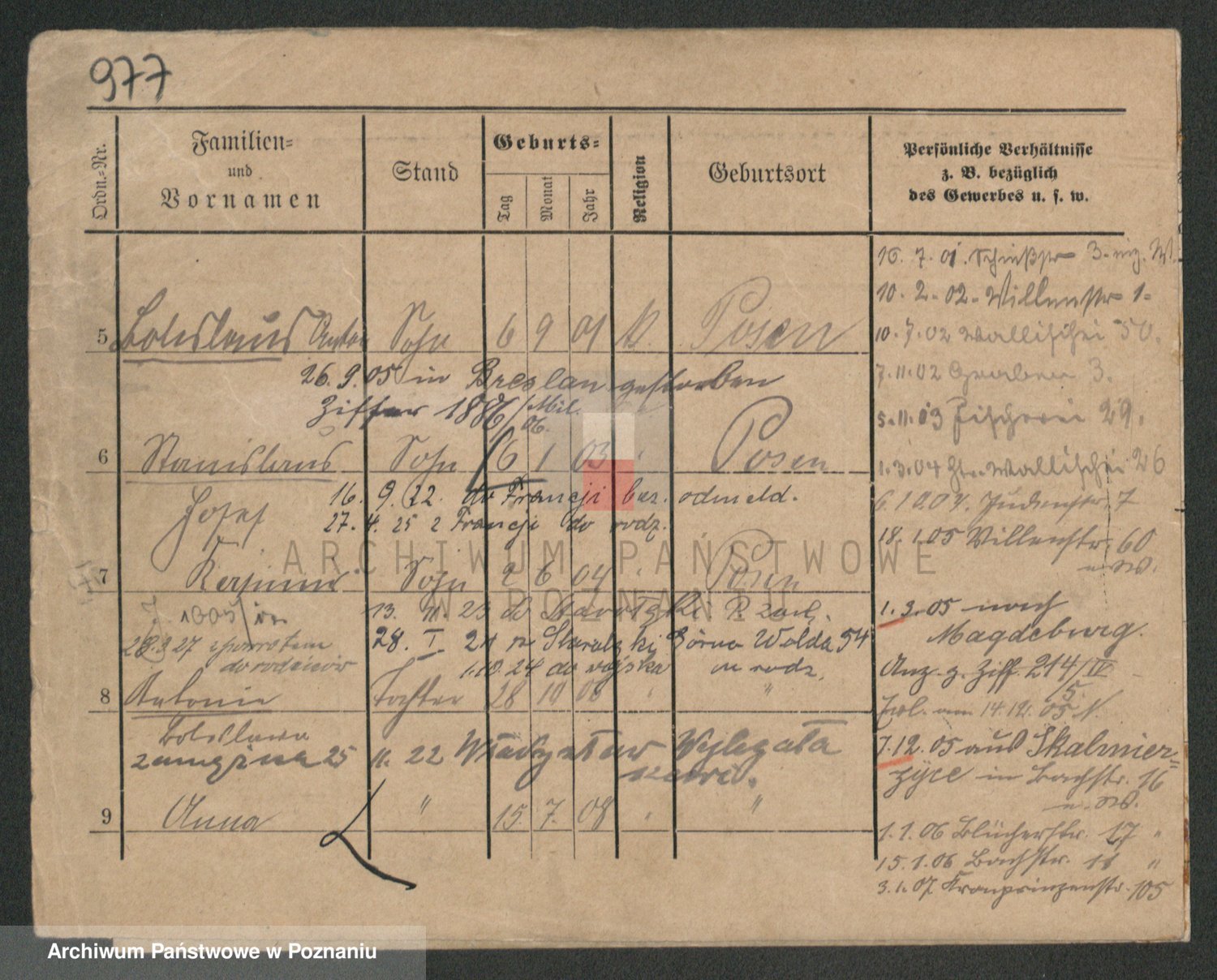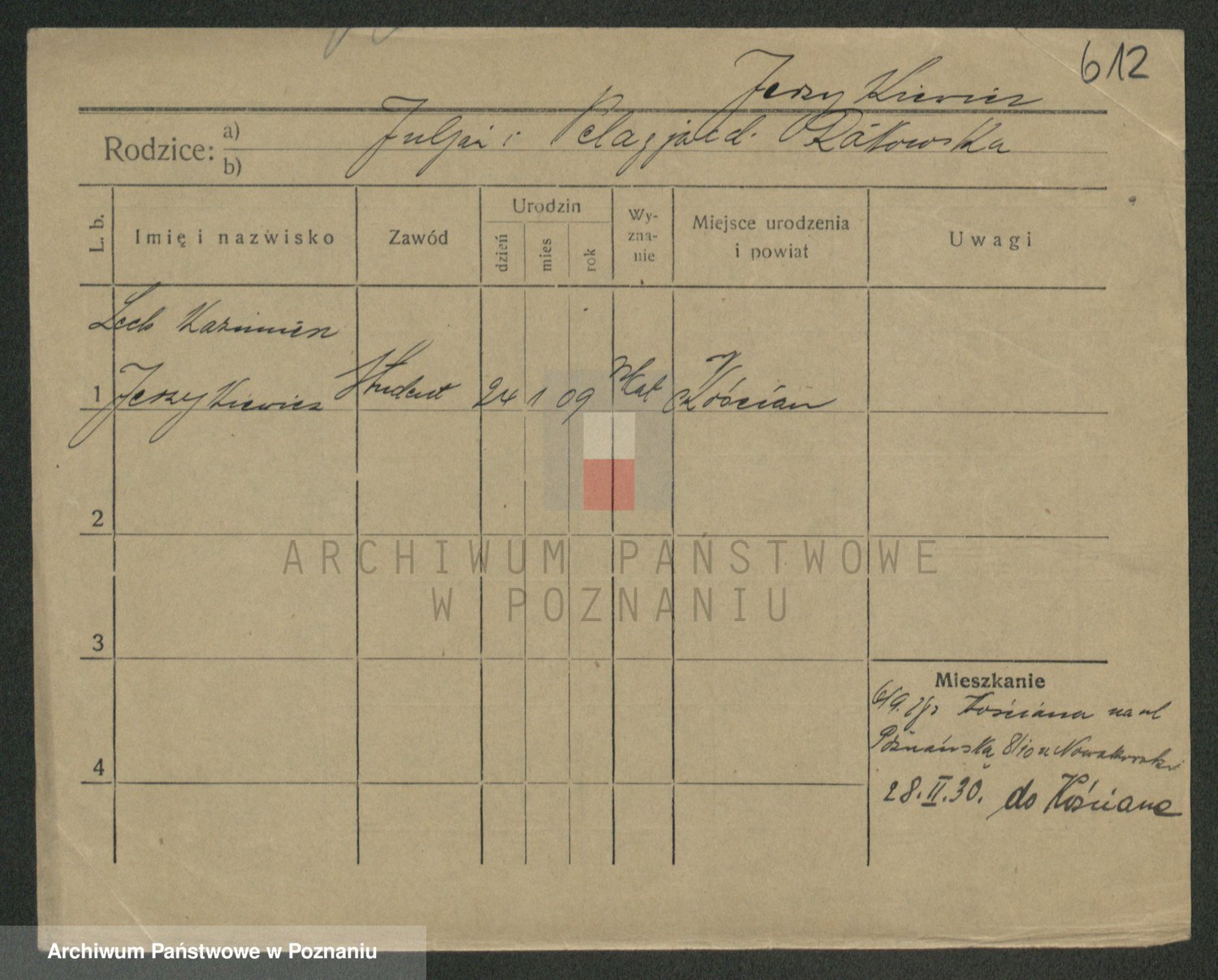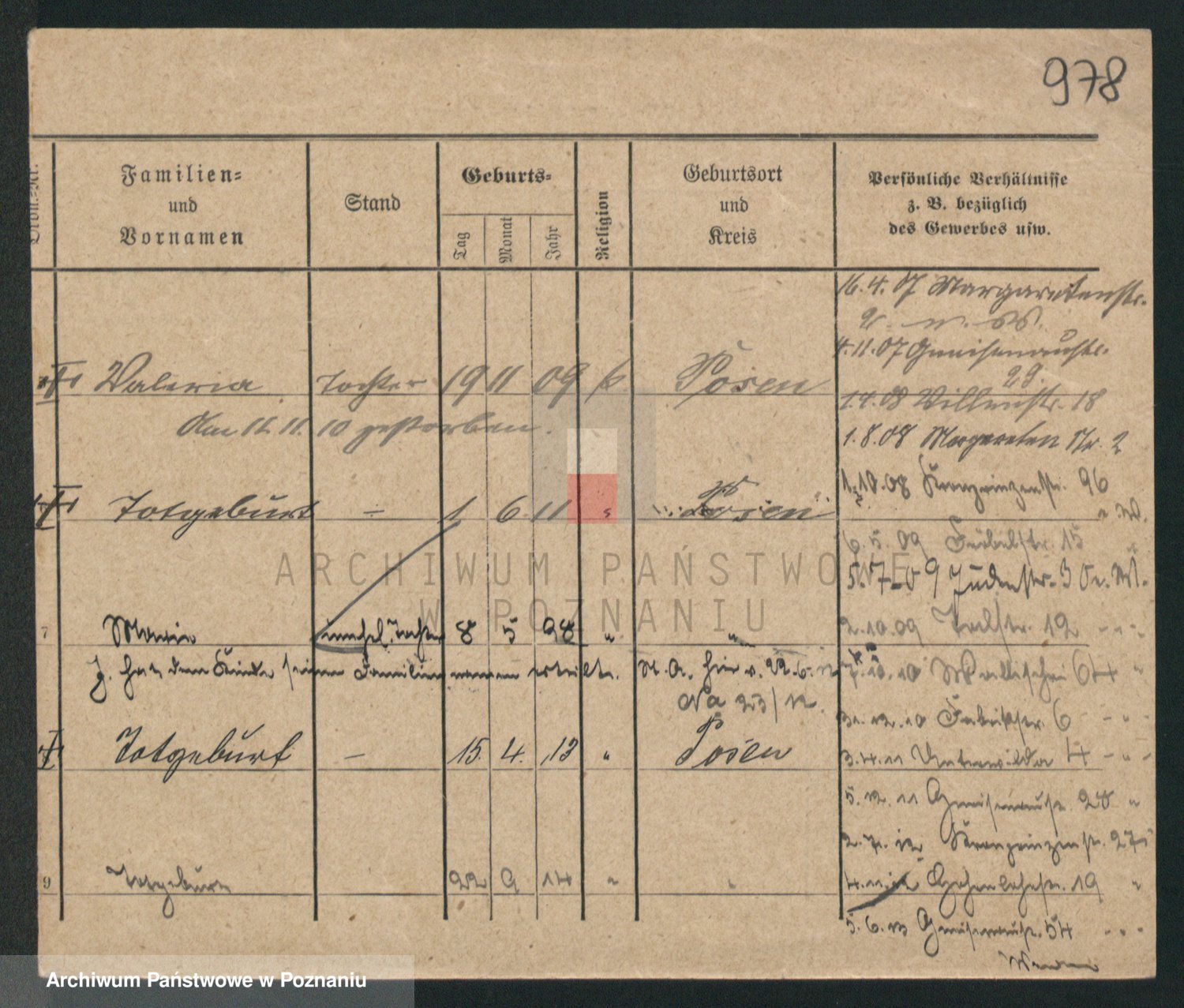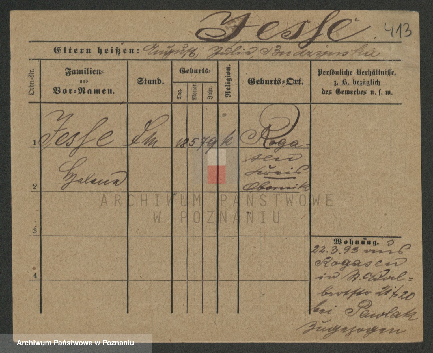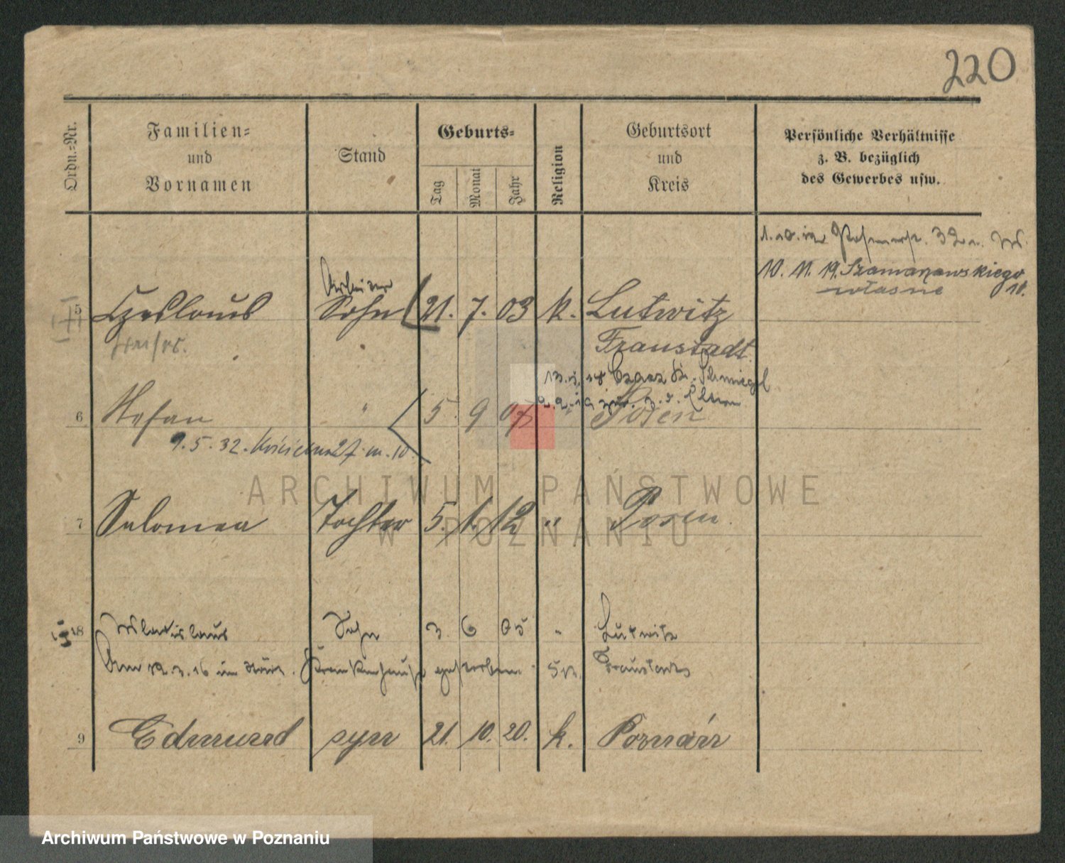 Podgląd karty osobowej dostępny jest po kliknięciu na nazwisko lub ikonkę karty. Można dokonywać powiększenia (ikony na górze) lub przechodzić między kolejnymi skanami (strzałki po bokach).