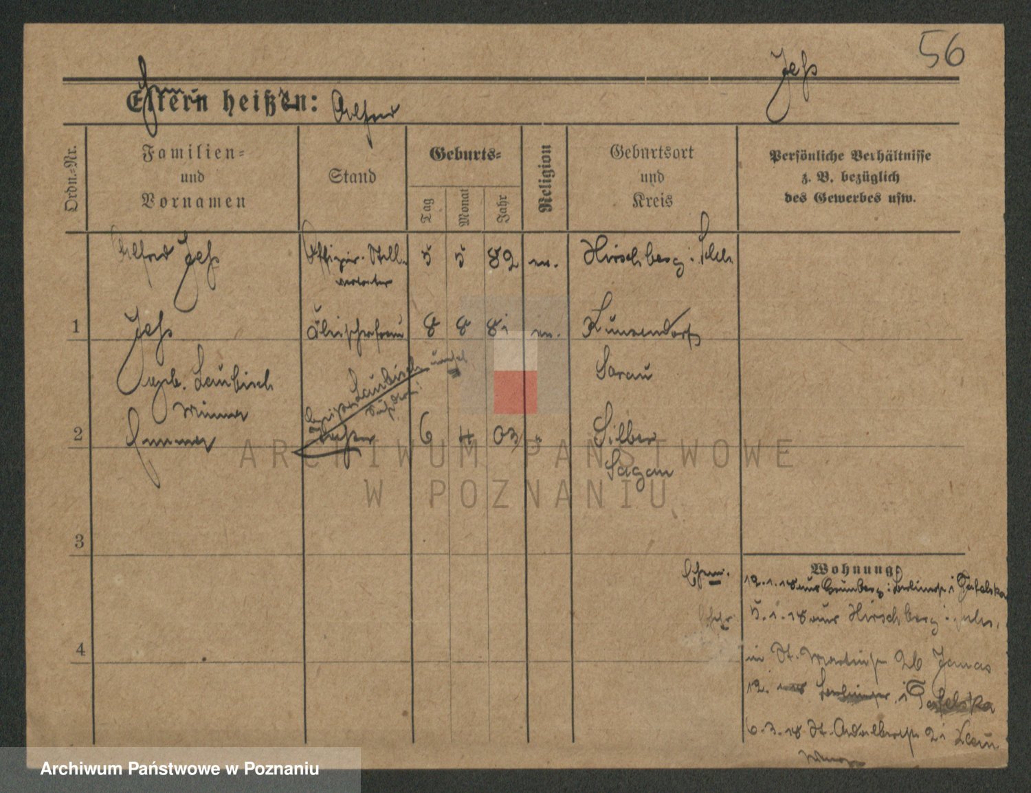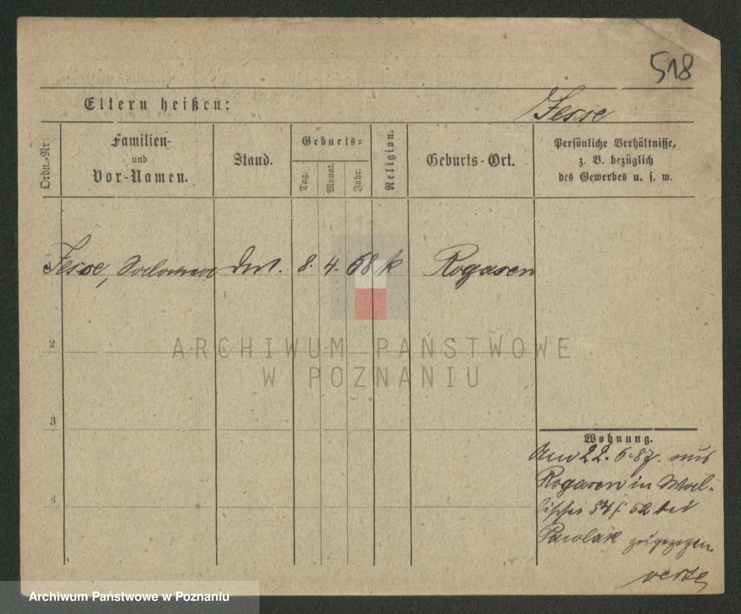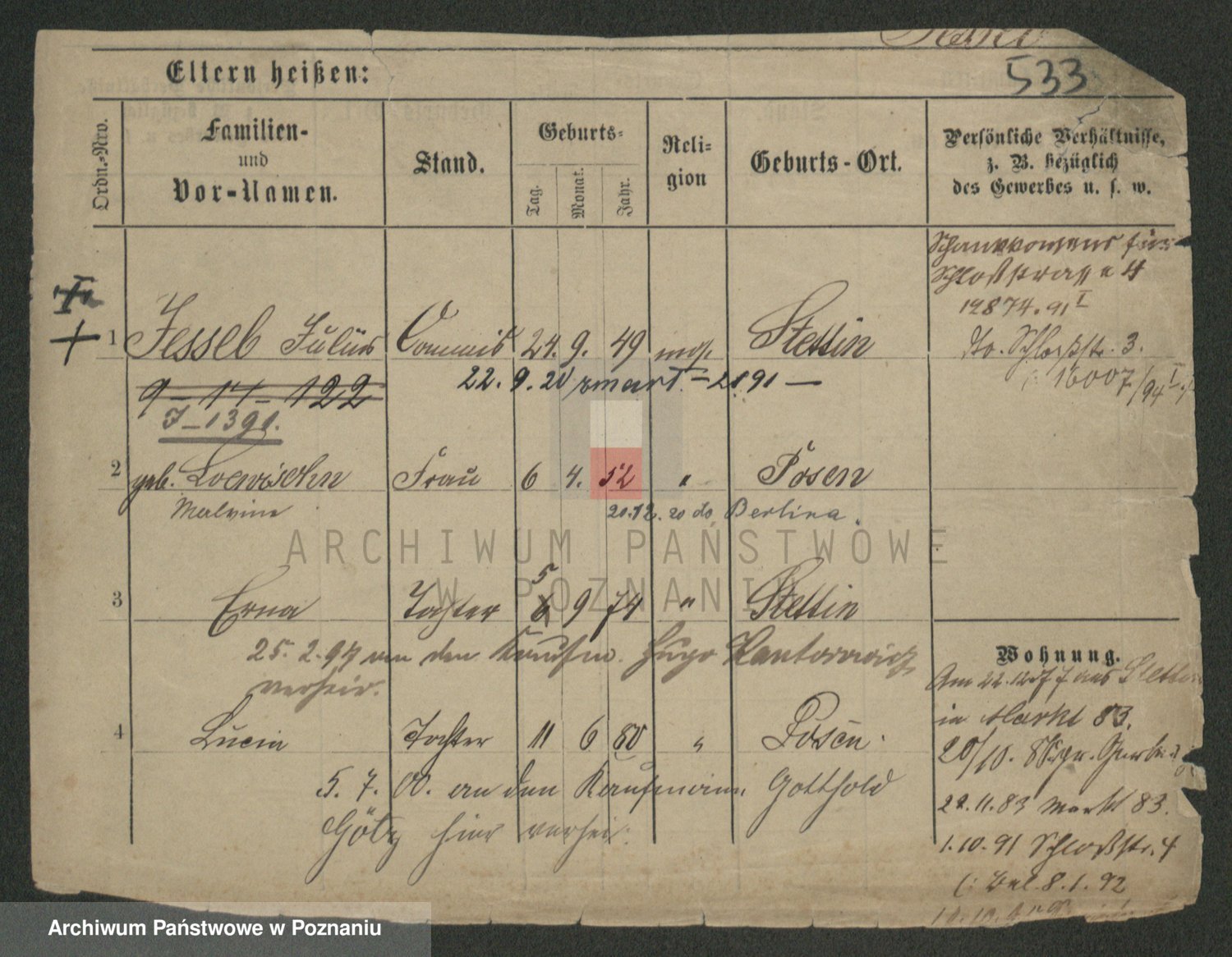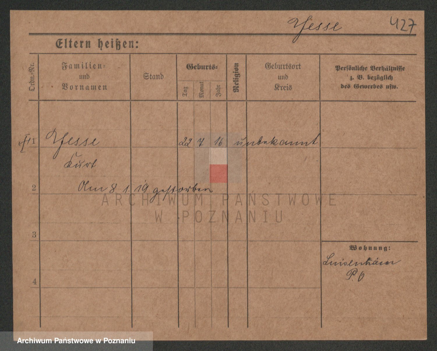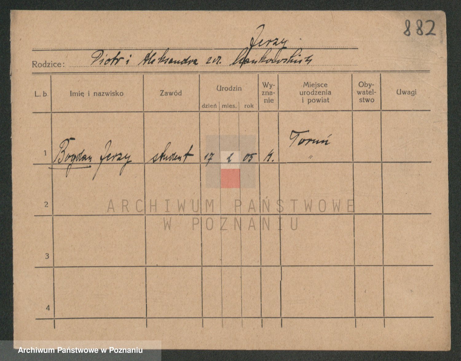 Podgląd karty osobowej dostępny jest po kliknięciu na nazwisko lub ikonkę karty. Można dokonywać powiększenia (ikony na górze) lub przechodzić między kolejnymi skanami (strzałki po bokach).
