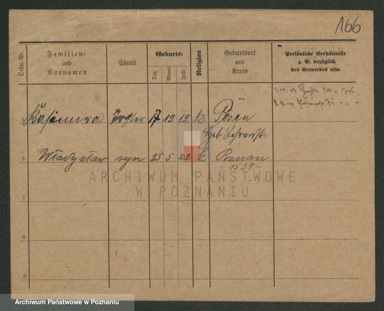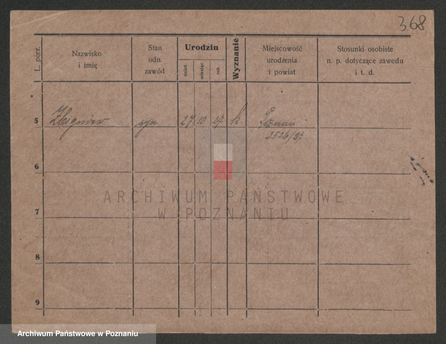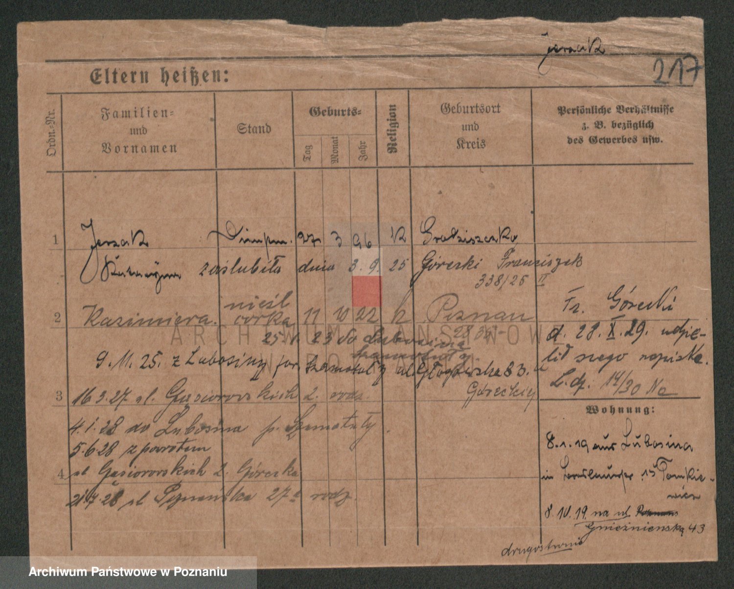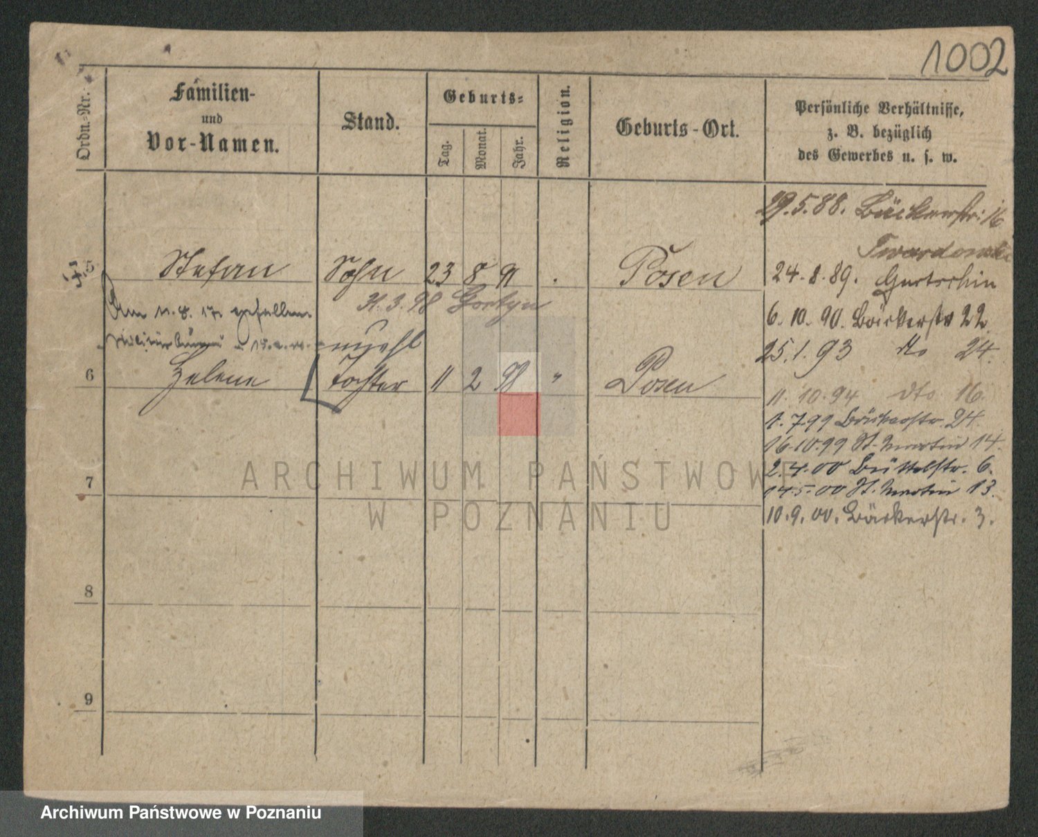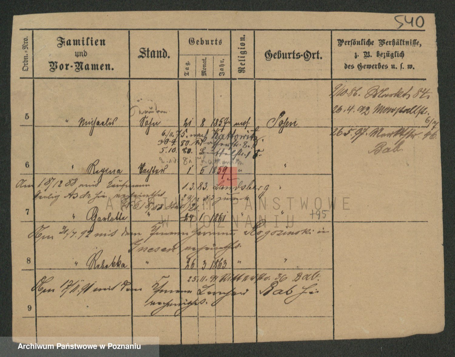 Podgląd karty osobowej dostępny jest po kliknięciu na nazwisko lub ikonkę karty. Można dokonywać powiększenia (ikony na górze) lub przechodzić między kolejnymi skanami (strzałki po bokach).