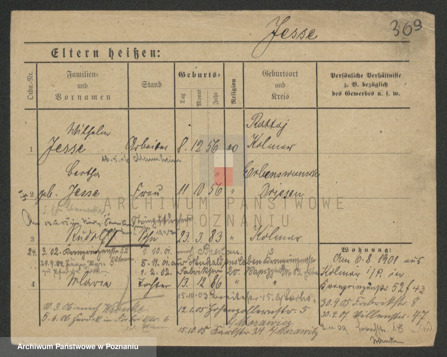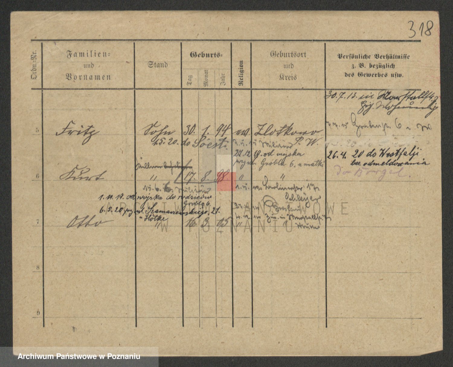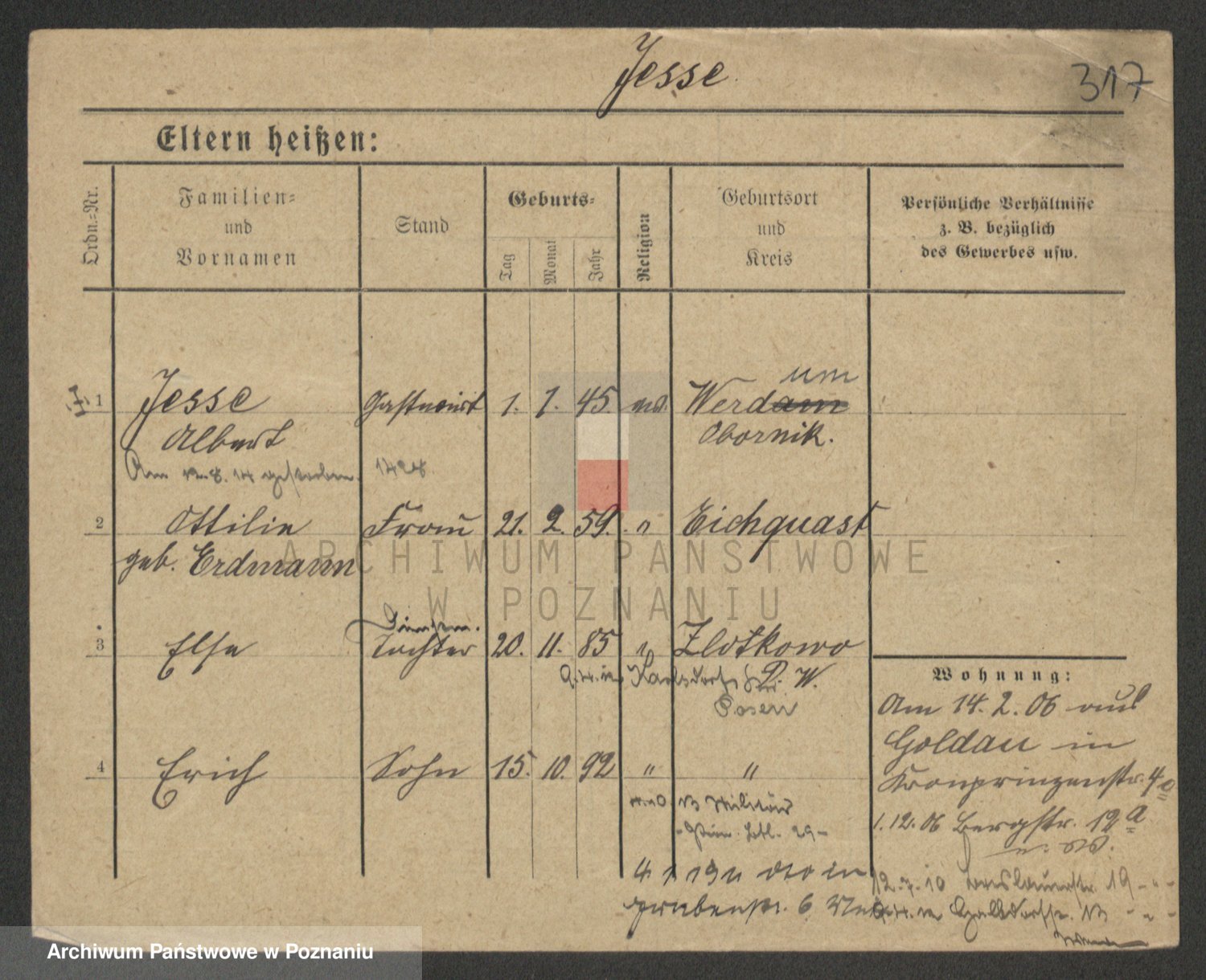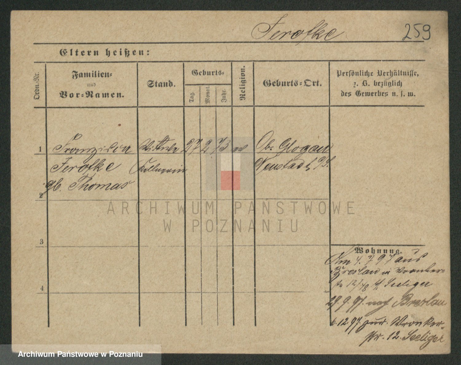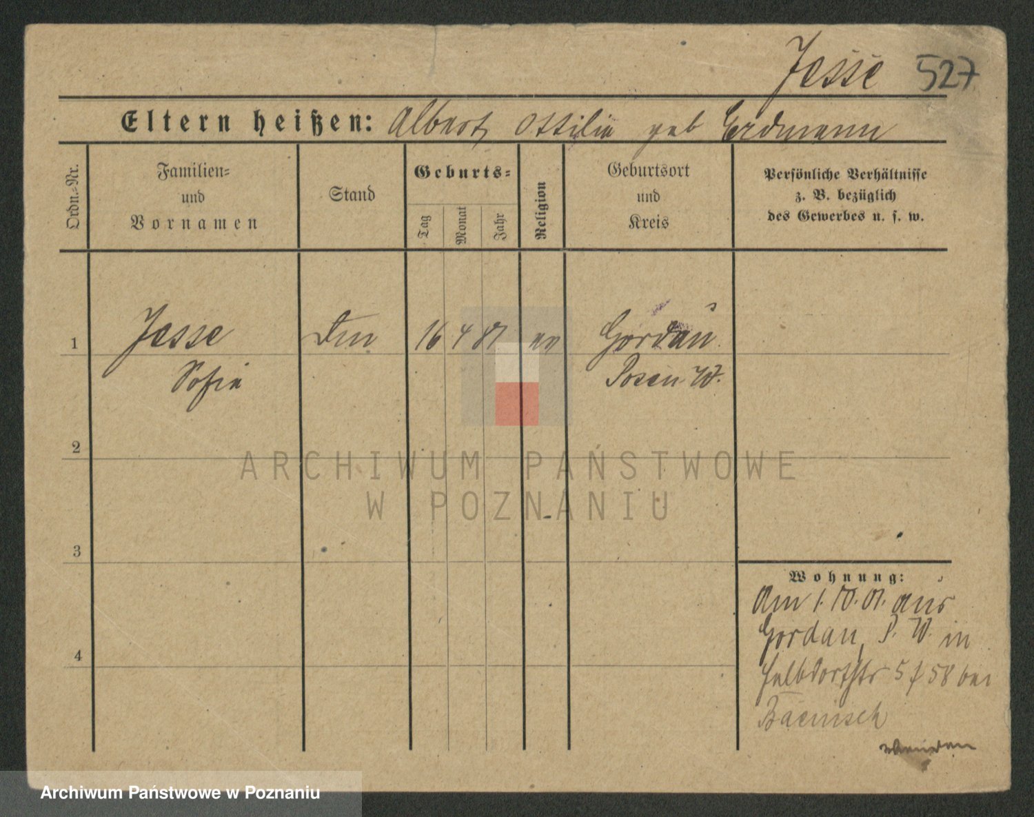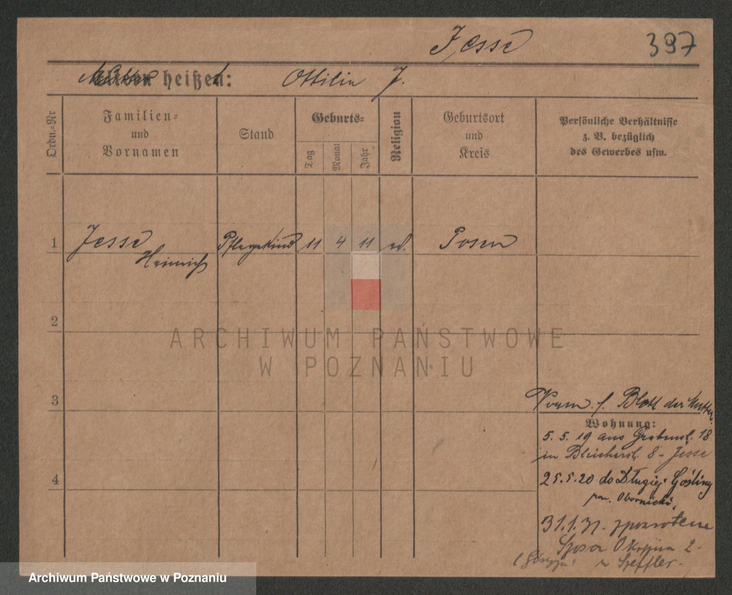 Podgląd karty osobowej dostępny jest po kliknięciu na nazwisko lub ikonkę karty. Można dokonywać powiększenia (ikony na górze) lub przechodzić między kolejnymi skanami (strzałki po bokach).