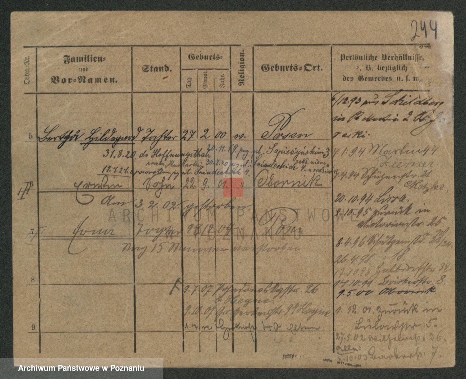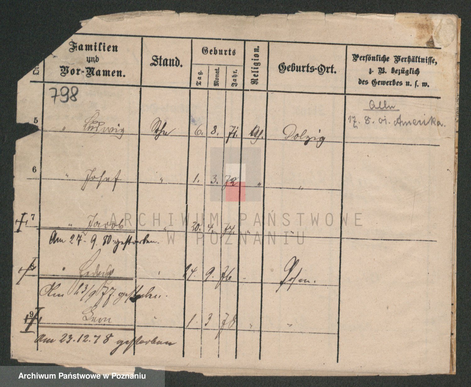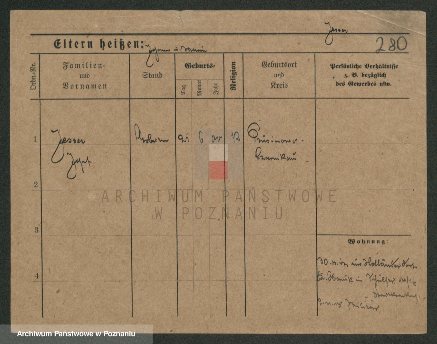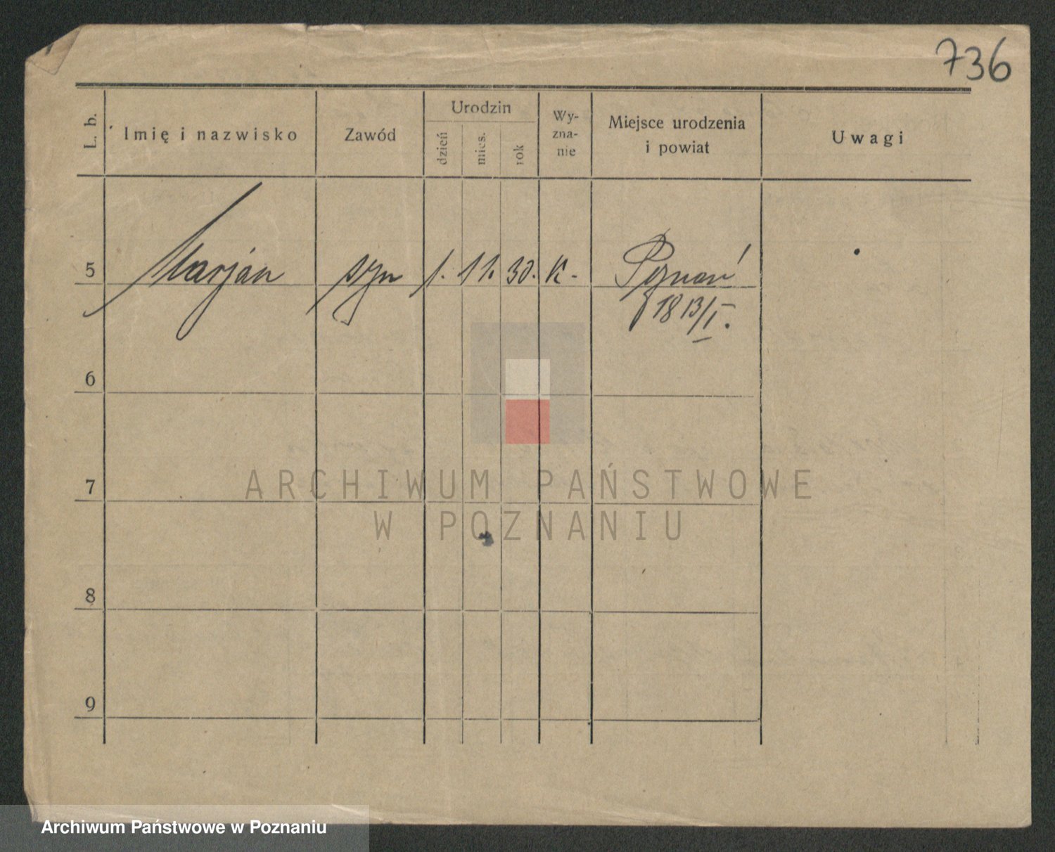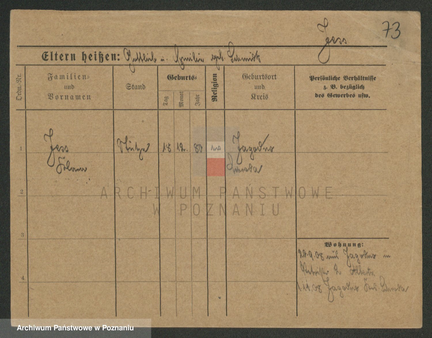 Podgląd karty osobowej dostępny jest po kliknięciu na nazwisko lub ikonkę karty. Można dokonywać powiększenia (ikony na górze) lub przechodzić między kolejnymi skanami (strzałki po bokach).