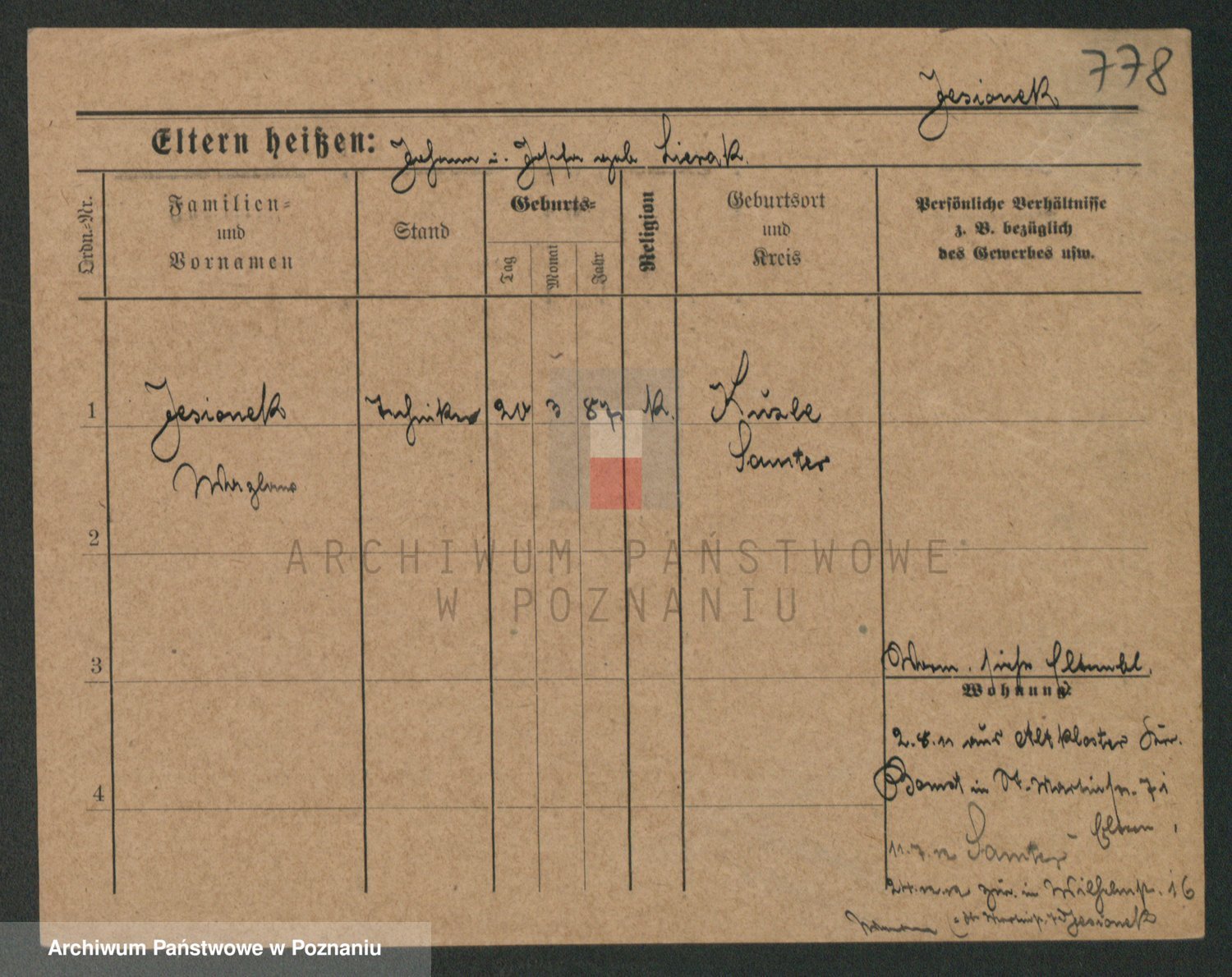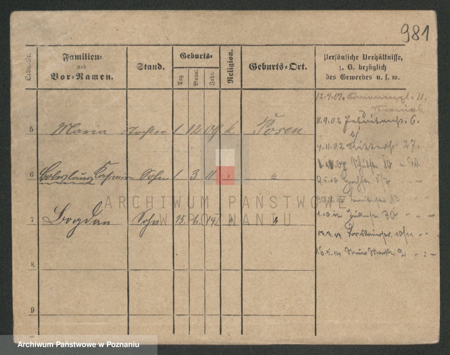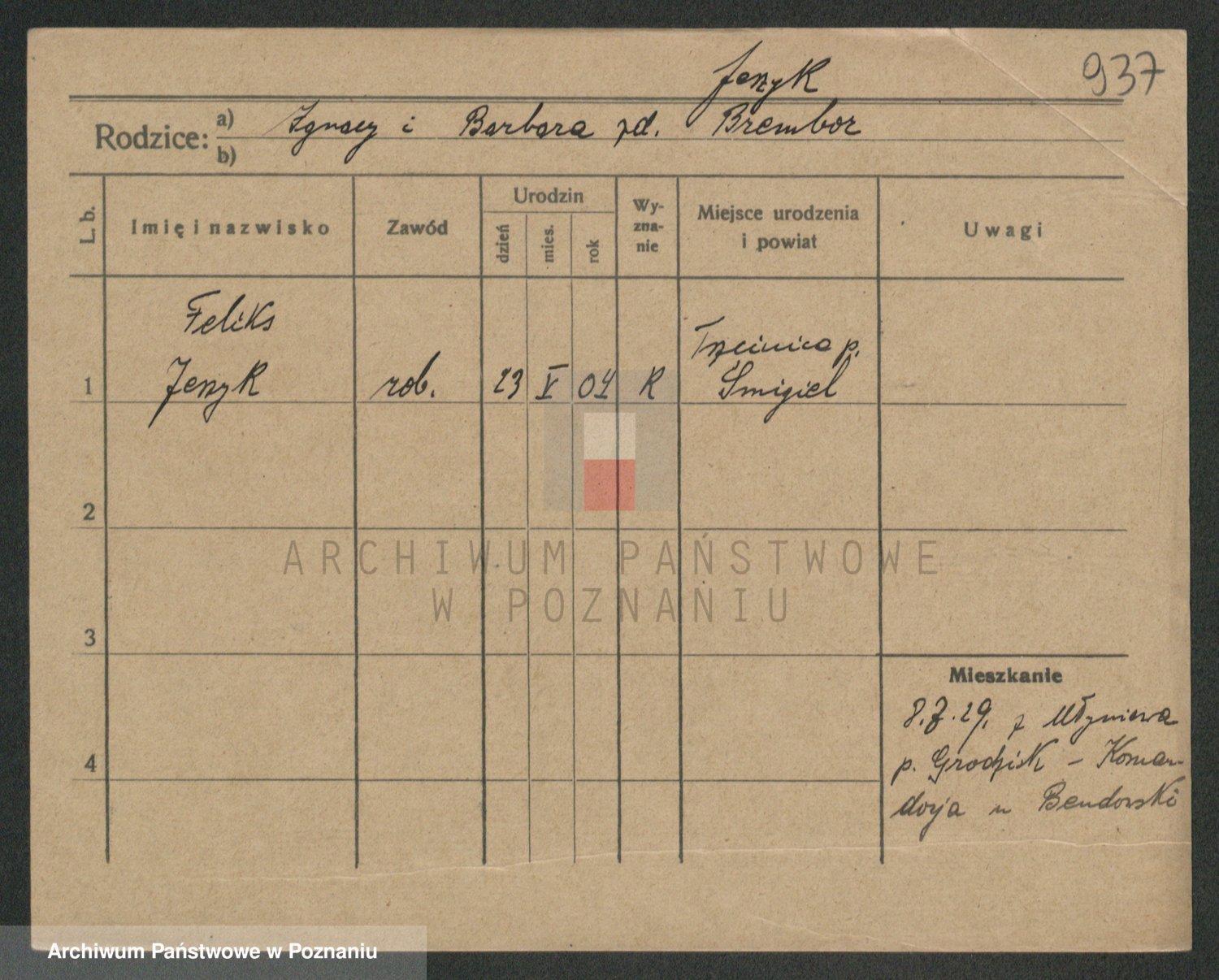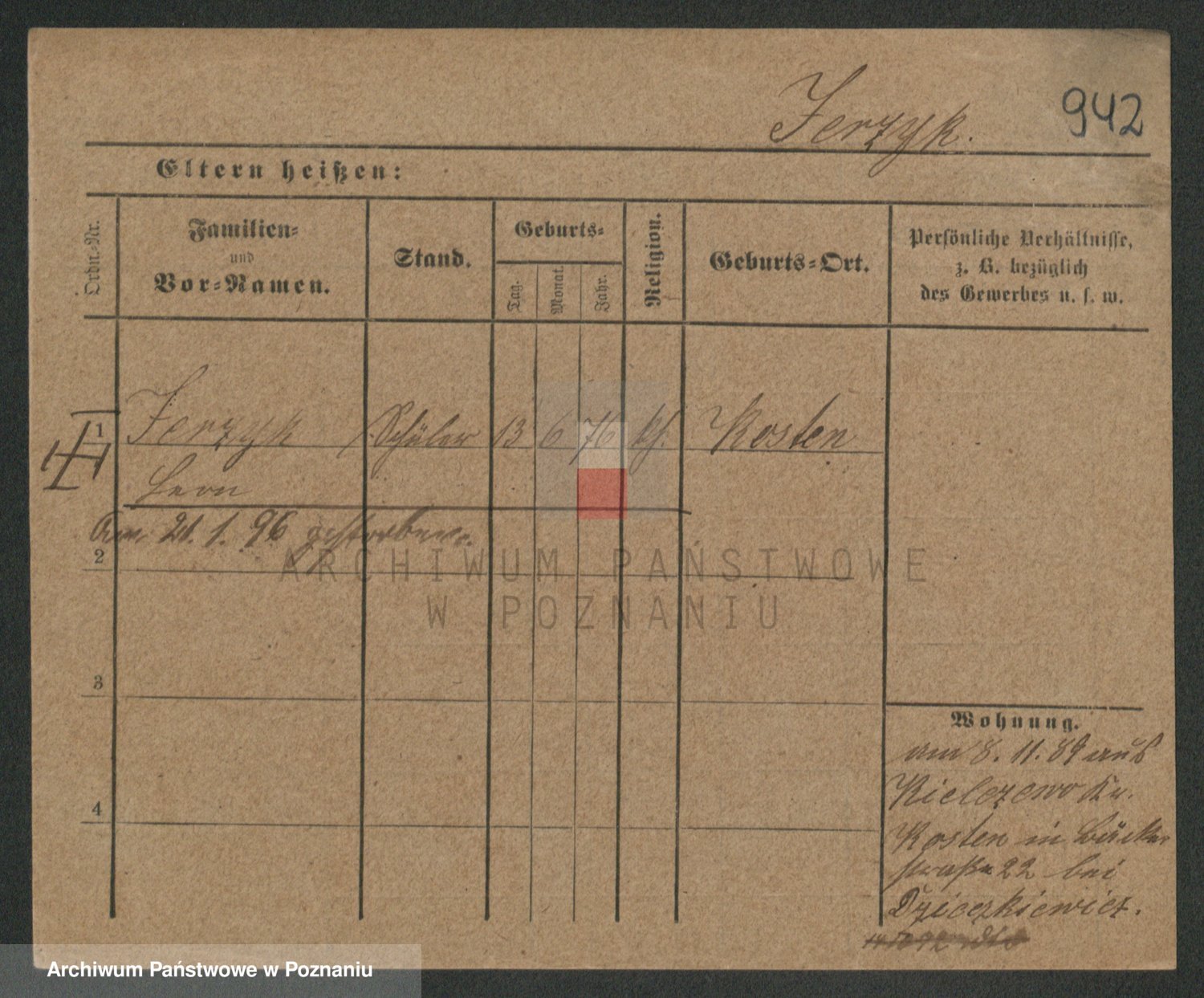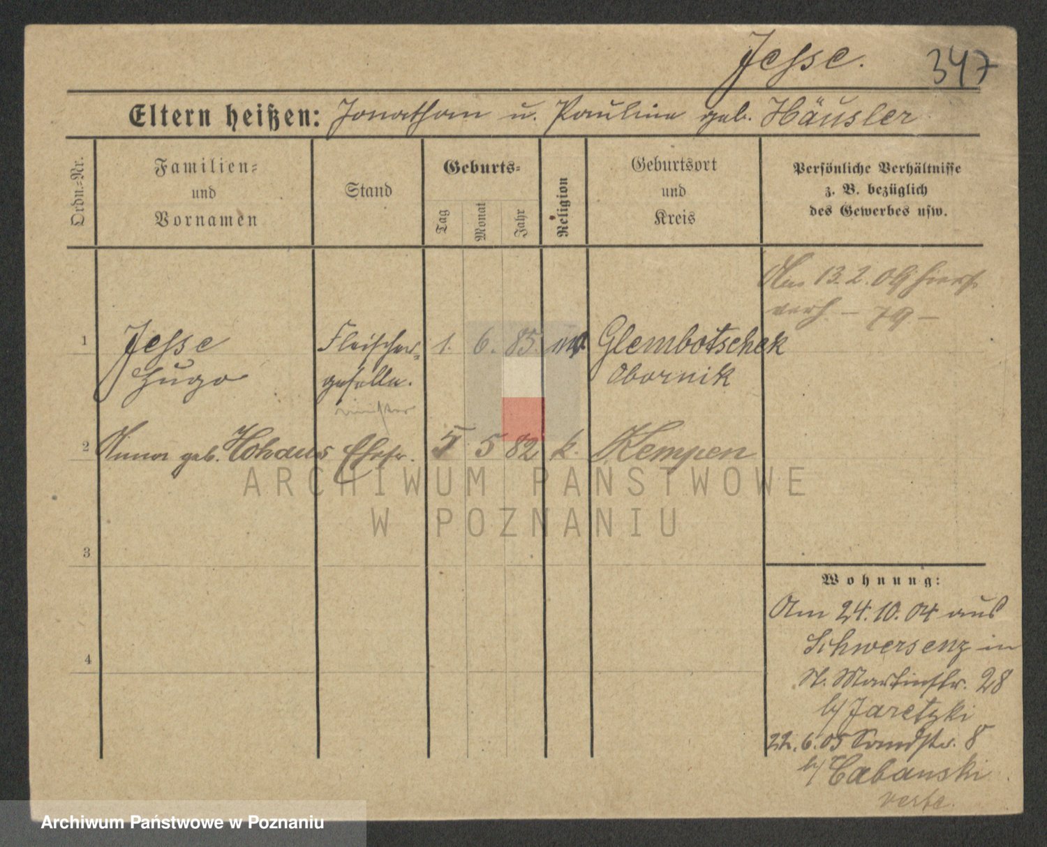 Podgląd karty osobowej dostępny jest po kliknięciu na nazwisko lub ikonkę karty. Można dokonywać powiększenia (ikony na górze) lub przechodzić między kolejnymi skanami (strzałki po bokach).