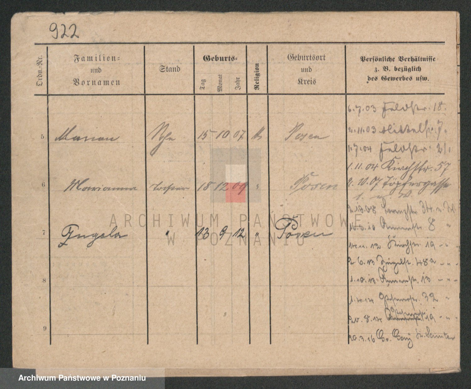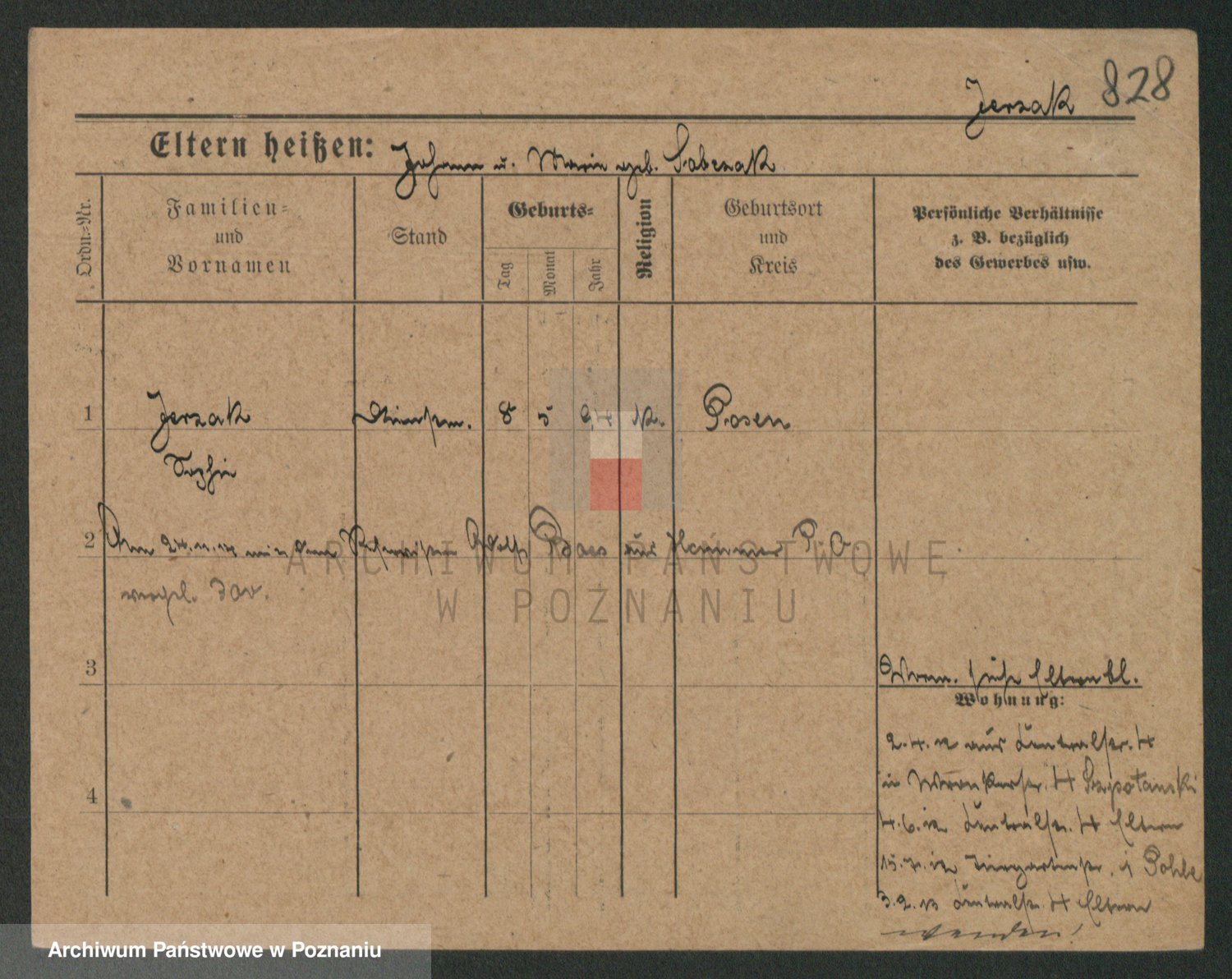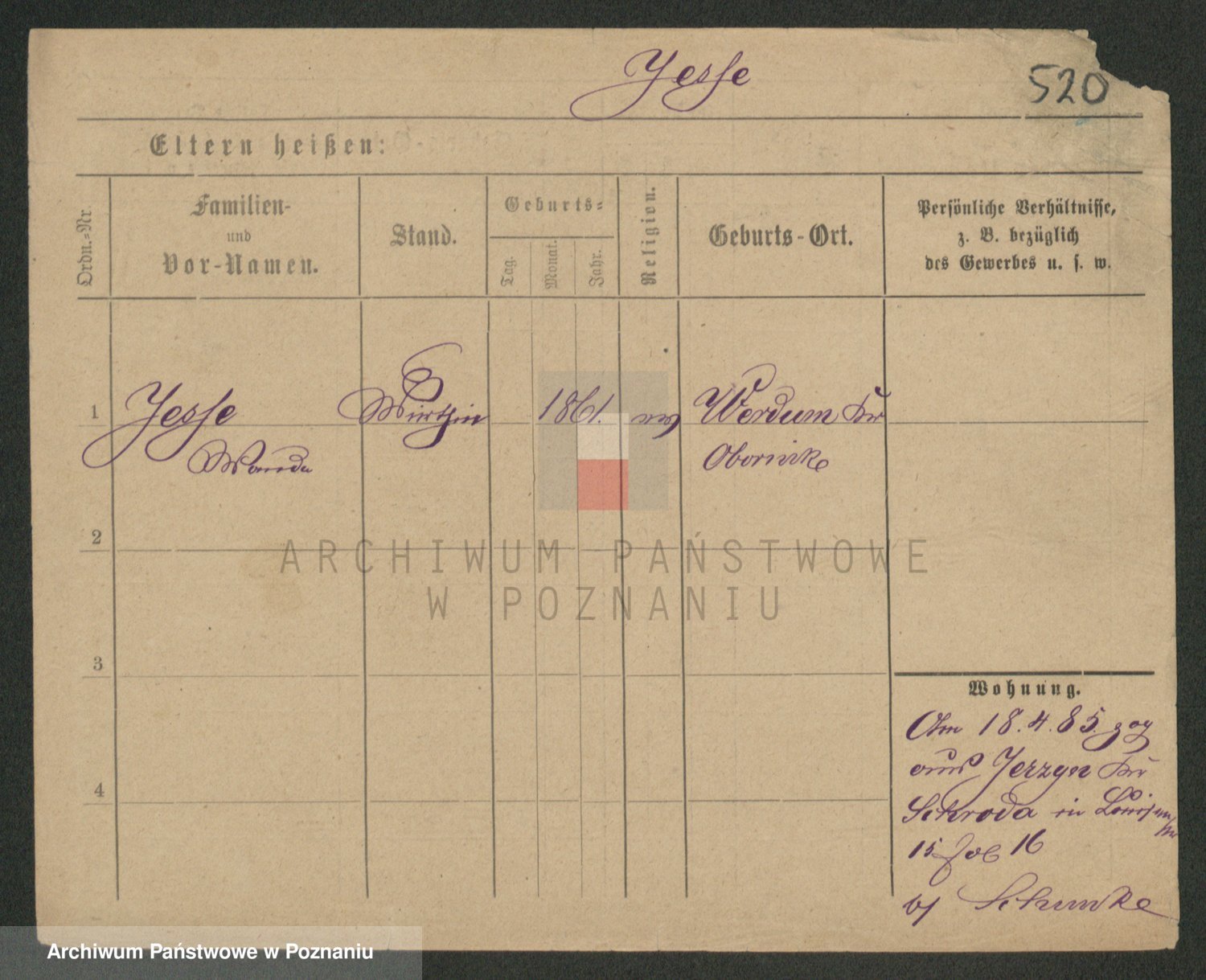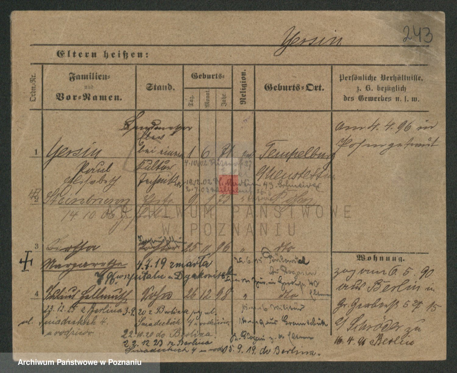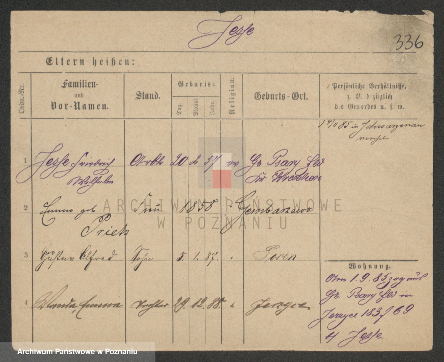 Podgląd karty osobowej dostępny jest po kliknięciu na nazwisko lub ikonkę karty. Można dokonywać powiększenia (ikony na górze) lub przechodzić między kolejnymi skanami (strzałki po bokach).