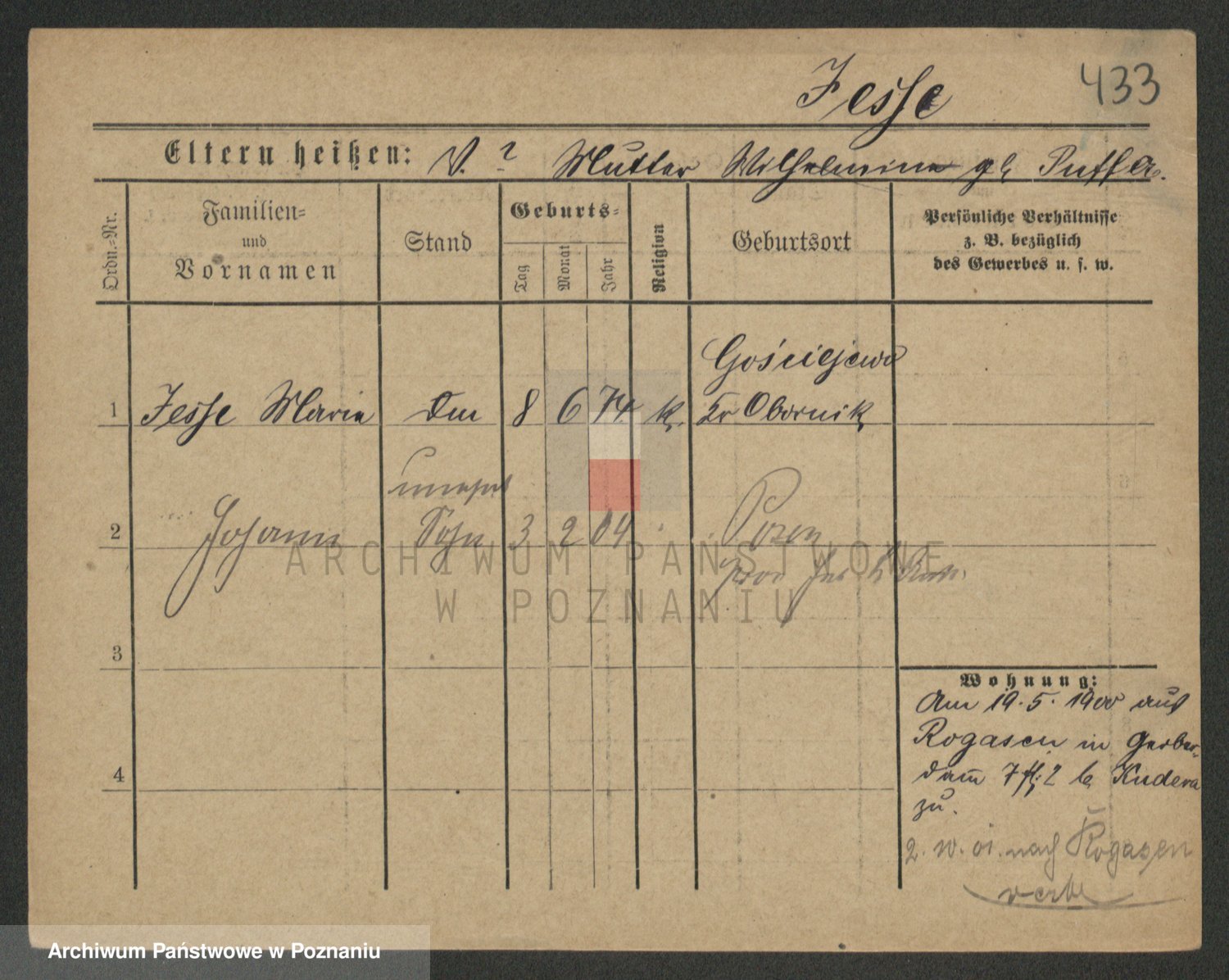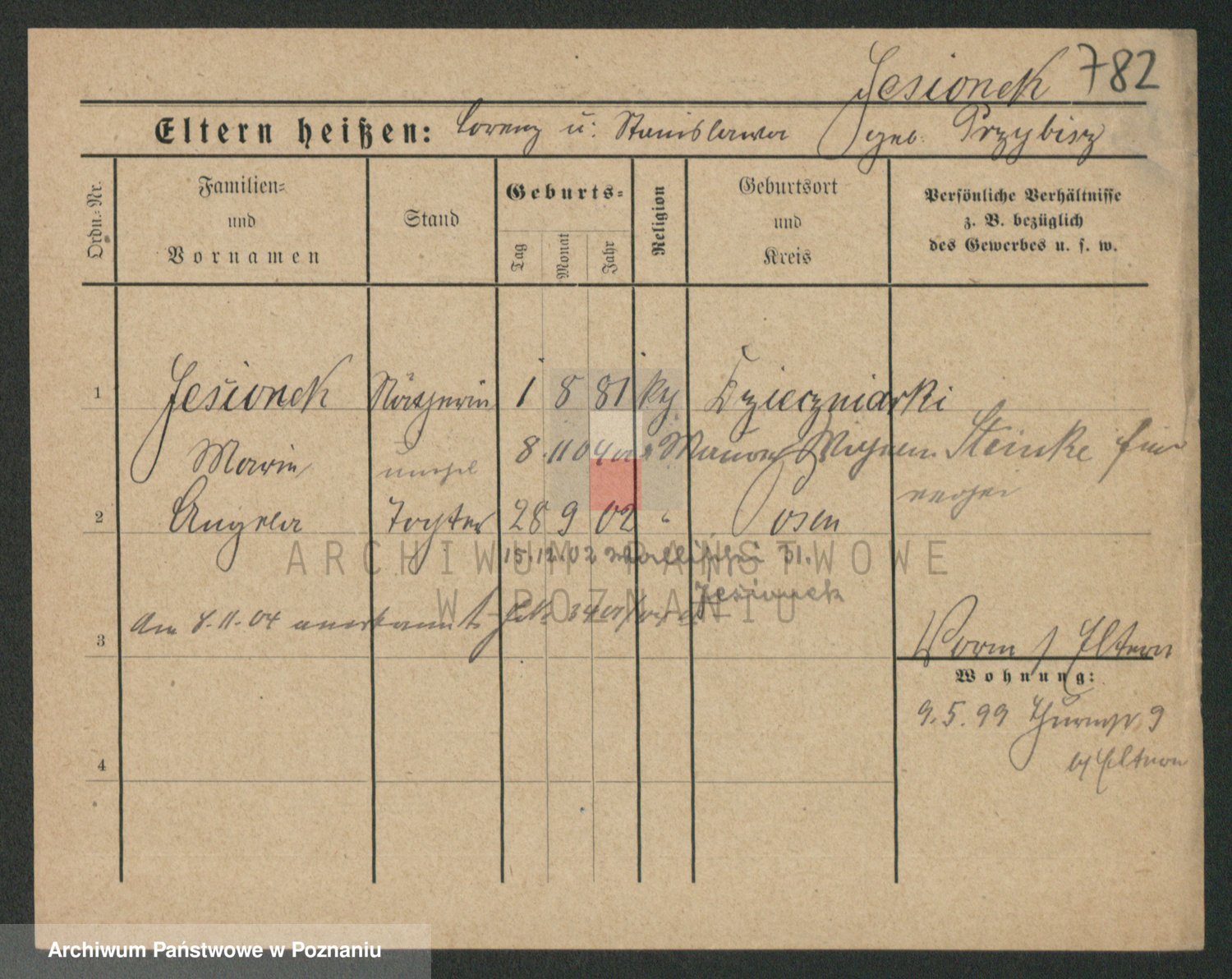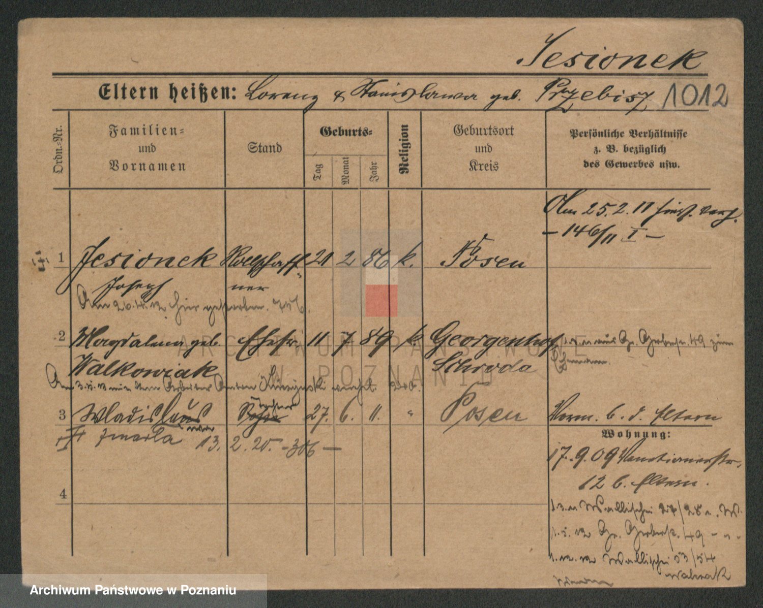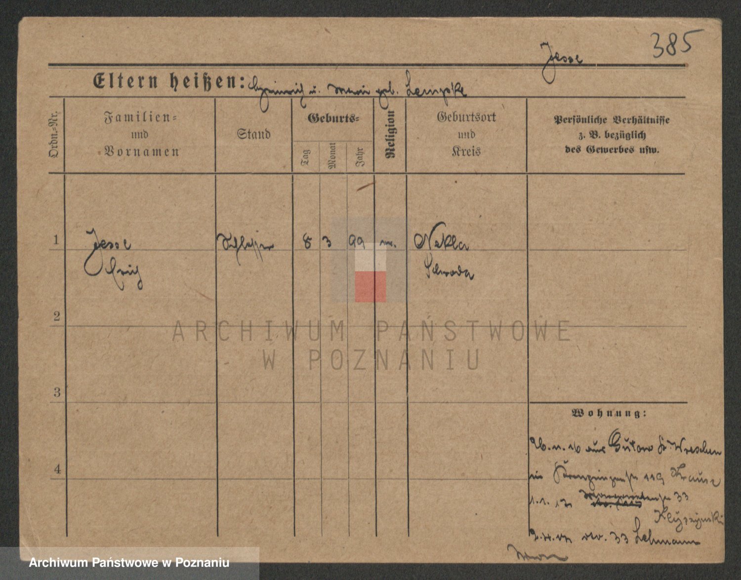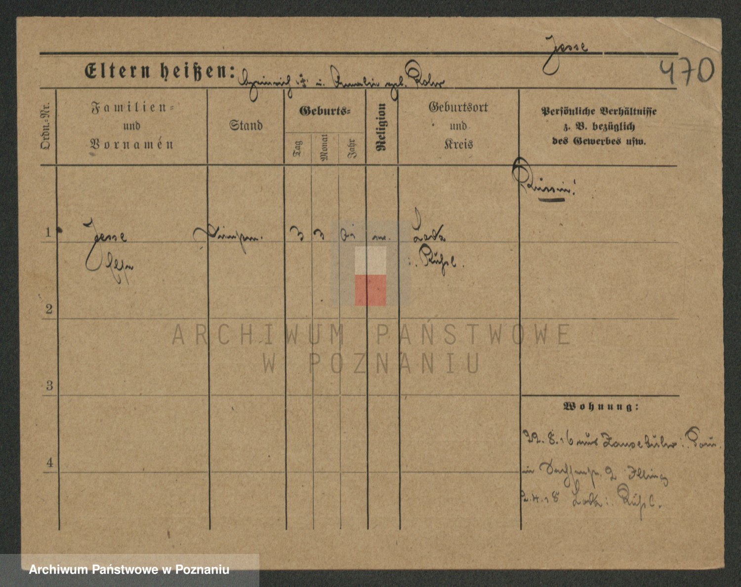 Podgląd karty osobowej dostępny jest po kliknięciu na nazwisko lub ikonkę karty. Można dokonywać powiększenia (ikony na górze) lub przechodzić między kolejnymi skanami (strzałki po bokach).