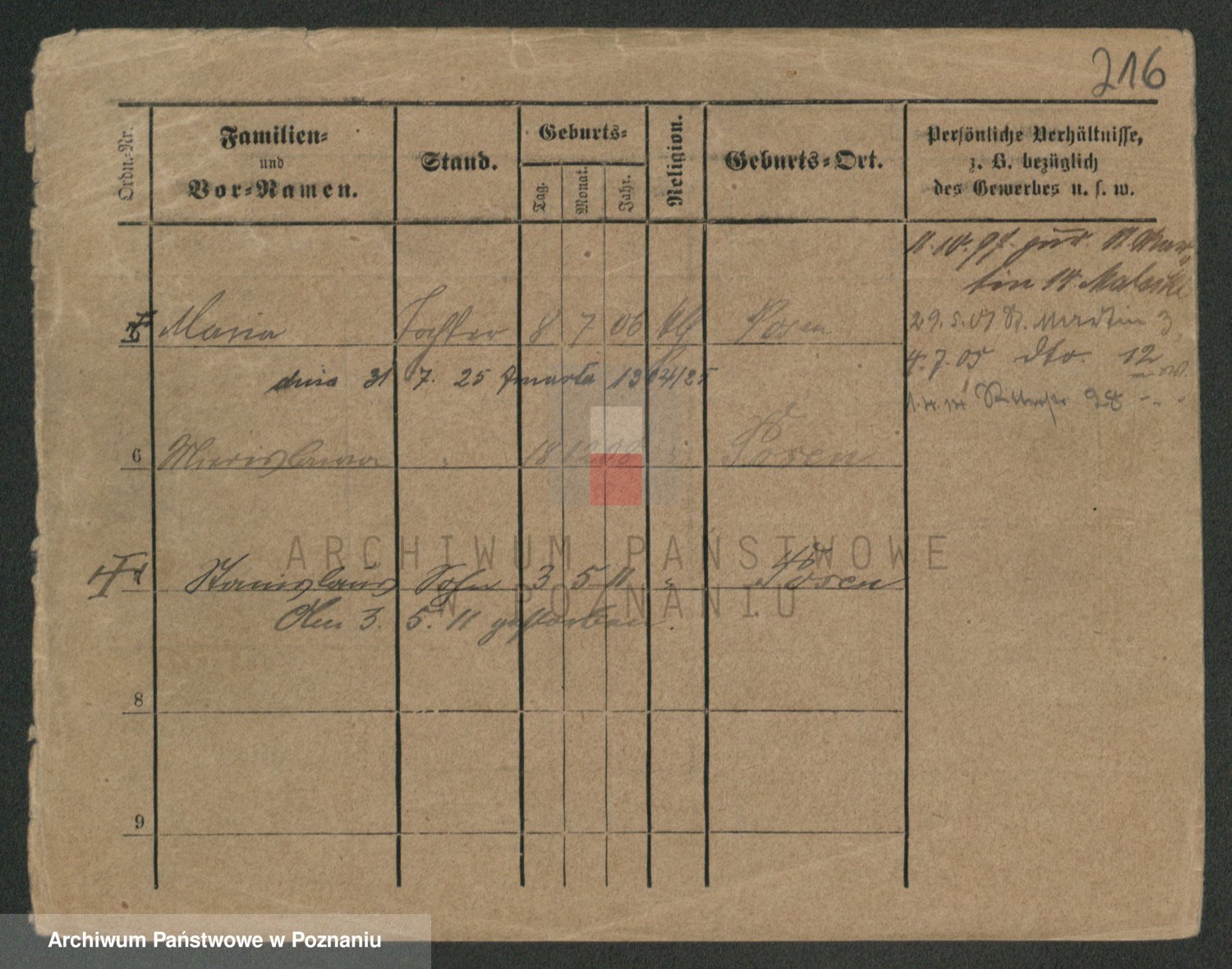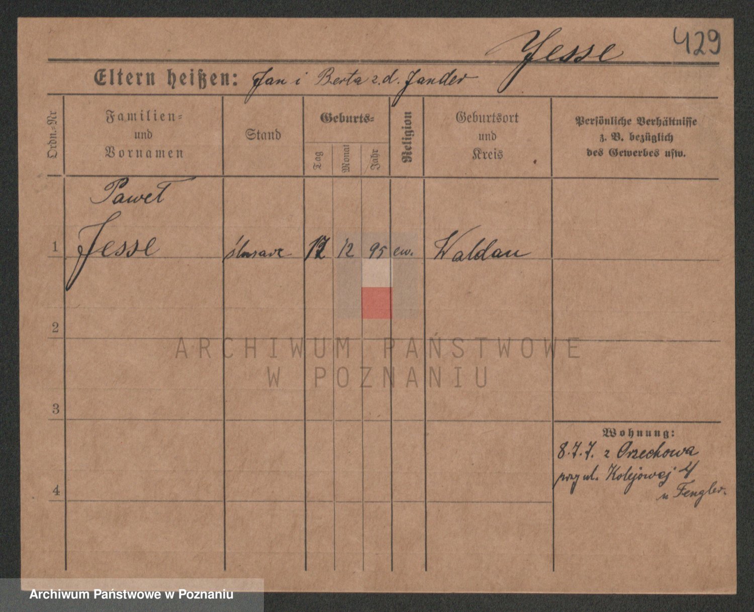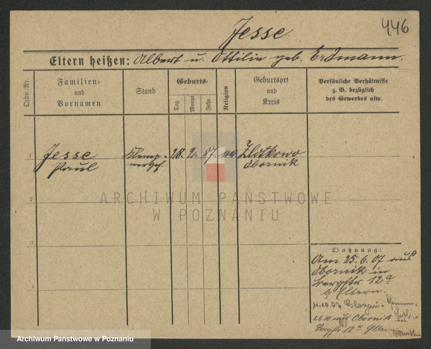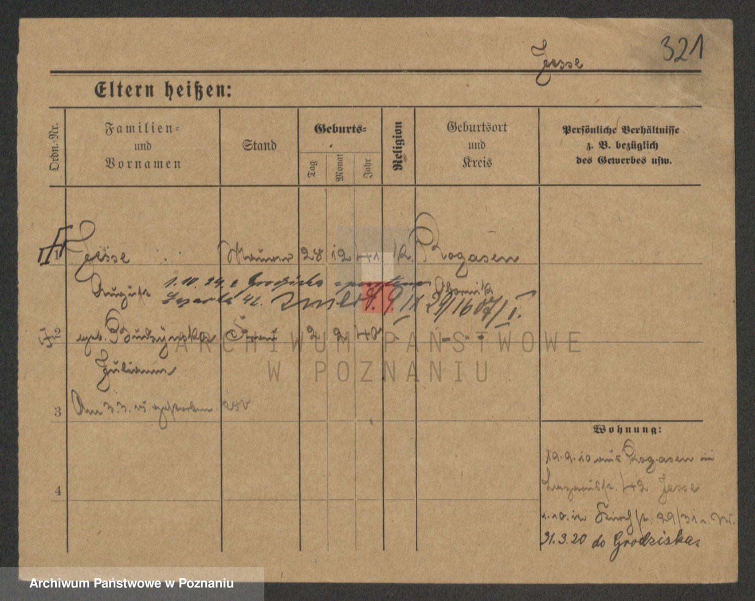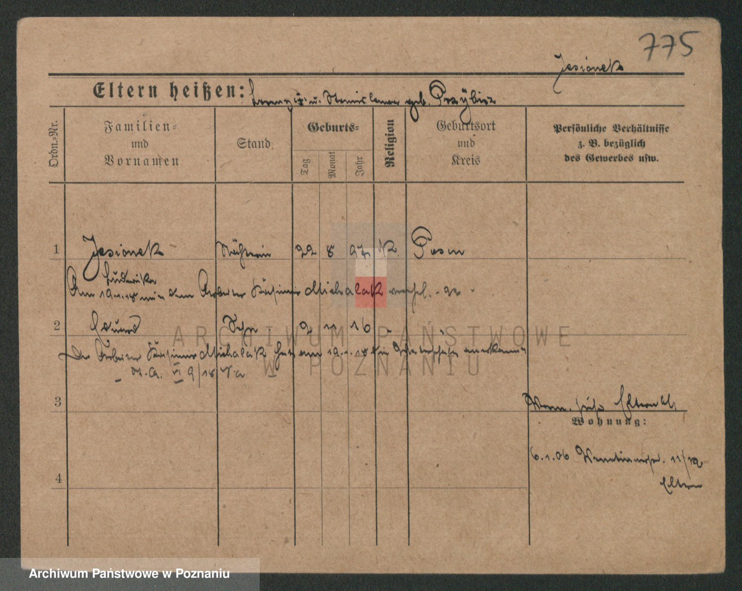 Podgląd karty osobowej dostępny jest po kliknięciu na nazwisko lub ikonkę karty. Można dokonywać powiększenia (ikony na górze) lub przechodzić między kolejnymi skanami (strzałki po bokach).