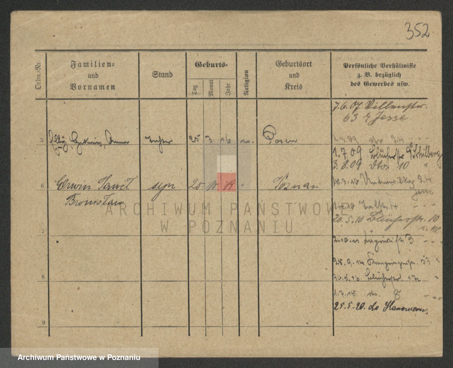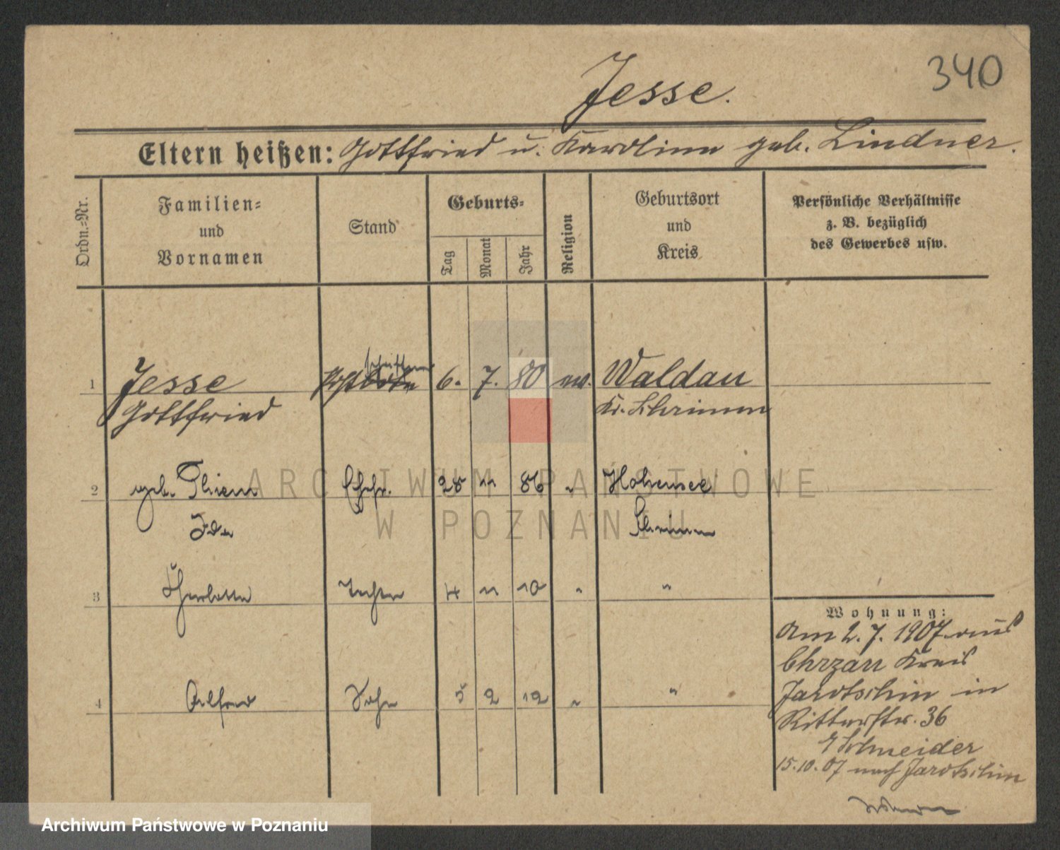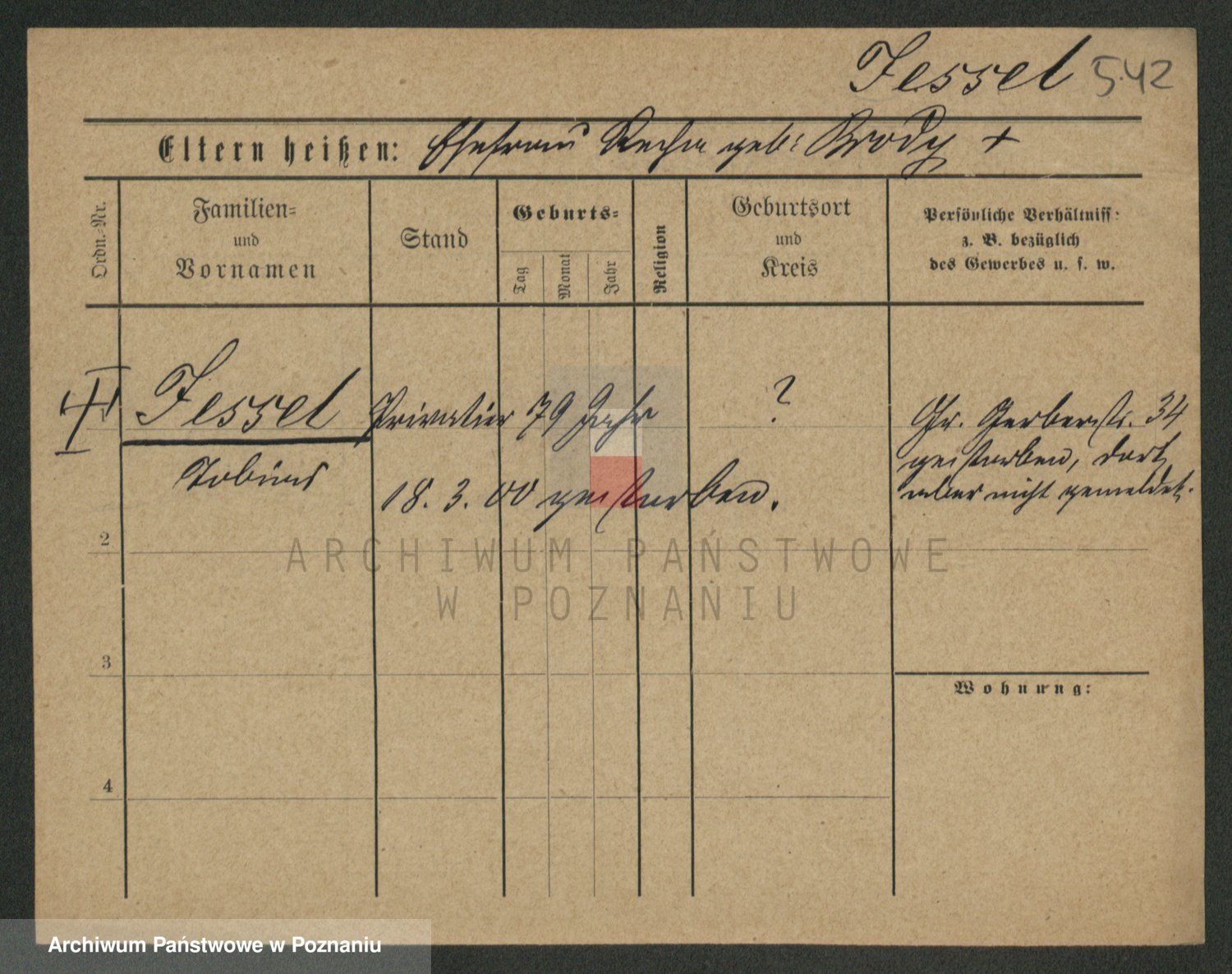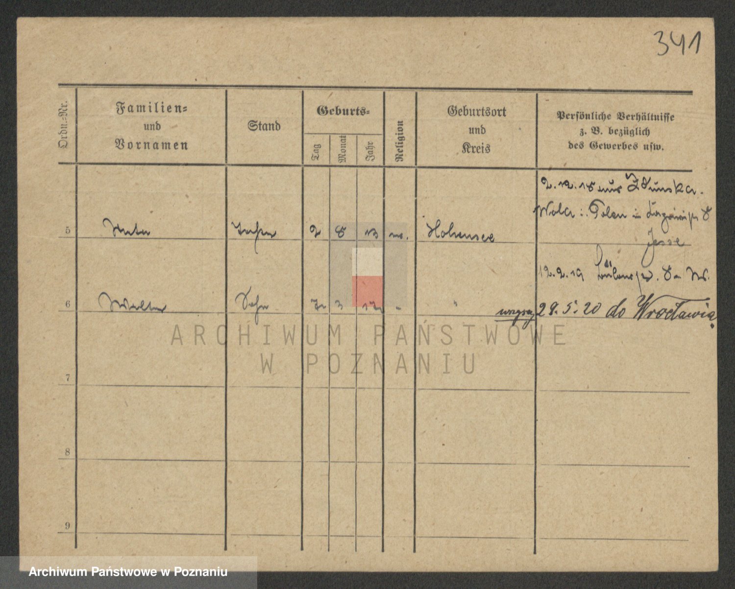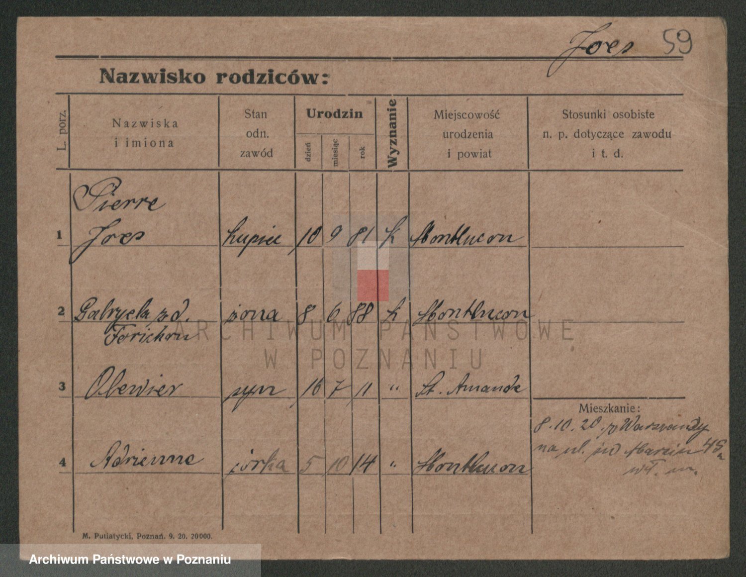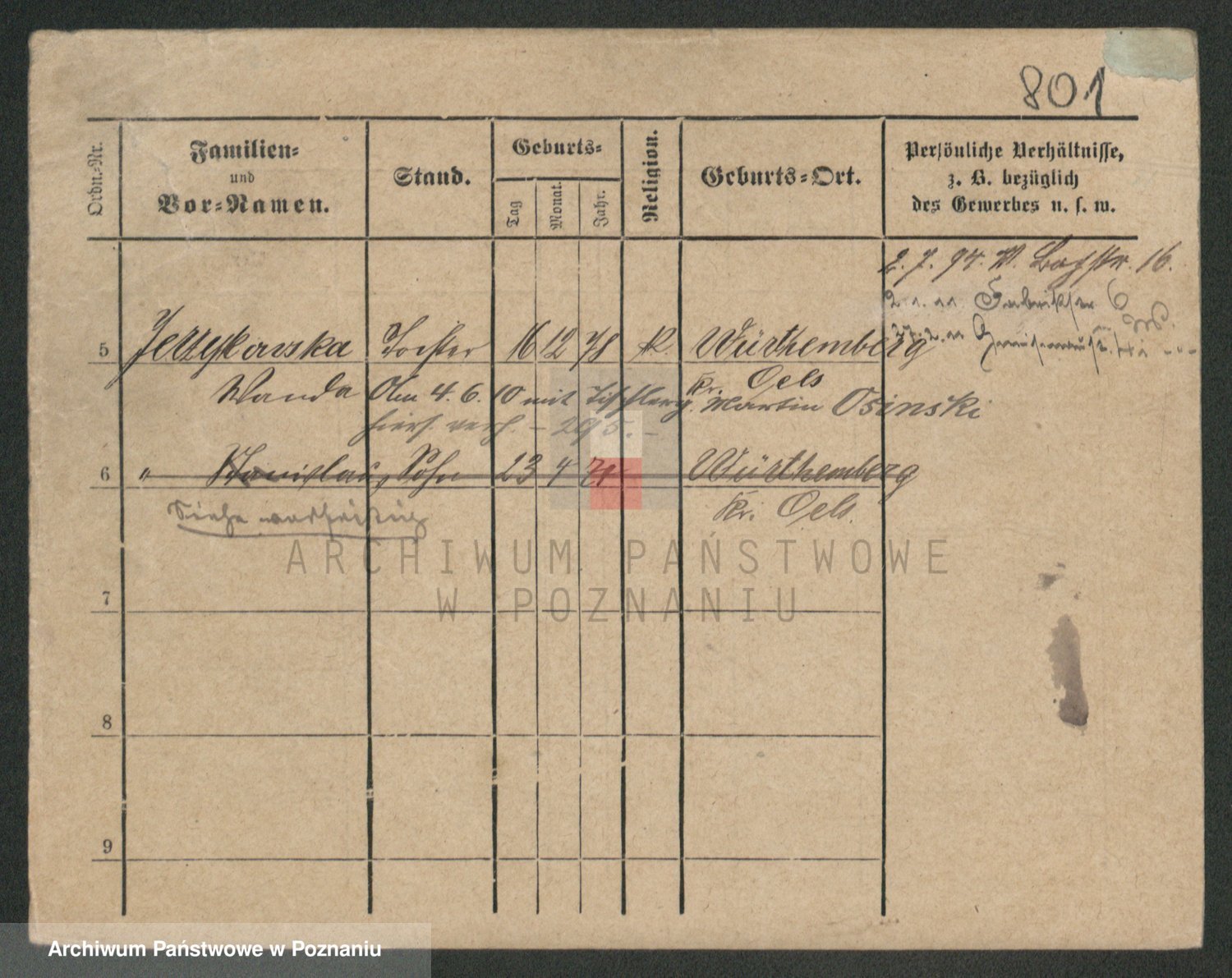 Podgląd karty osobowej dostępny jest po kliknięciu na nazwisko lub ikonkę karty. Można dokonywać powiększenia (ikony na górze) lub przechodzić między kolejnymi skanami (strzałki po bokach).