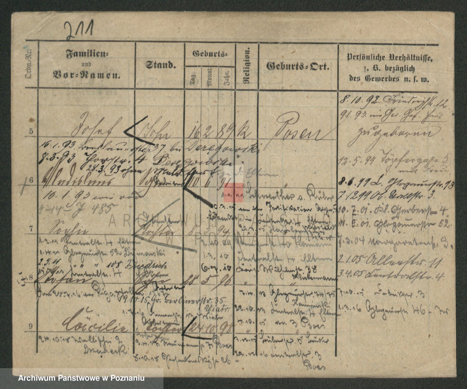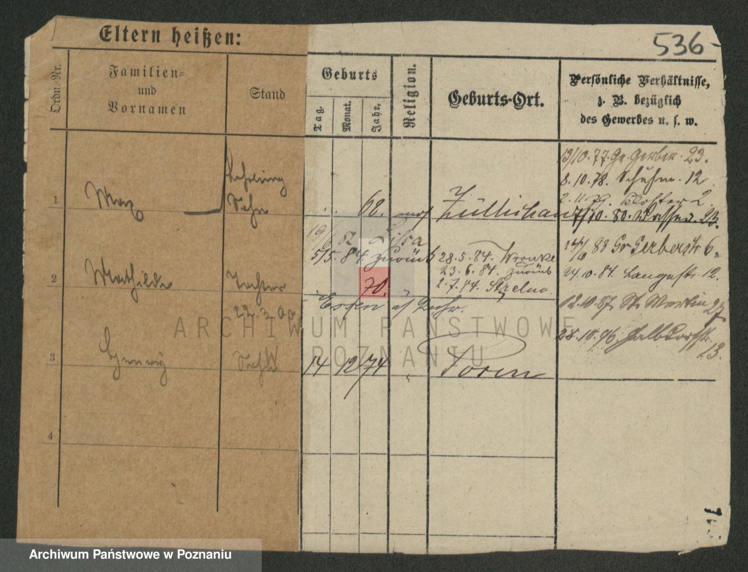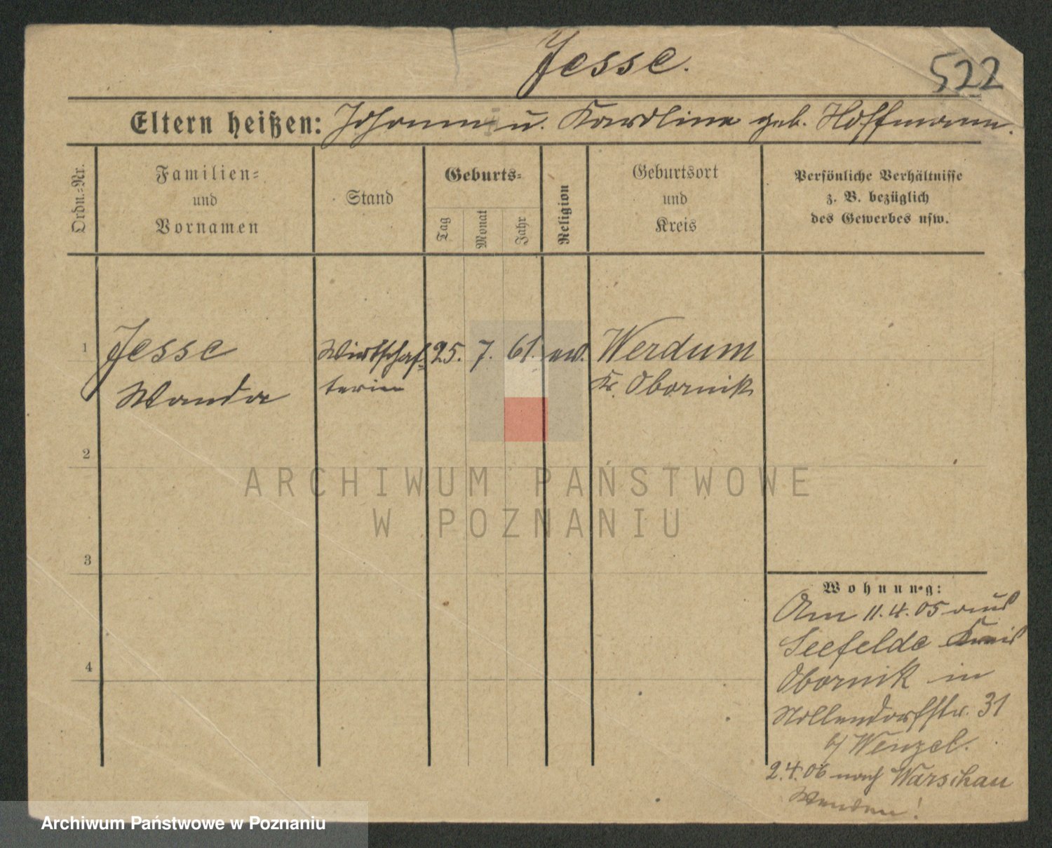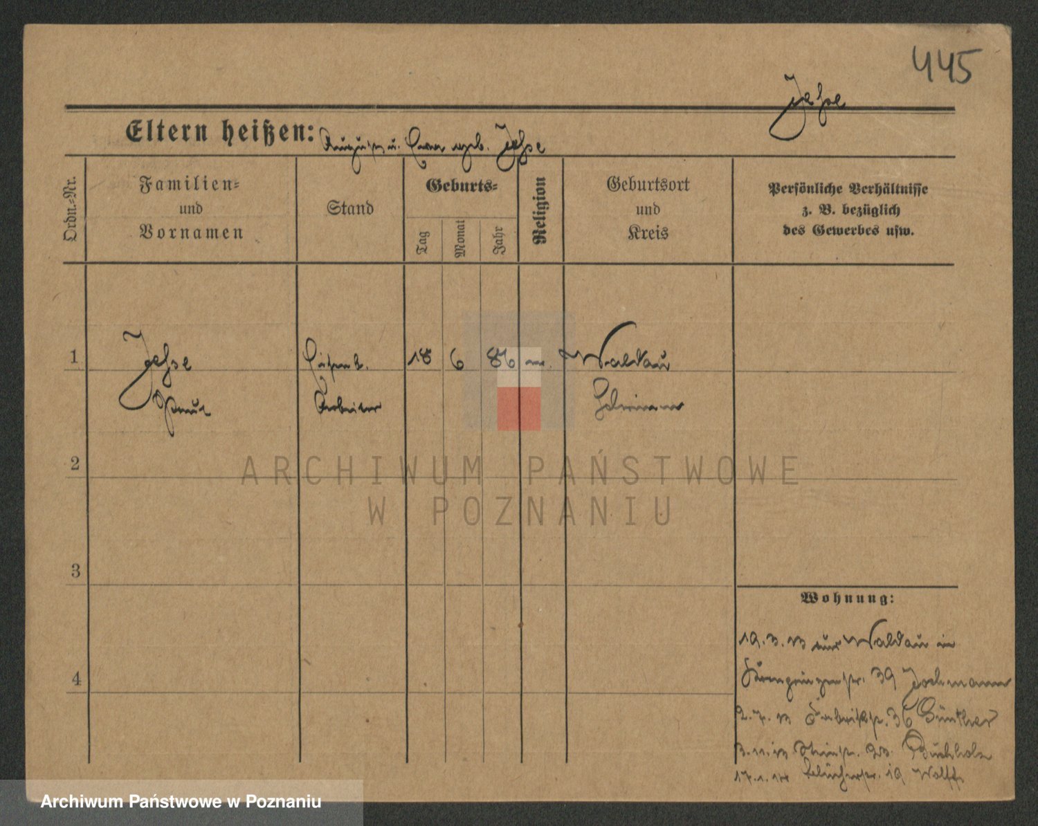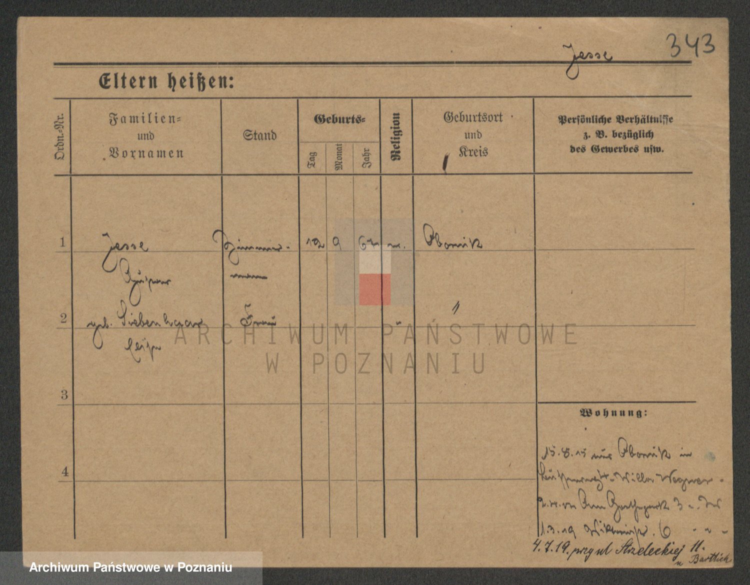Podgląd karty osobowej dostępny jest po kliknięciu na nazwisko lub ikonkę karty. Można dokonywać powiększenia (ikony na górze) lub przechodzić między kolejnymi skanami (strzałki po bokach).