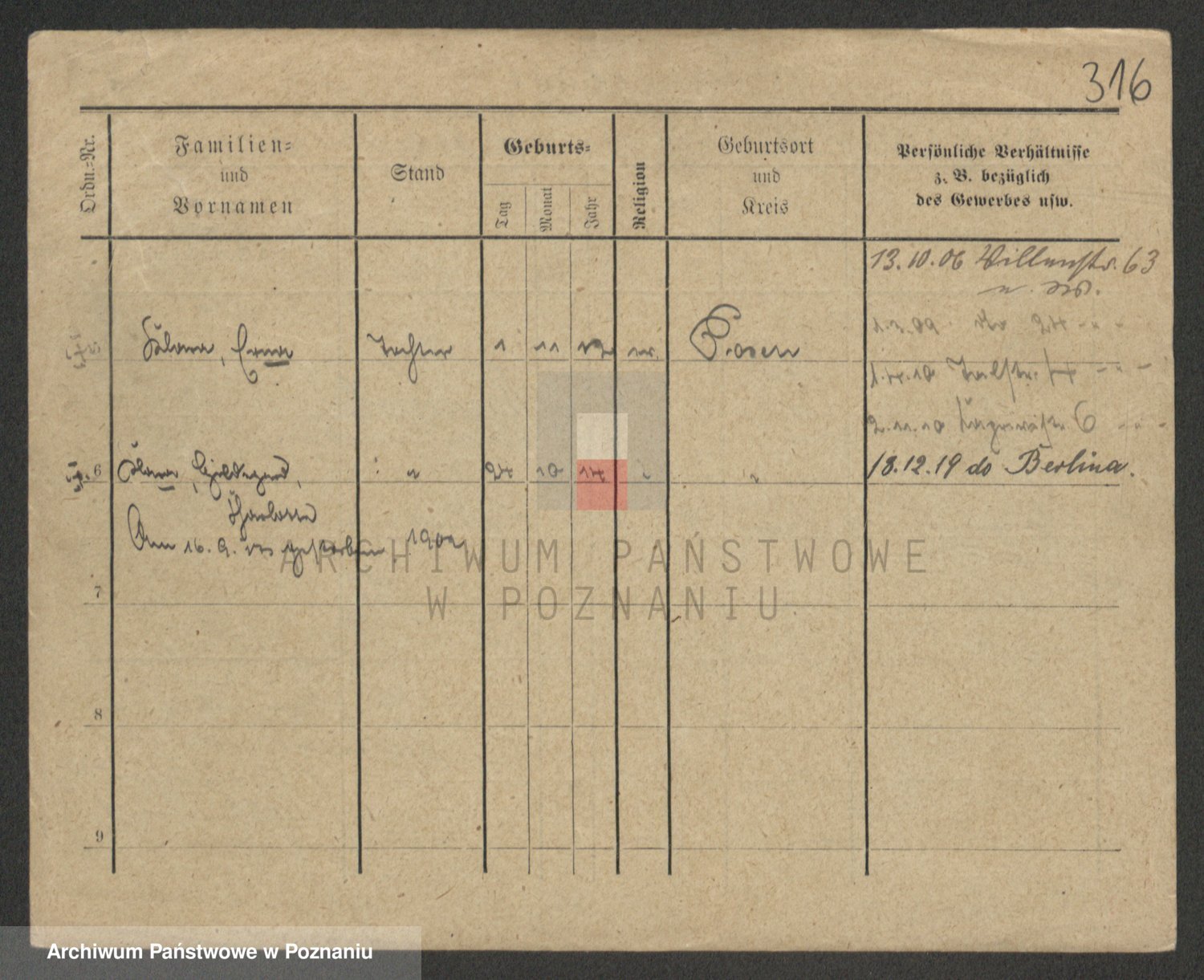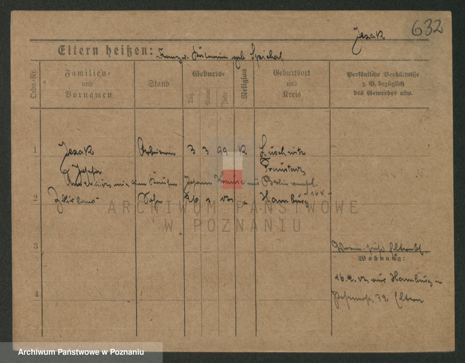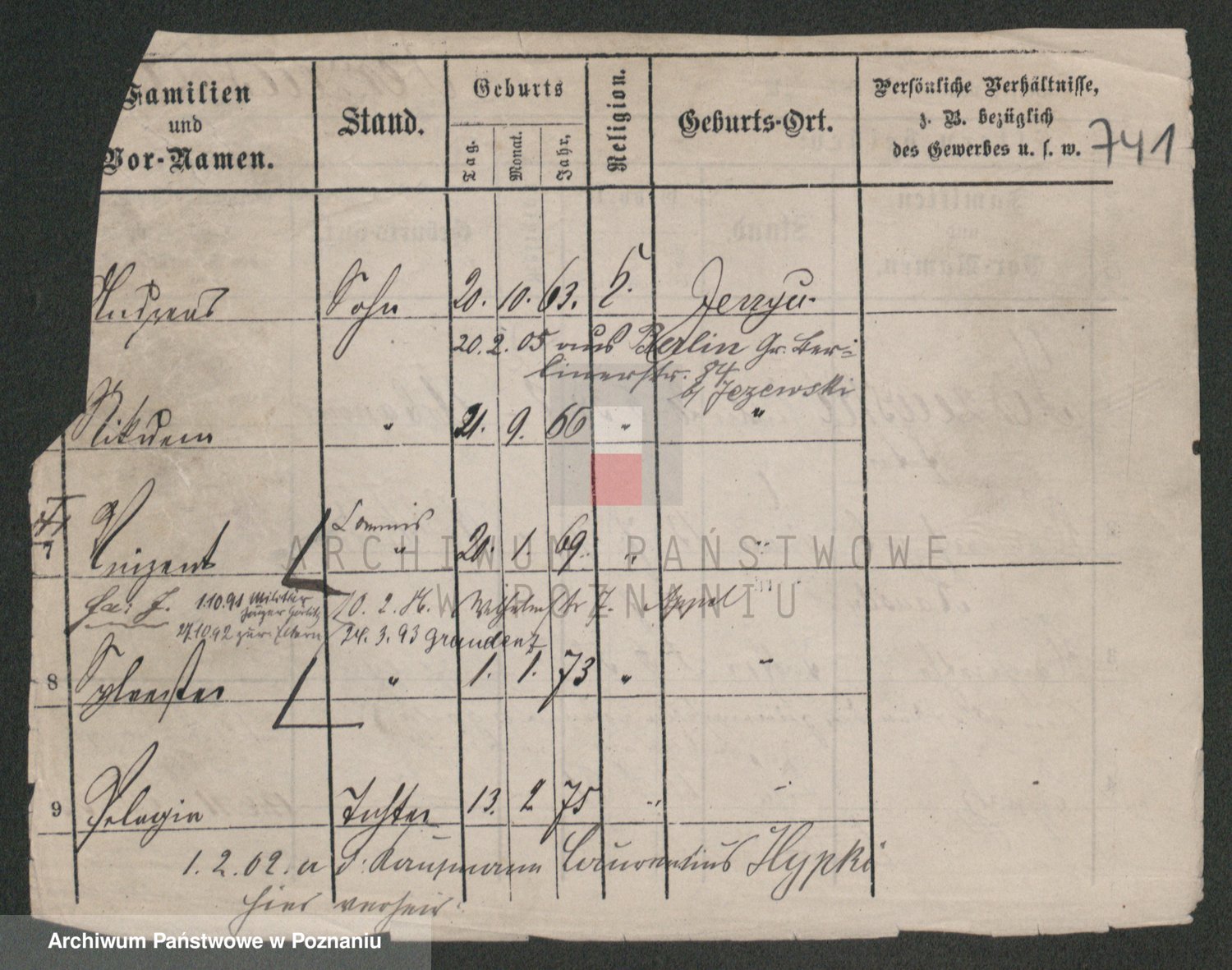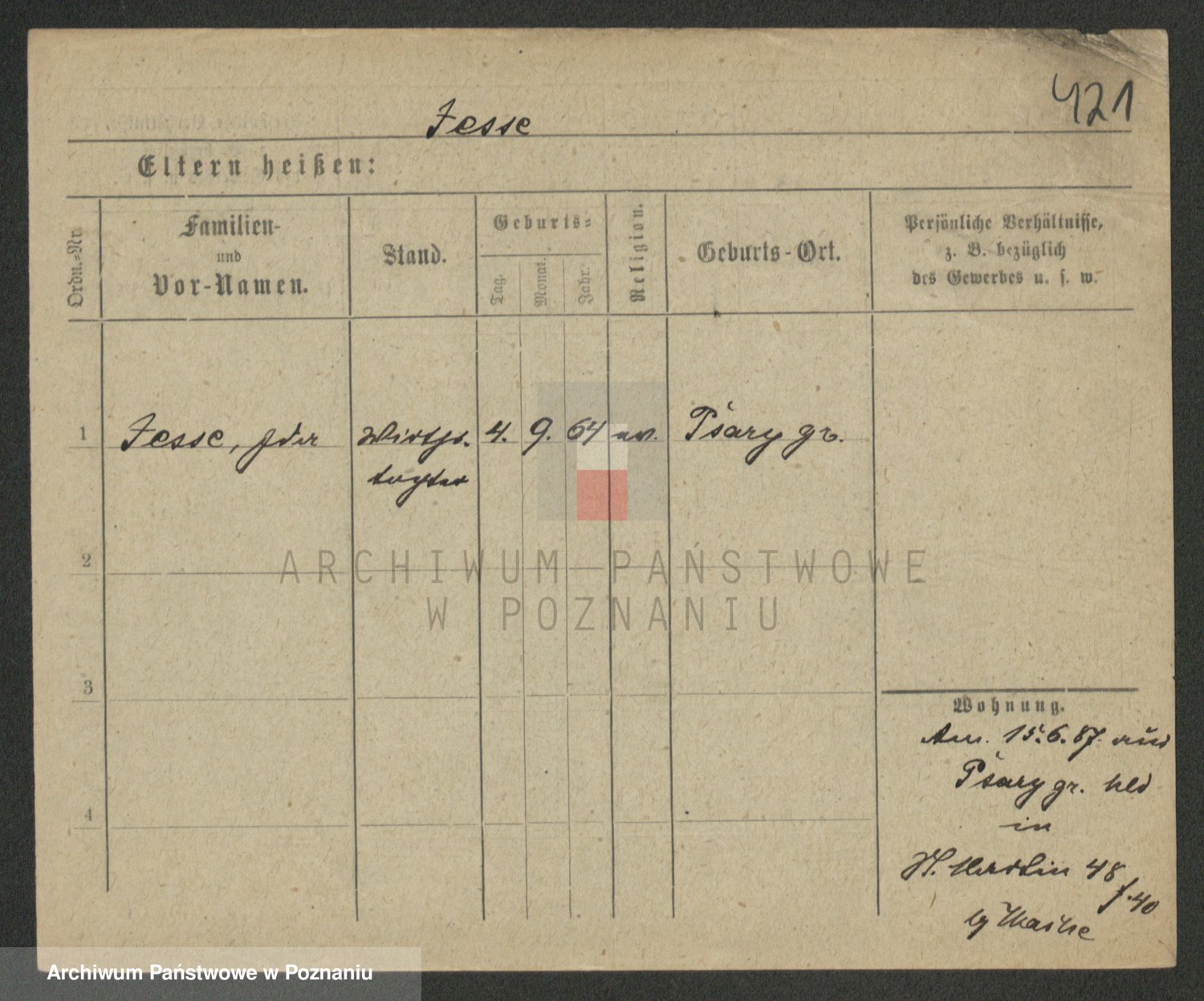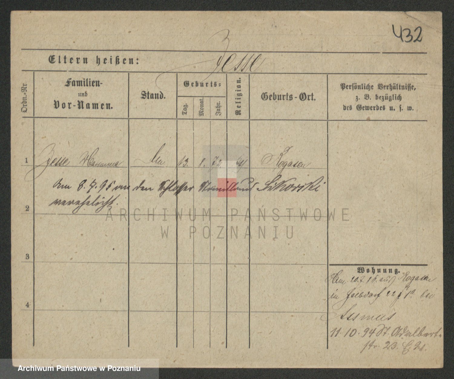 Podgląd karty osobowej dostępny jest po kliknięciu na nazwisko lub ikonkę karty. Można dokonywać powiększenia (ikony na górze) lub przechodzić między kolejnymi skanami (strzałki po bokach).