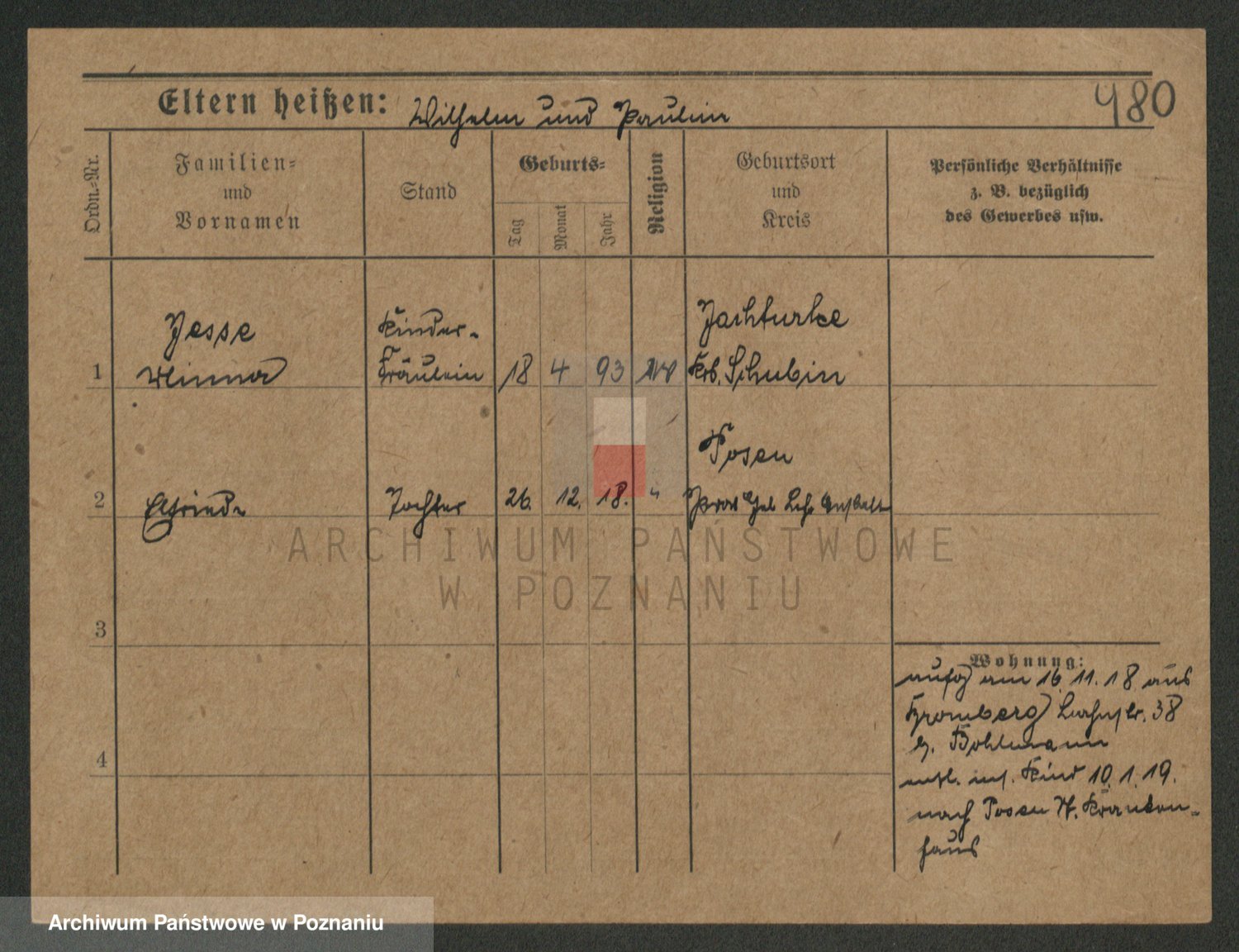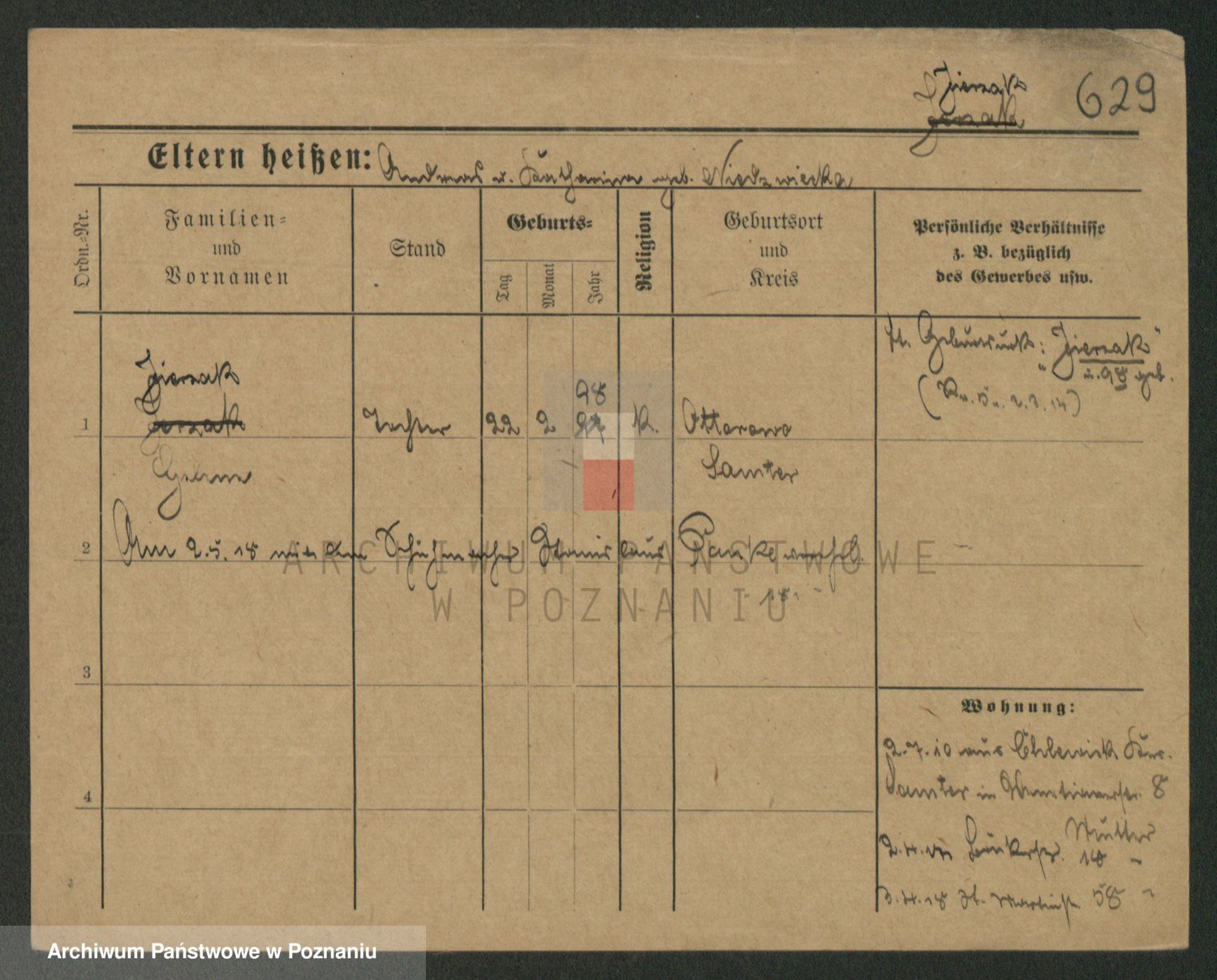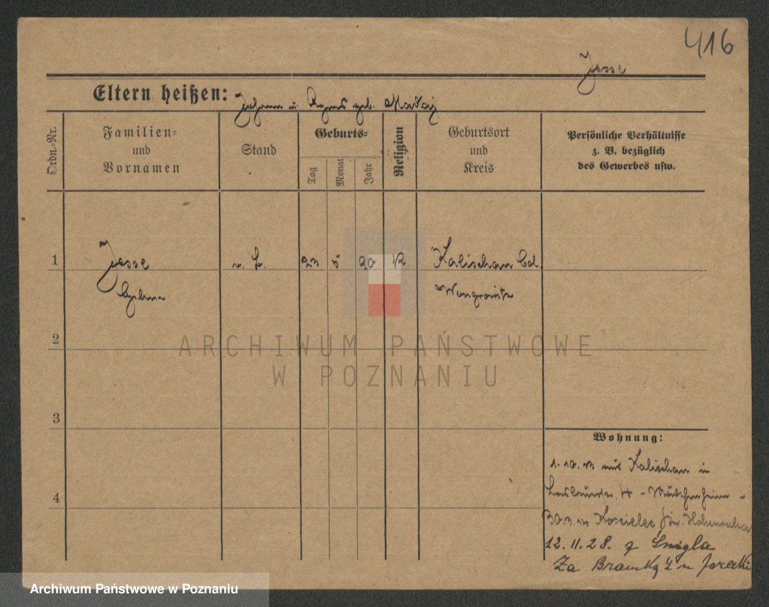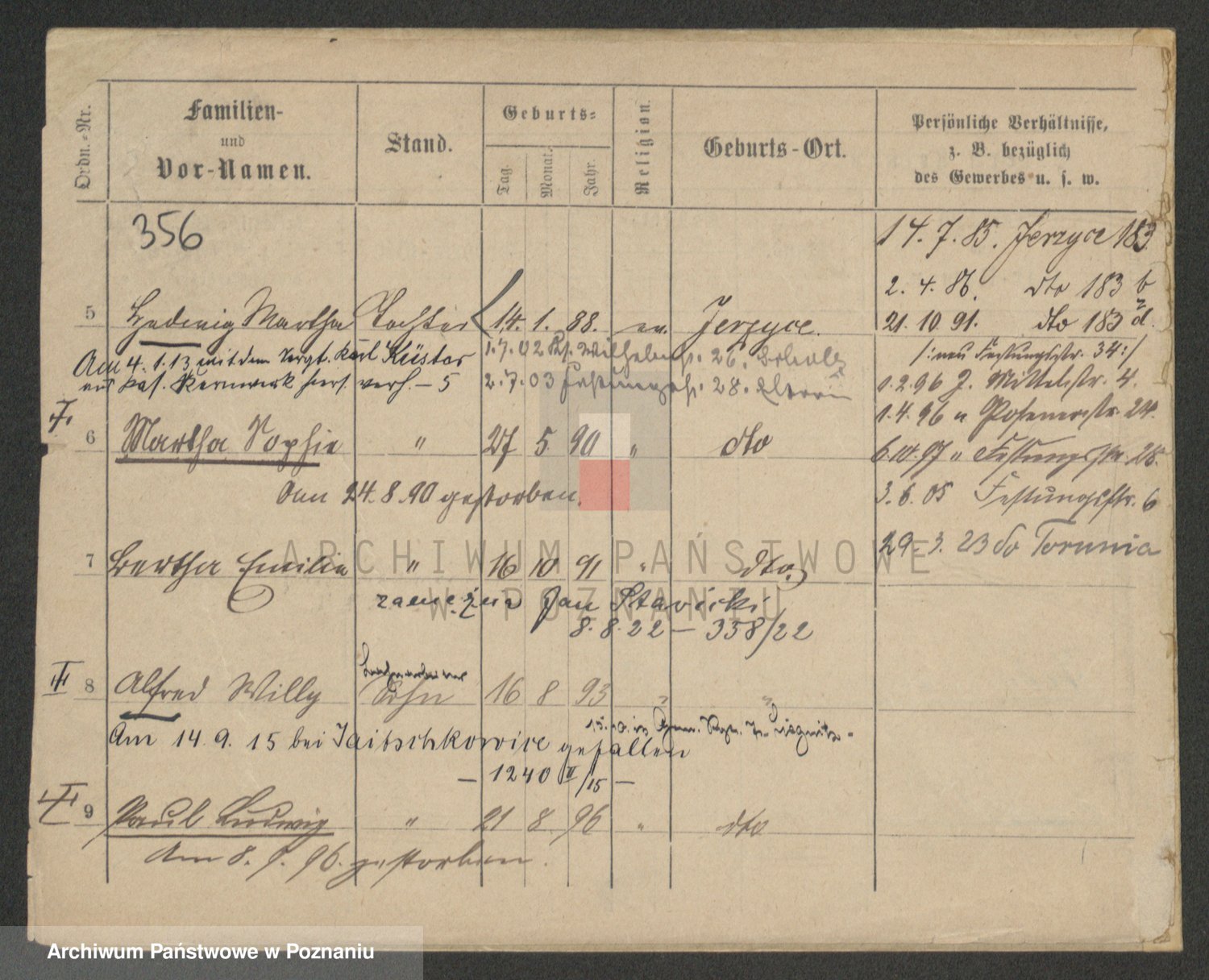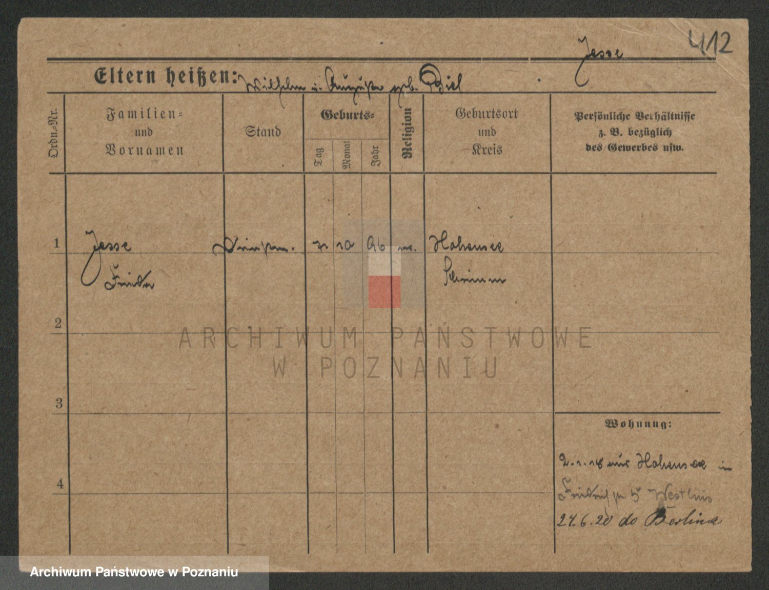 Podgląd karty osobowej dostępny jest po kliknięciu na nazwisko lub ikonkę karty. Można dokonywać powiększenia (ikony na górze) lub przechodzić między kolejnymi skanami (strzałki po bokach).