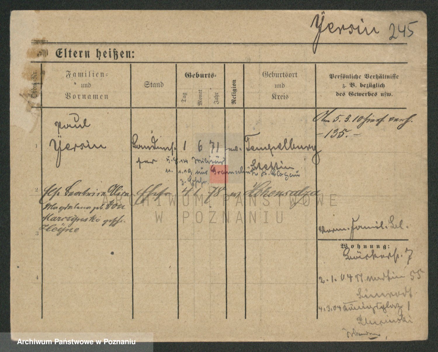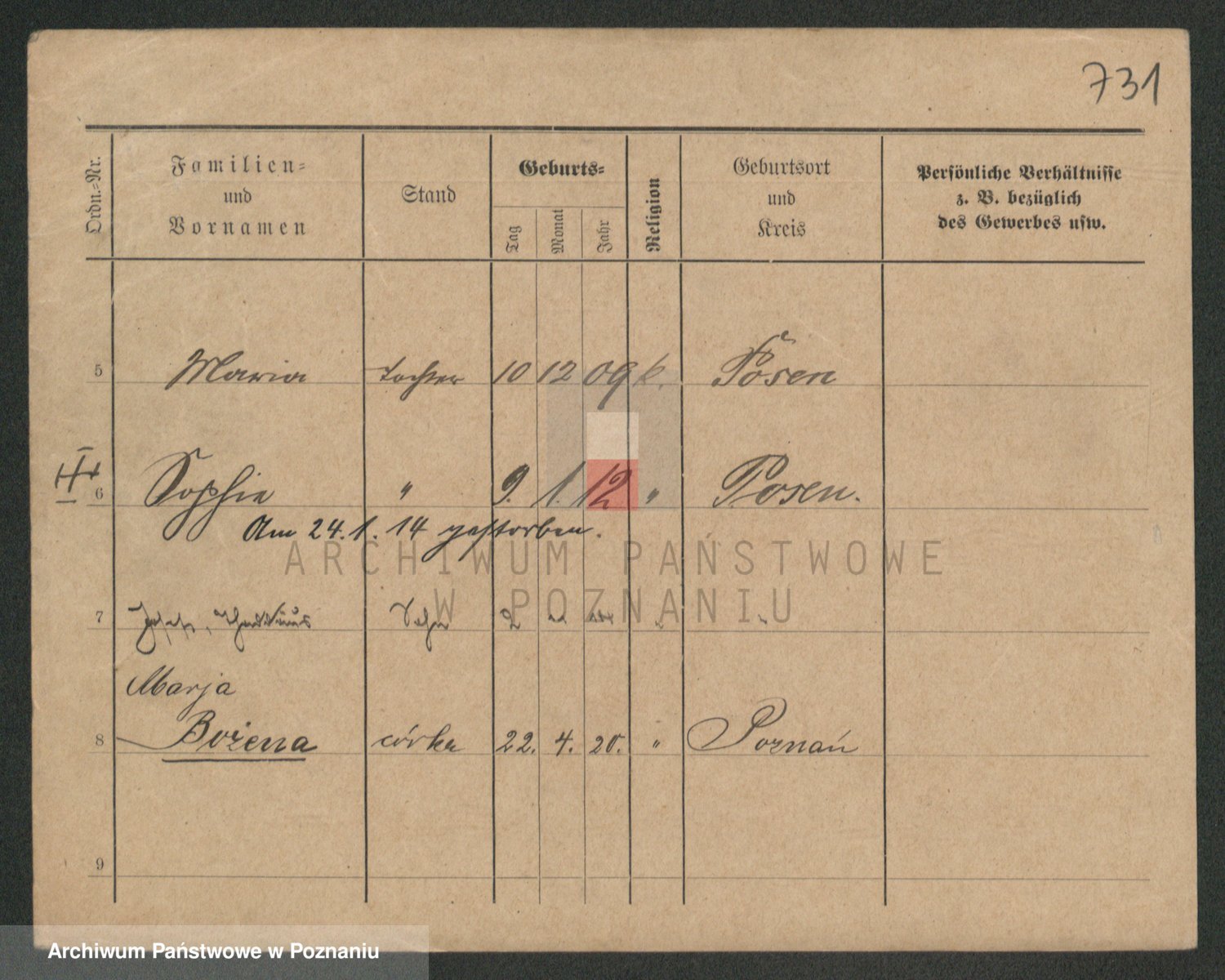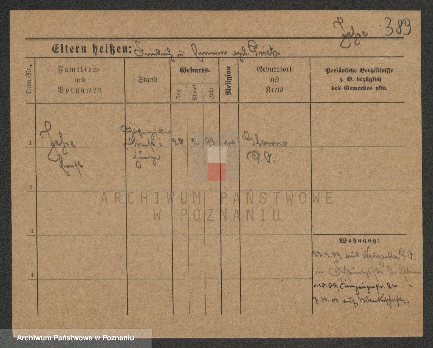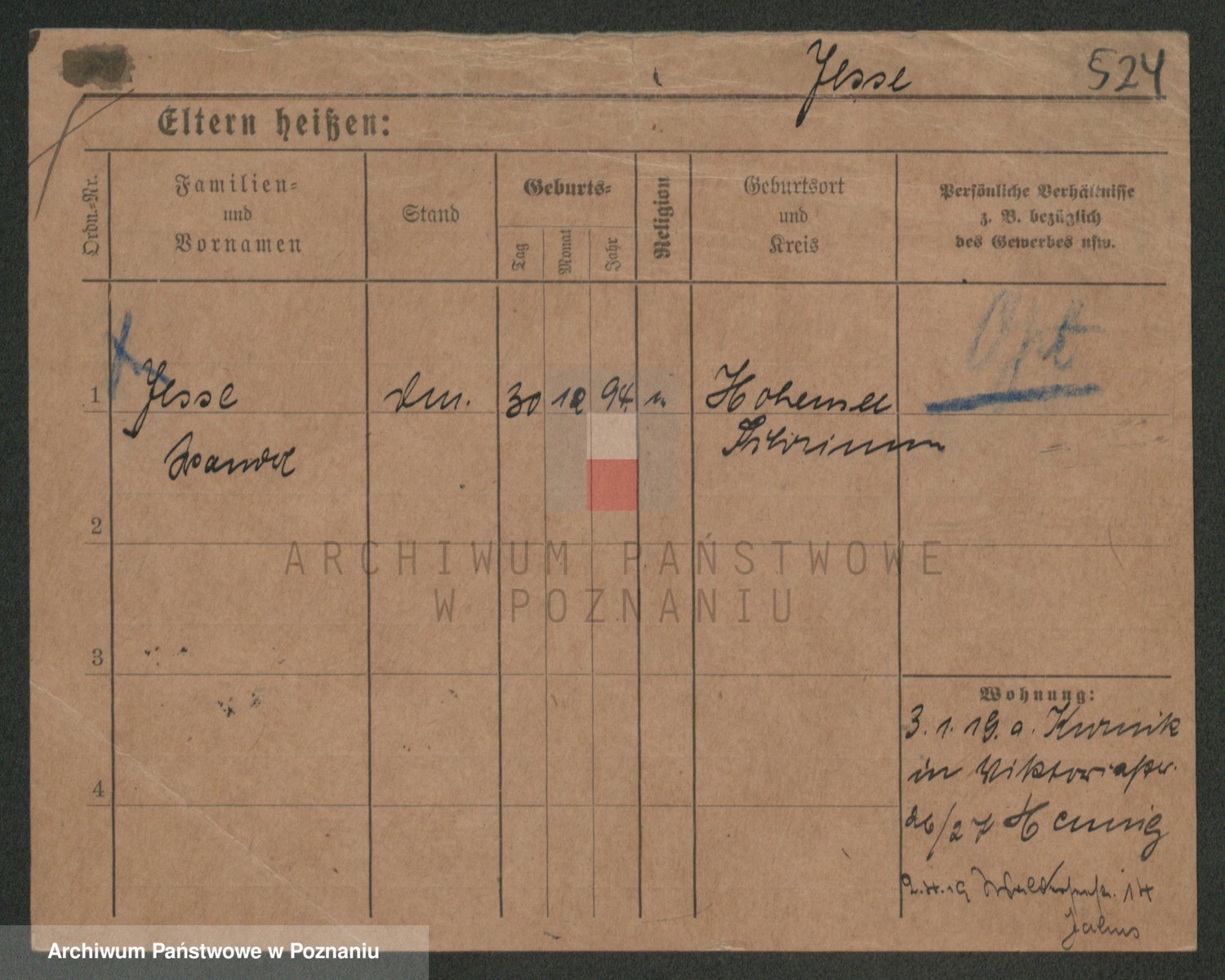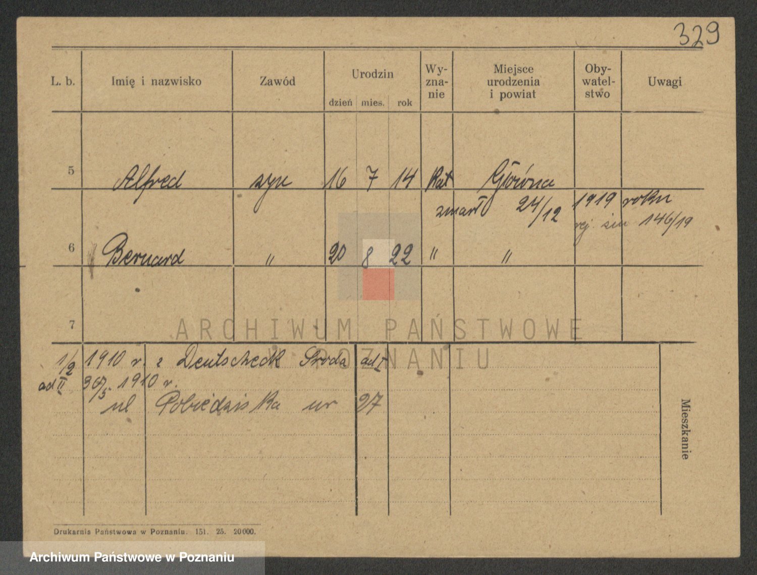 Podgląd karty osobowej dostępny jest po kliknięciu na nazwisko lub ikonkę karty. Można dokonywać powiększenia (ikony na górze) lub przechodzić między kolejnymi skanami (strzałki po bokach).