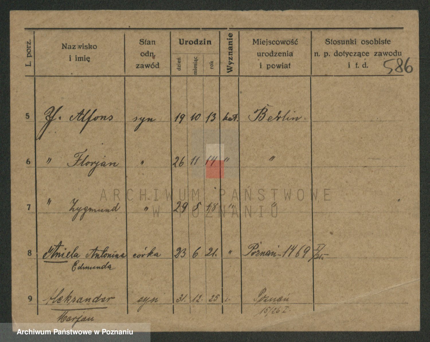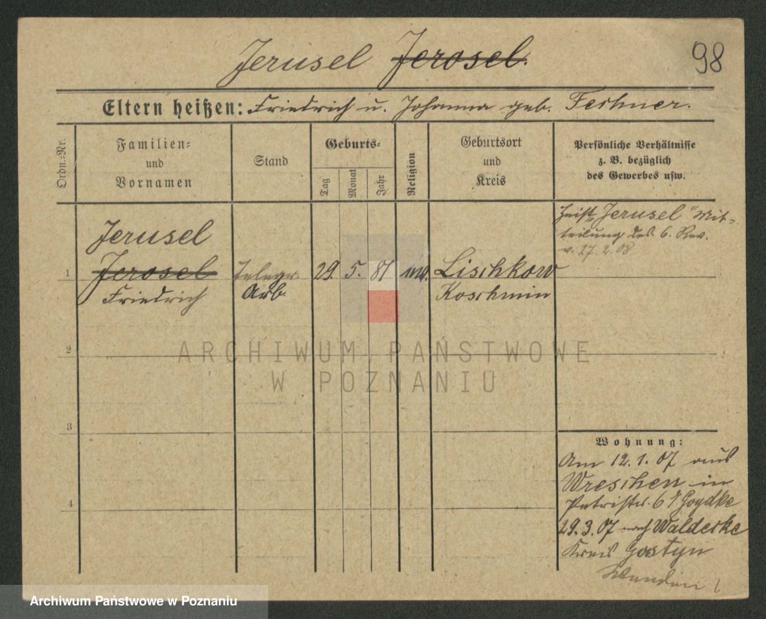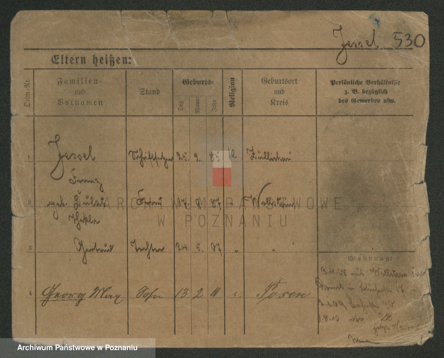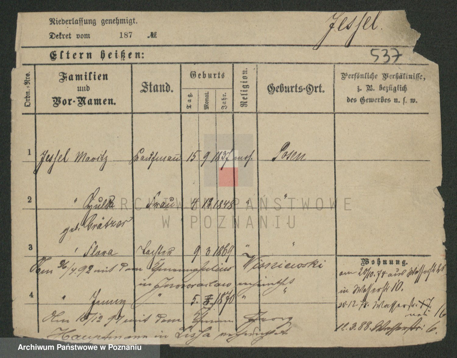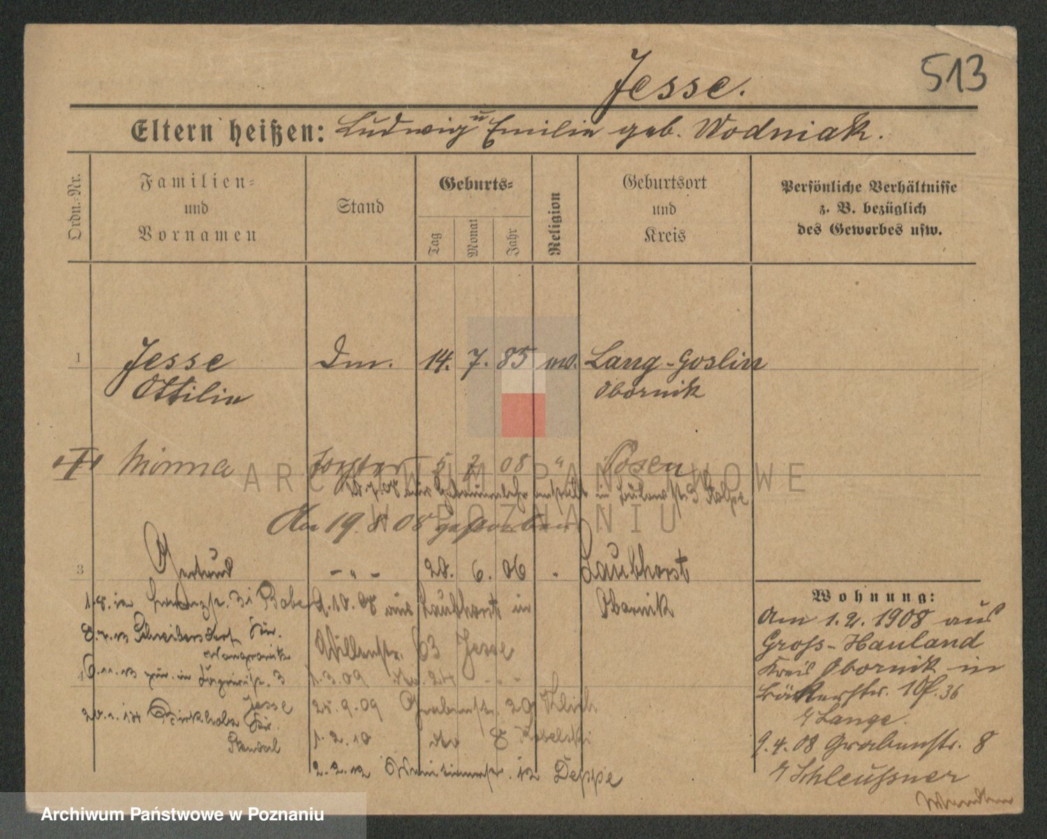 Podgląd karty osobowej dostępny jest po kliknięciu na nazwisko lub ikonkę karty. Można dokonywać powiększenia (ikony na górze) lub przechodzić między kolejnymi skanami (strzałki po bokach).