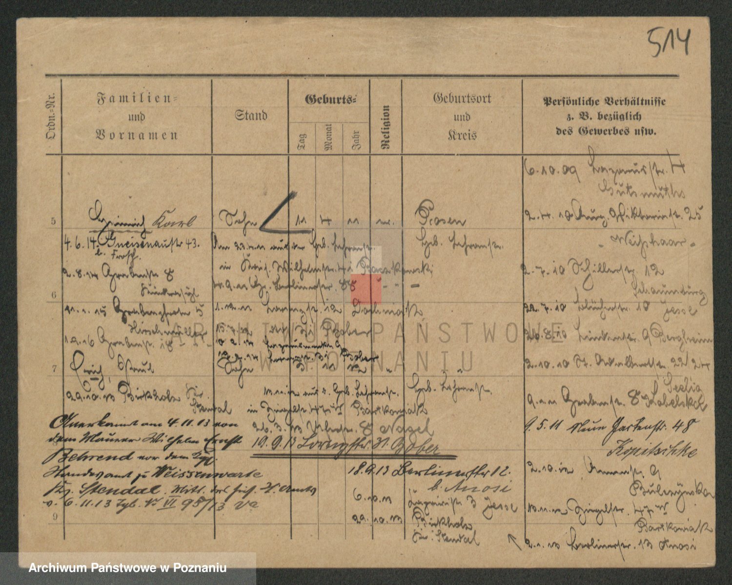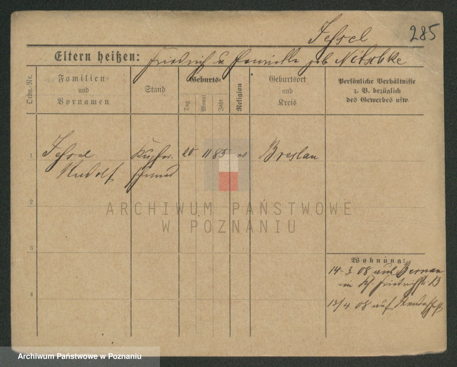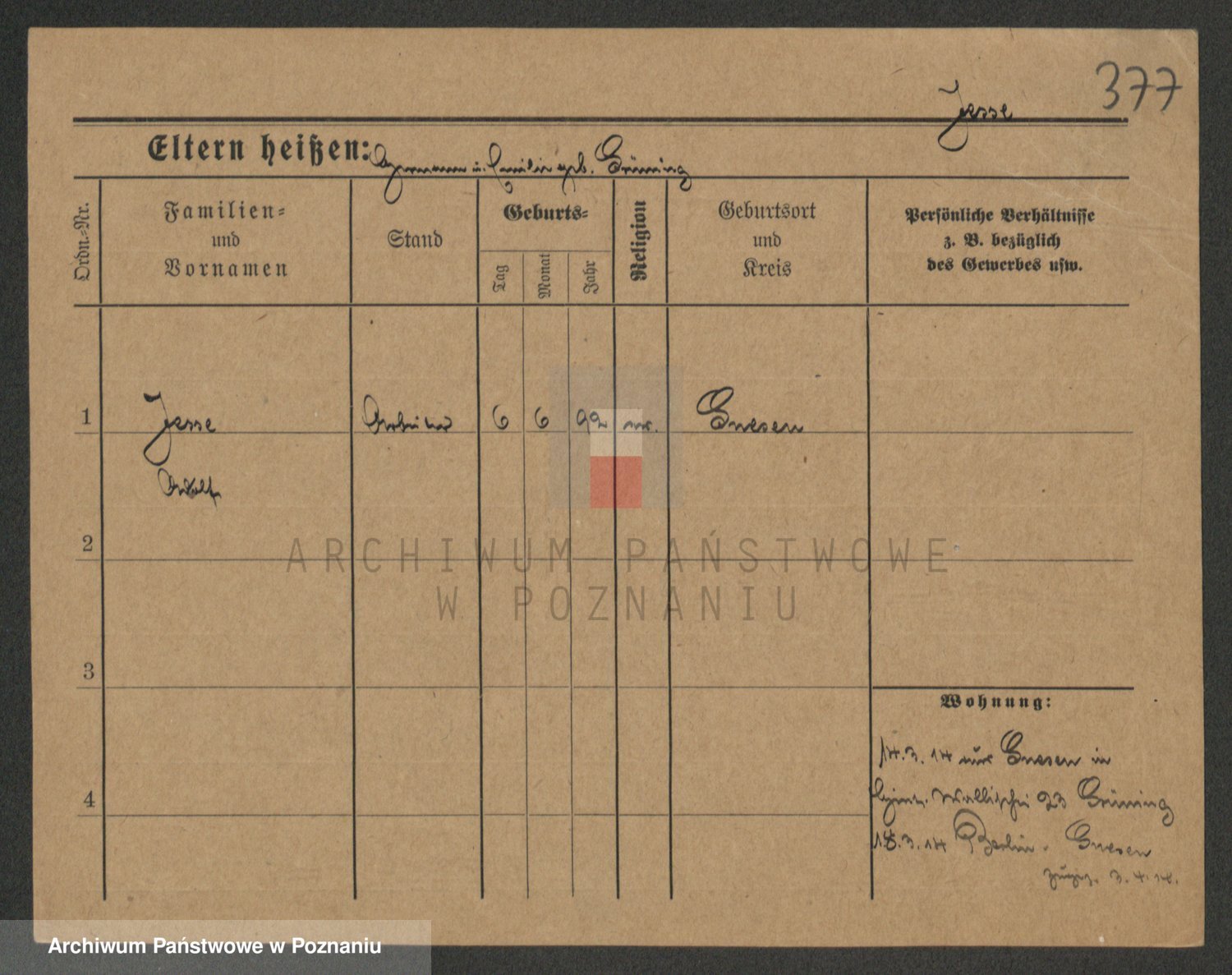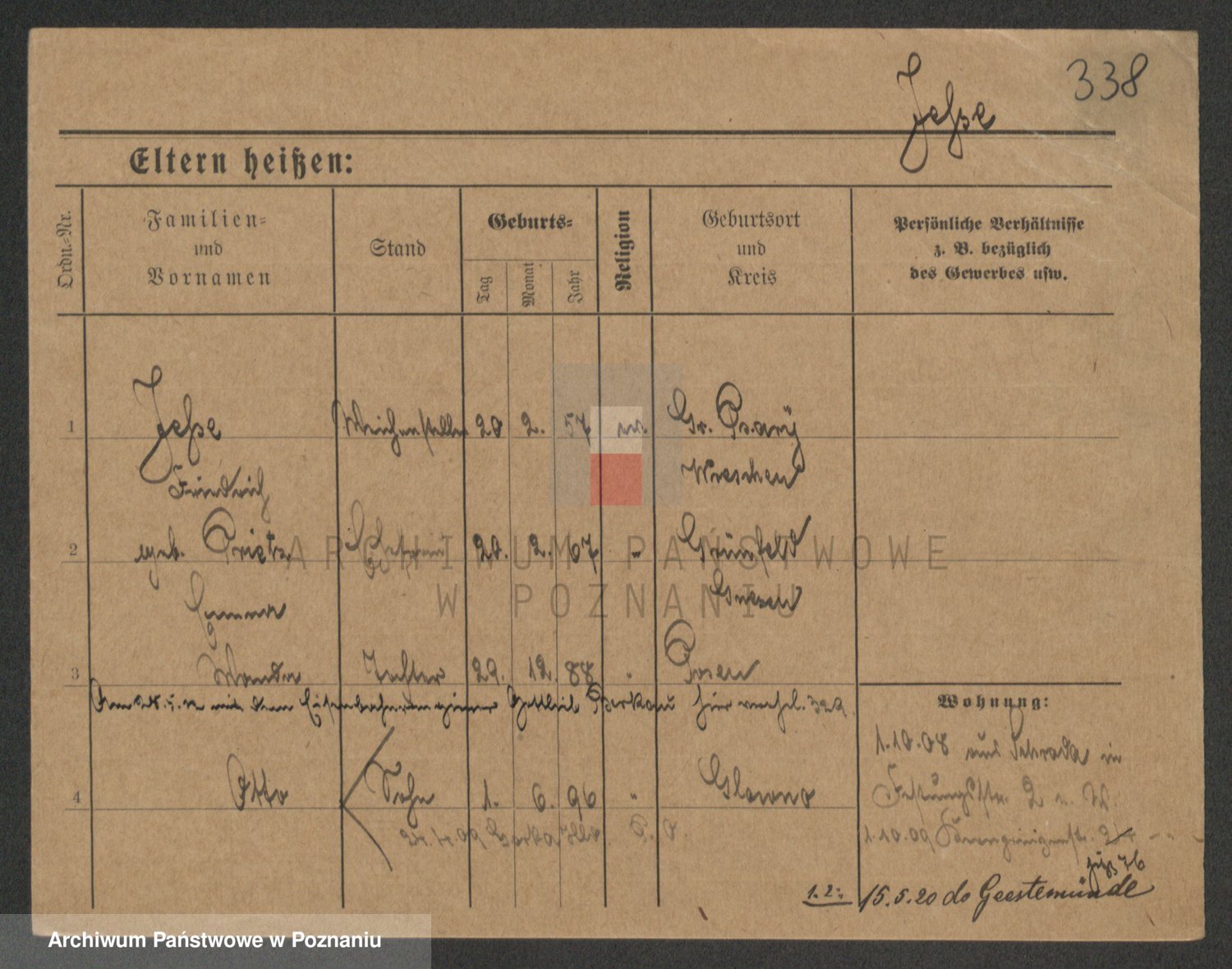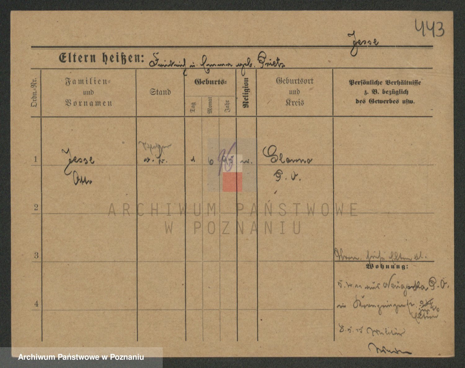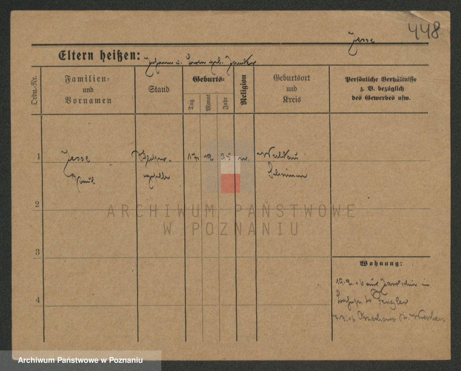 Podgląd karty osobowej dostępny jest po kliknięciu na nazwisko lub ikonkę karty. Można dokonywać powiększenia (ikony na górze) lub przechodzić między kolejnymi skanami (strzałki po bokach).