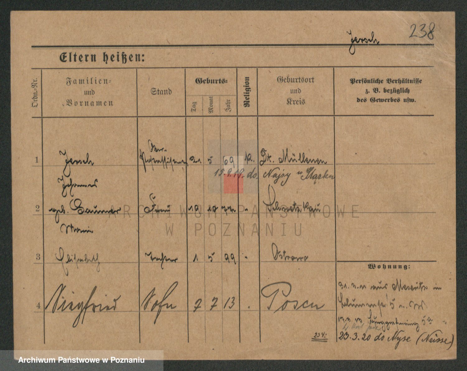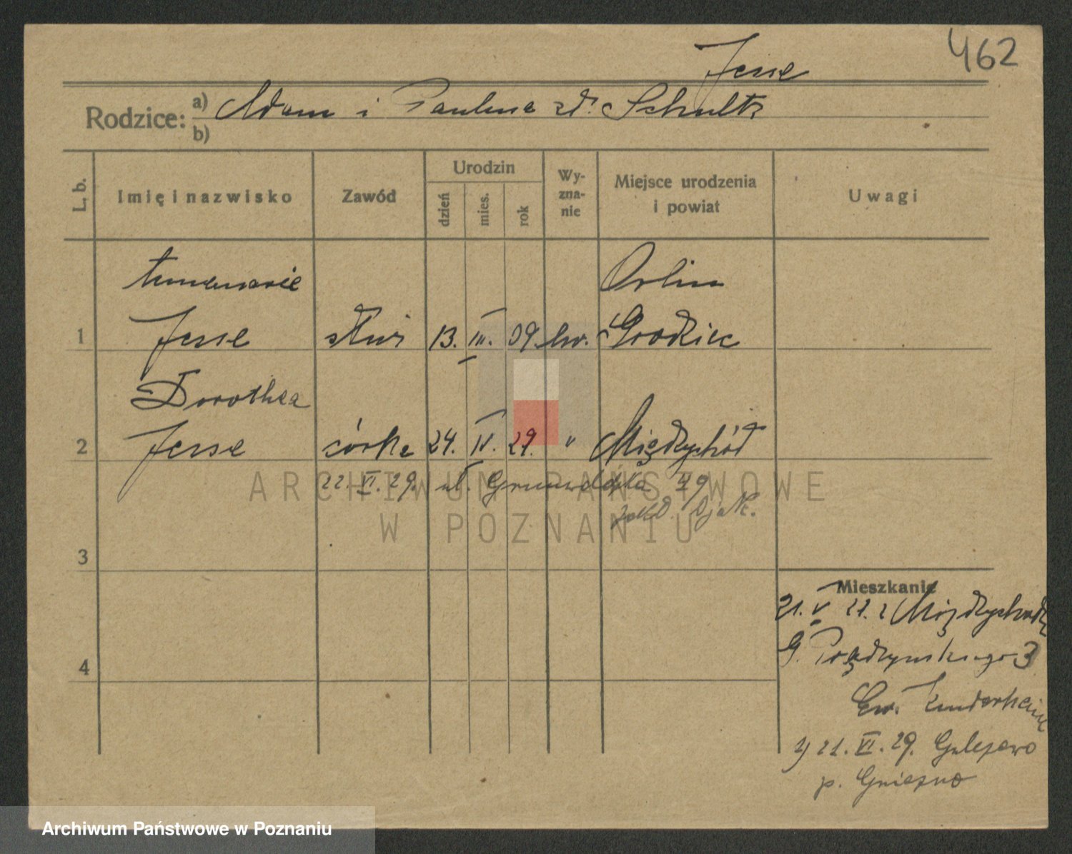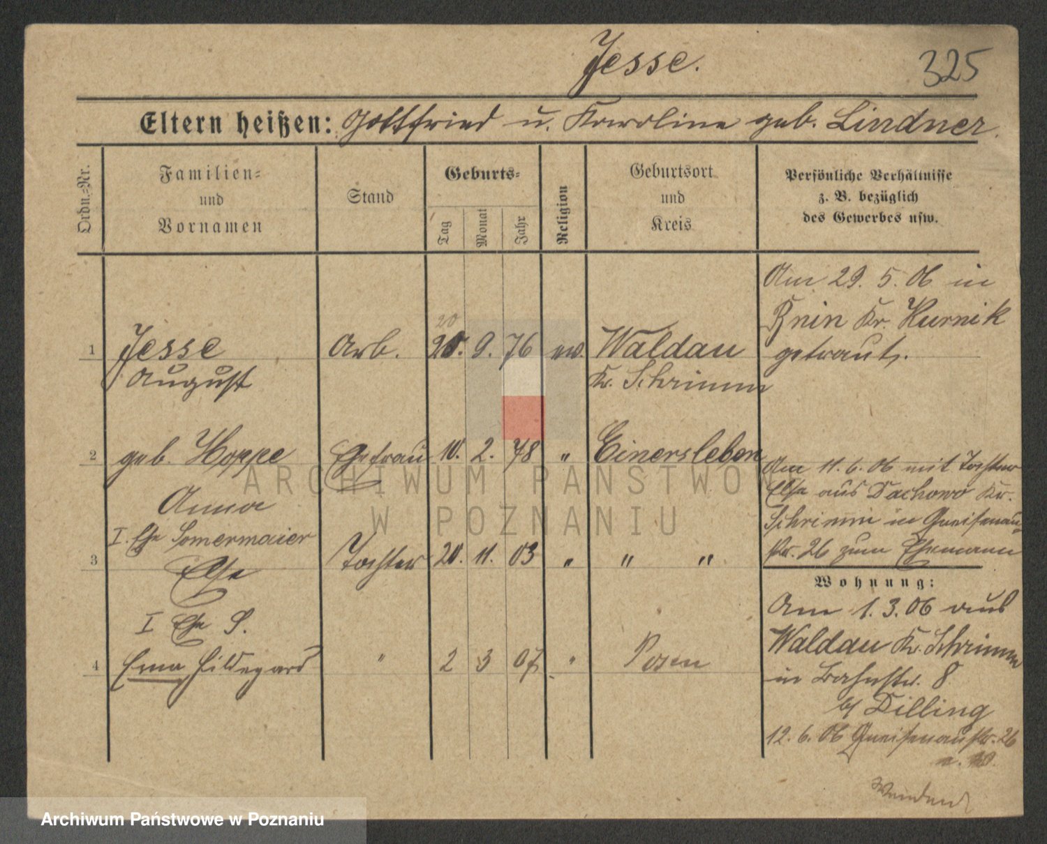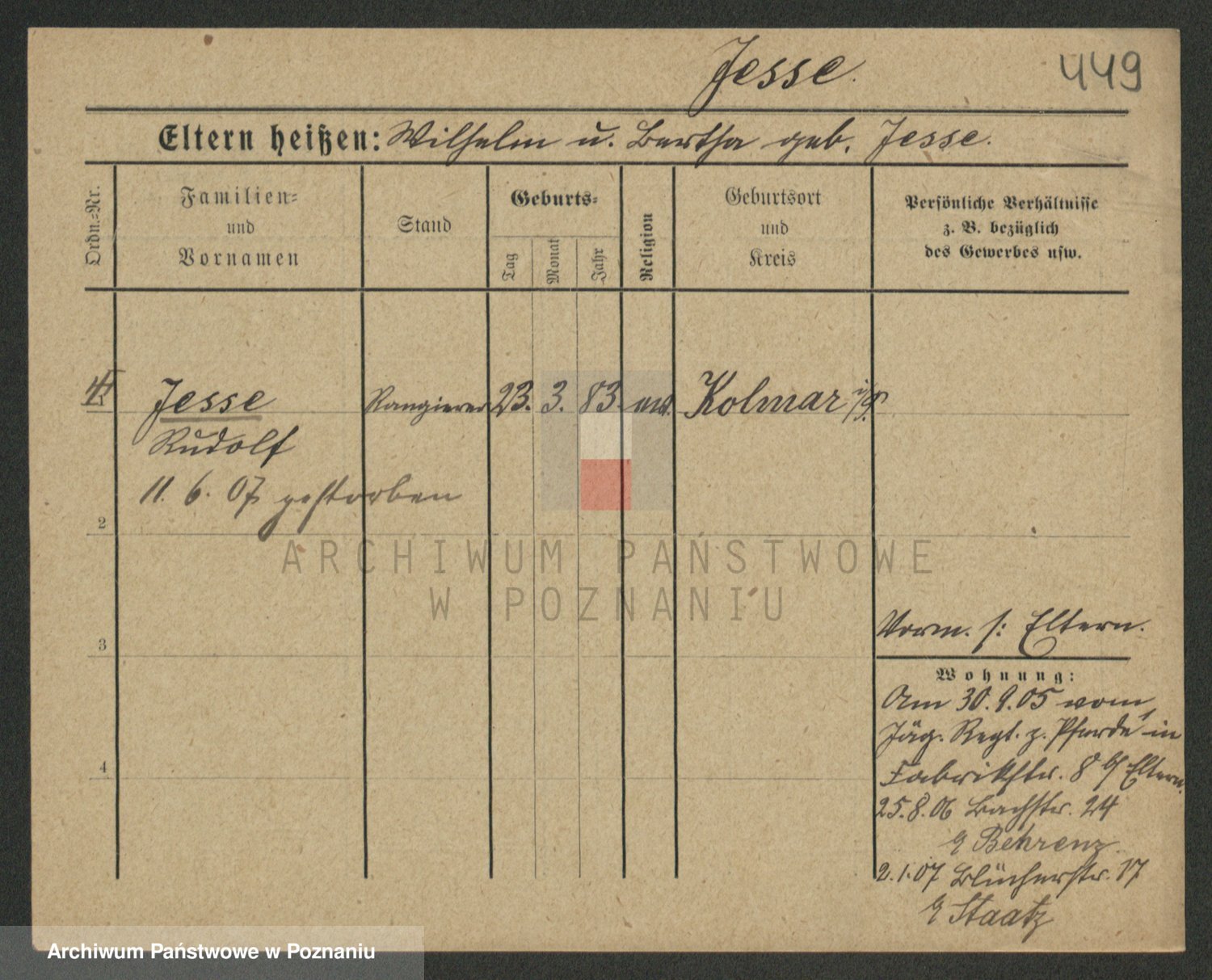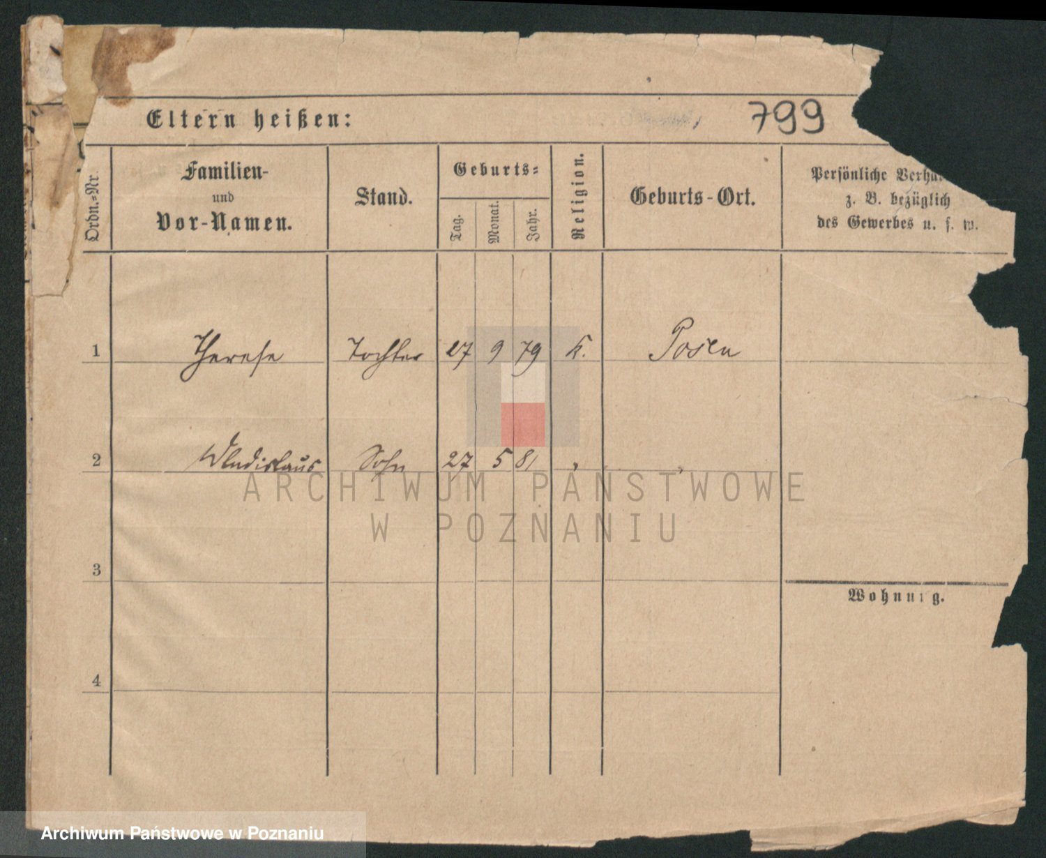 Podgląd karty osobowej dostępny jest po kliknięciu na nazwisko lub ikonkę karty. Można dokonywać powiększenia (ikony na górze) lub przechodzić między kolejnymi skanami (strzałki po bokach).