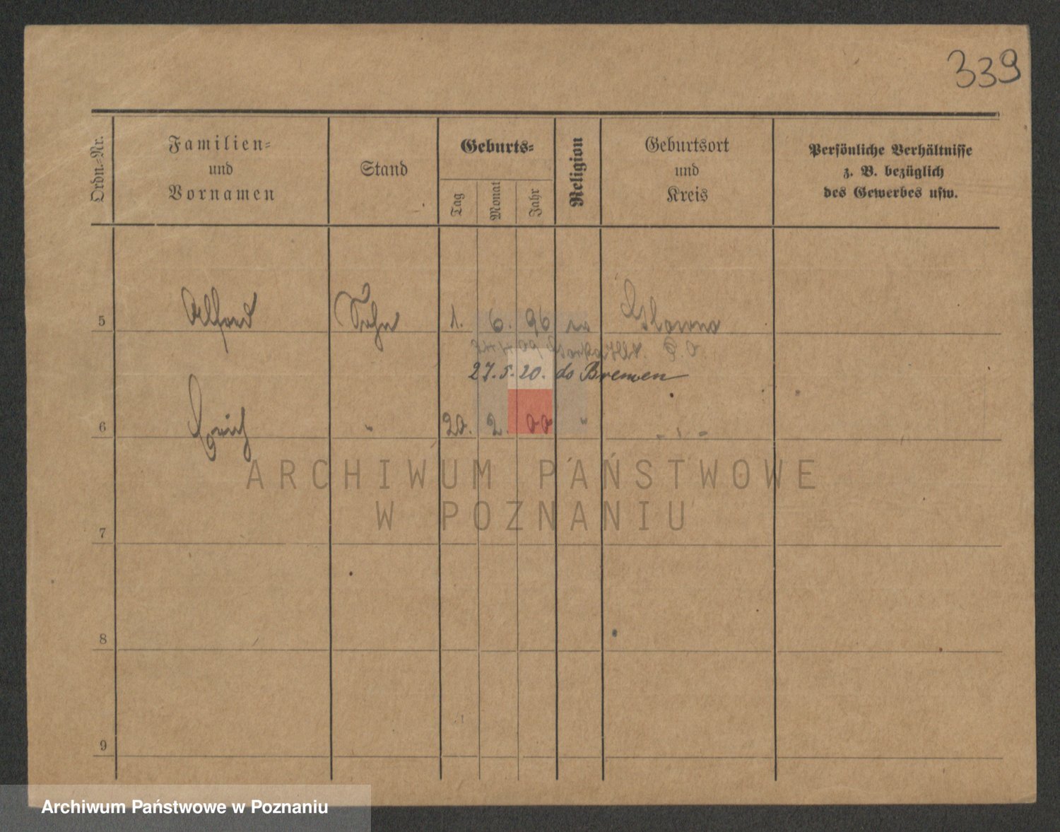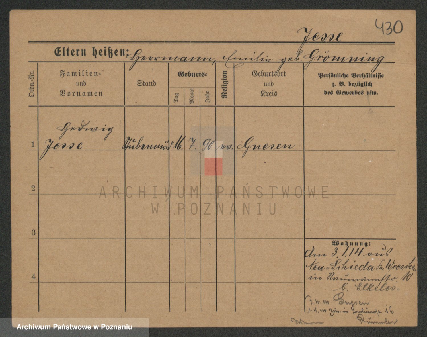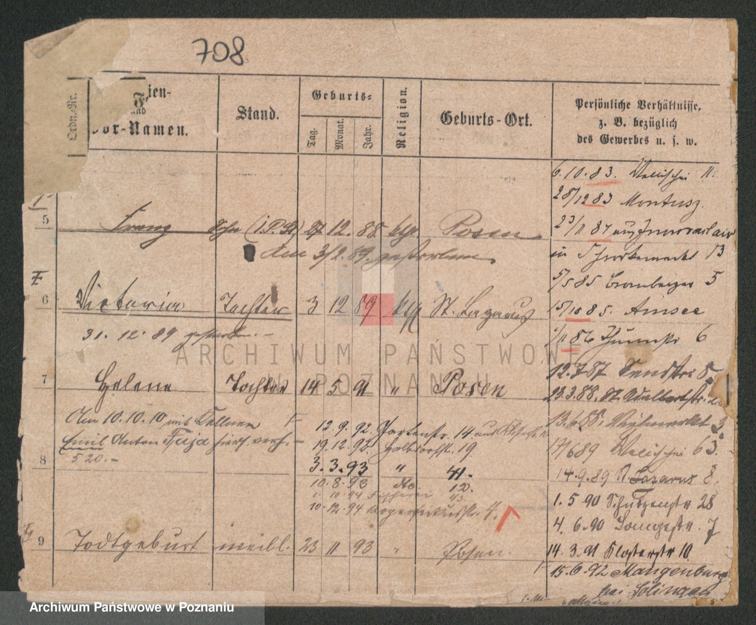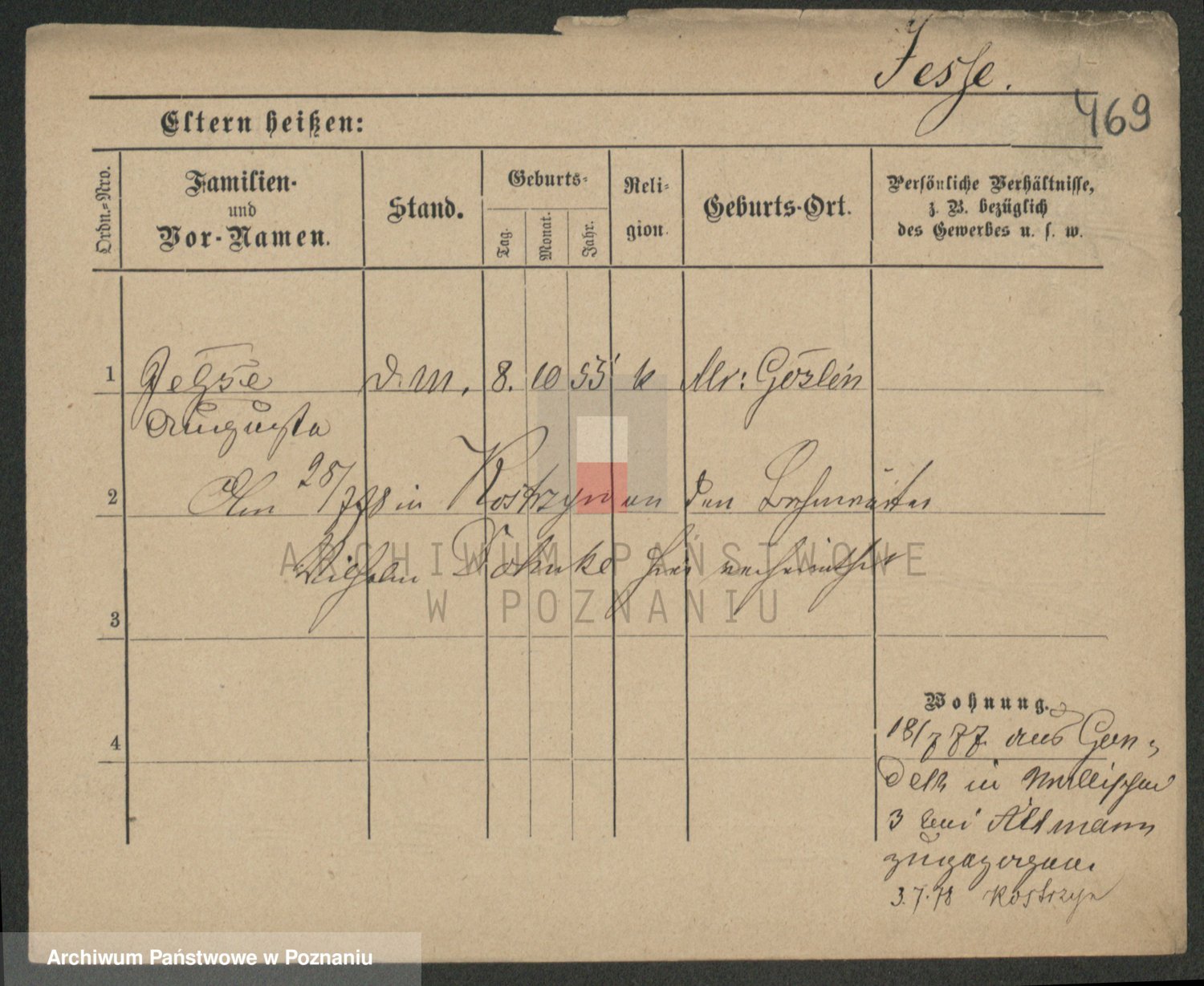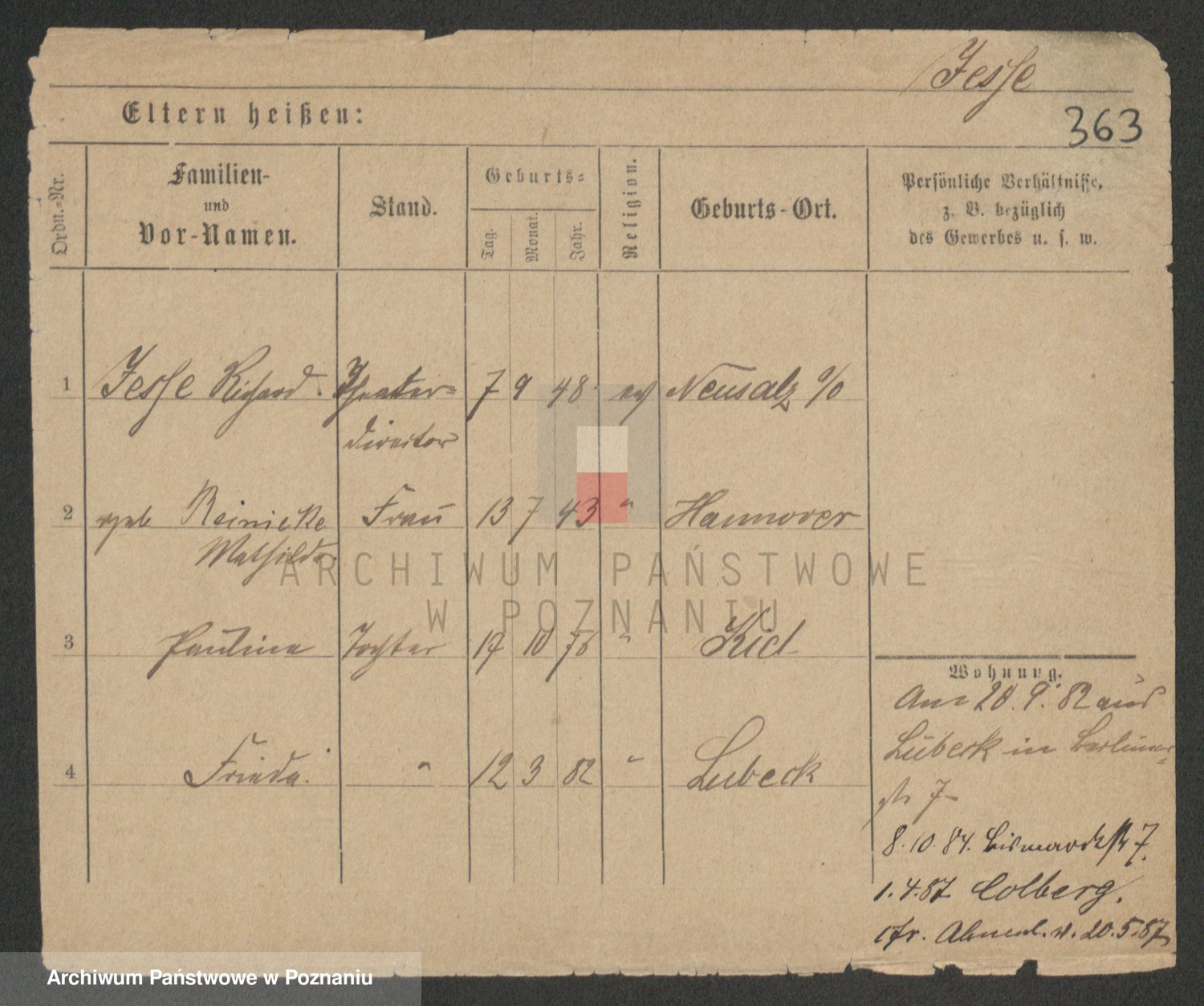 Podgląd karty osobowej dostępny jest po kliknięciu na nazwisko lub ikonkę karty. Można dokonywać powiększenia (ikony na górze) lub przechodzić między kolejnymi skanami (strzałki po bokach).