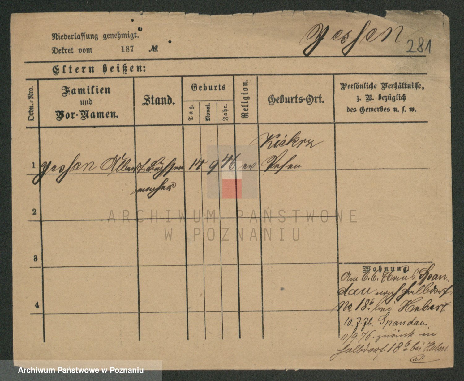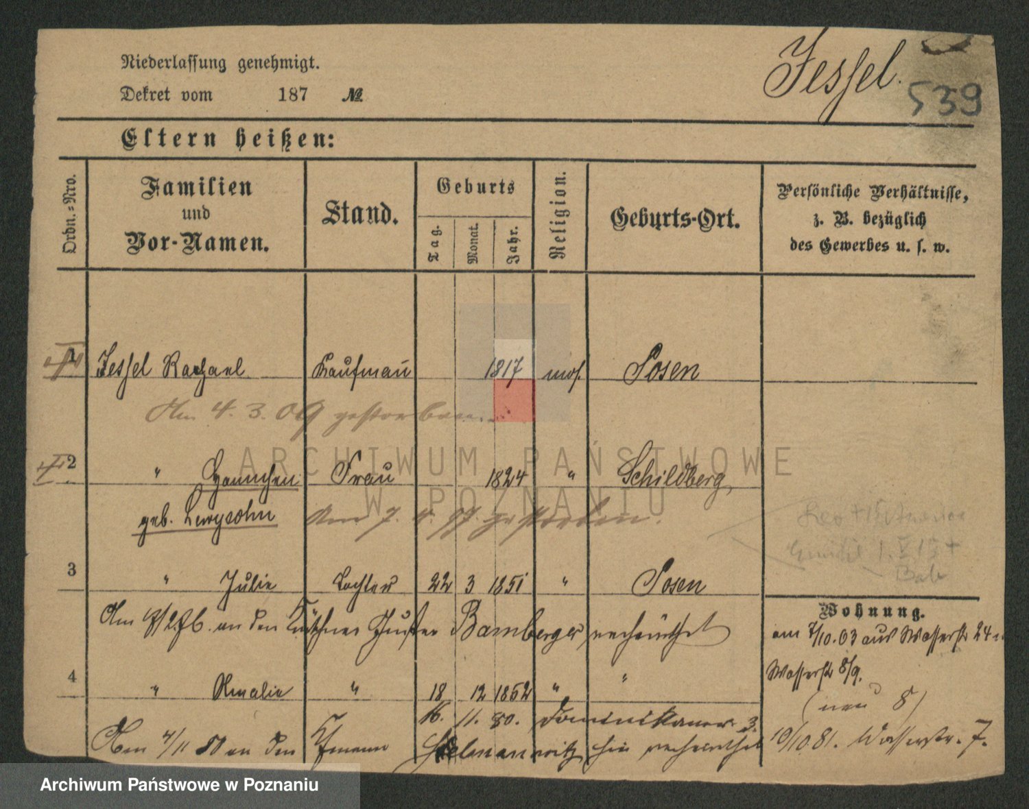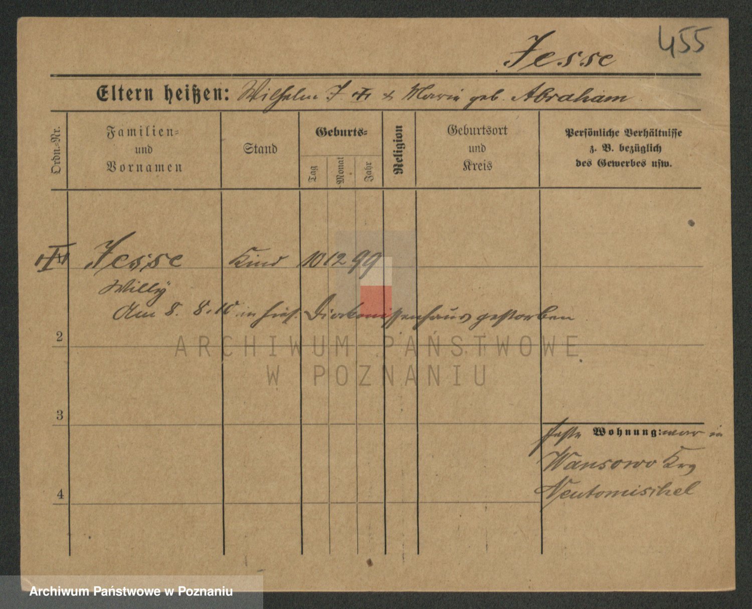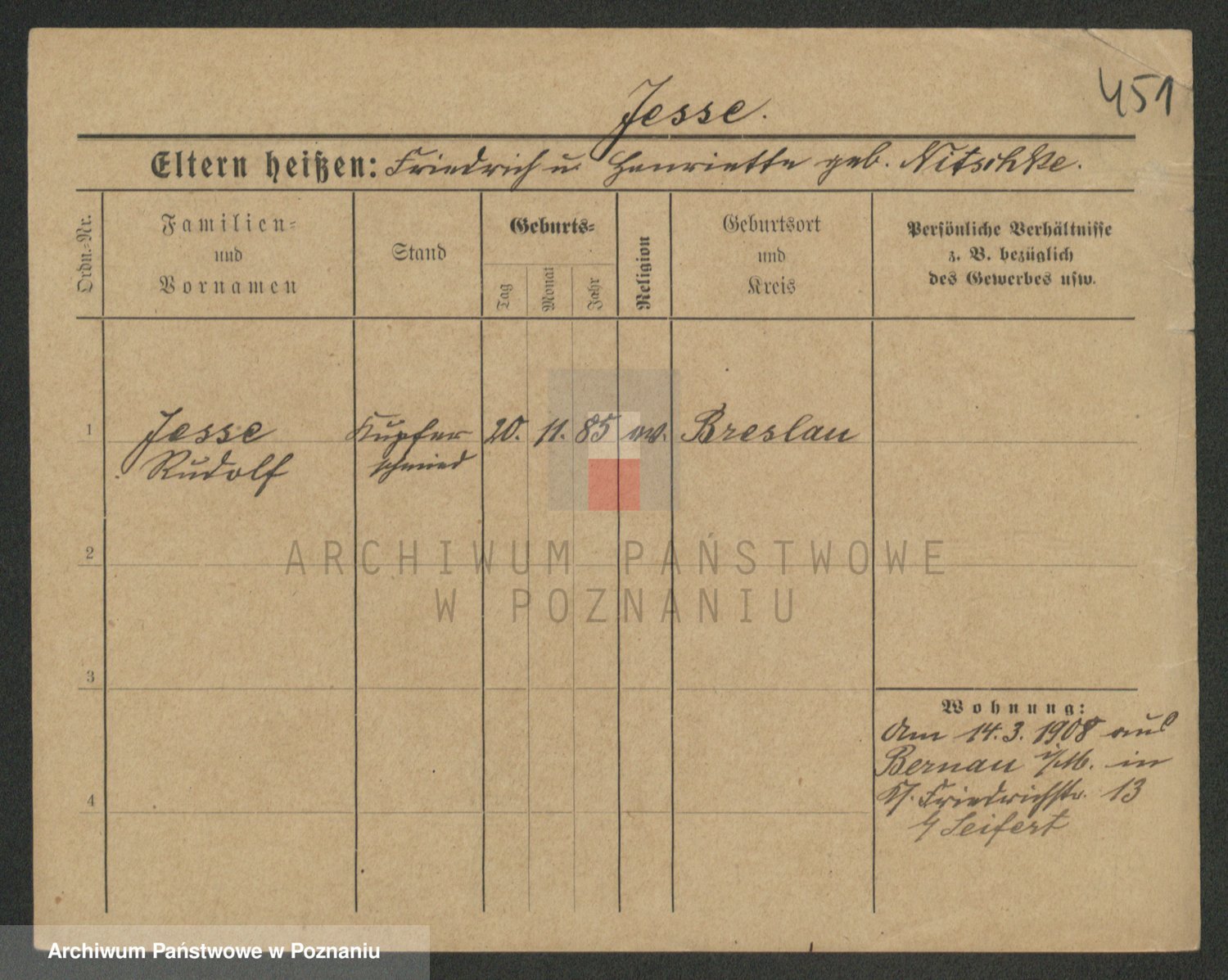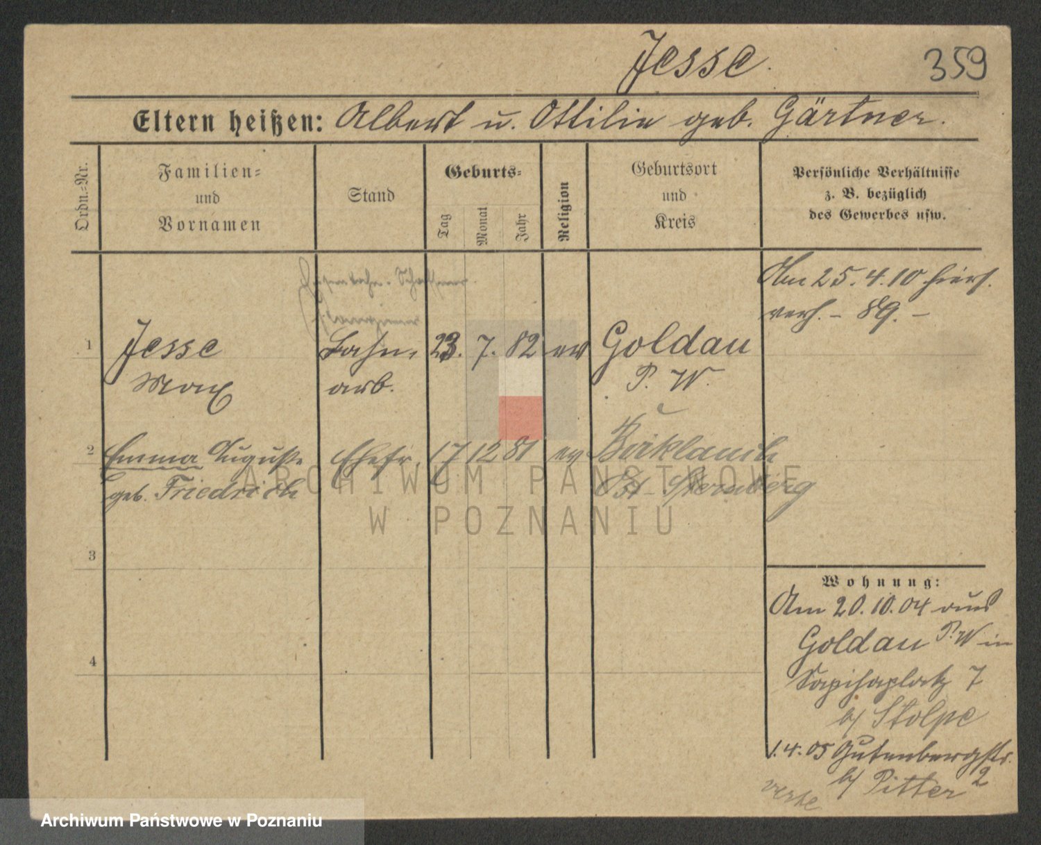 Podgląd karty osobowej dostępny jest po kliknięciu na nazwisko lub ikonkę karty. Można dokonywać powiększenia (ikony na górze) lub przechodzić między kolejnymi skanami (strzałki po bokach).