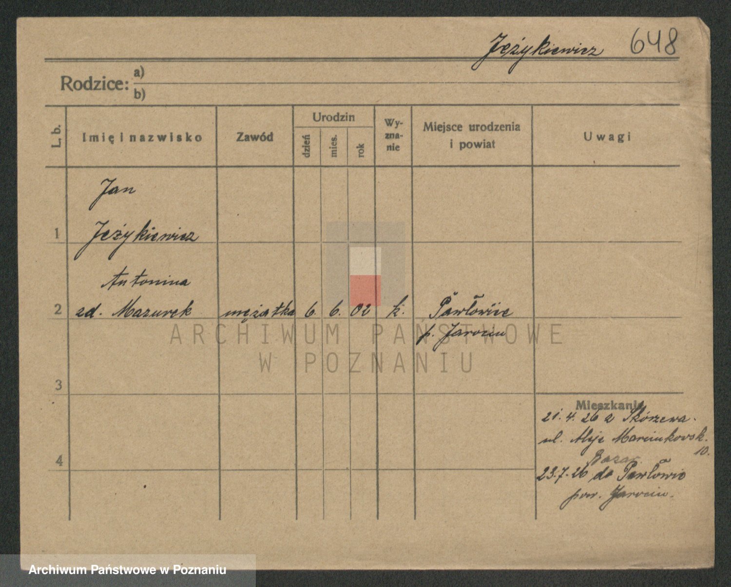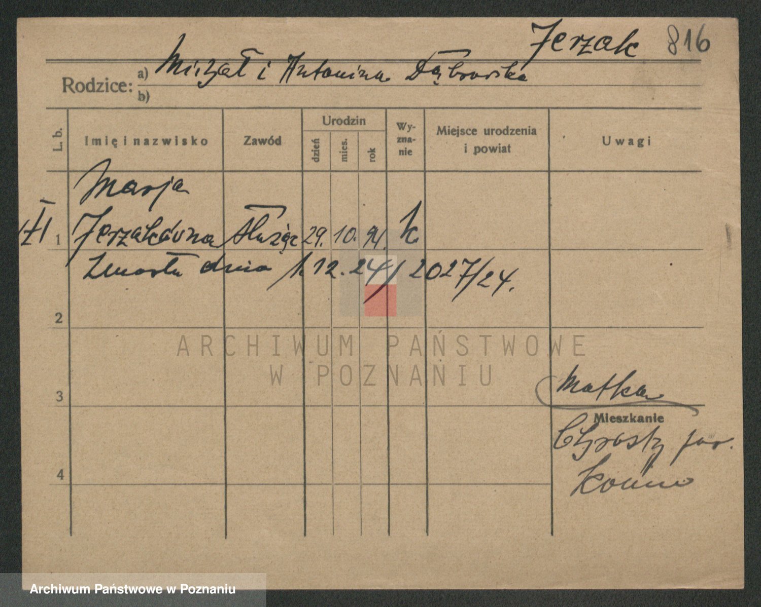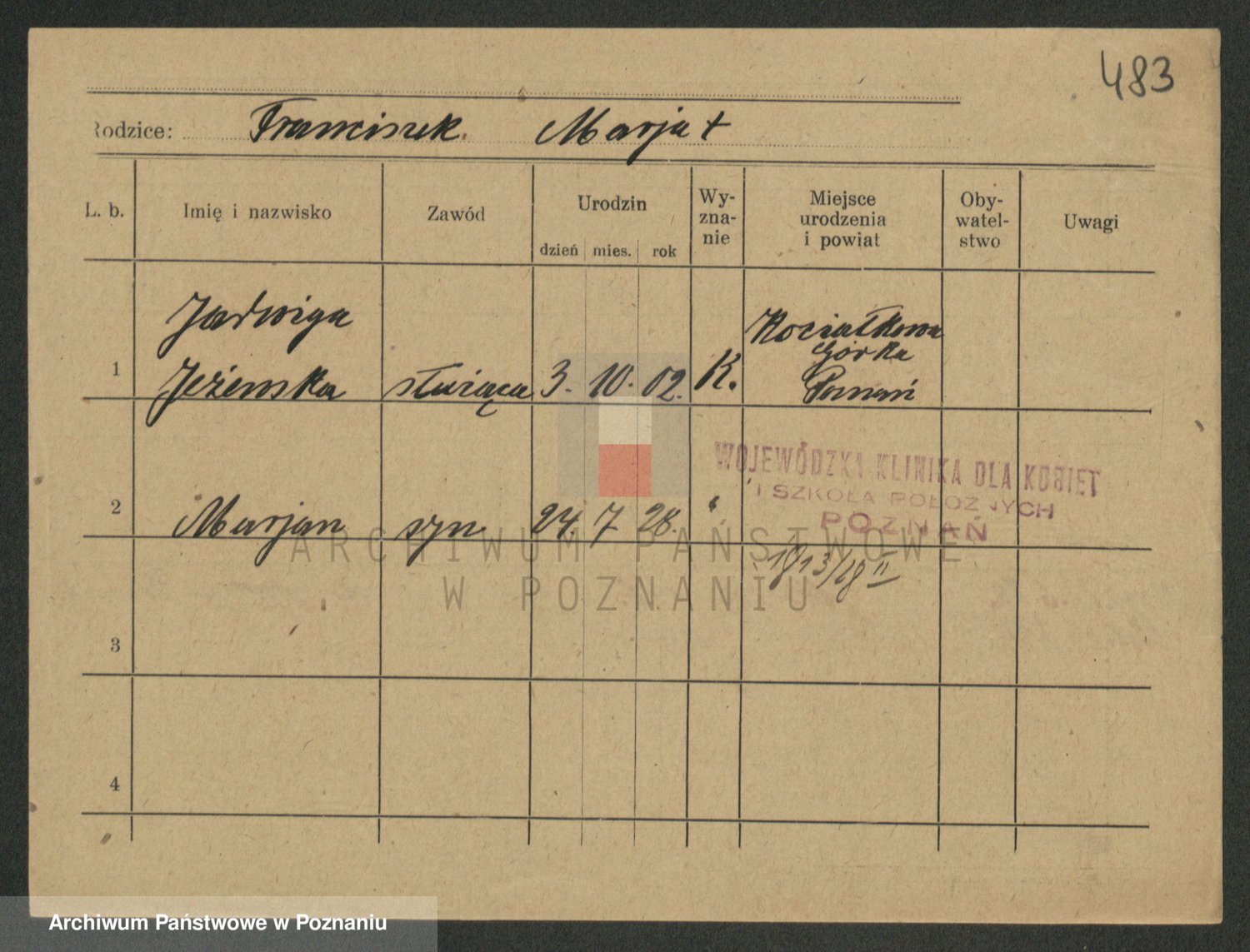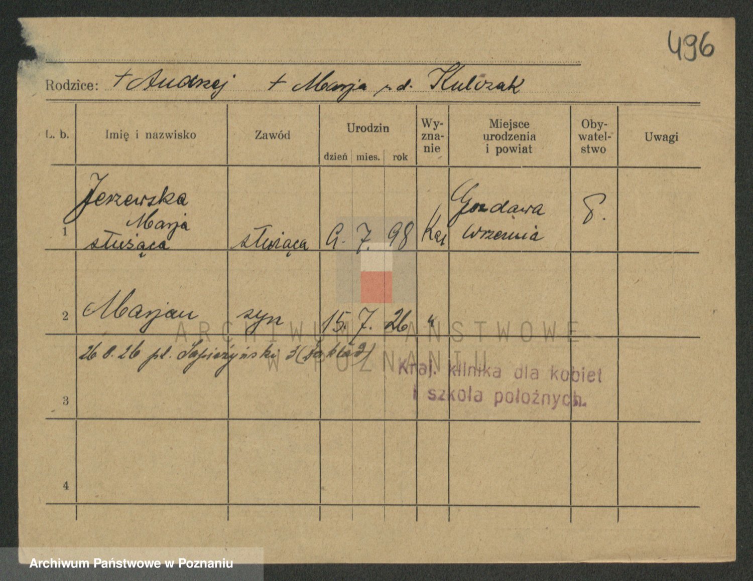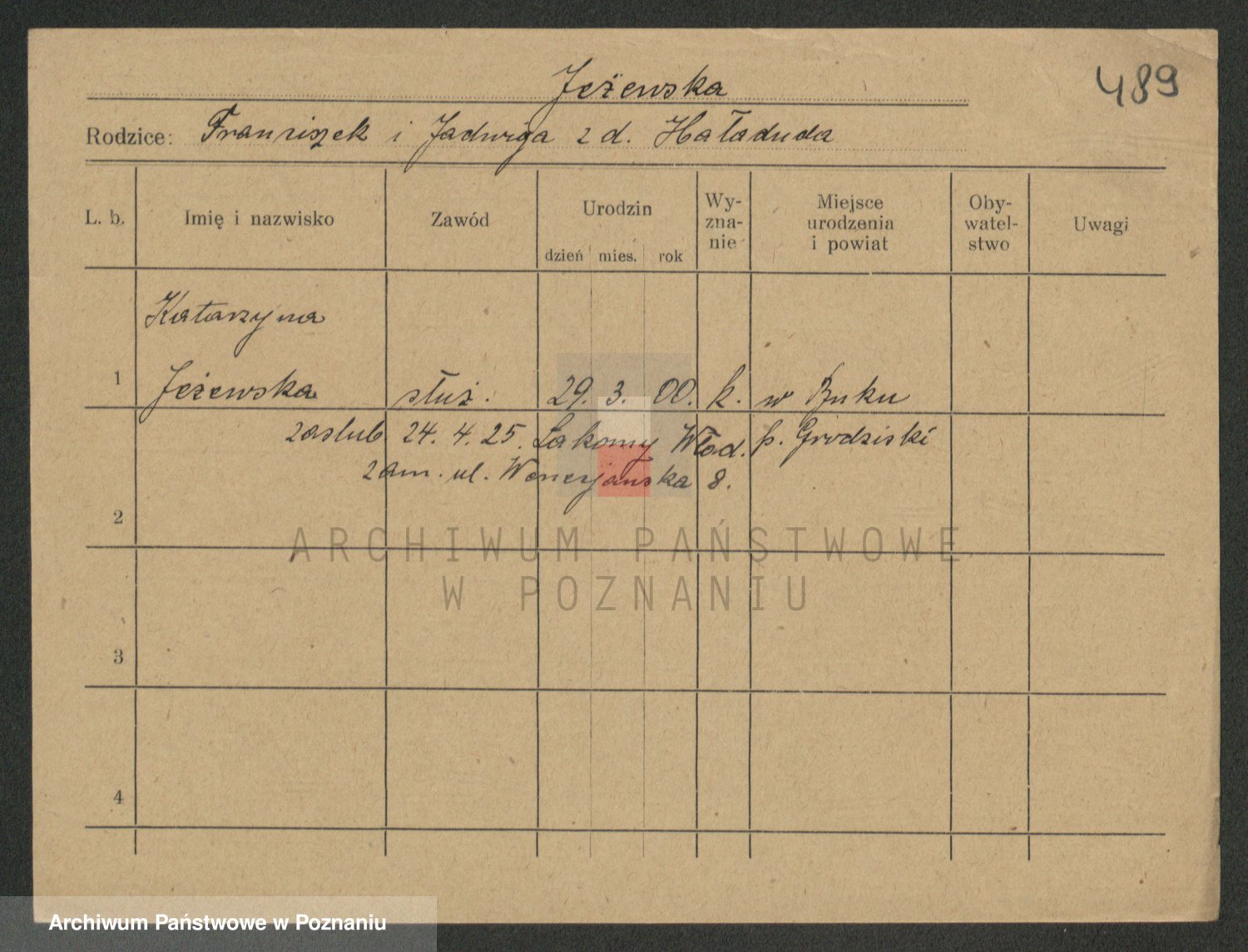 Jezerich z d. Wawrzyniak I voto Okonska, Mariane