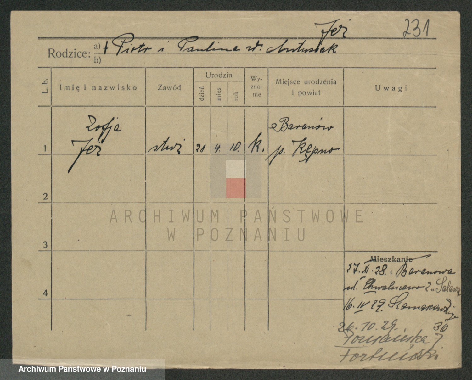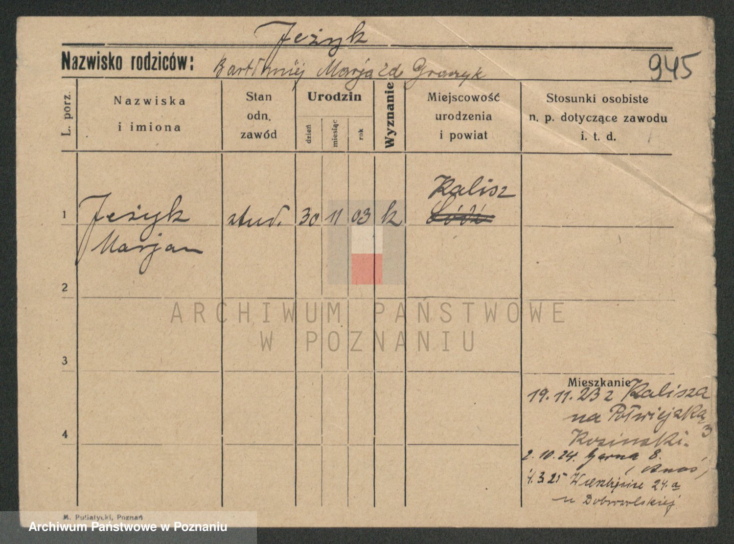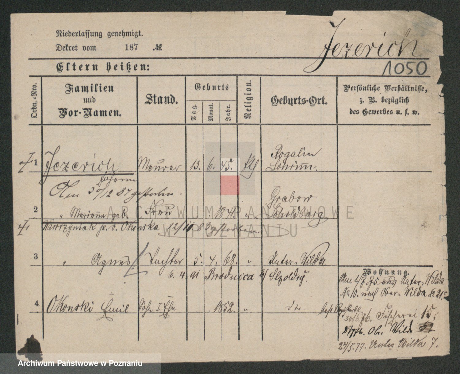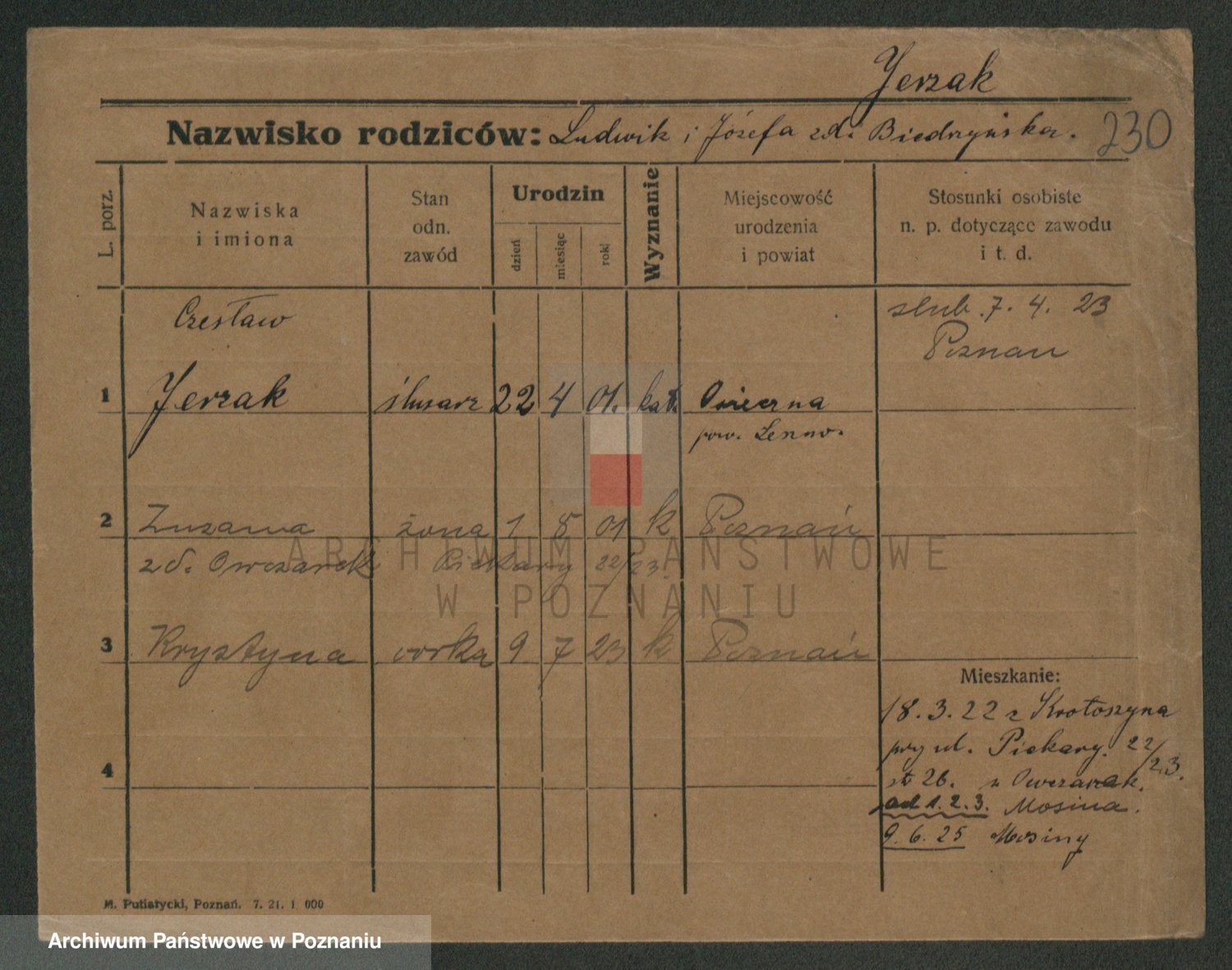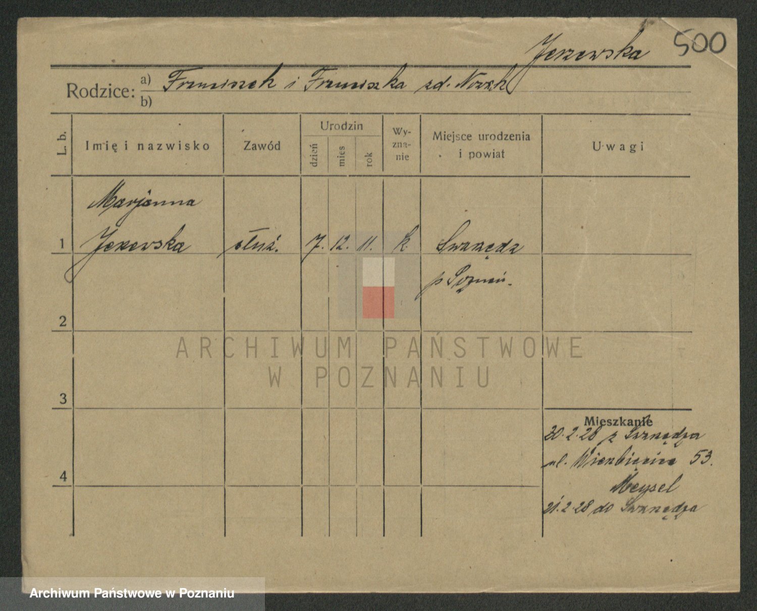 Jezerich z d. Wawrzyniak I voto Okonska, Mariane