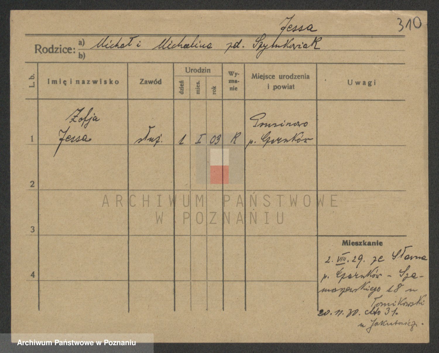 Jesionek, Zofja