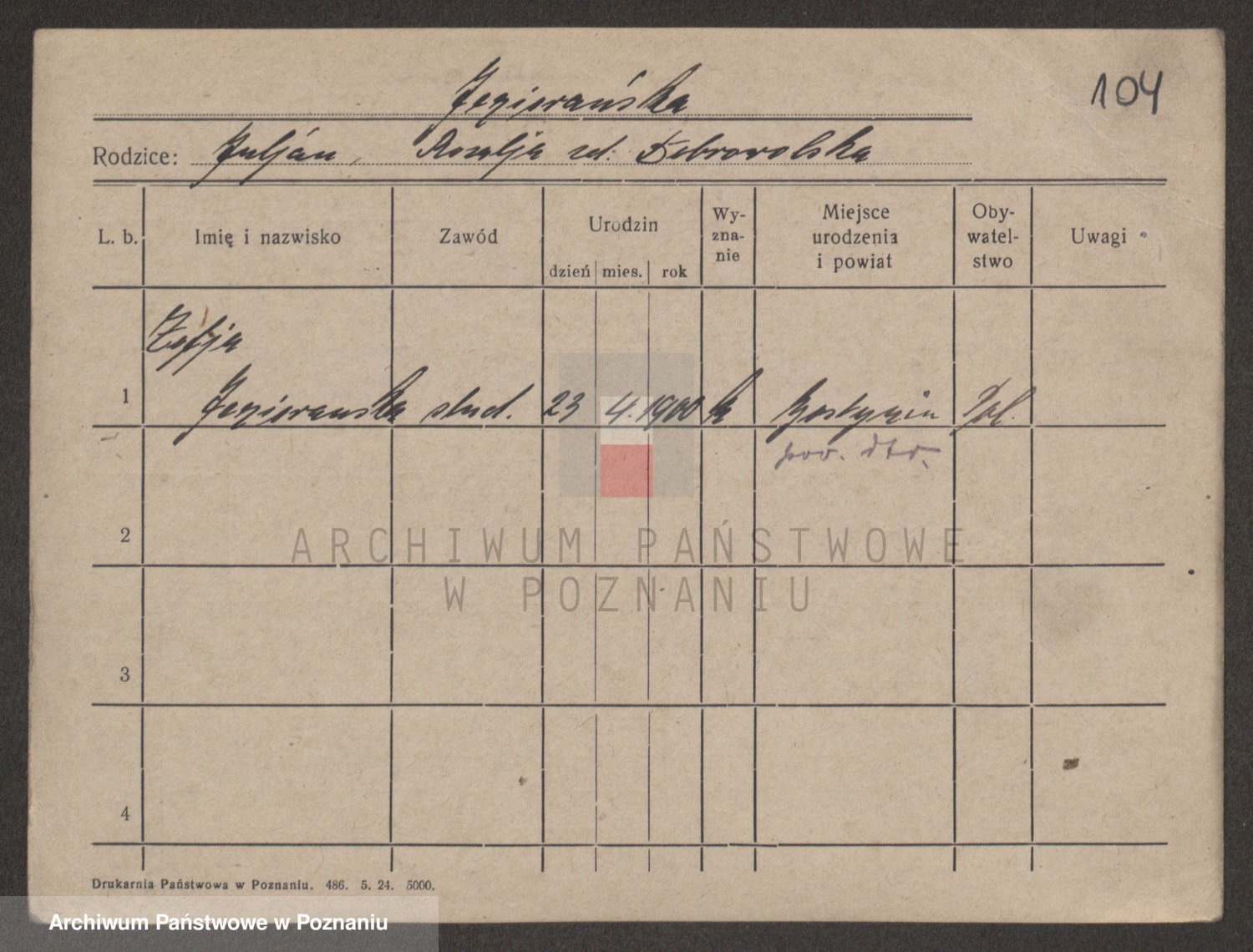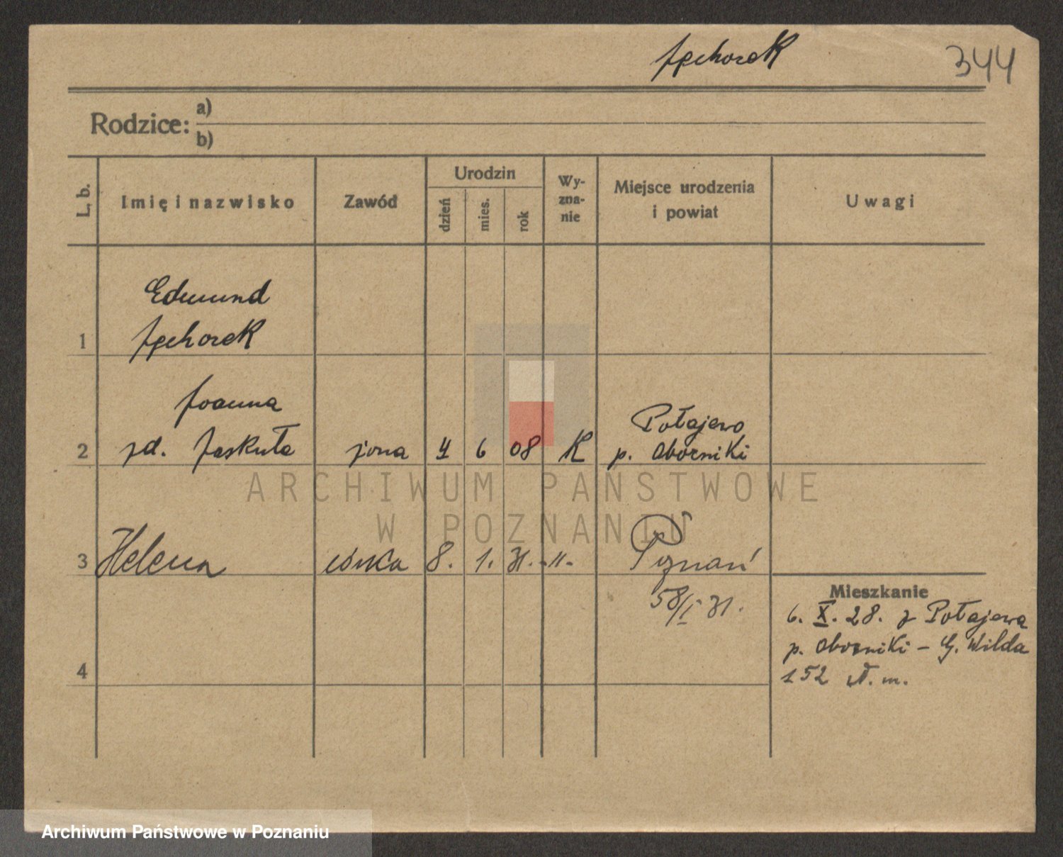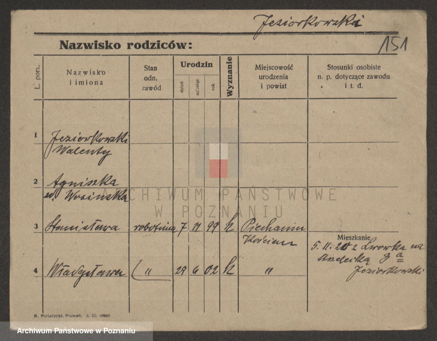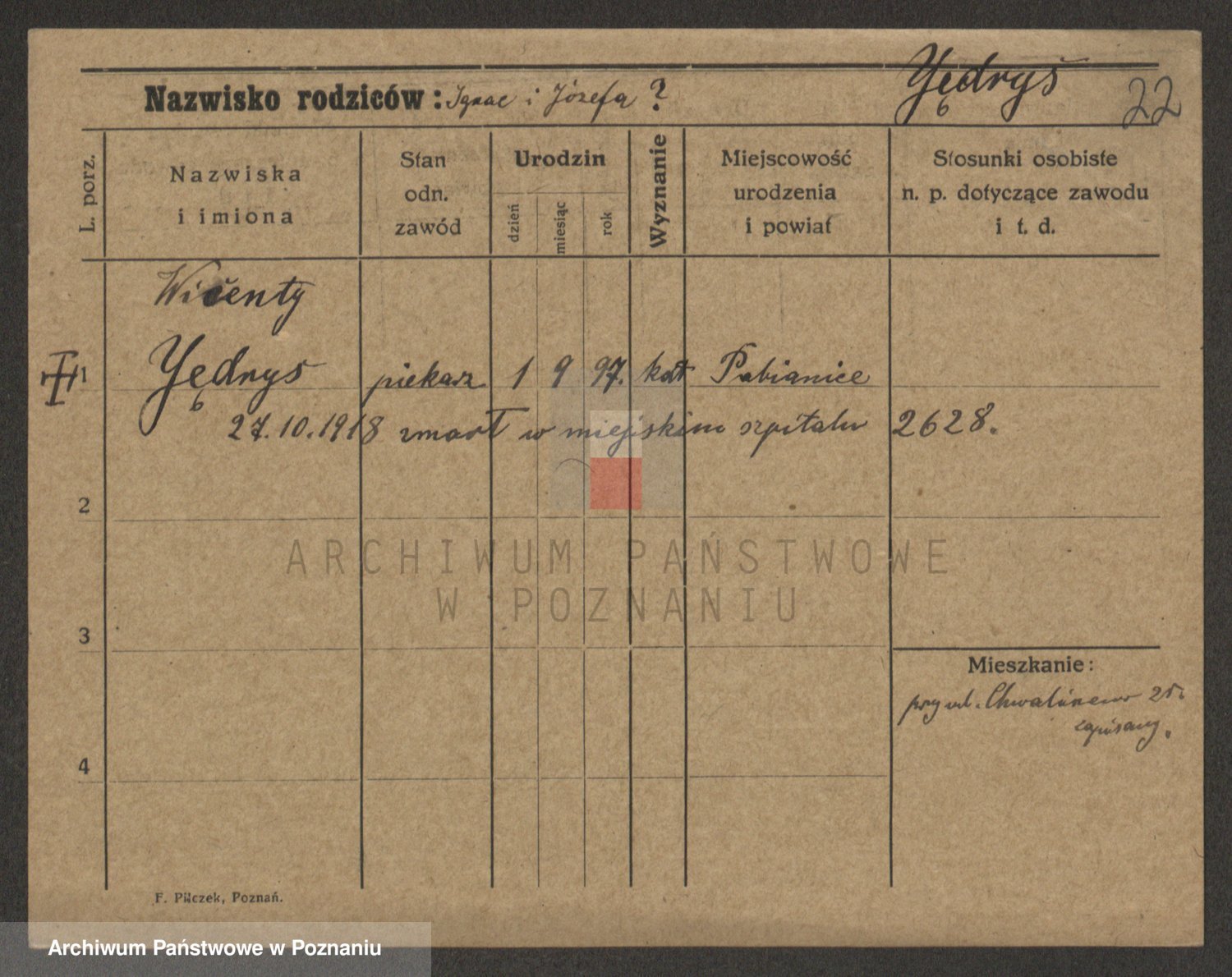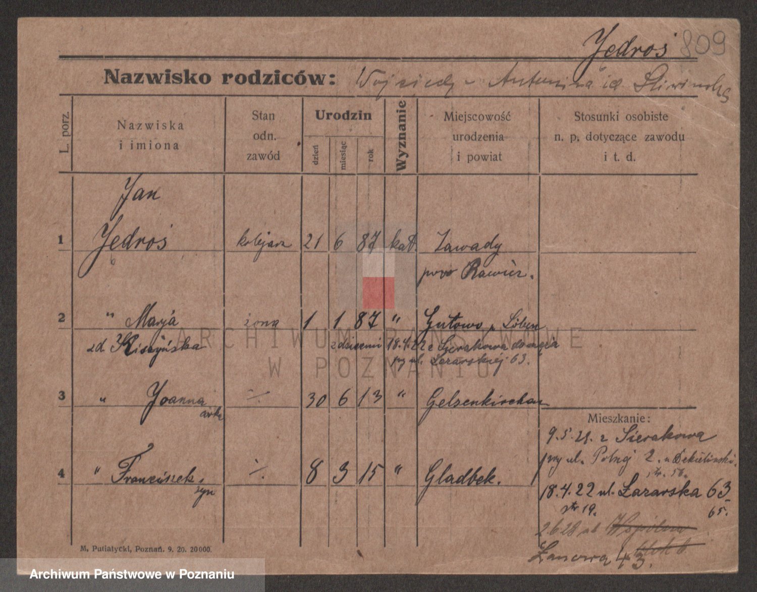 Podgląd karty osobowej dostępny jest po kliknięciu na nazwisko lub ikonkę karty. Można dokonywać powiększenia (ikony na górze) lub przechodzić między kolejnymi skanami (strzałki po bokach).