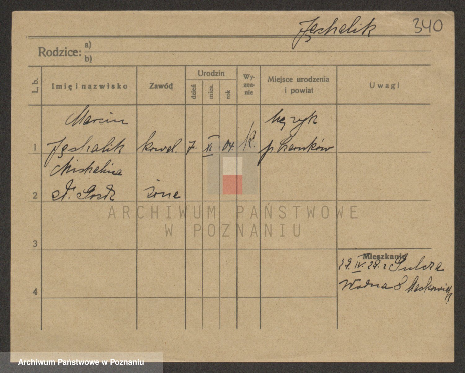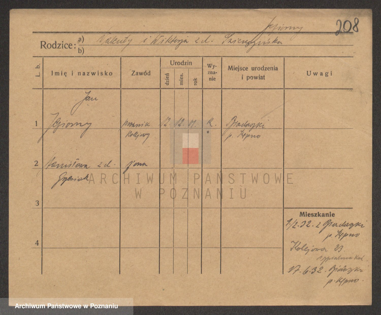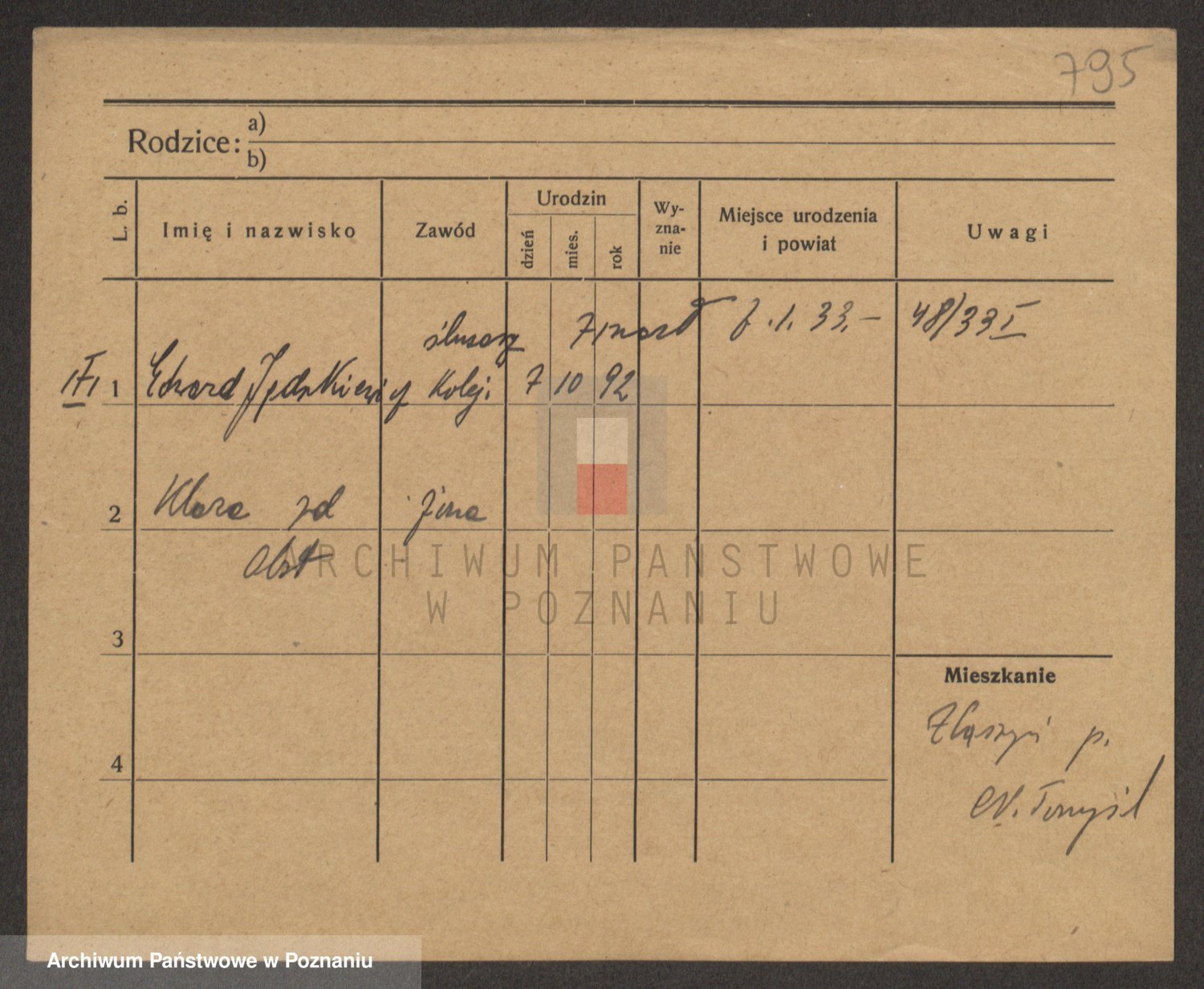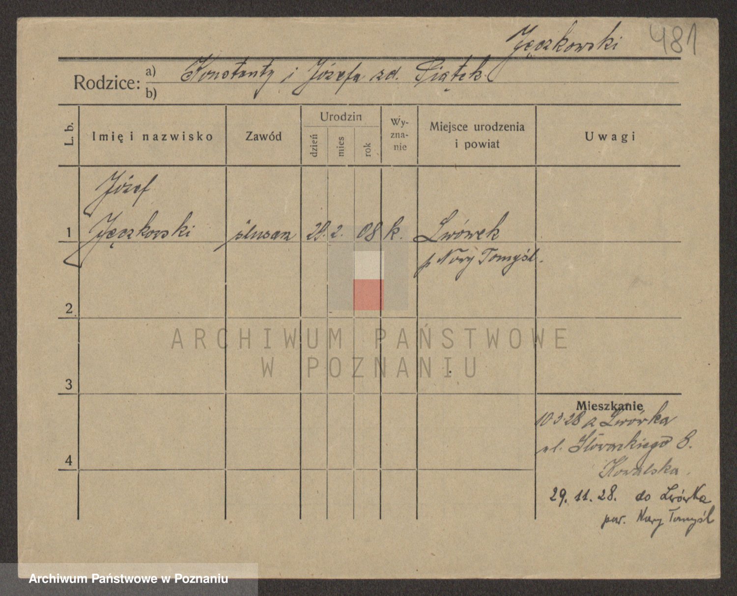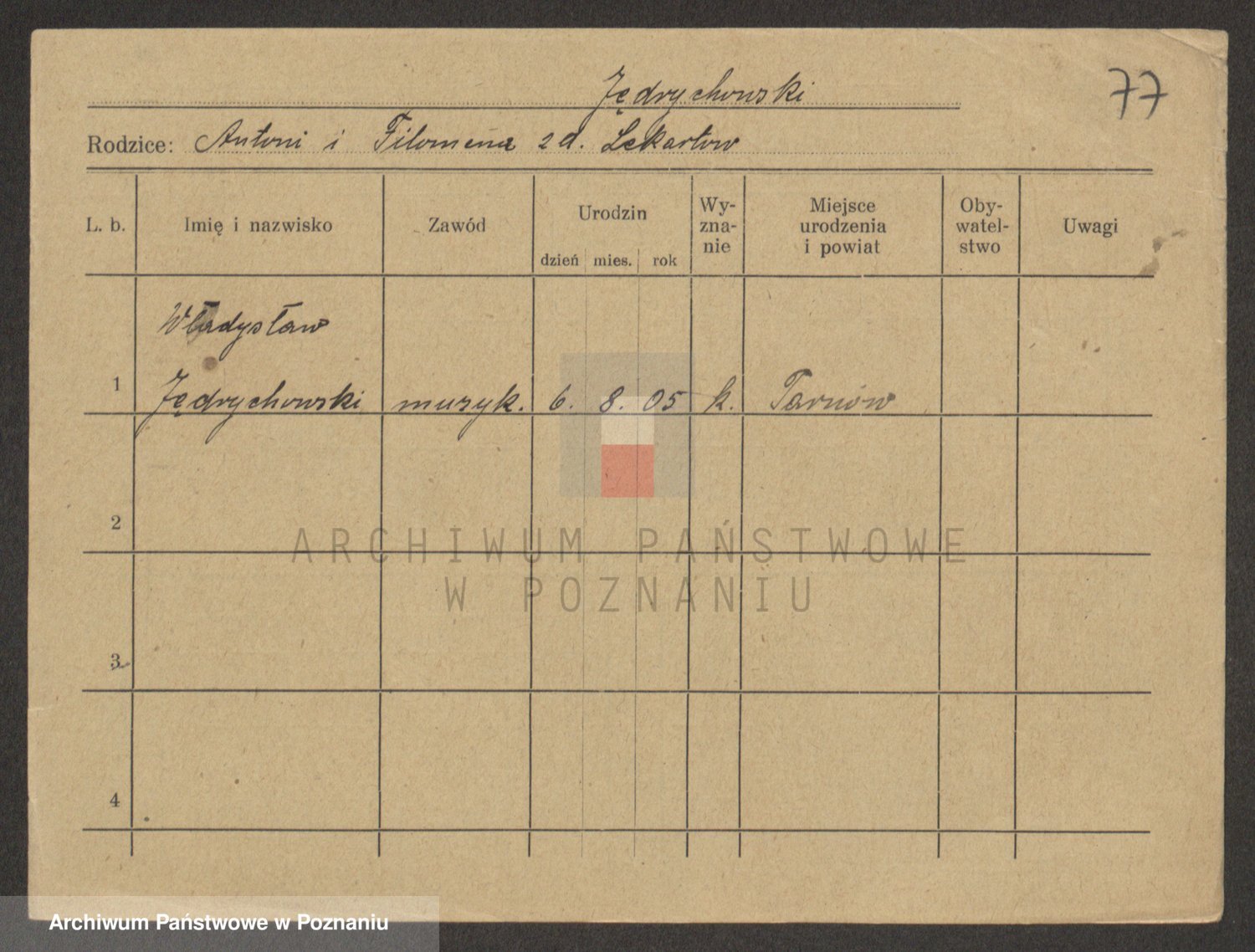 Podgląd karty osobowej dostępny jest po kliknięciu na nazwisko lub ikonkę karty. Można dokonywać powiększenia (ikony na górze) lub przechodzić między kolejnymi skanami (strzałki po bokach).