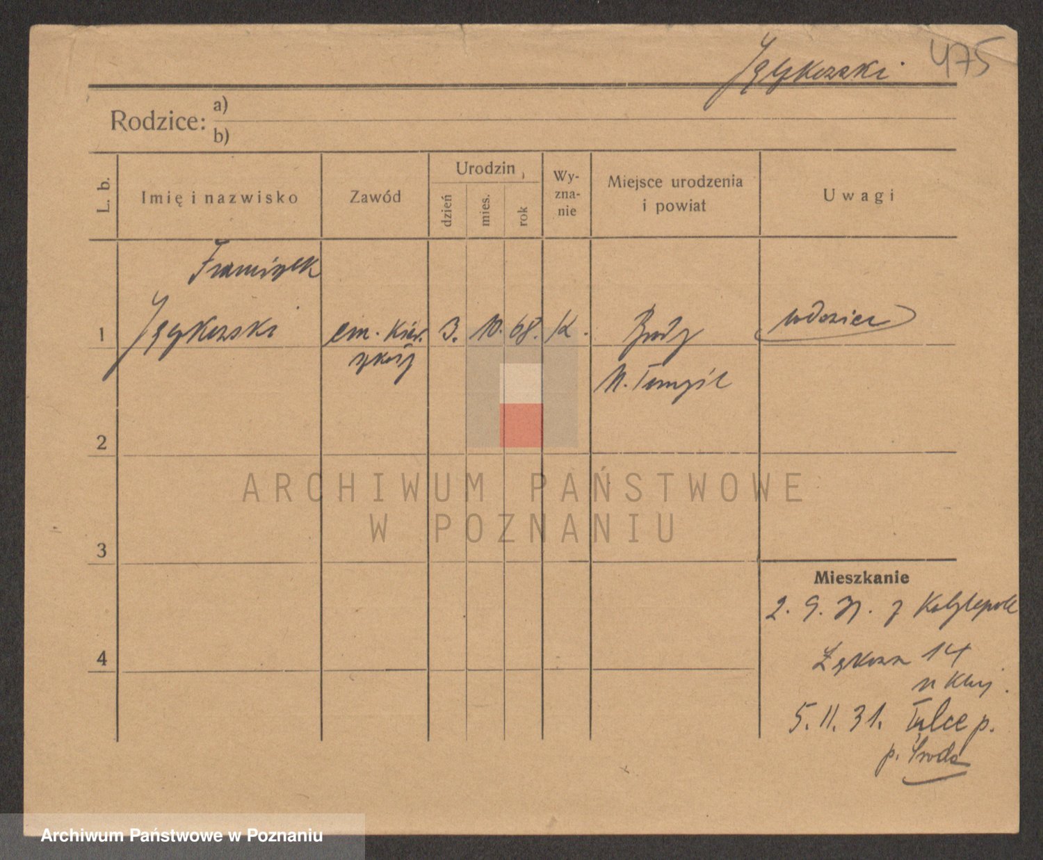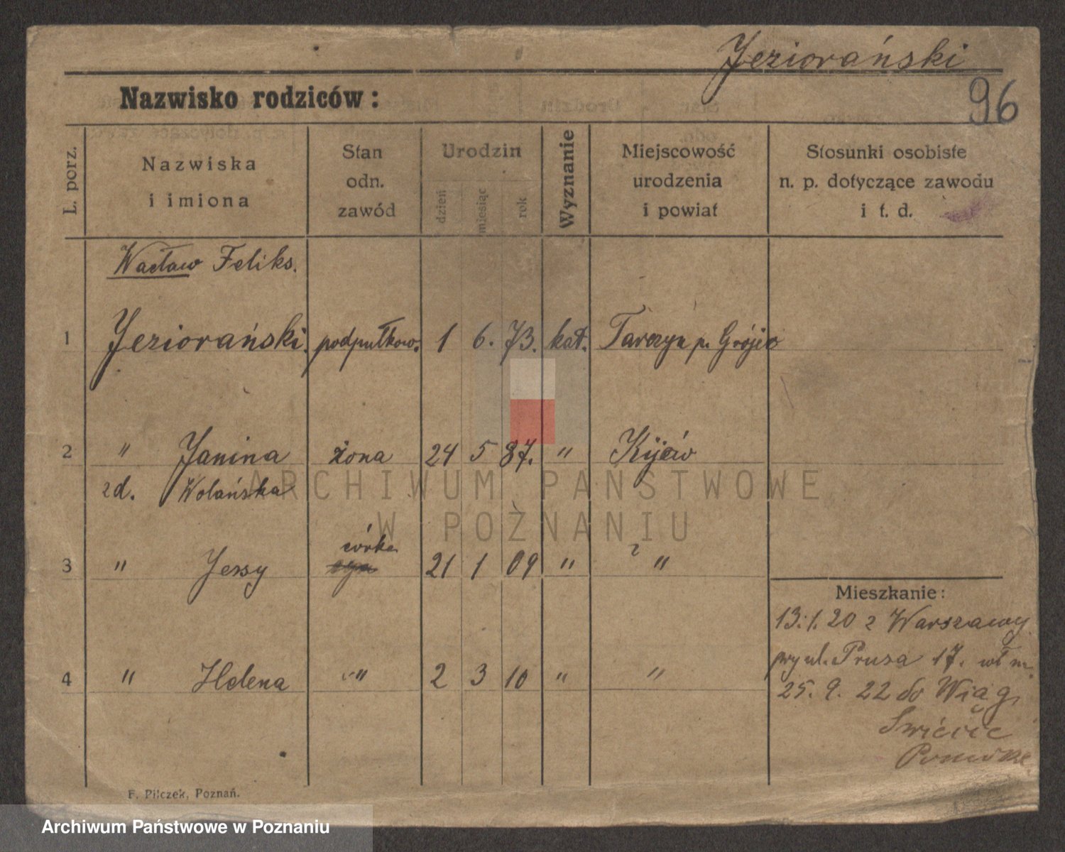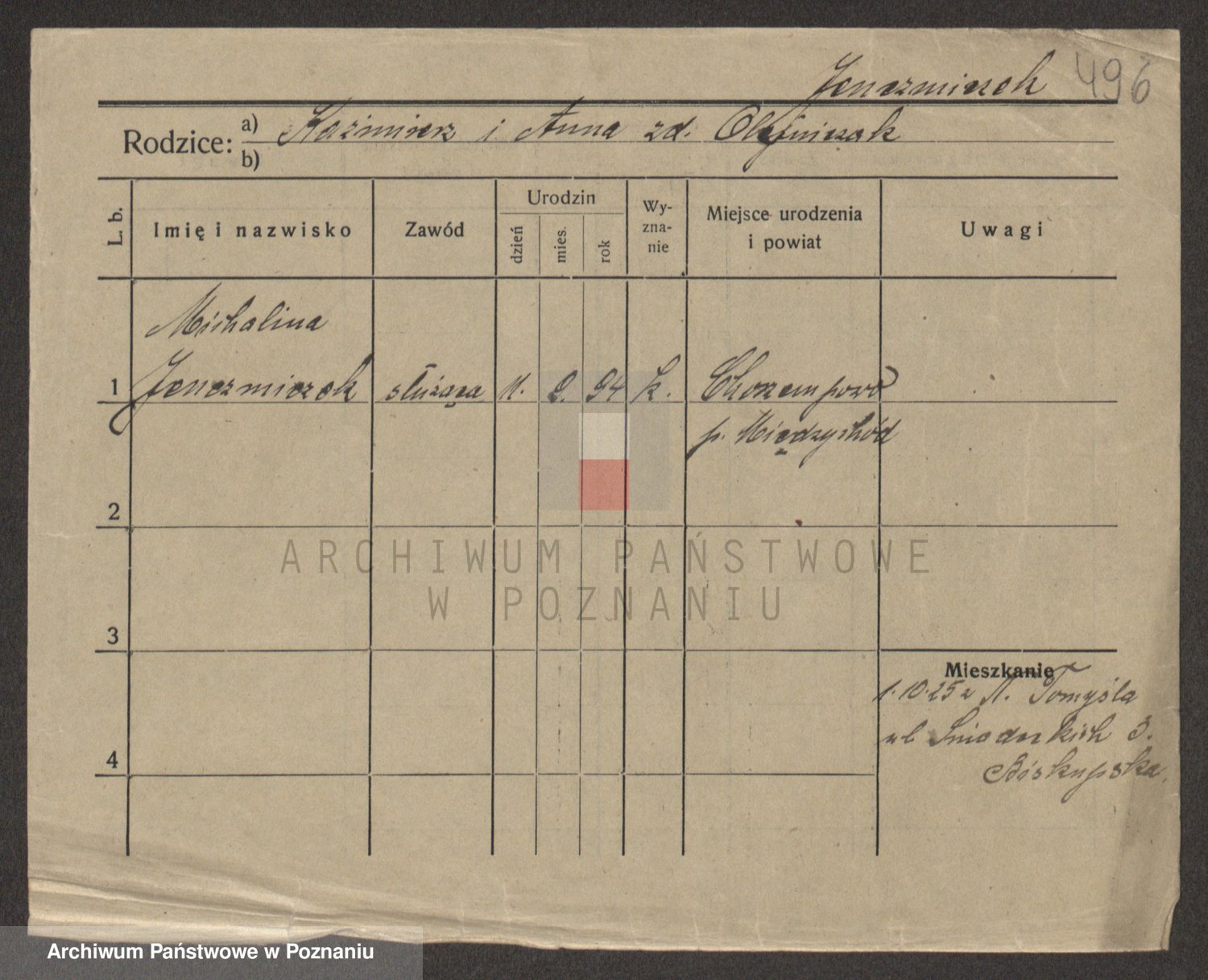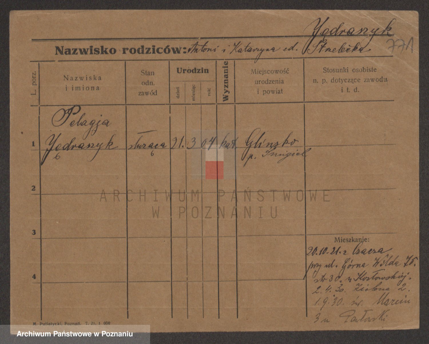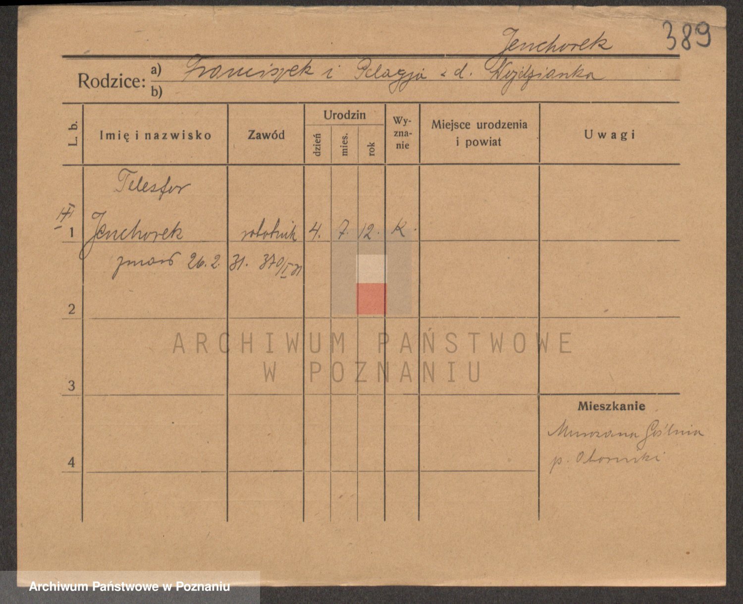 Podgląd karty osobowej dostępny jest po kliknięciu na nazwisko lub ikonkę karty. Można dokonywać powiększenia (ikony na górze) lub przechodzić między kolejnymi skanami (strzałki po bokach).