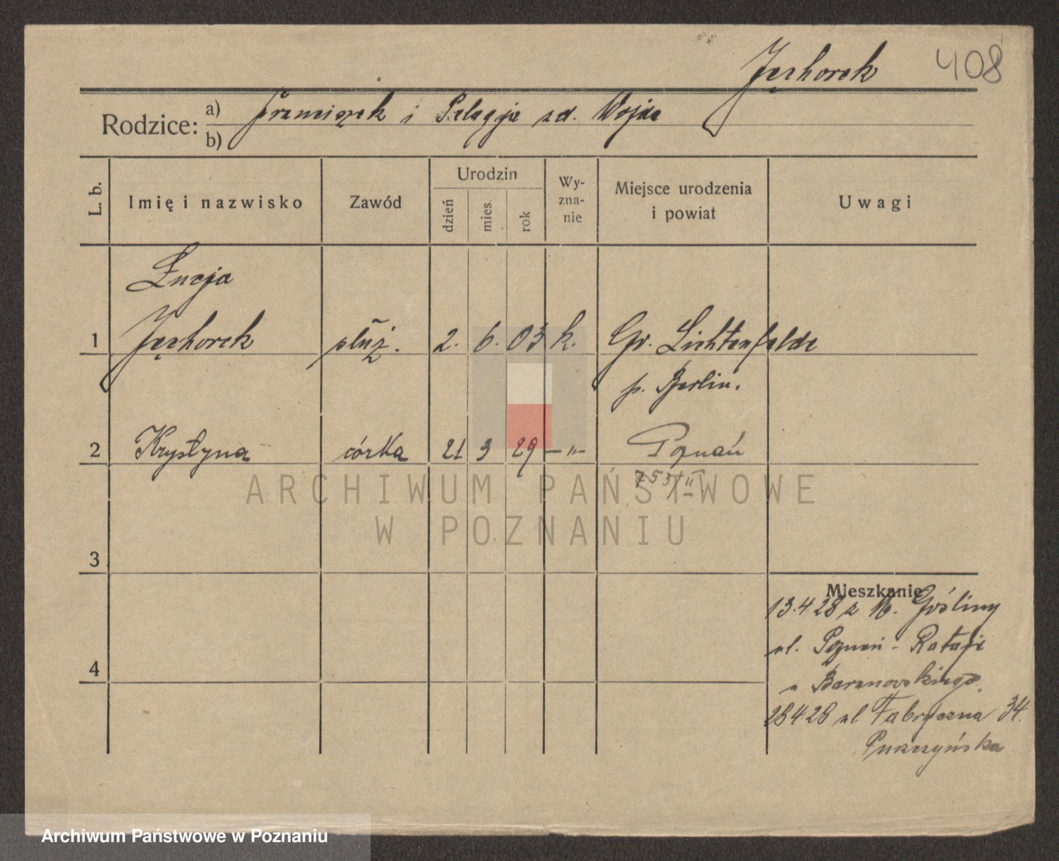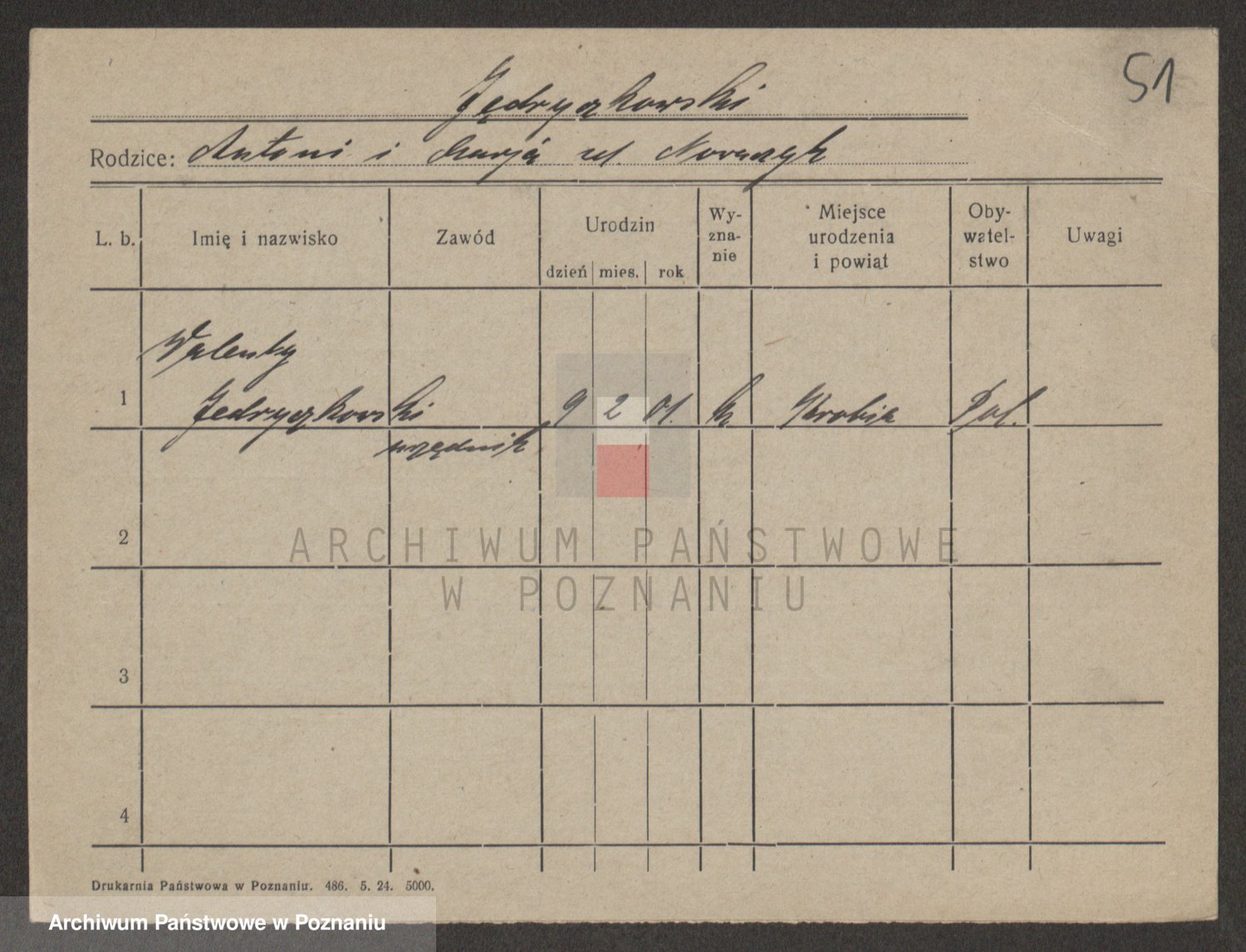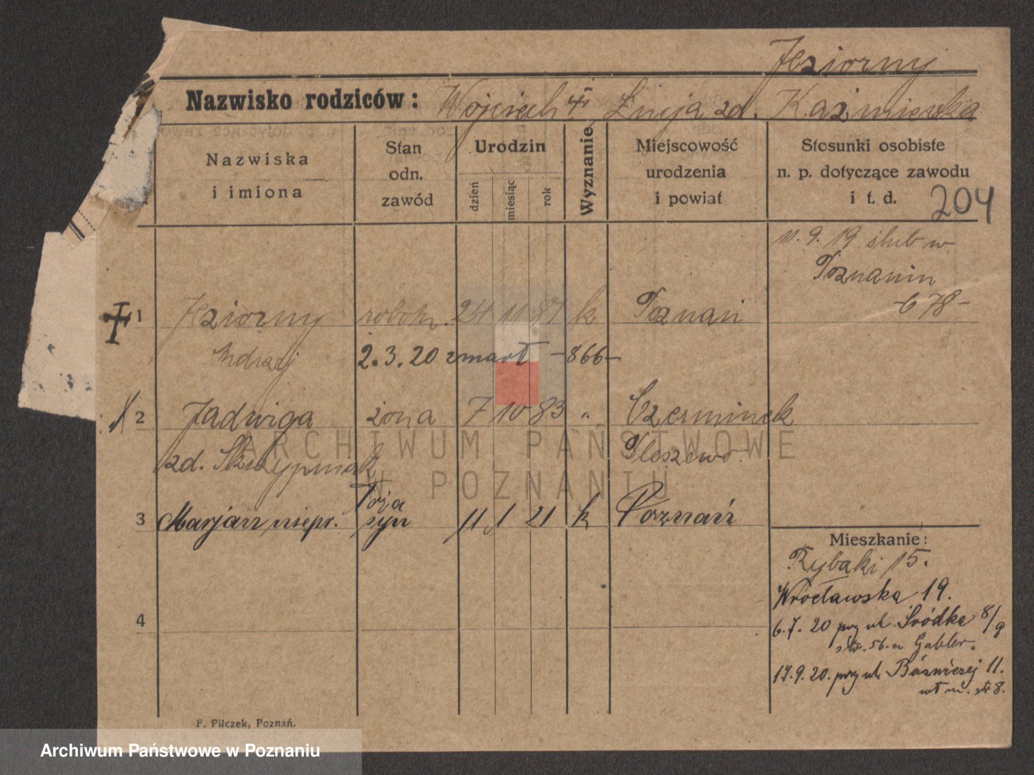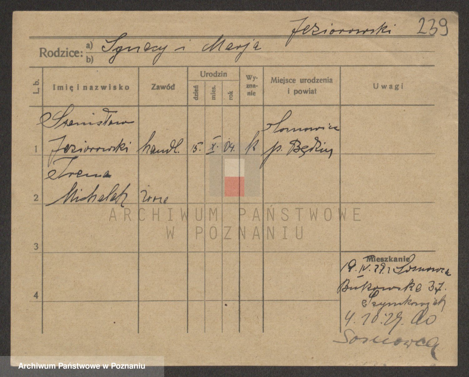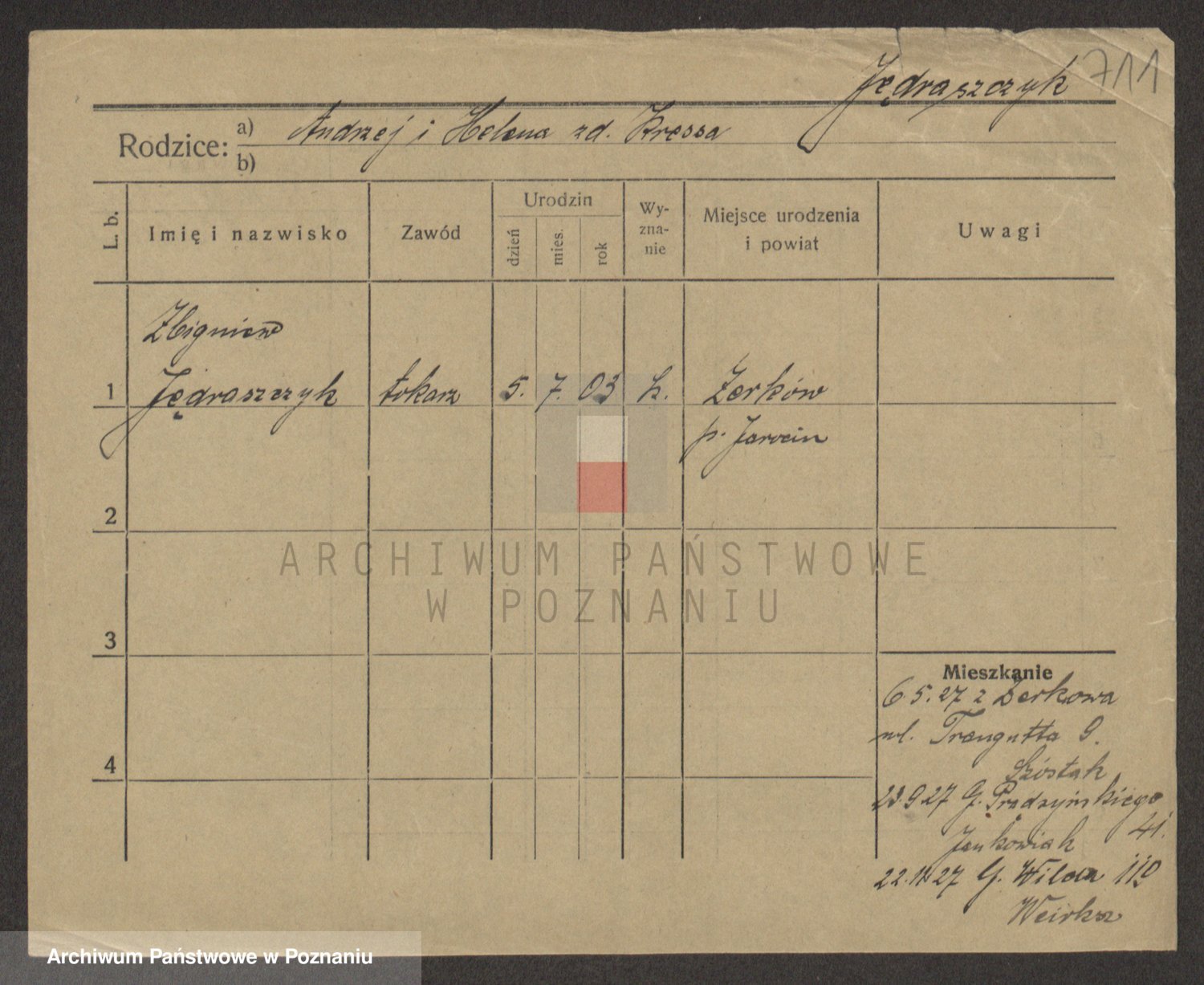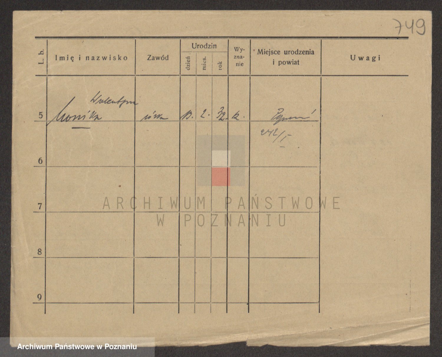 Podgląd karty osobowej dostępny jest po kliknięciu na nazwisko lub ikonkę karty. Można dokonywać powiększenia (ikony na górze) lub przechodzić między kolejnymi skanami (strzałki po bokach).