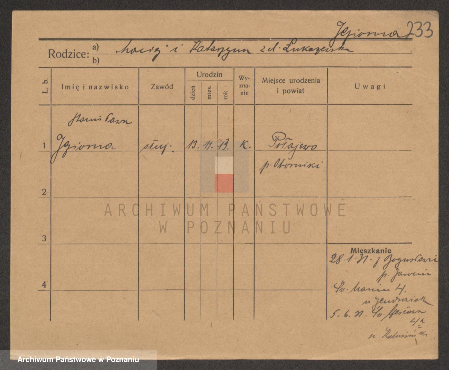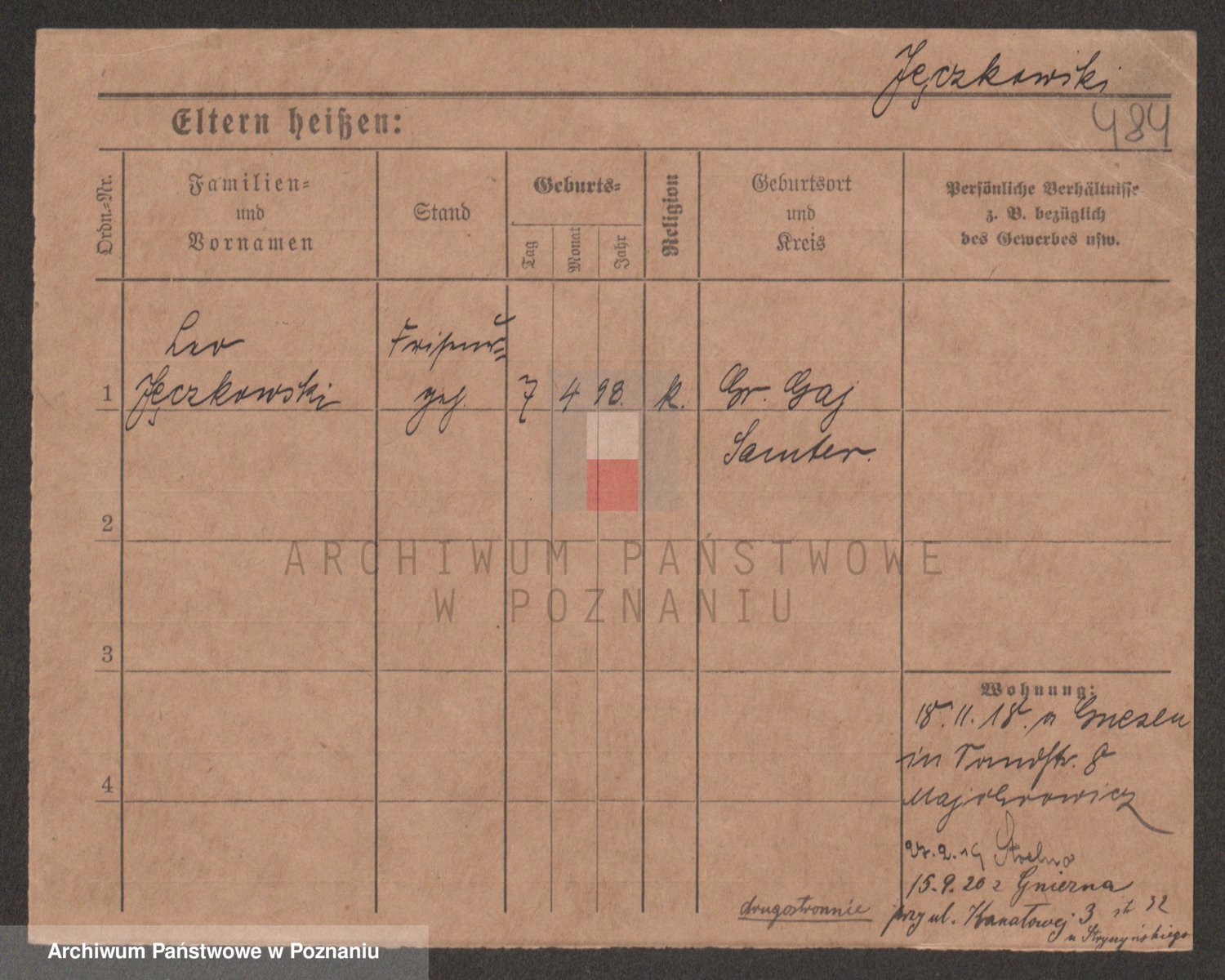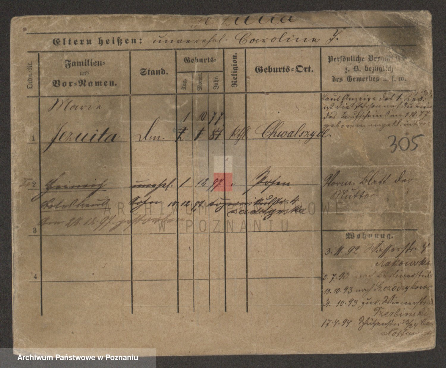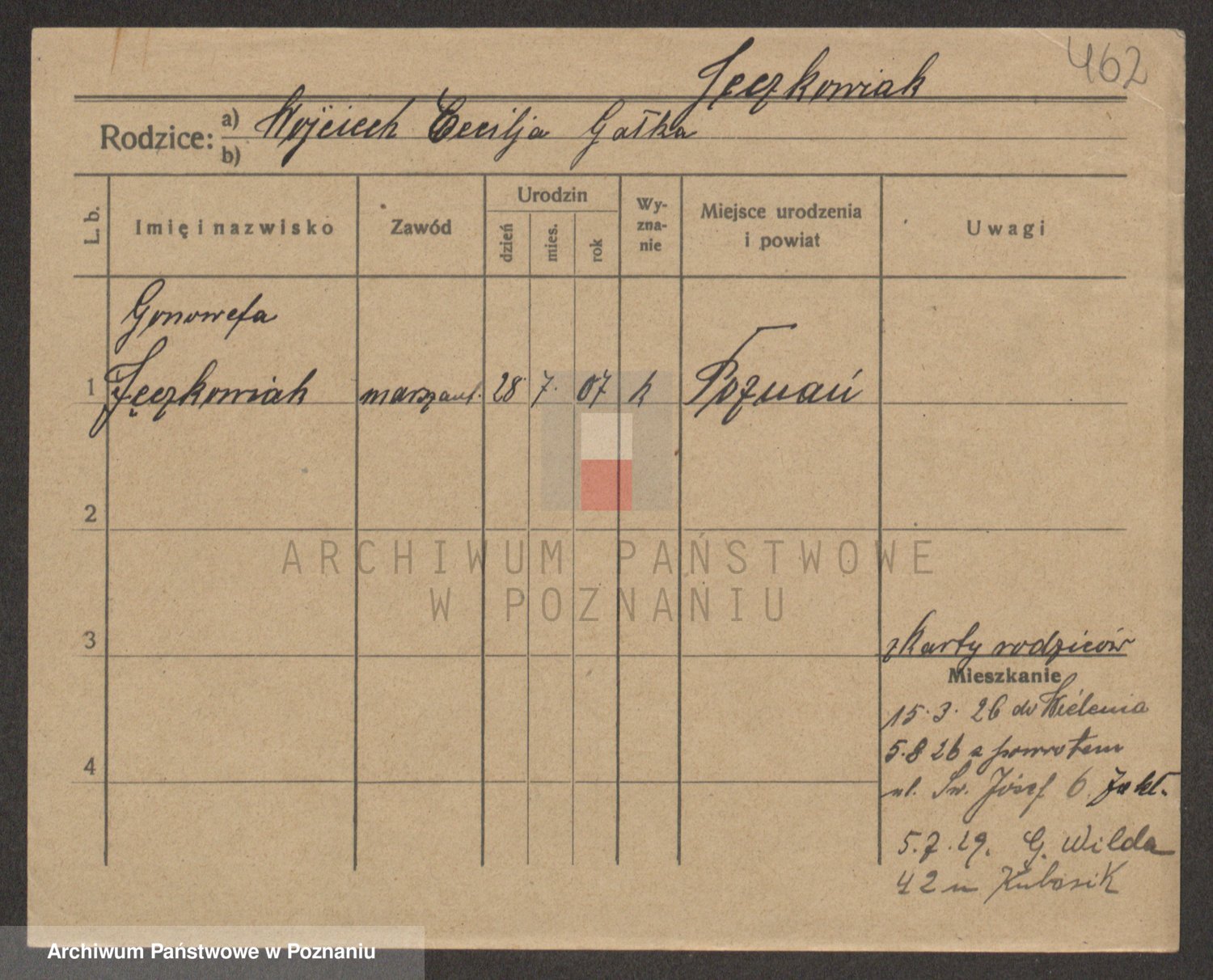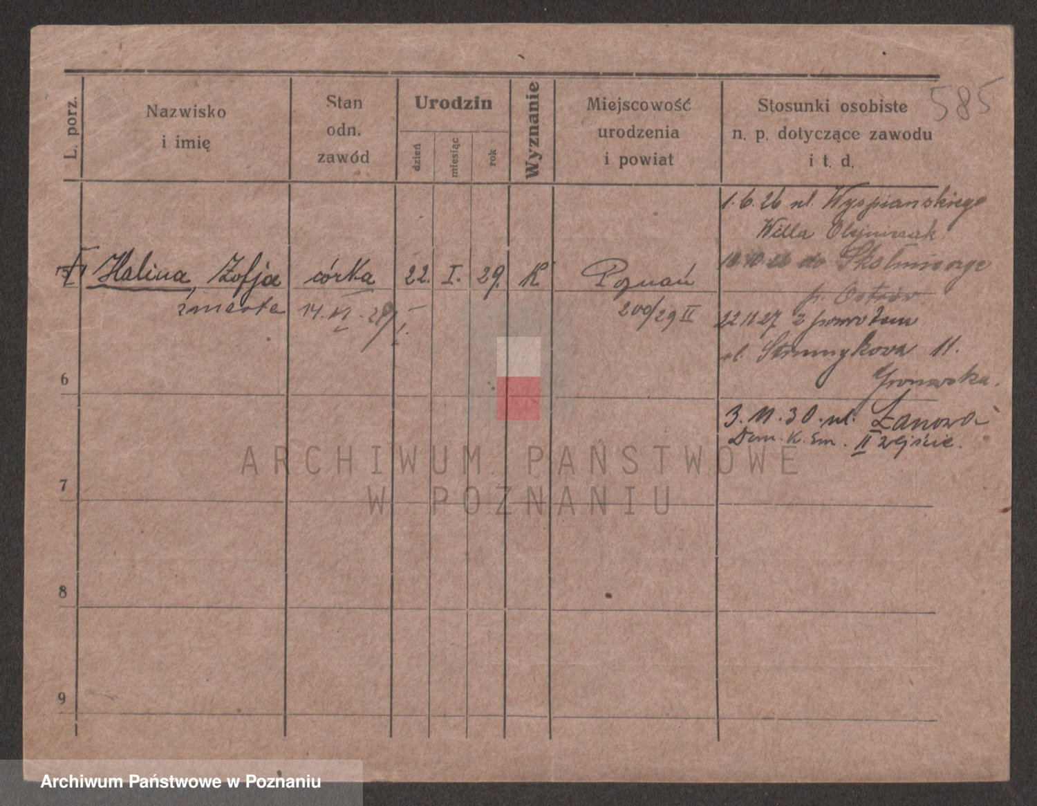 Podgląd karty osobowej dostępny jest po kliknięciu na nazwisko lub ikonkę karty. Można dokonywać powiększenia (ikony na górze) lub przechodzić między kolejnymi skanami (strzałki po bokach).