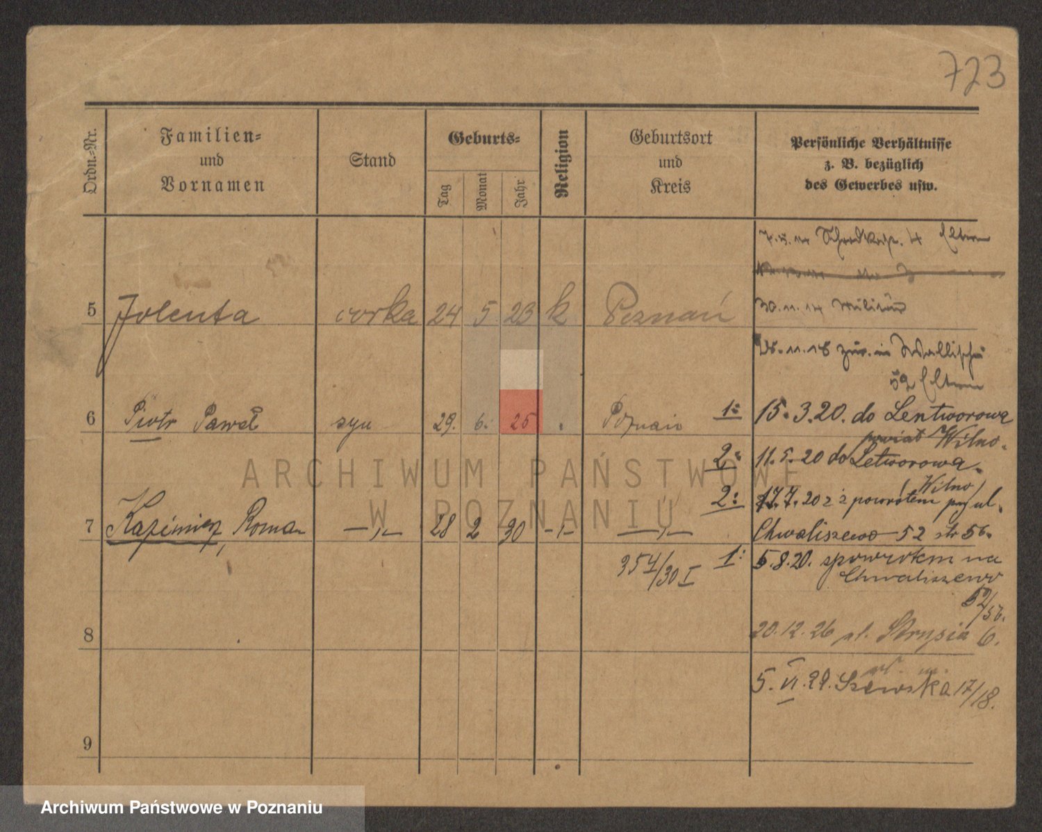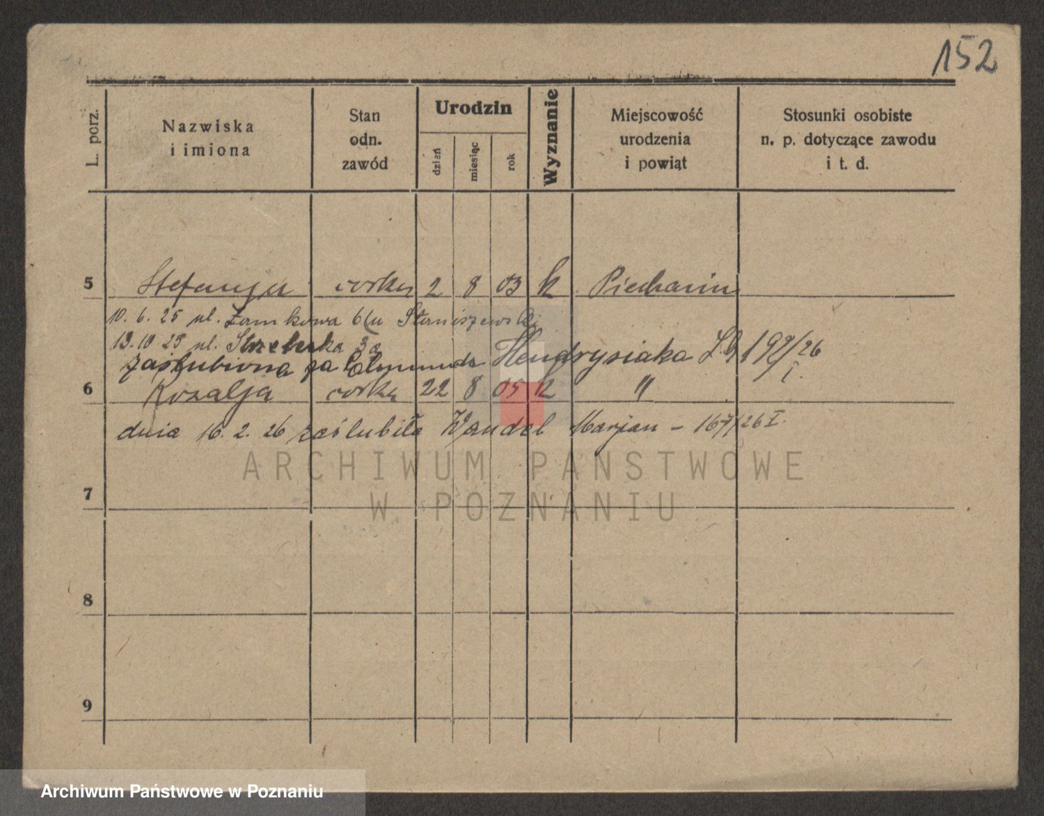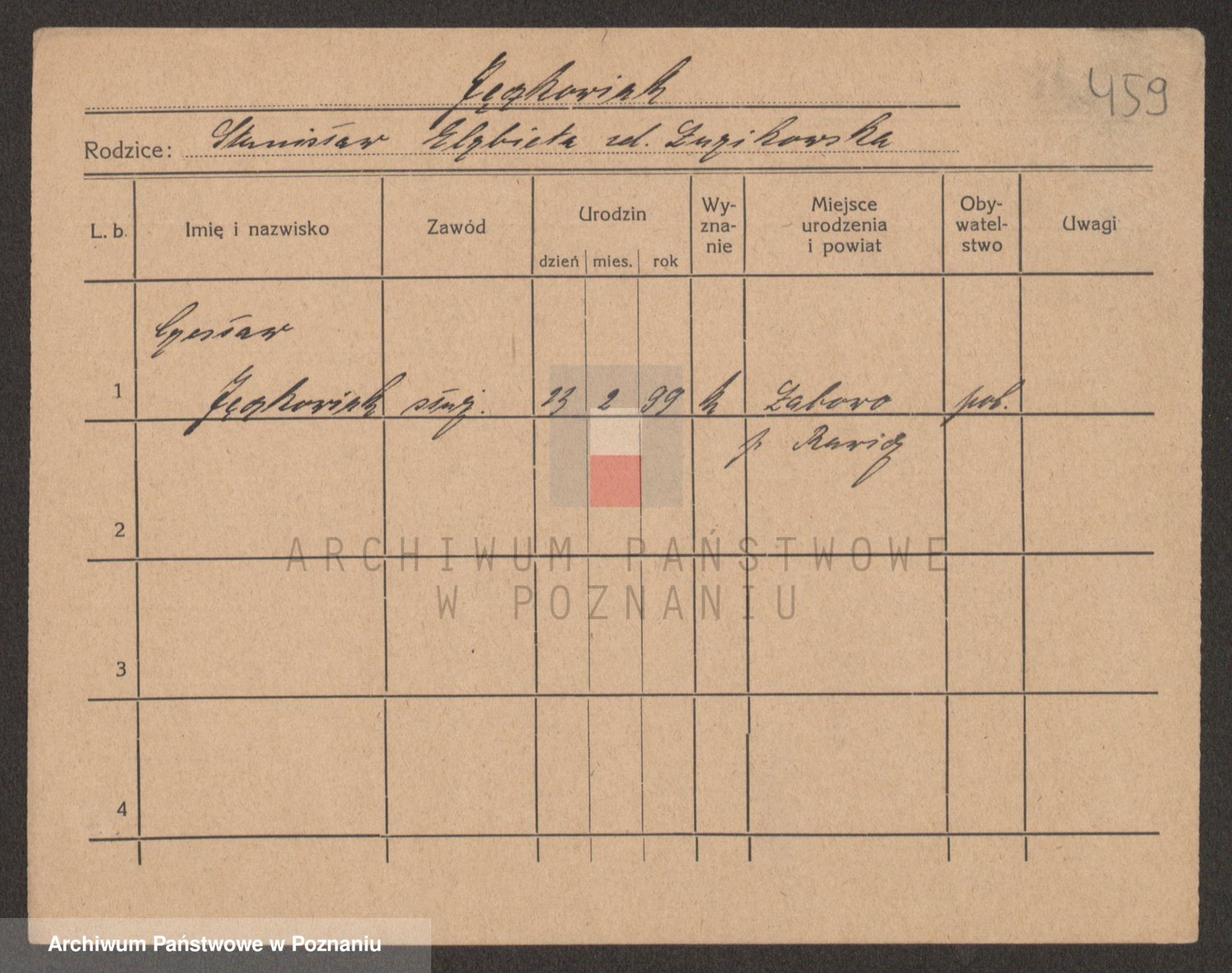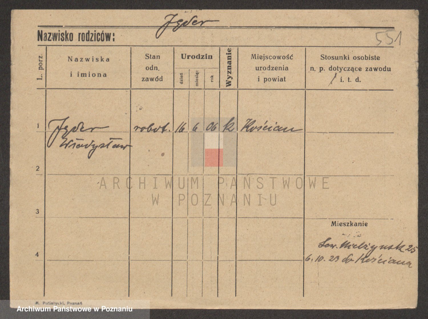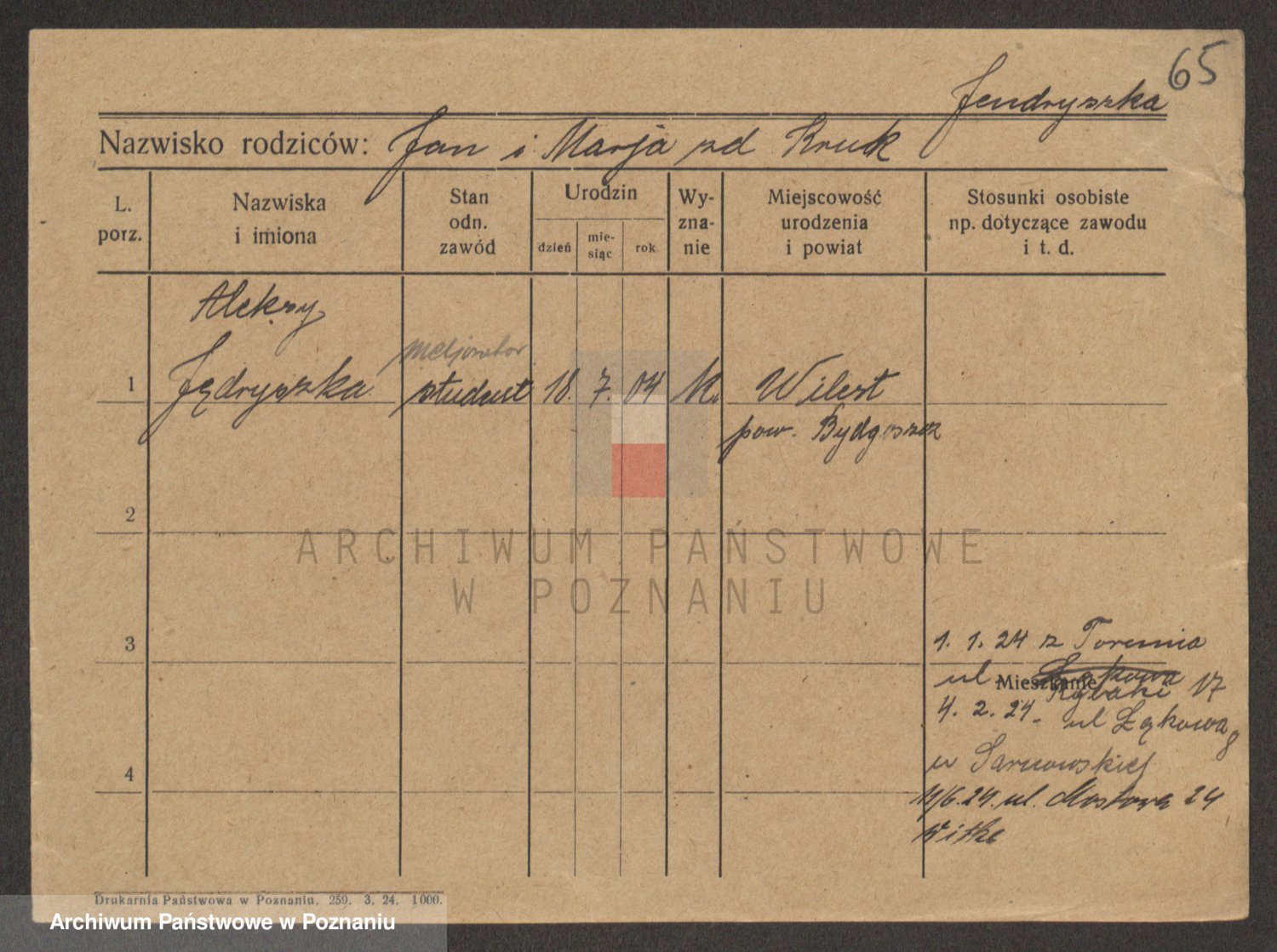 Podgląd karty osobowej dostępny jest po kliknięciu na nazwisko lub ikonkę karty. Można dokonywać powiększenia (ikony na górze) lub przechodzić między kolejnymi skanami (strzałki po bokach).