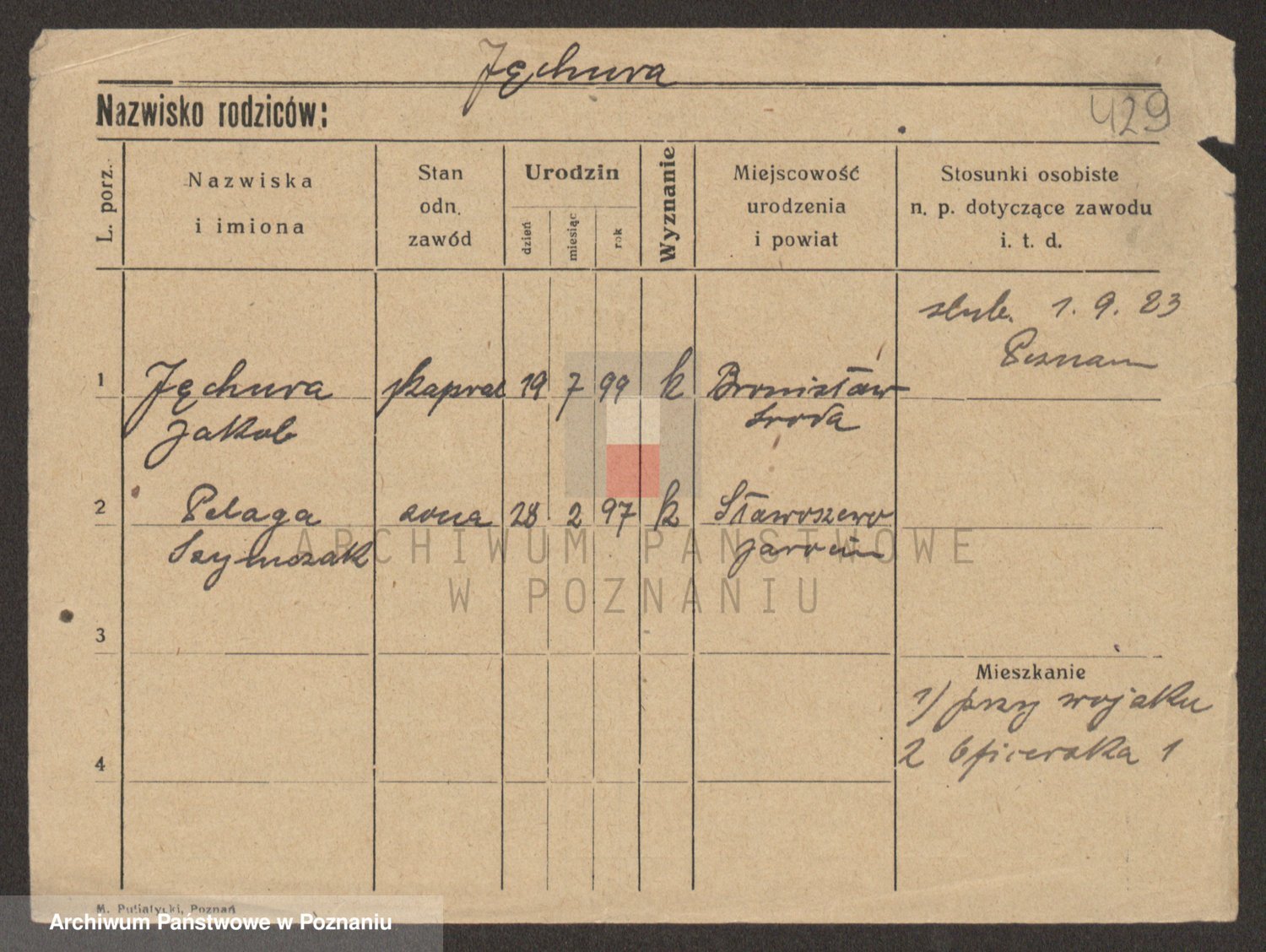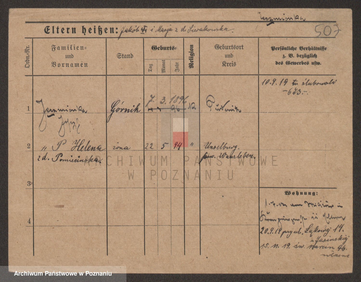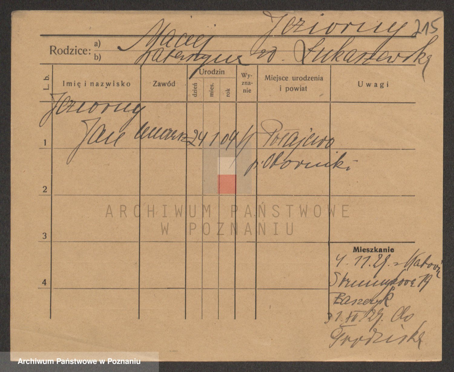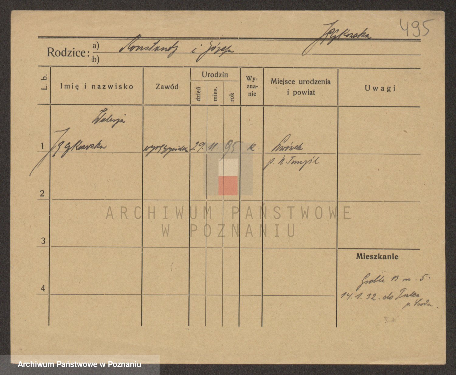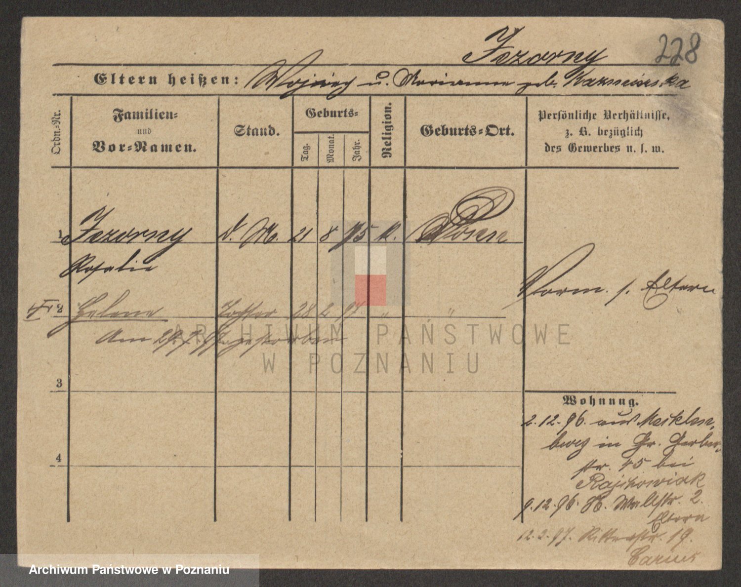 Podgląd karty osobowej dostępny jest po kliknięciu na nazwisko lub ikonkę karty. Można dokonywać powiększenia (ikony na górze) lub przechodzić między kolejnymi skanami (strzałki po bokach).